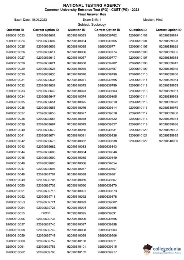 | CUET PG Sociology Question Paper 2023 PDF | CUET PG Sociology Answer Key 2023 PDF |