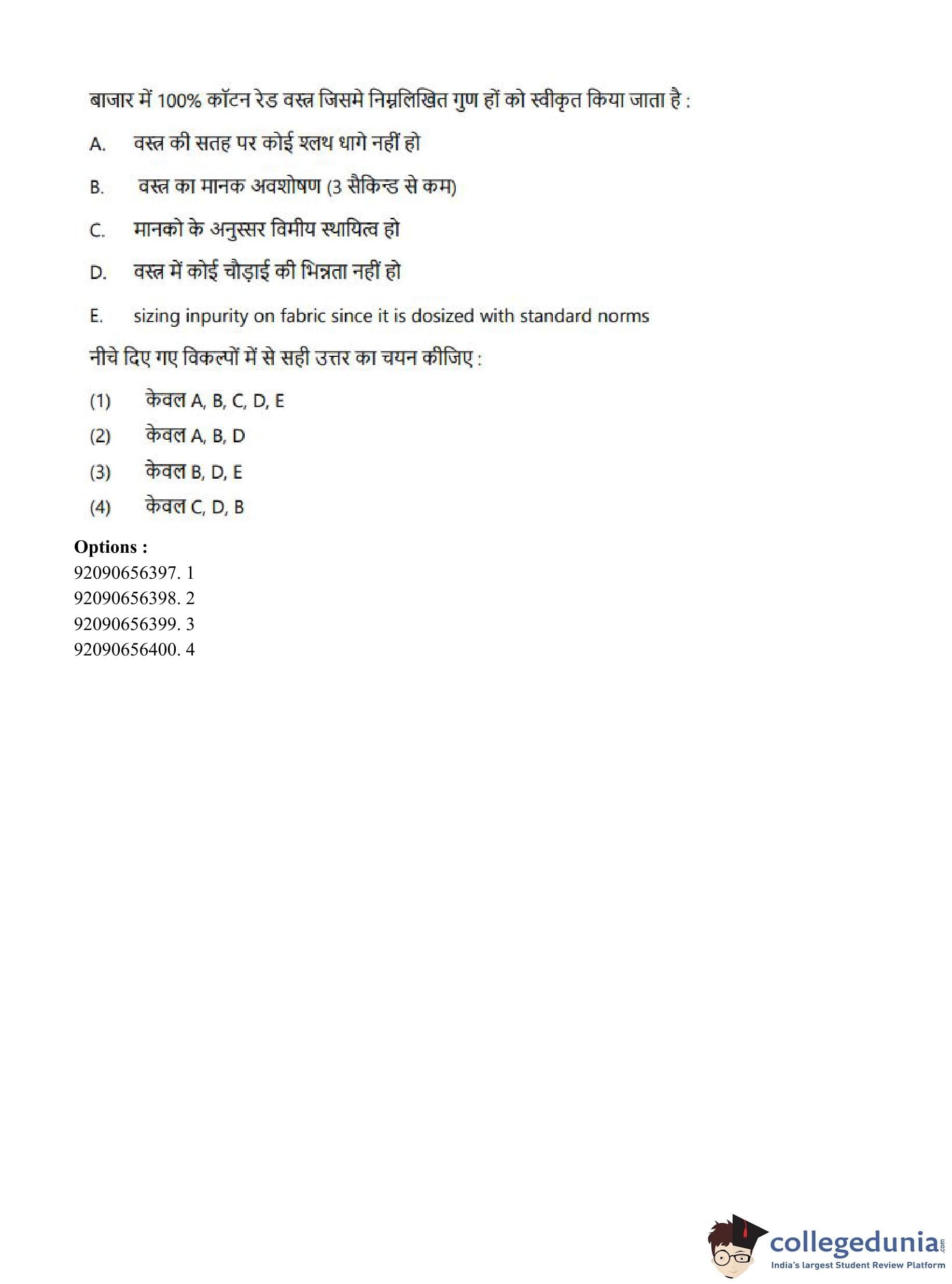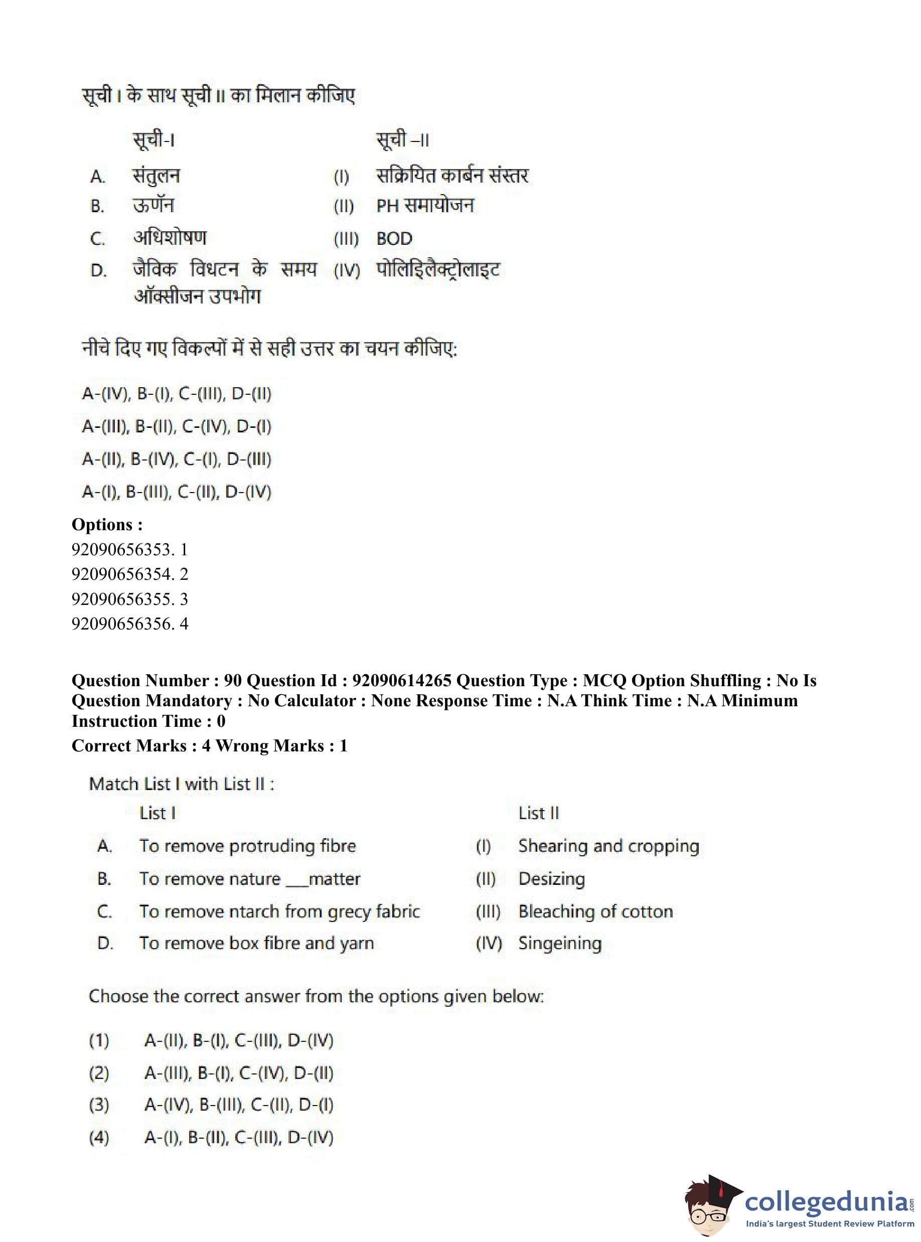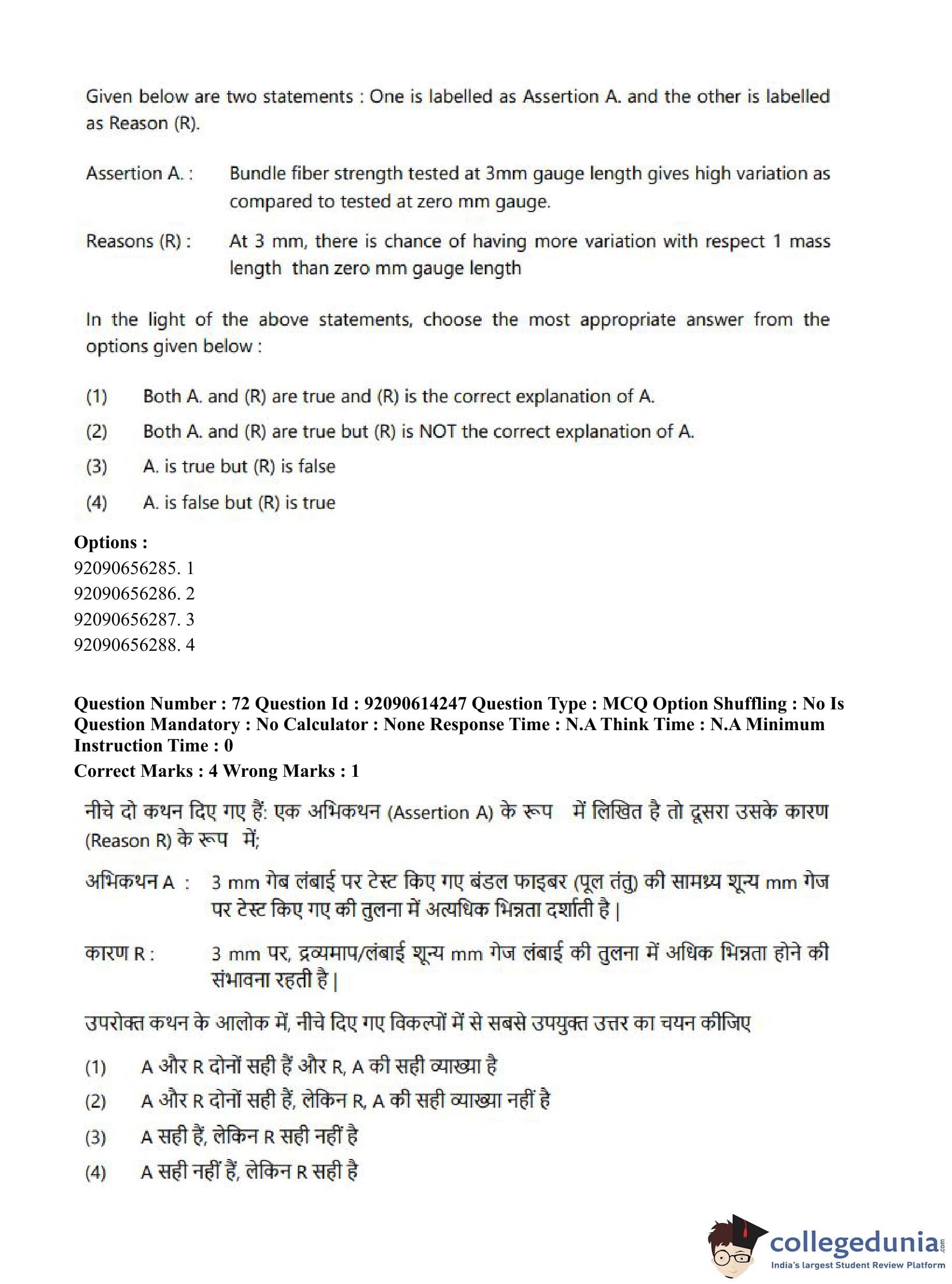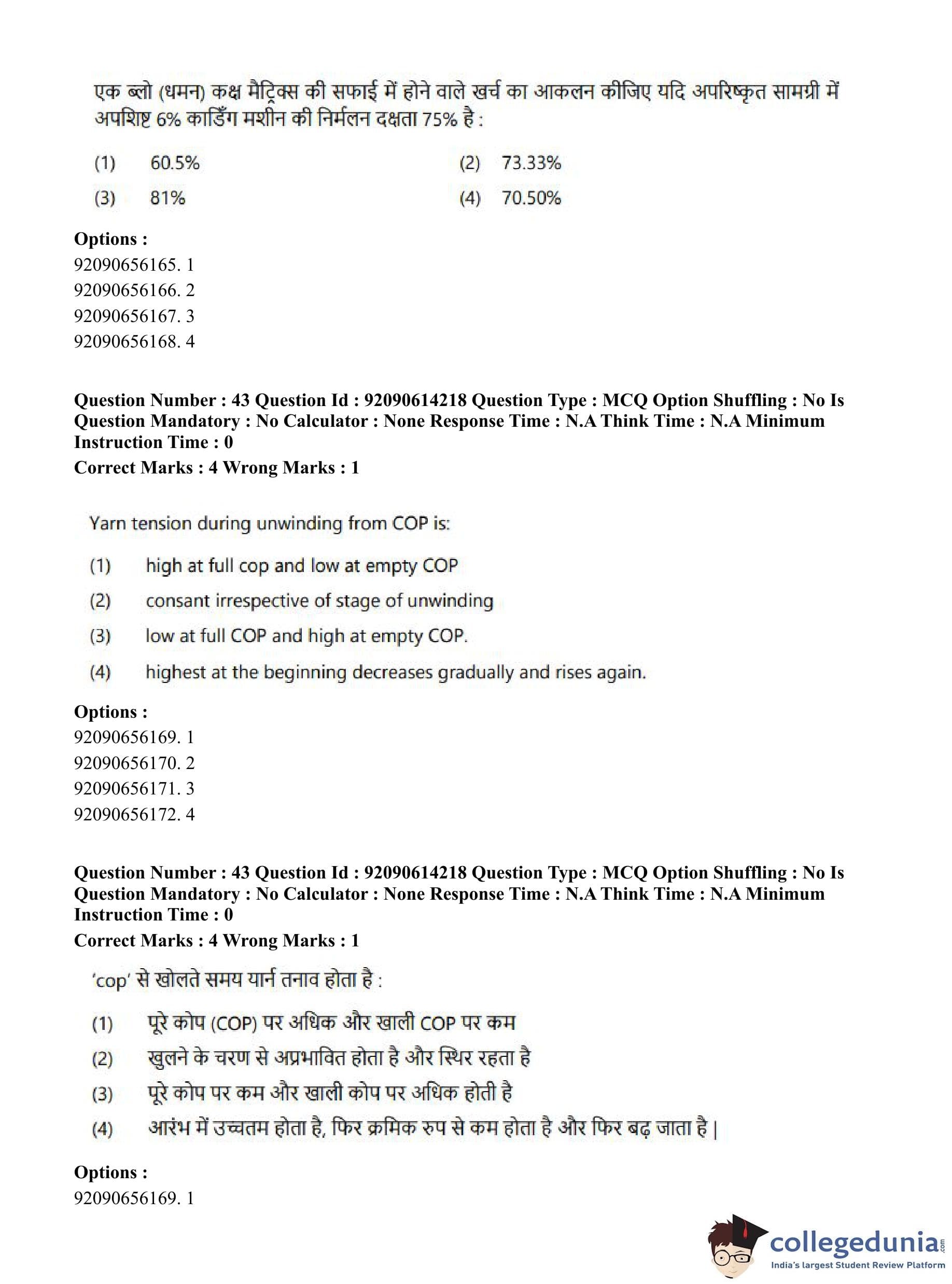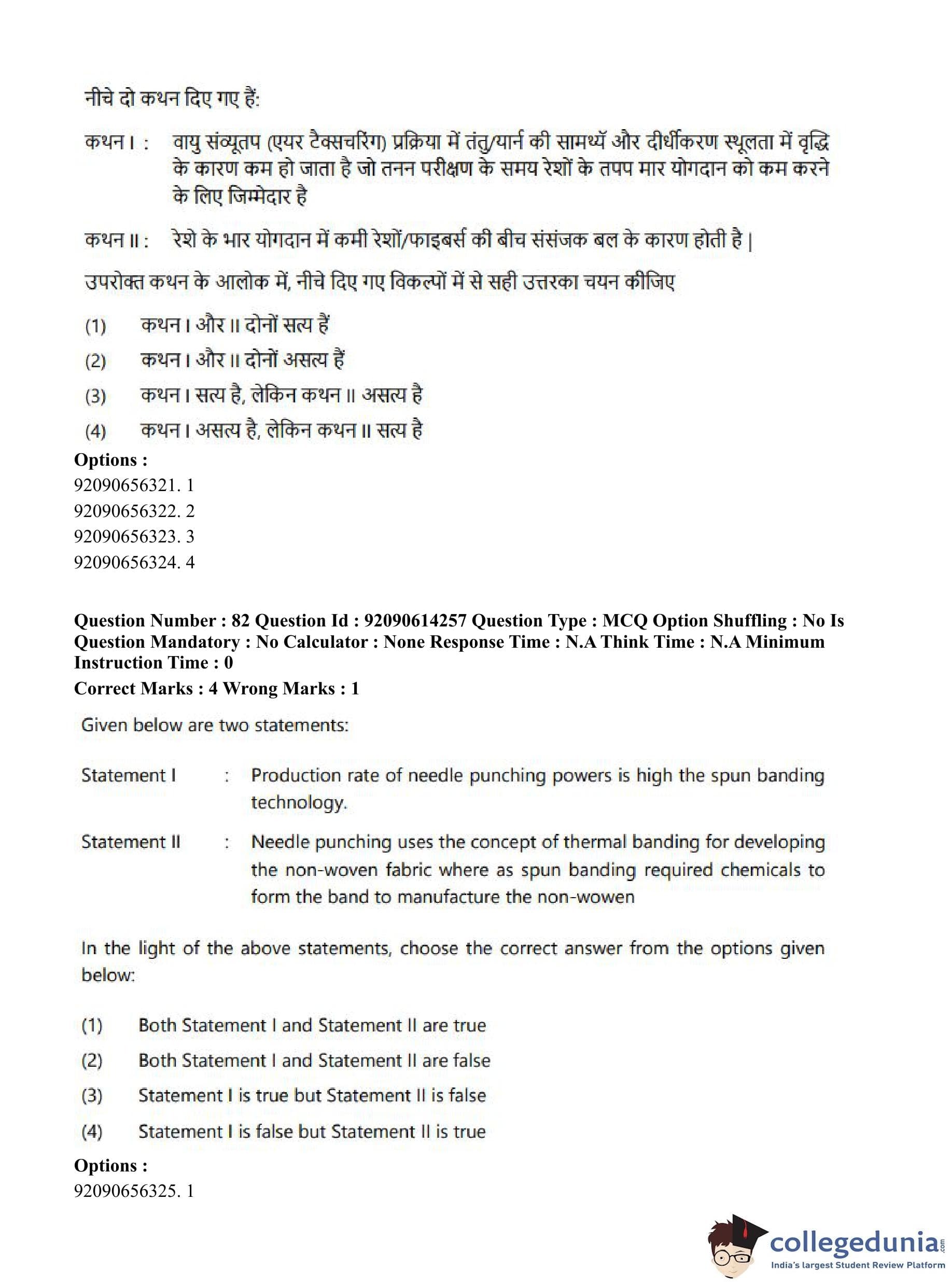 CUET PG 2023 Textile Engineering Question Paper in Hindi (June 12 - Shift 2)