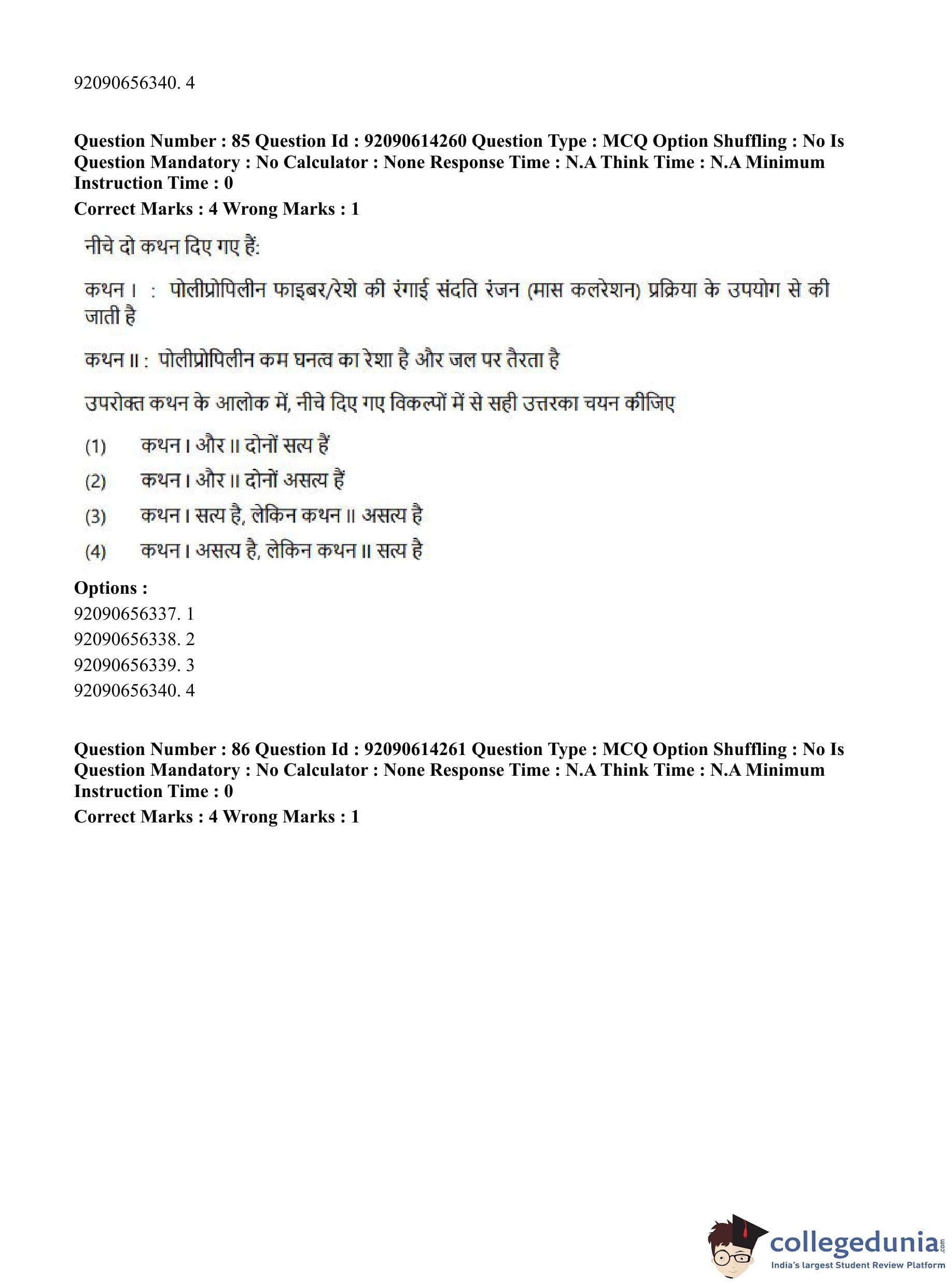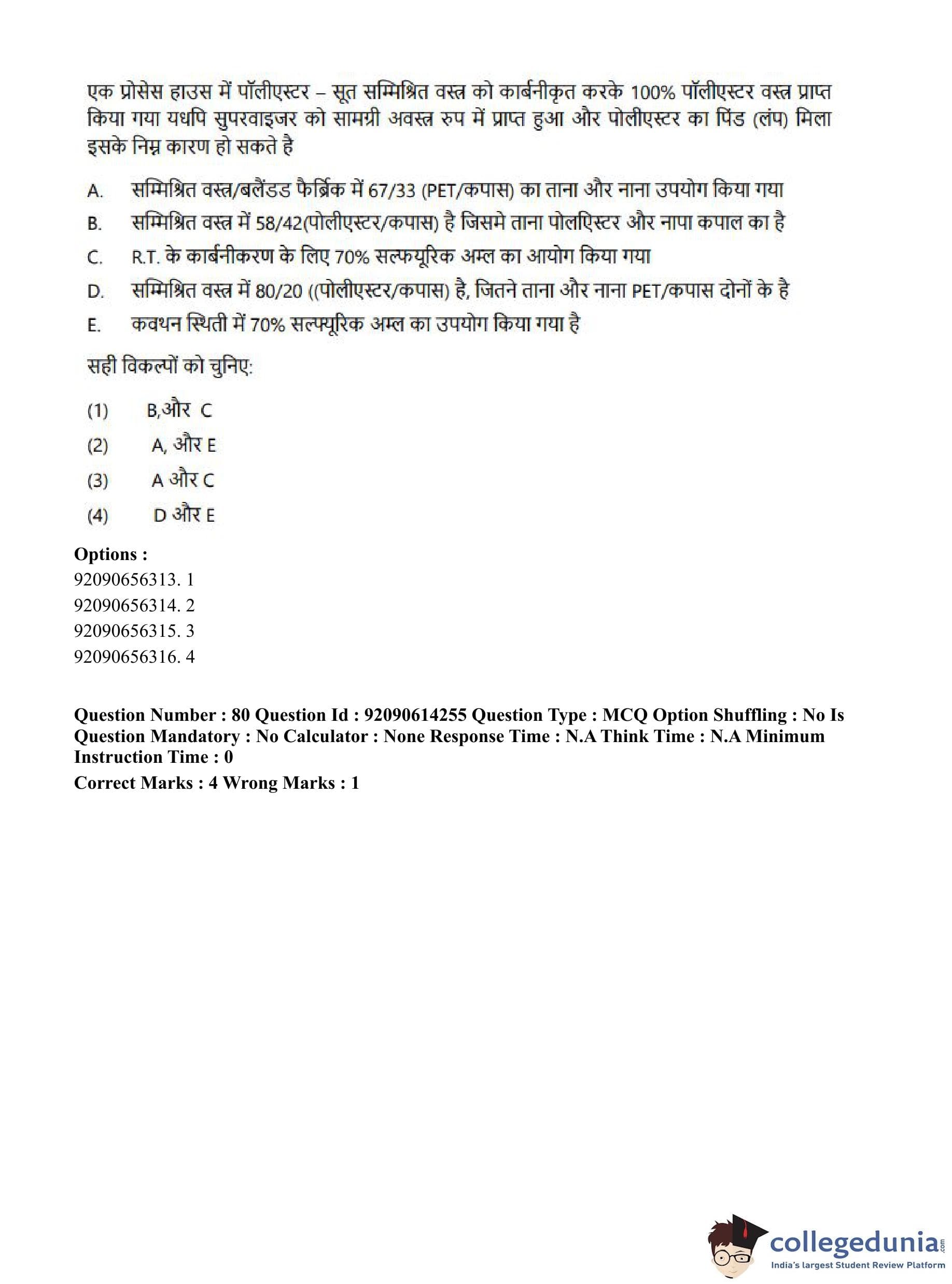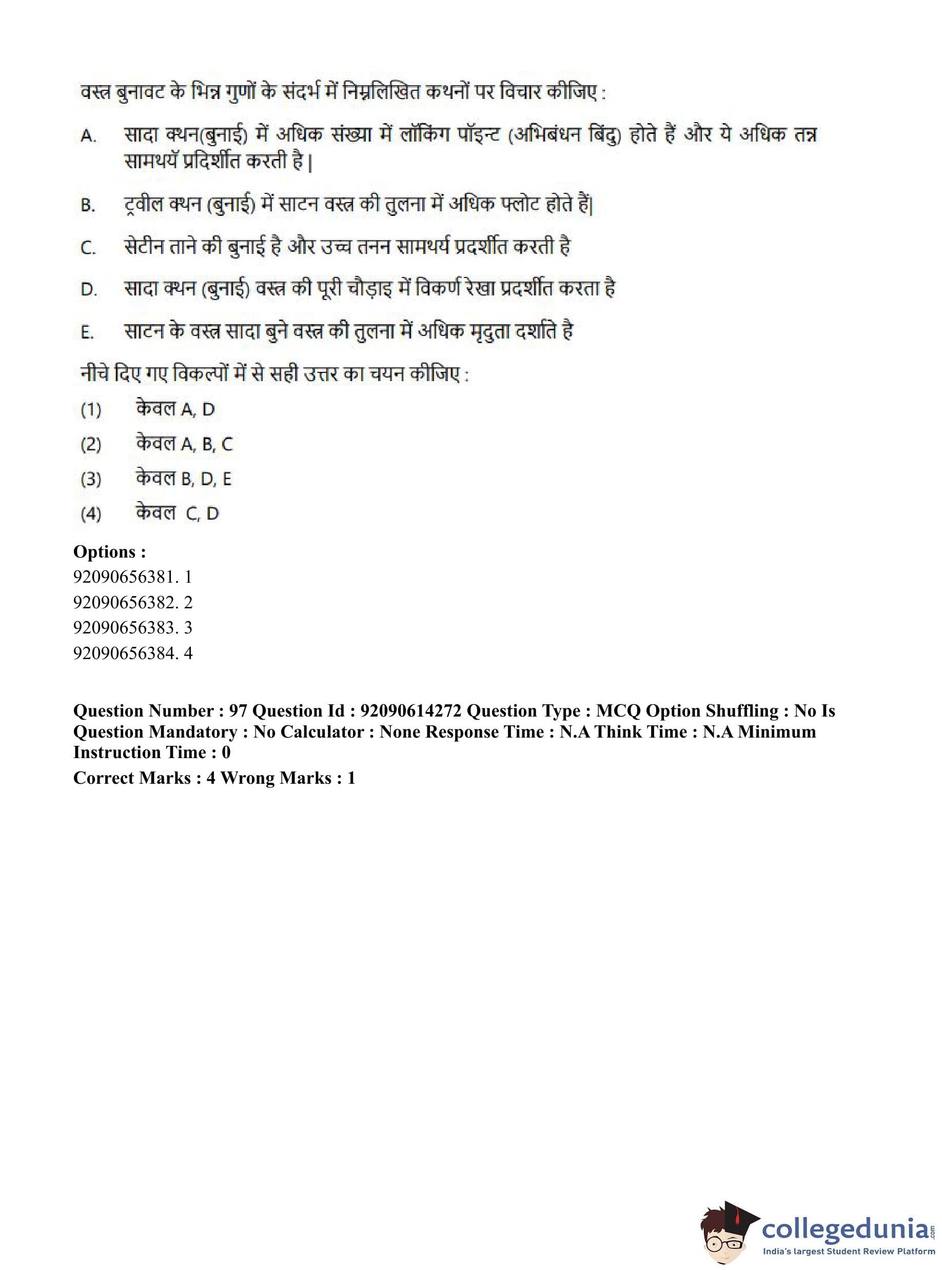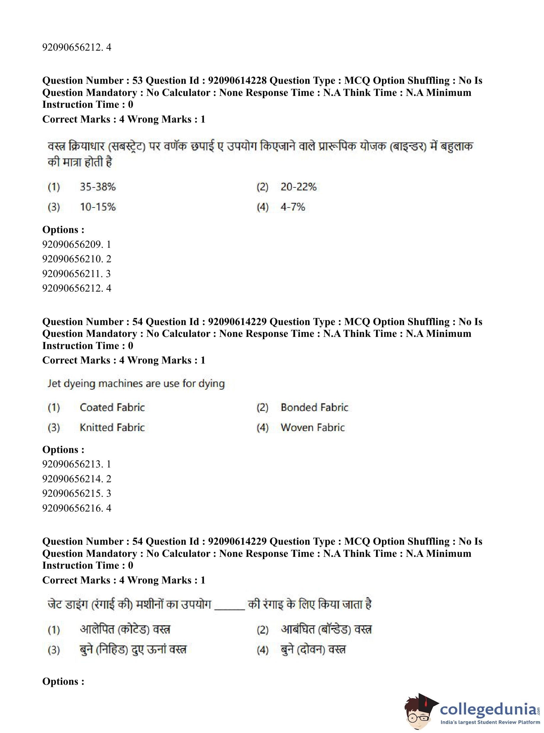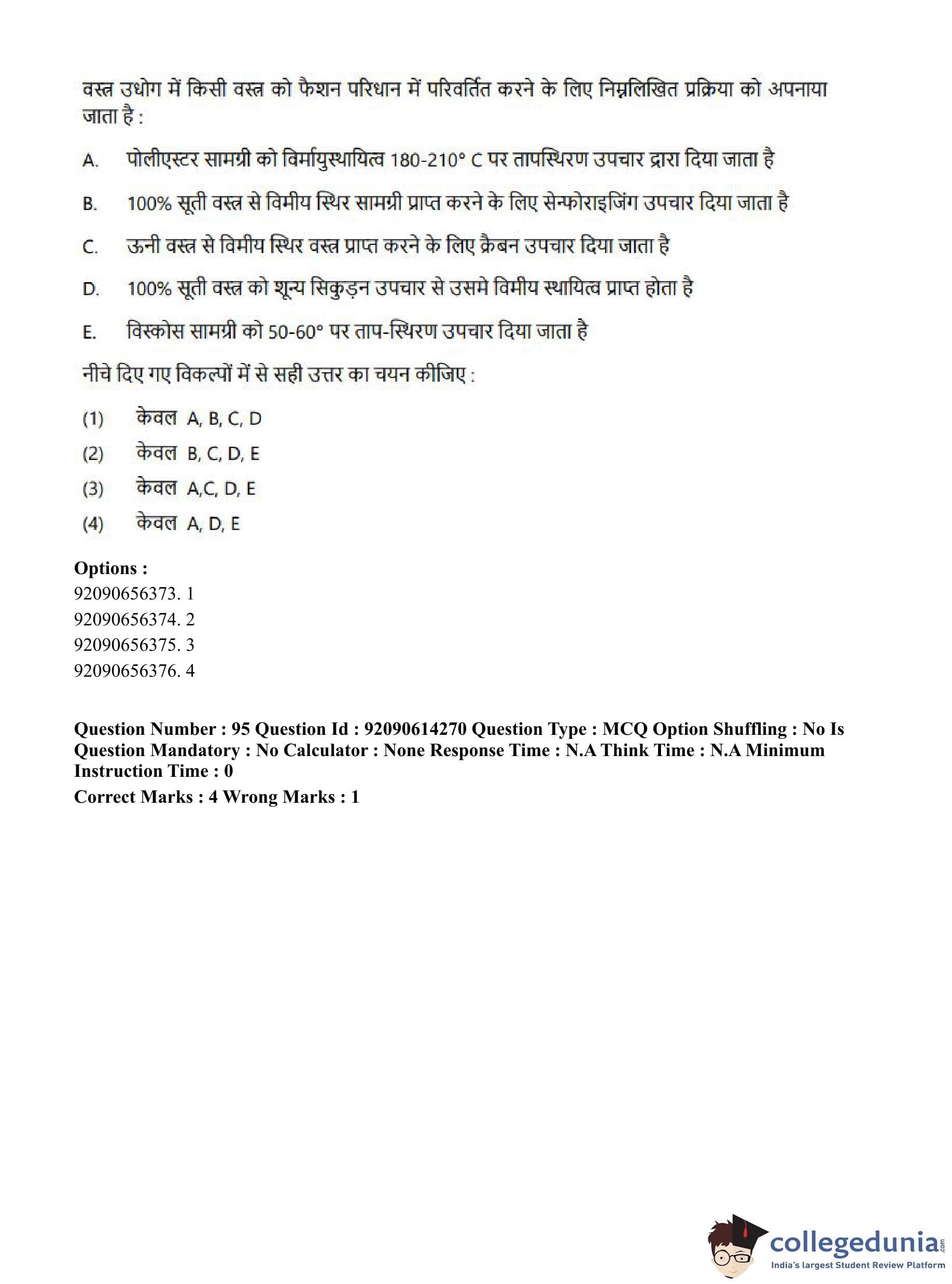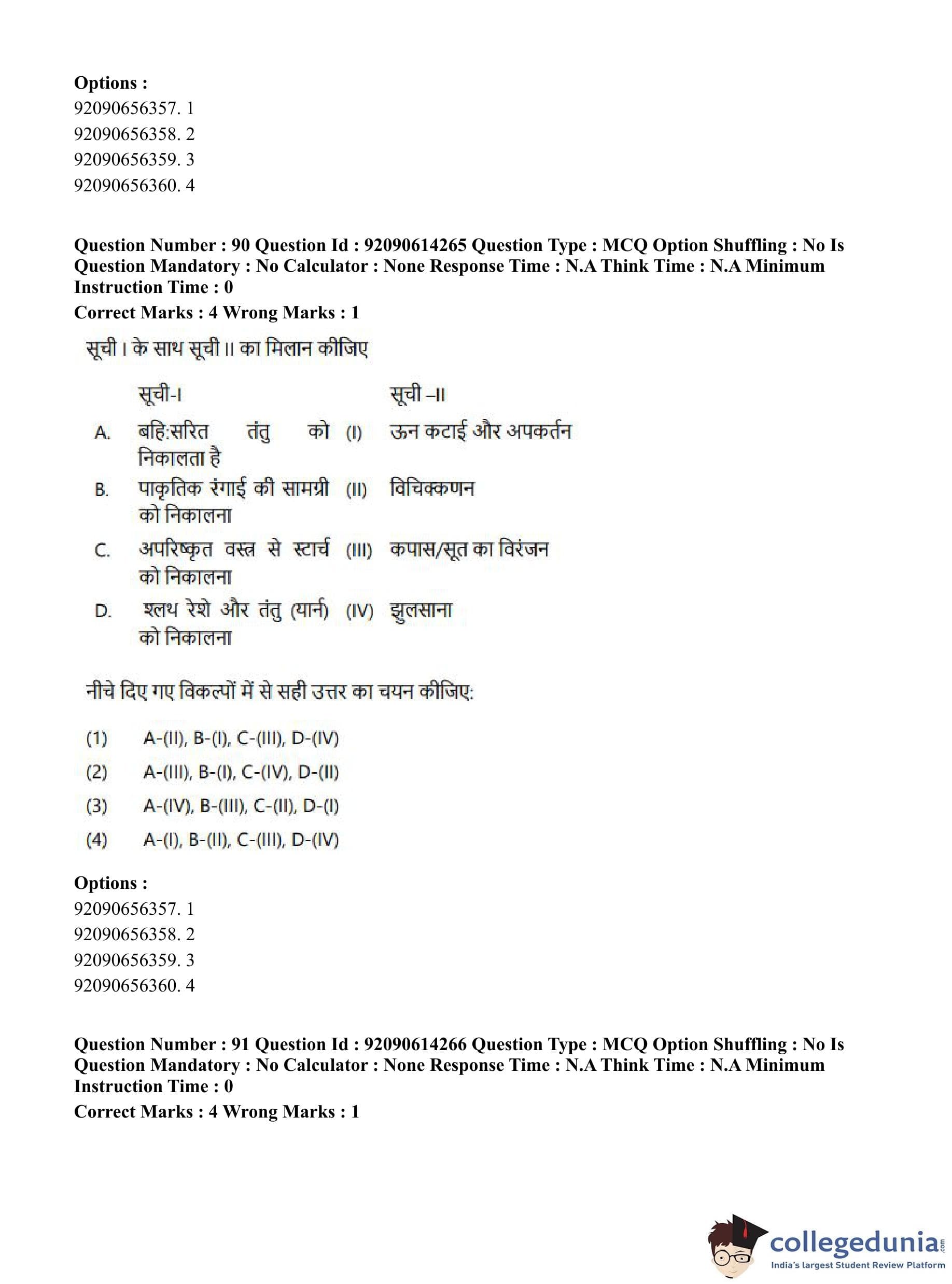 CUET PG 2023 Textile Engineering Question Paper in Hindi (June 12 - Shift 2)