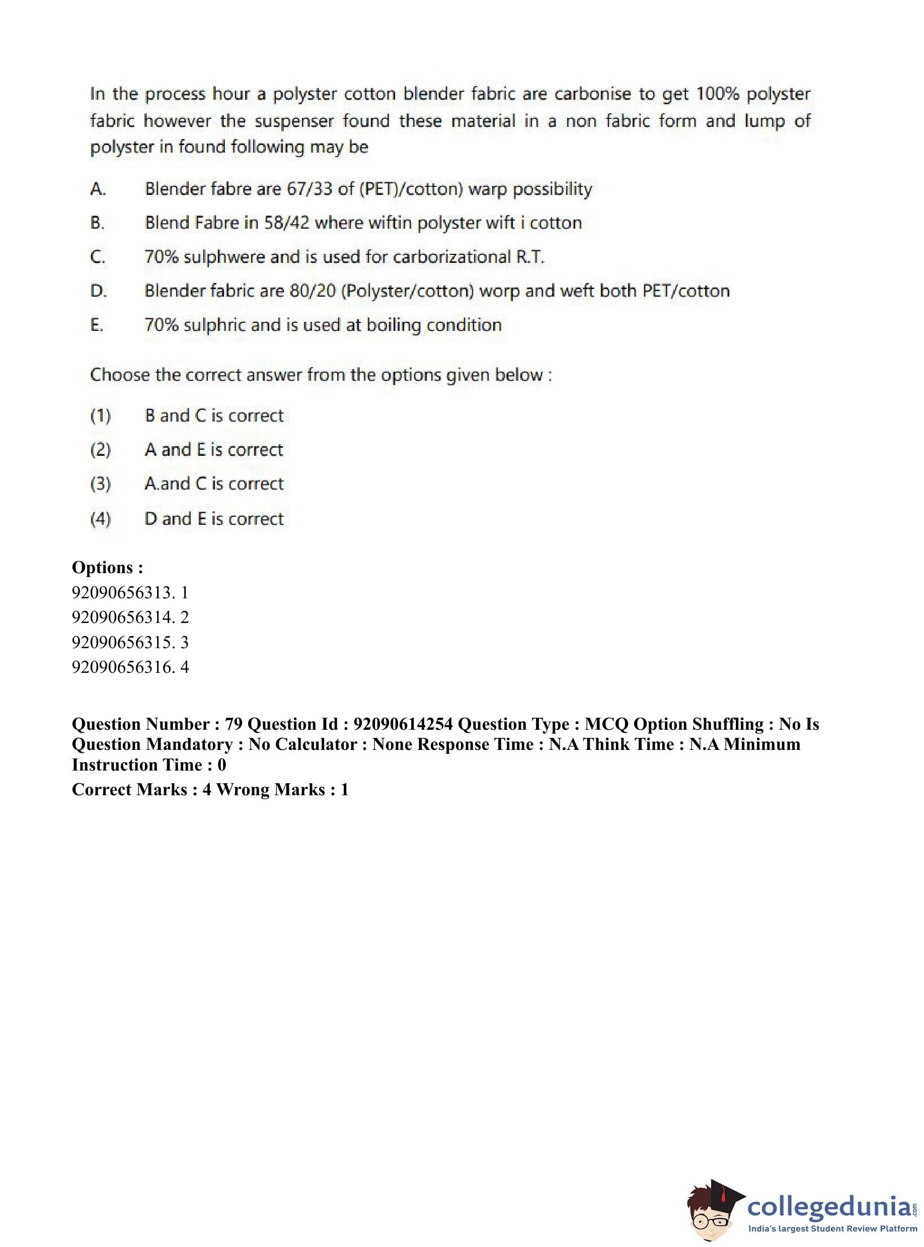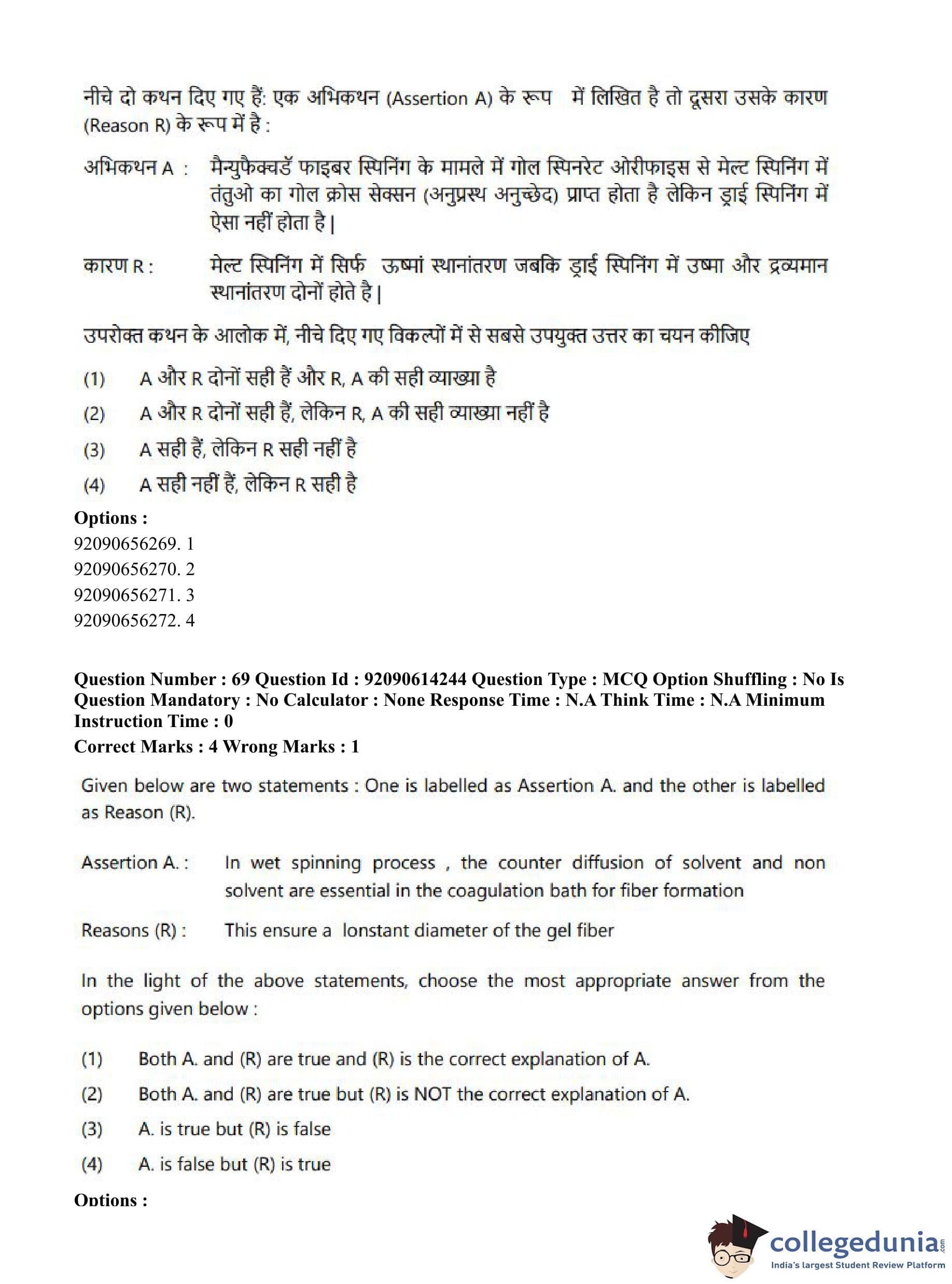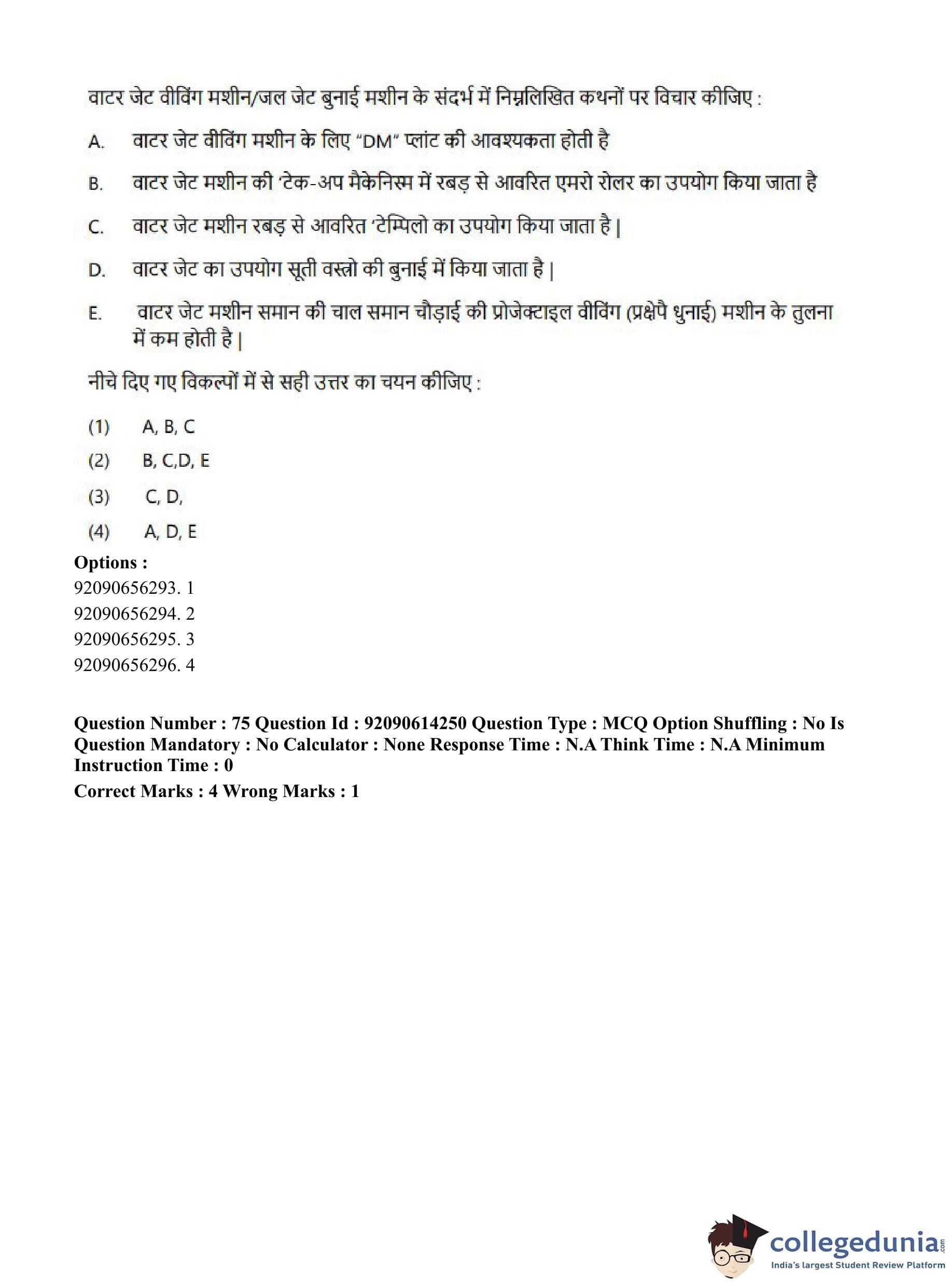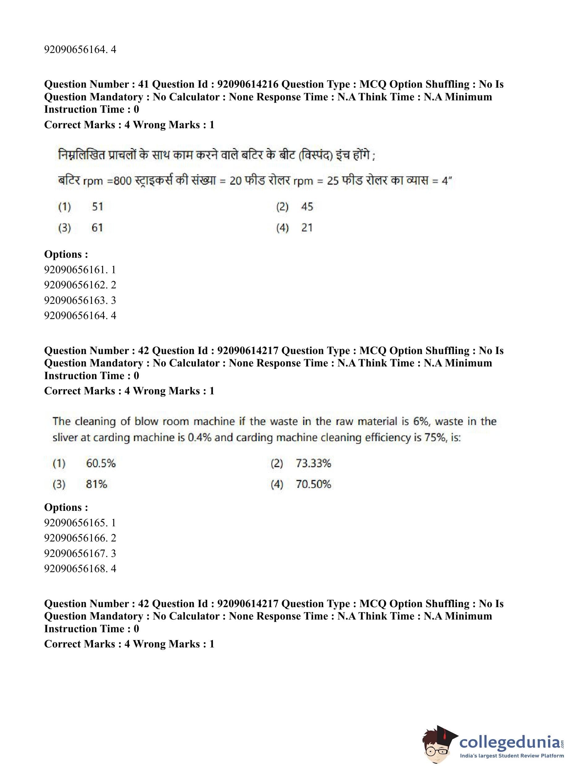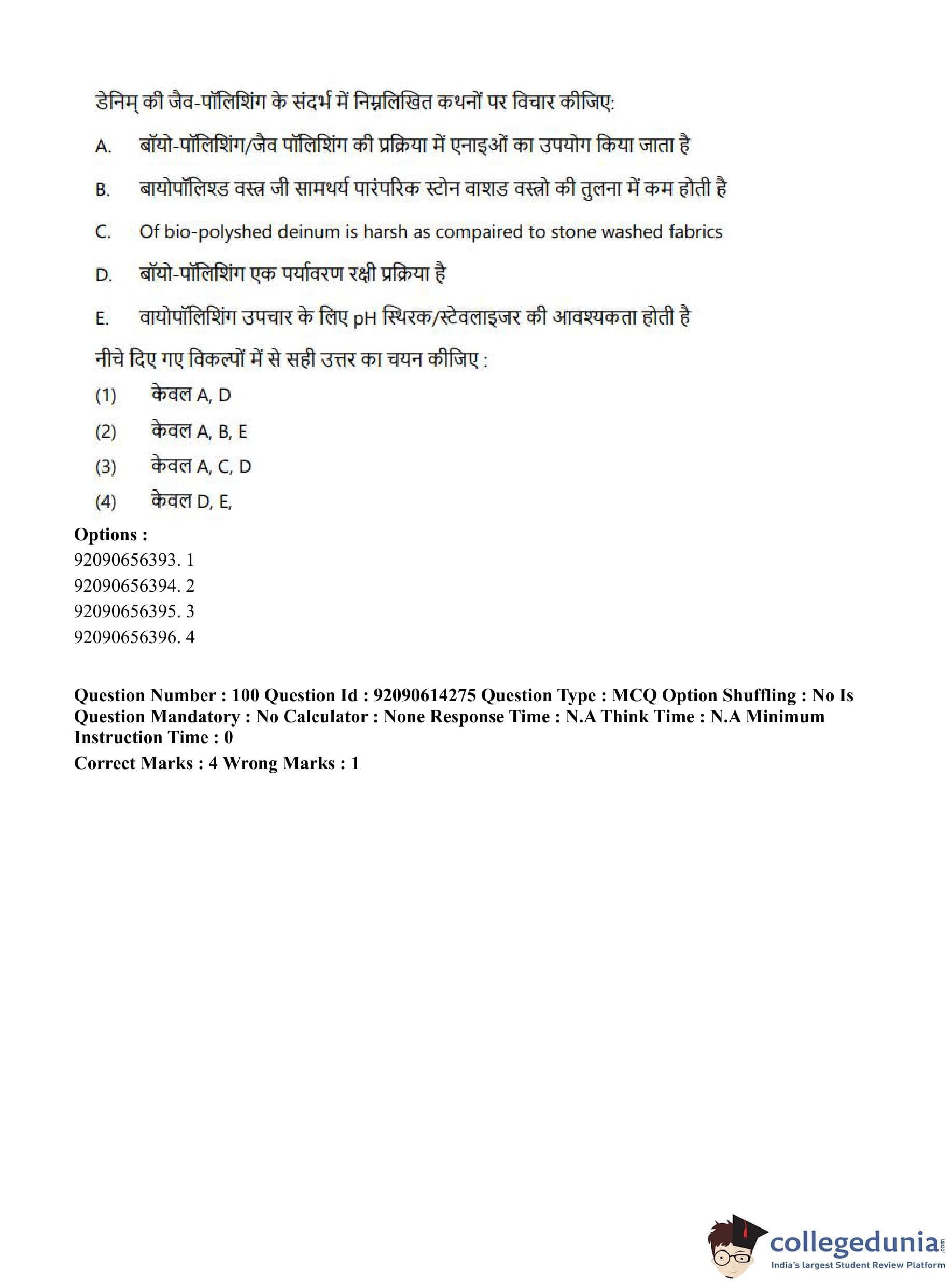 CUET PG 2023 Textile Engineering Question Paper in Hindi (June 12 - Shift 2)