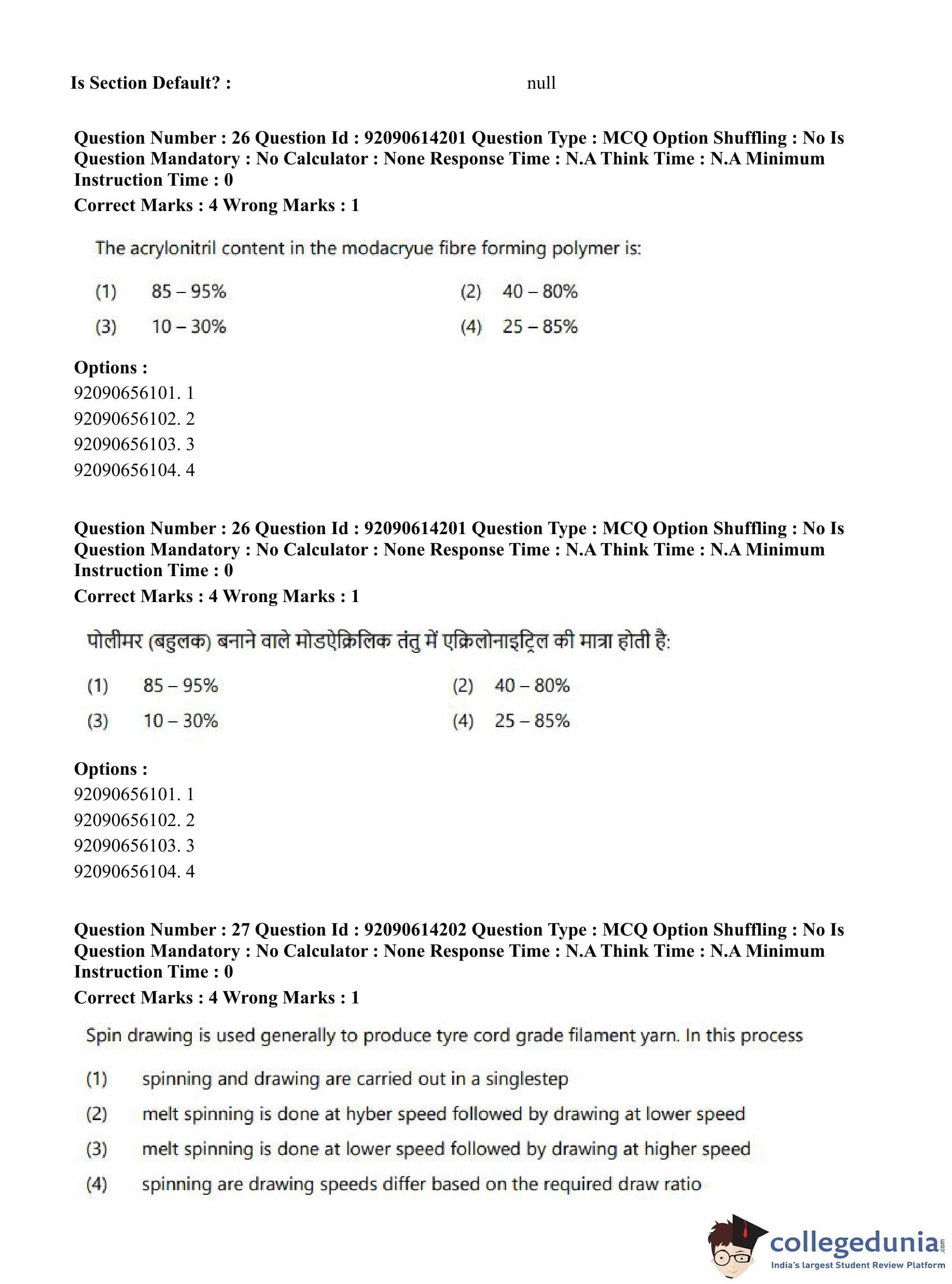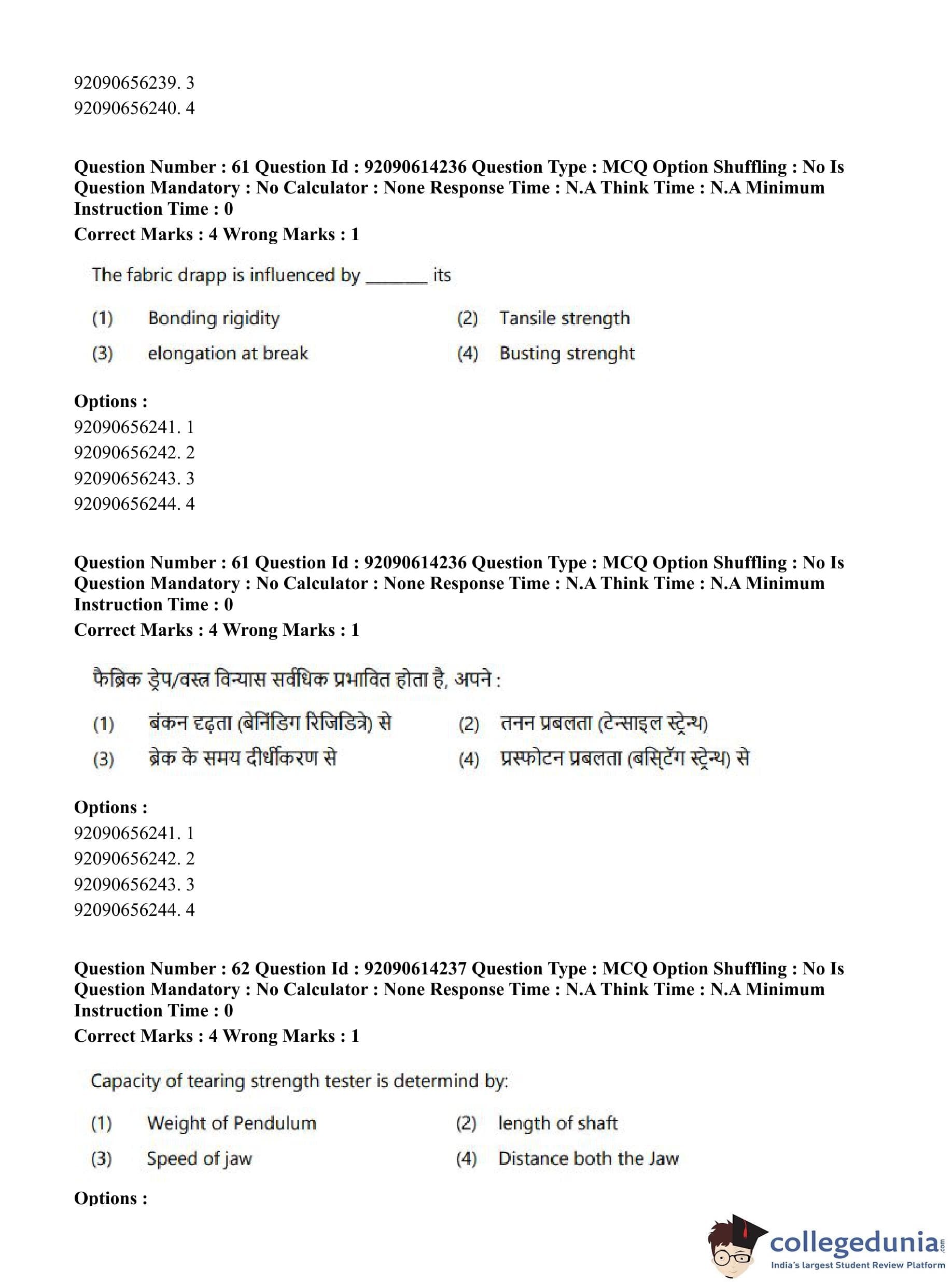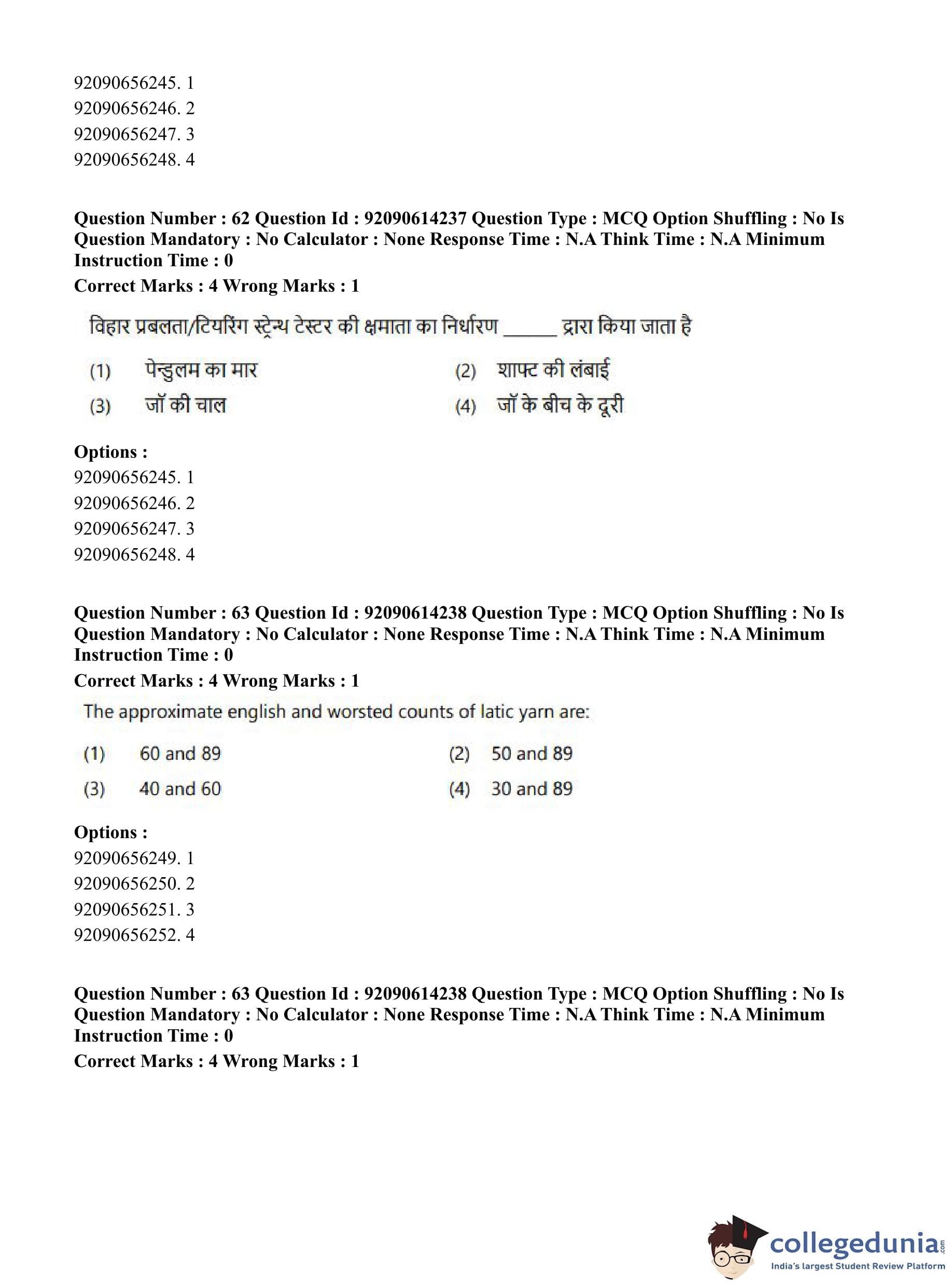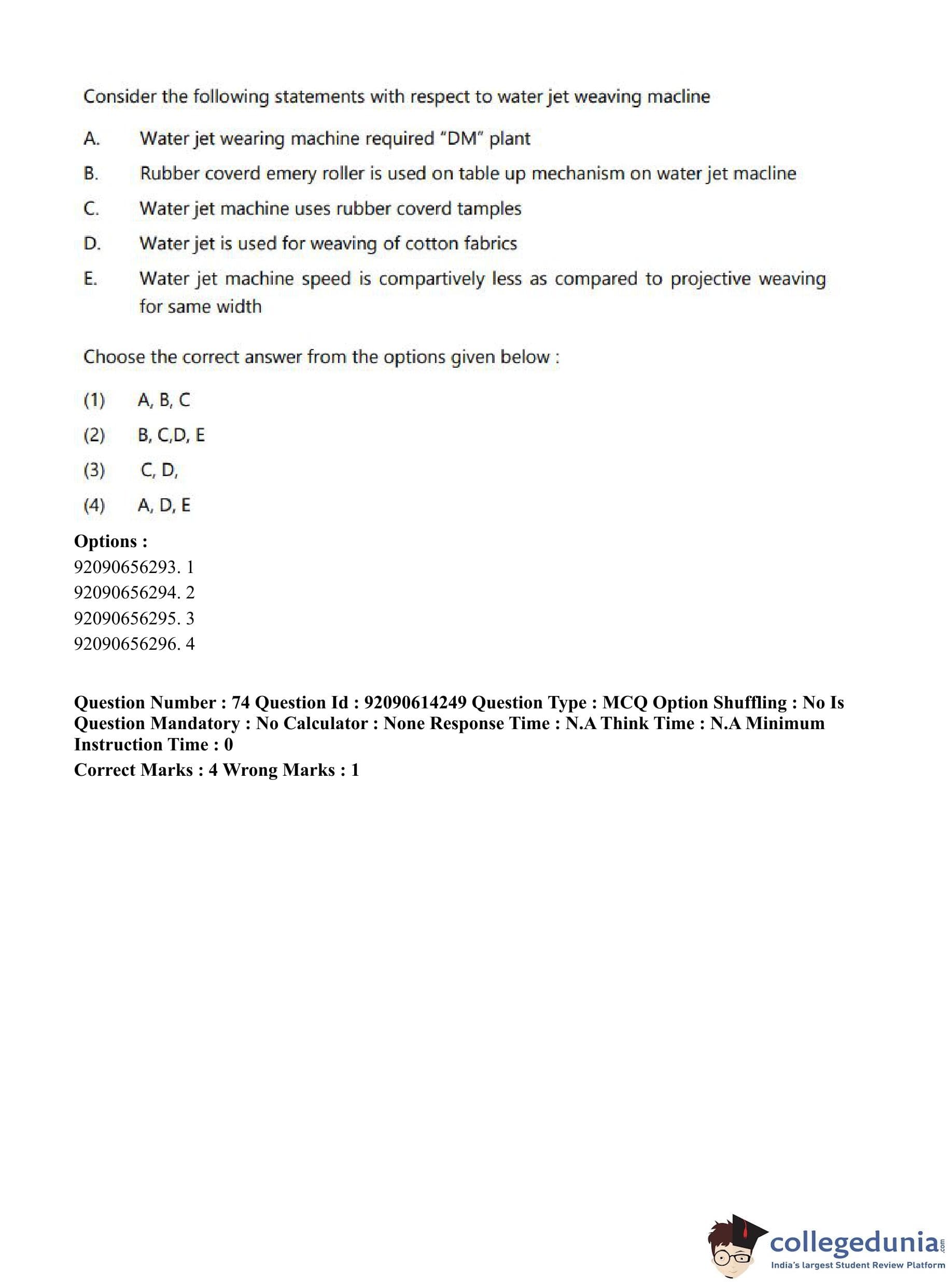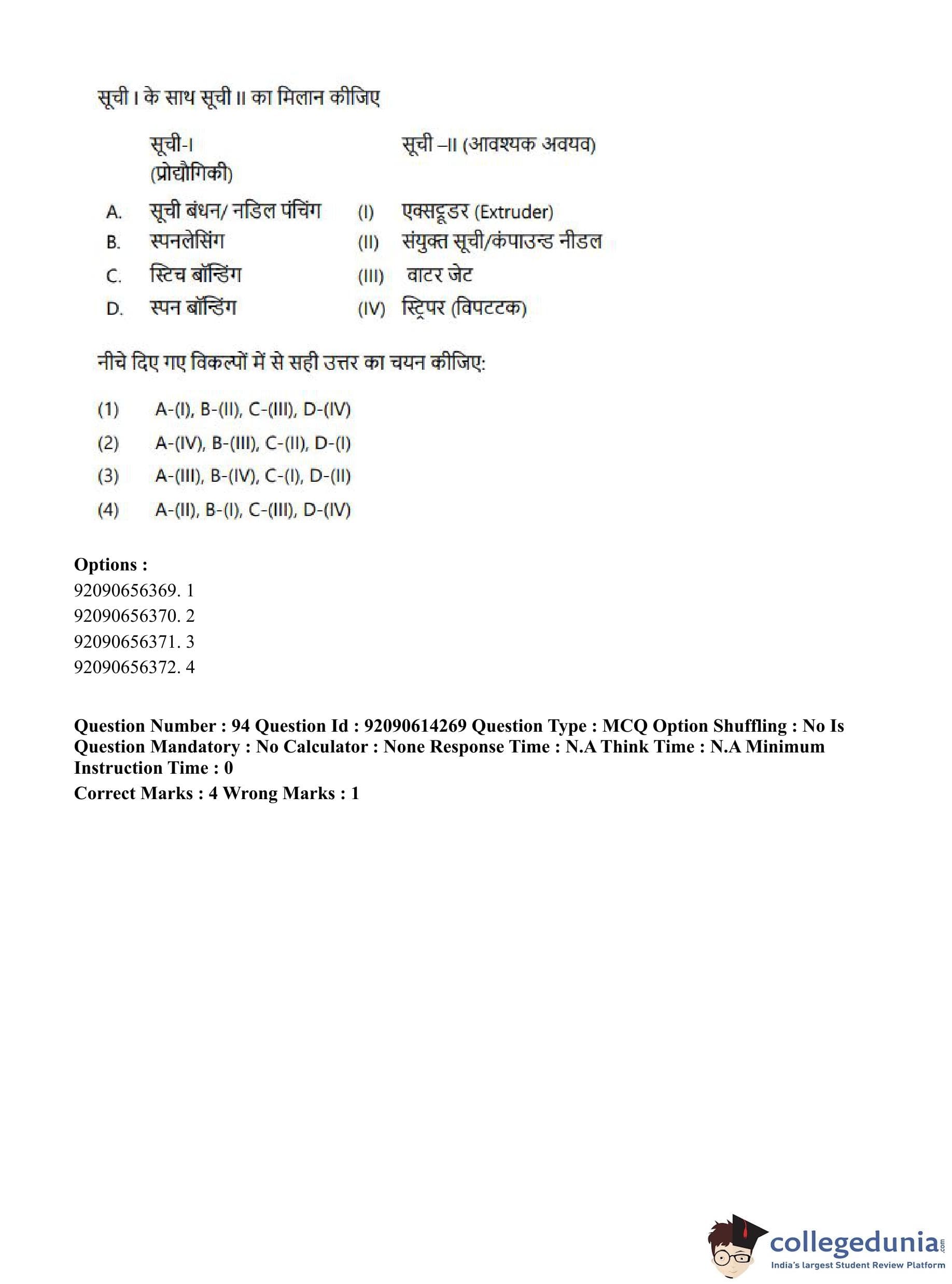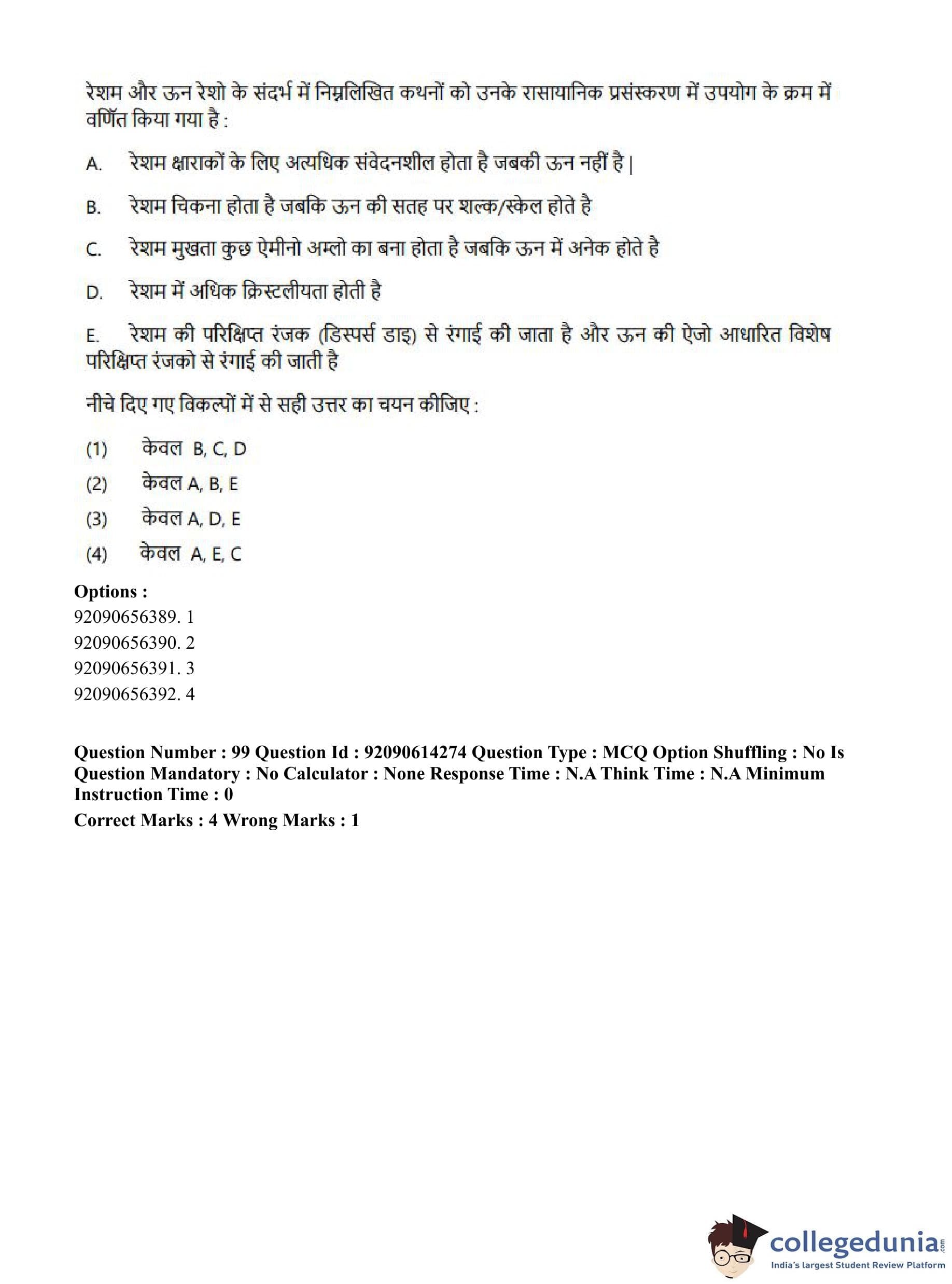 CUET PG 2023 Textile Engineering Question Paper in Hindi (June 12 - Shift 2)