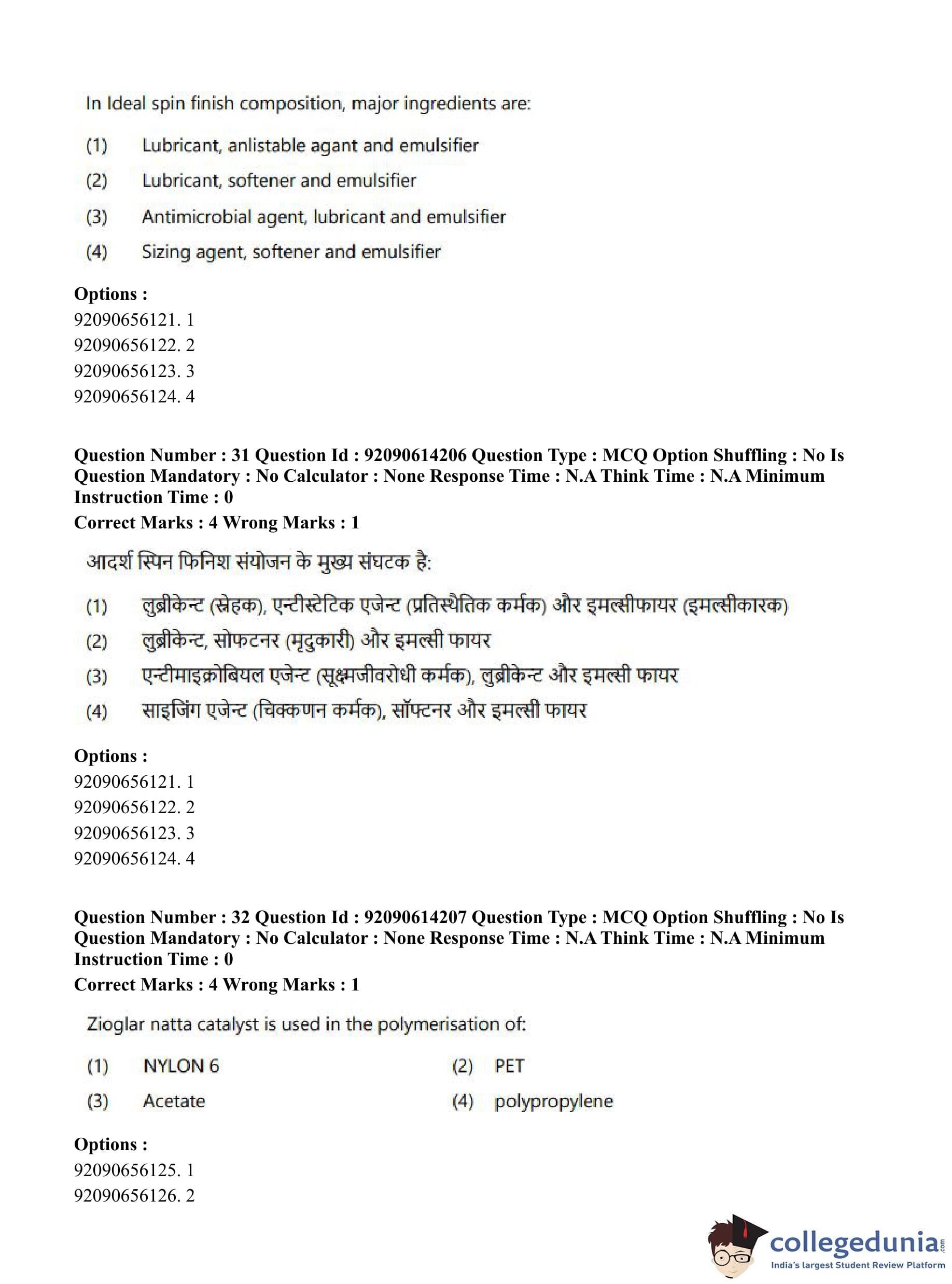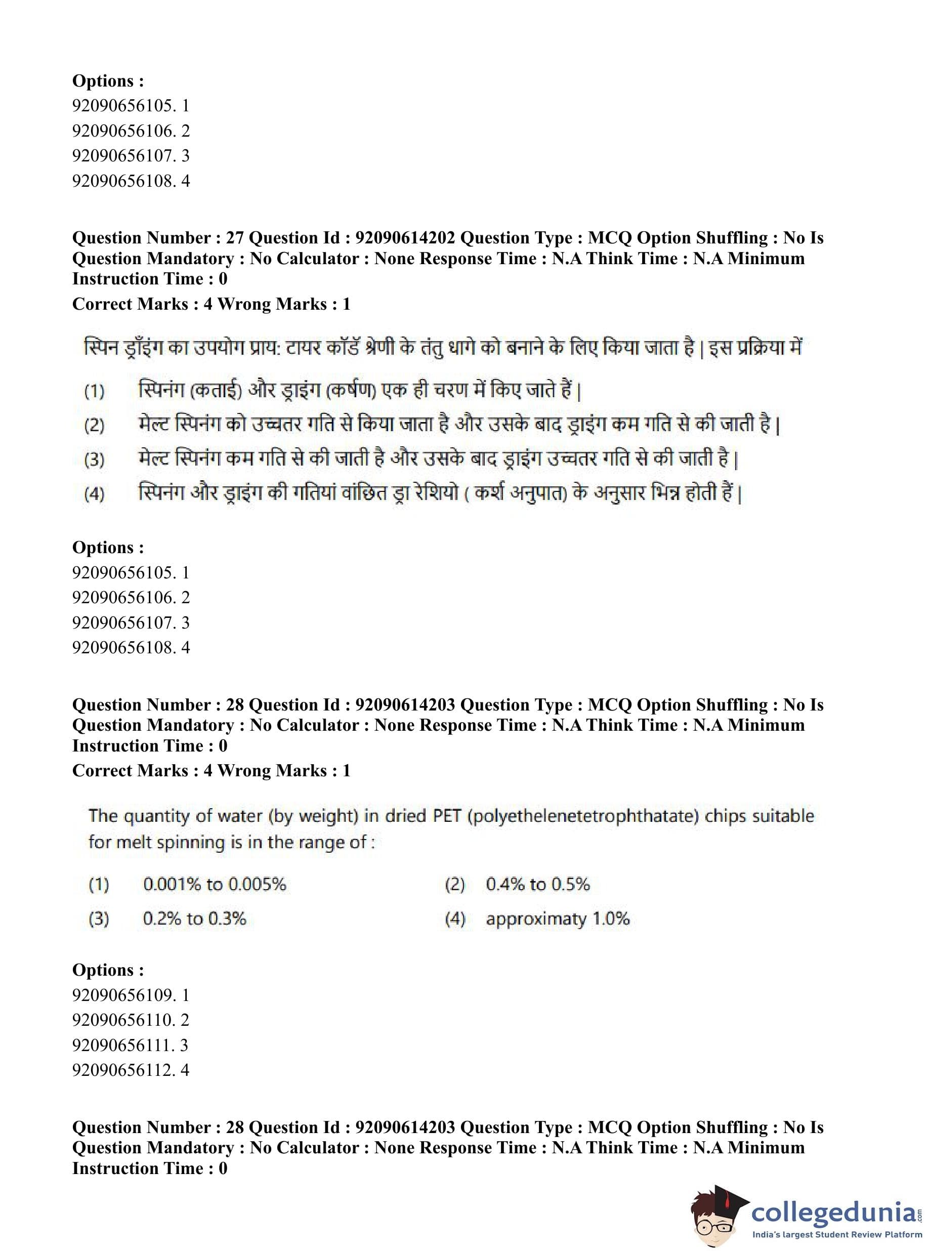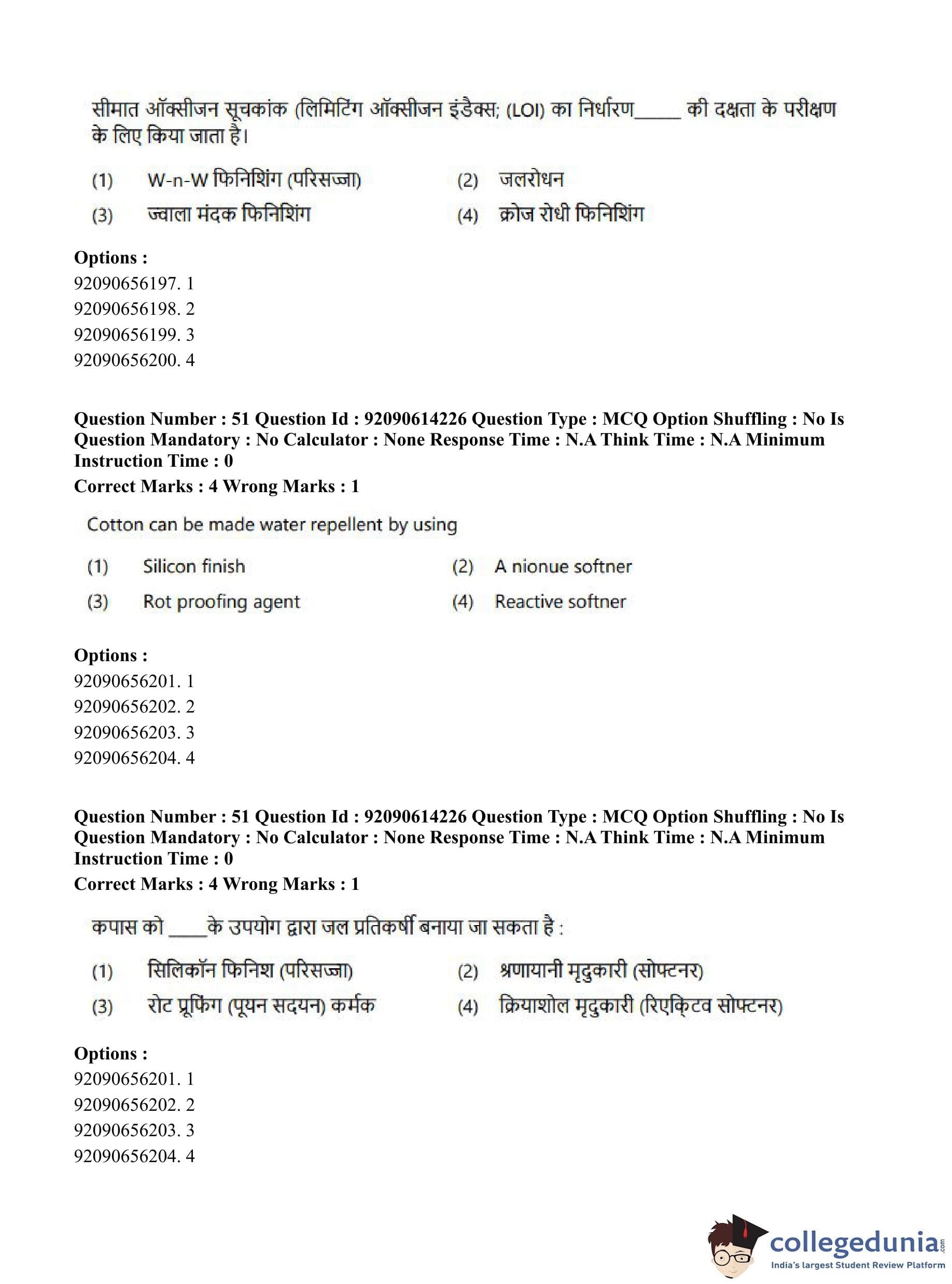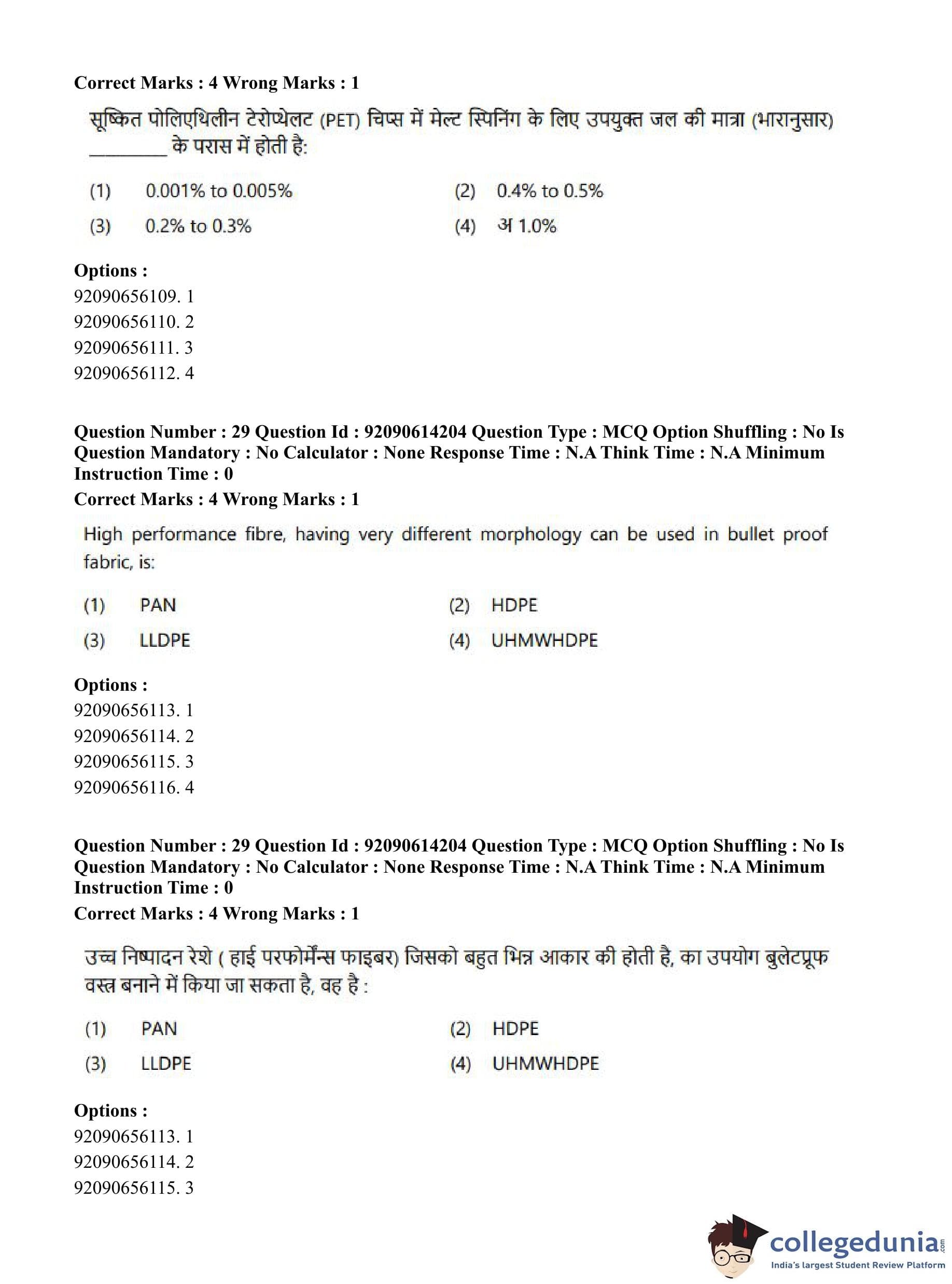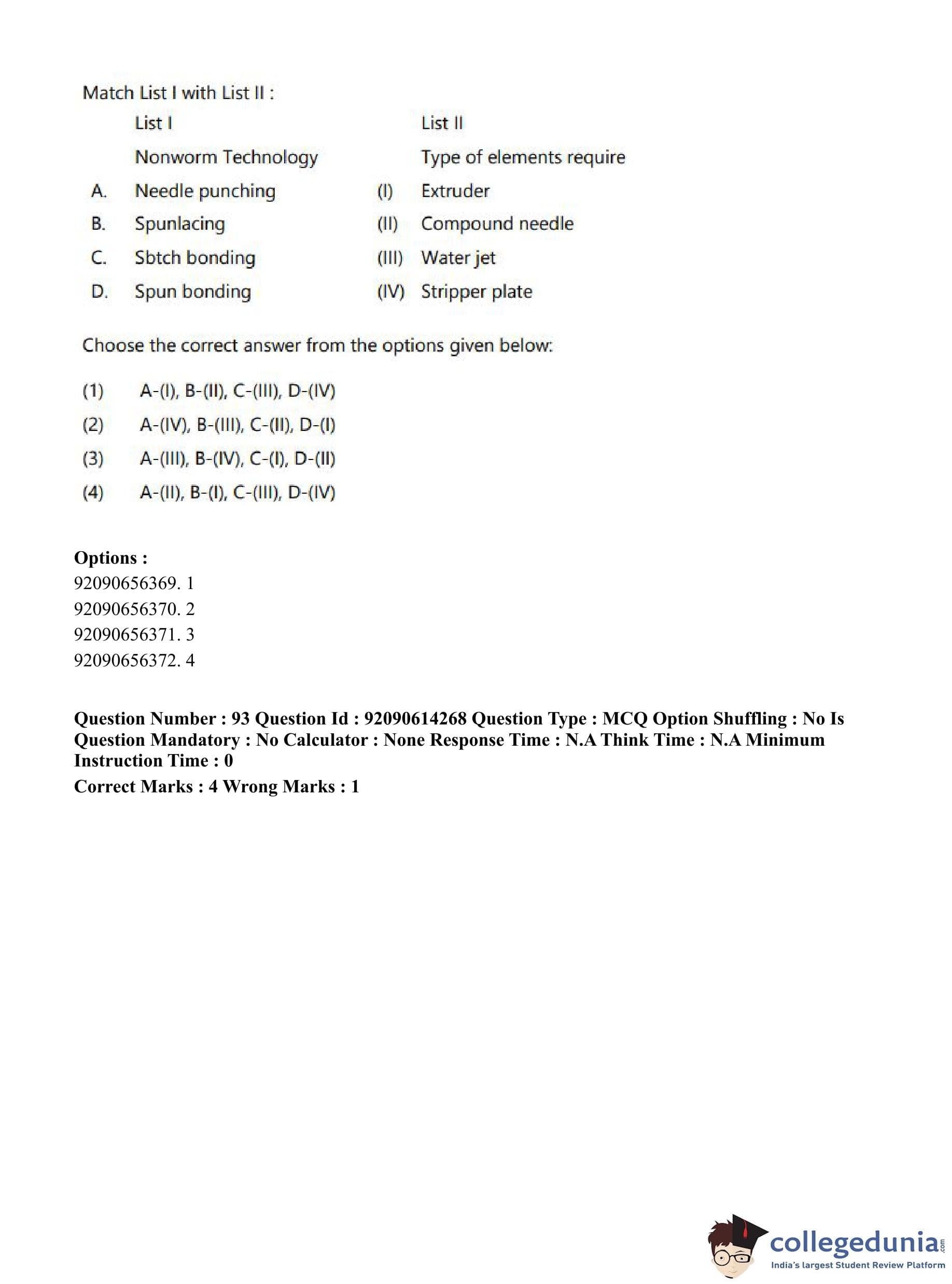 CUET PG 2023 Textile Engineering Question Paper in Hindi (June 12 - Shift 2)