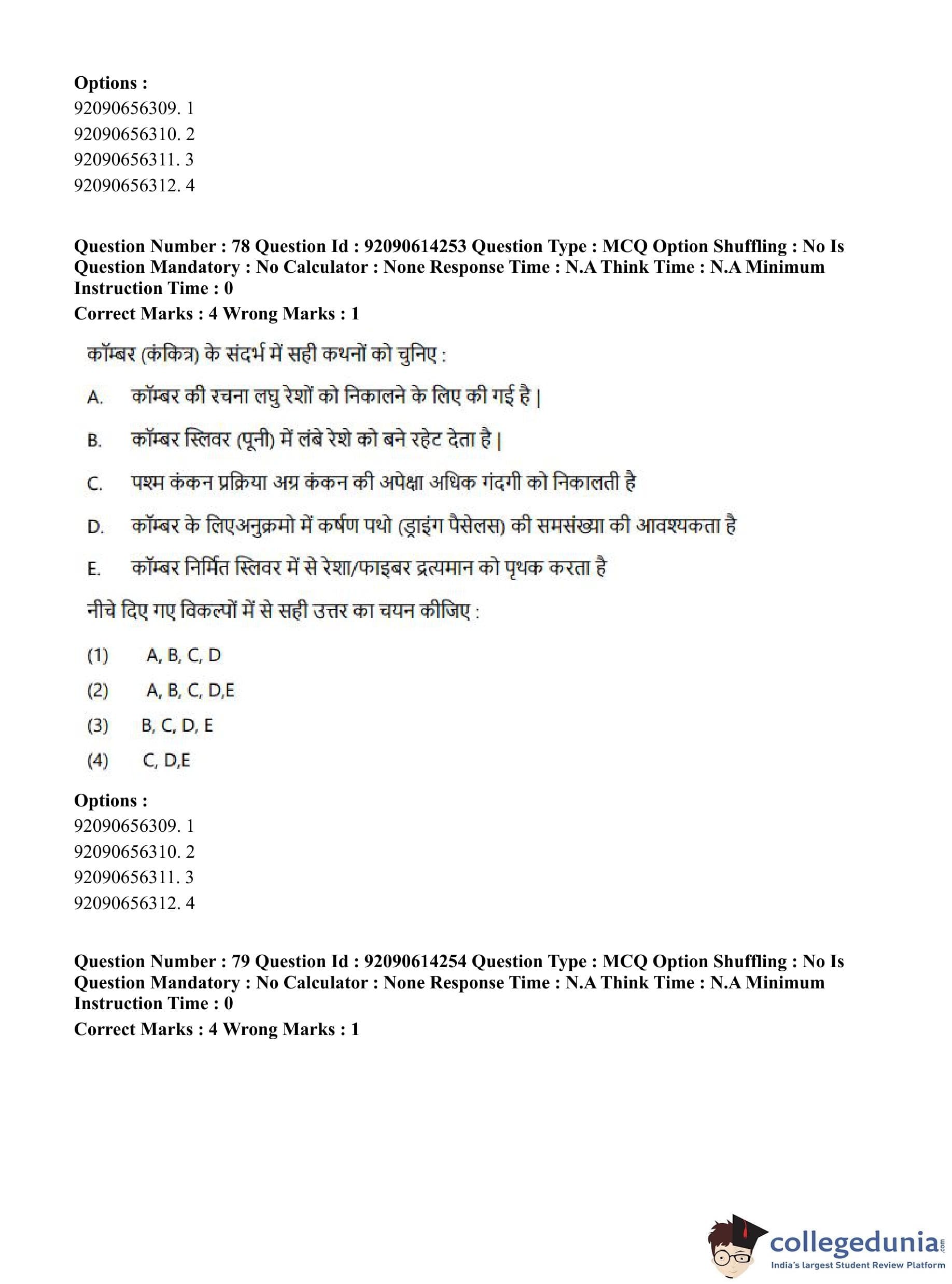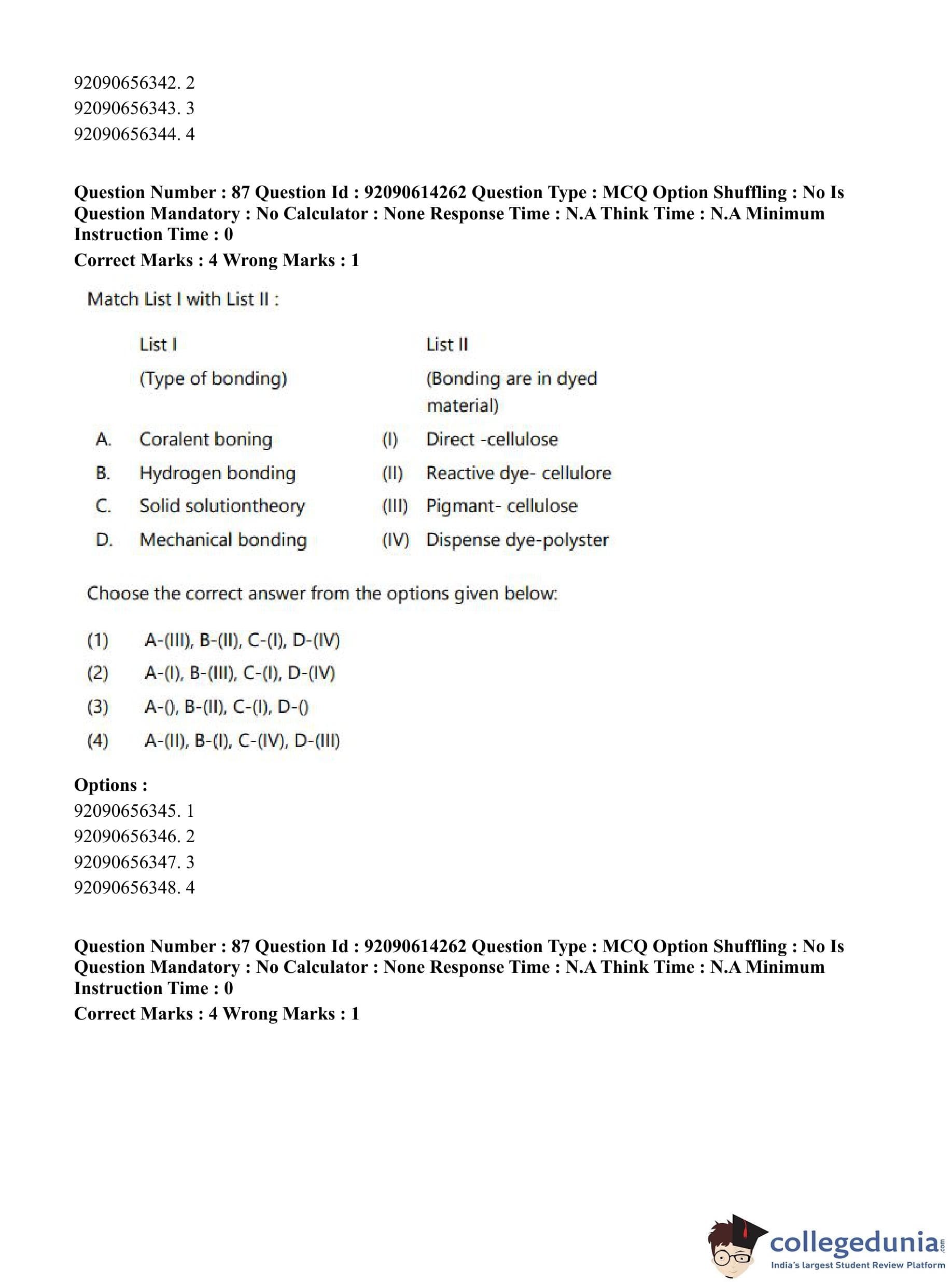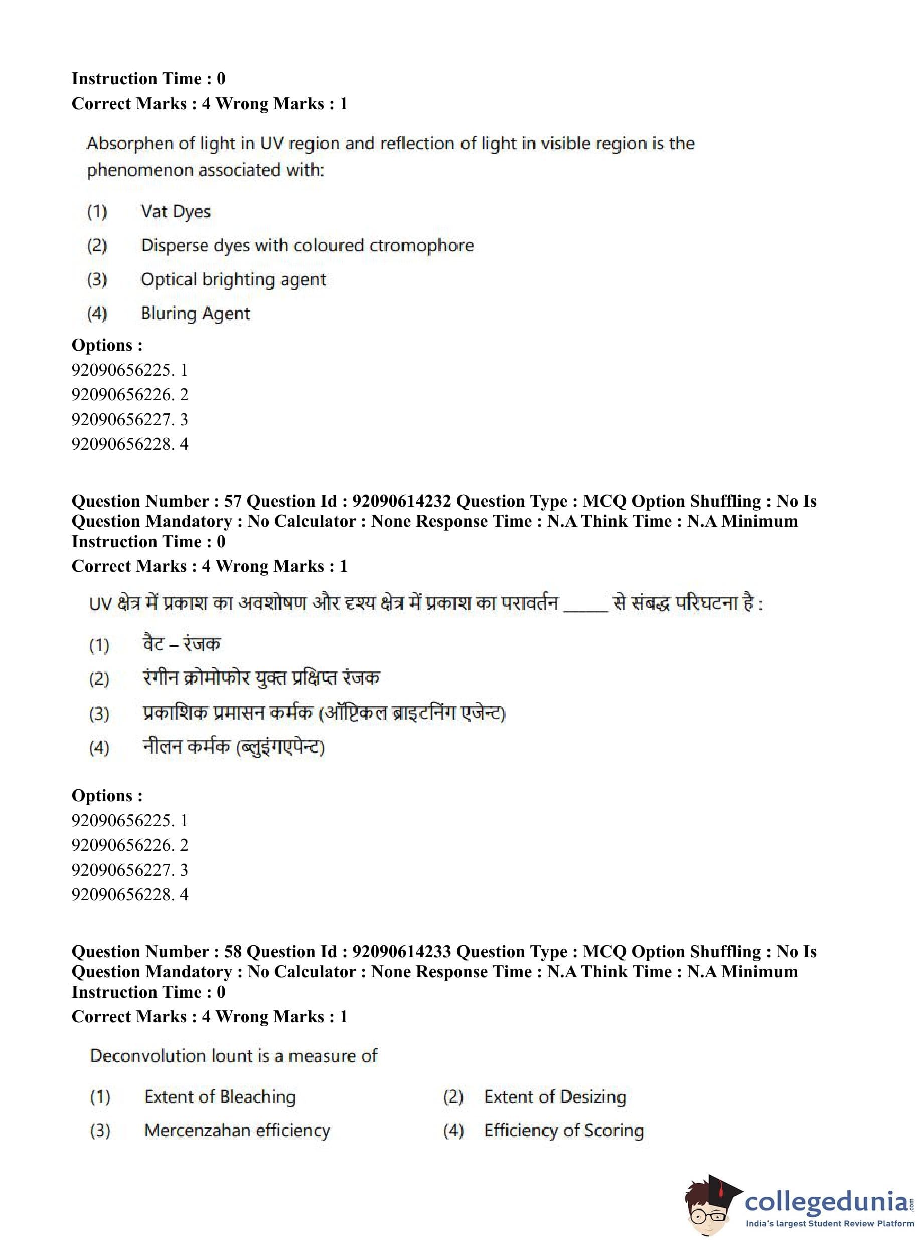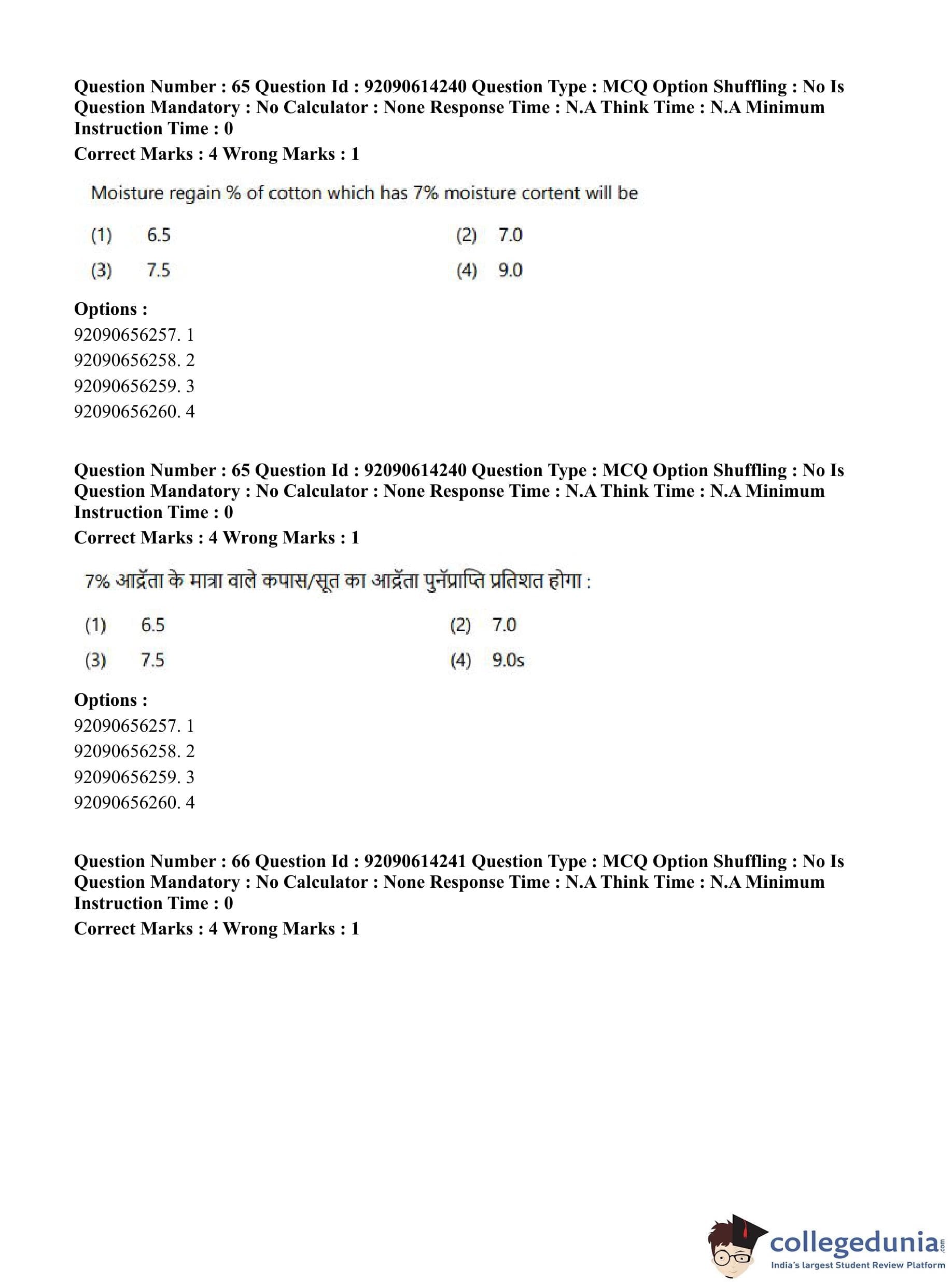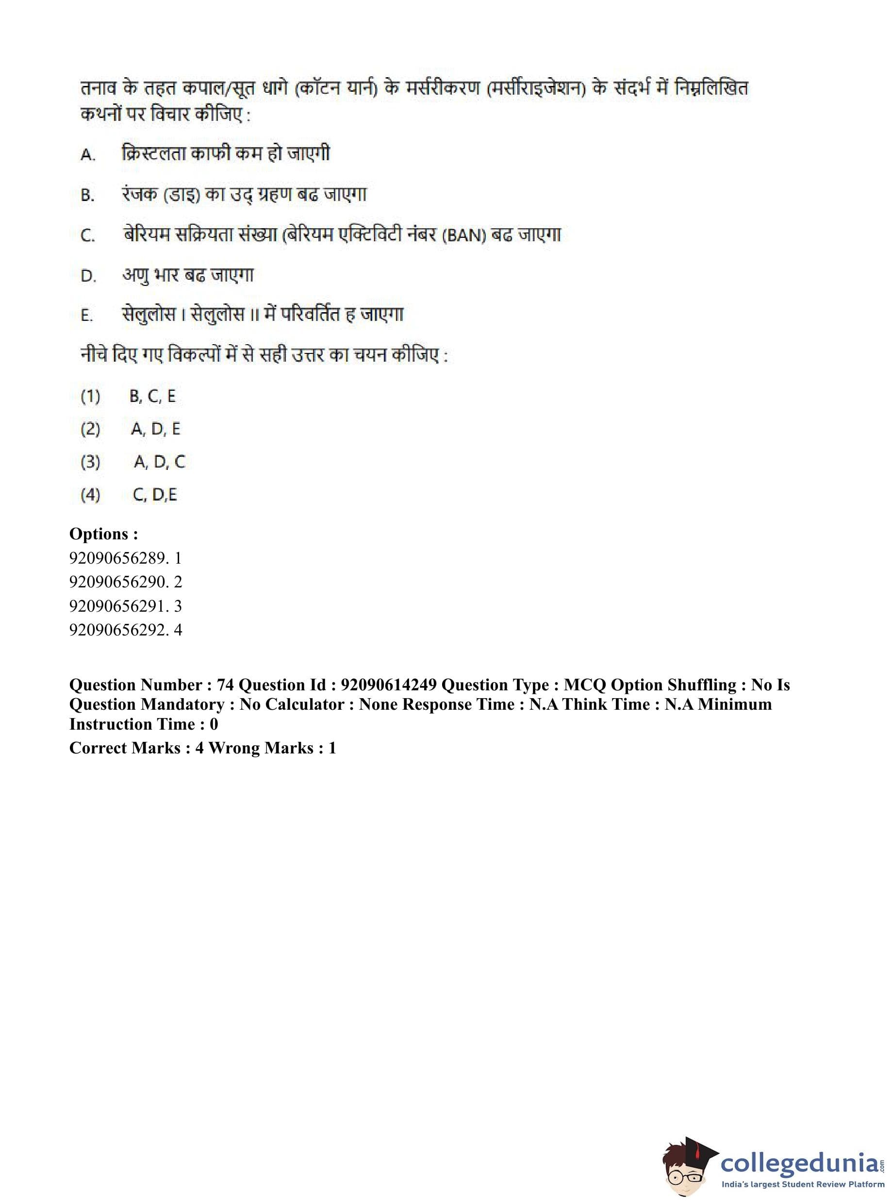 CUET PG 2023 Textile Engineering Question Paper in Hindi (June 12 - Shift 2)