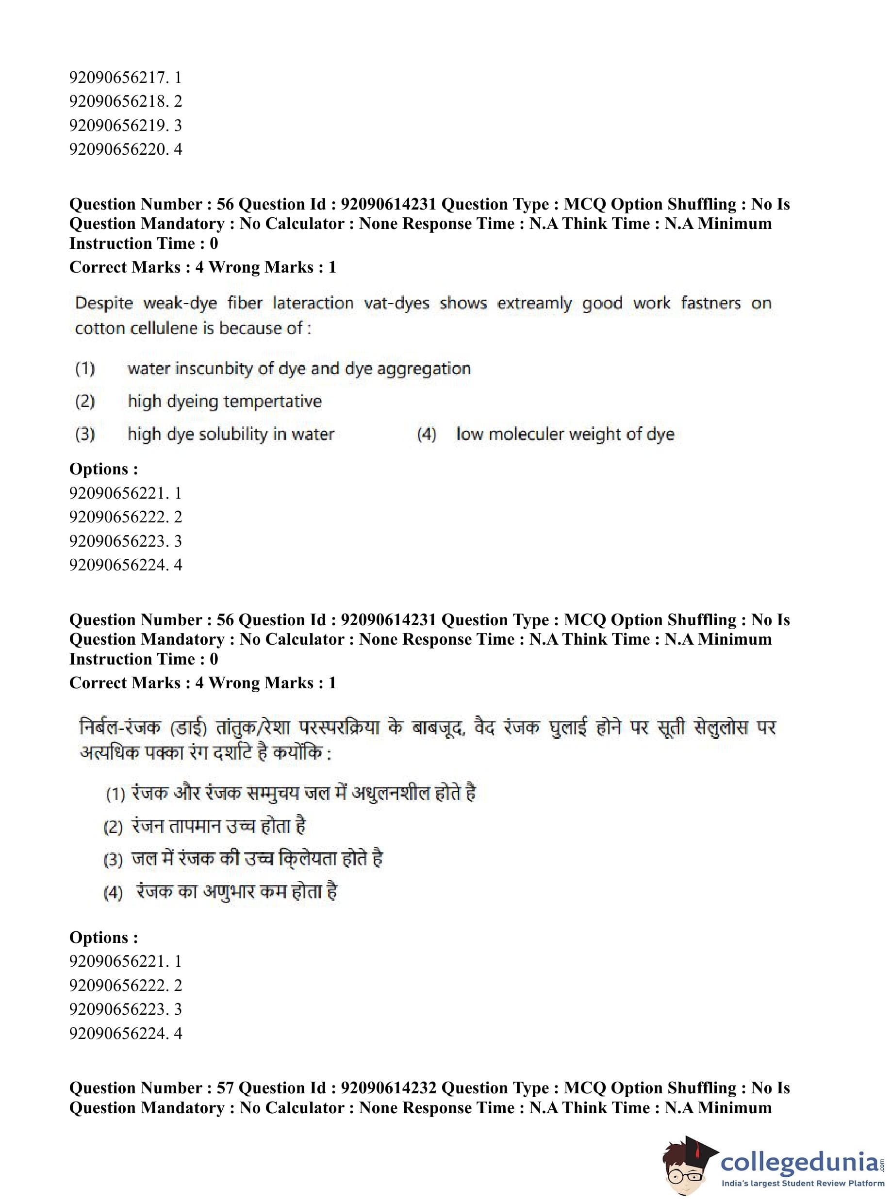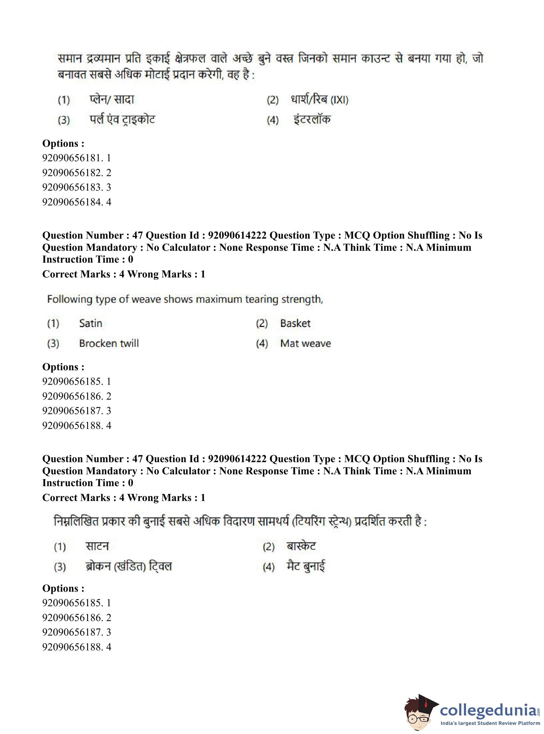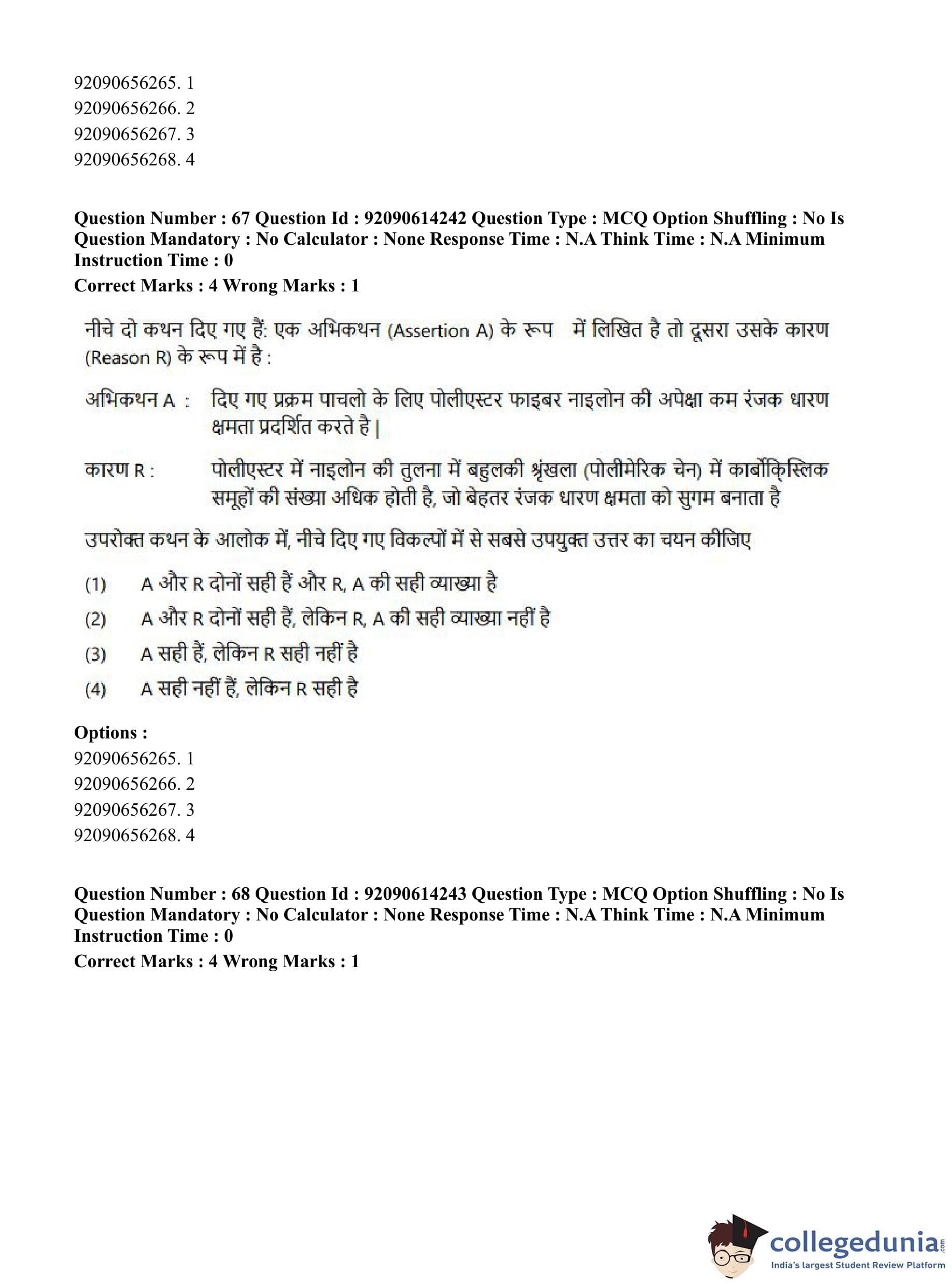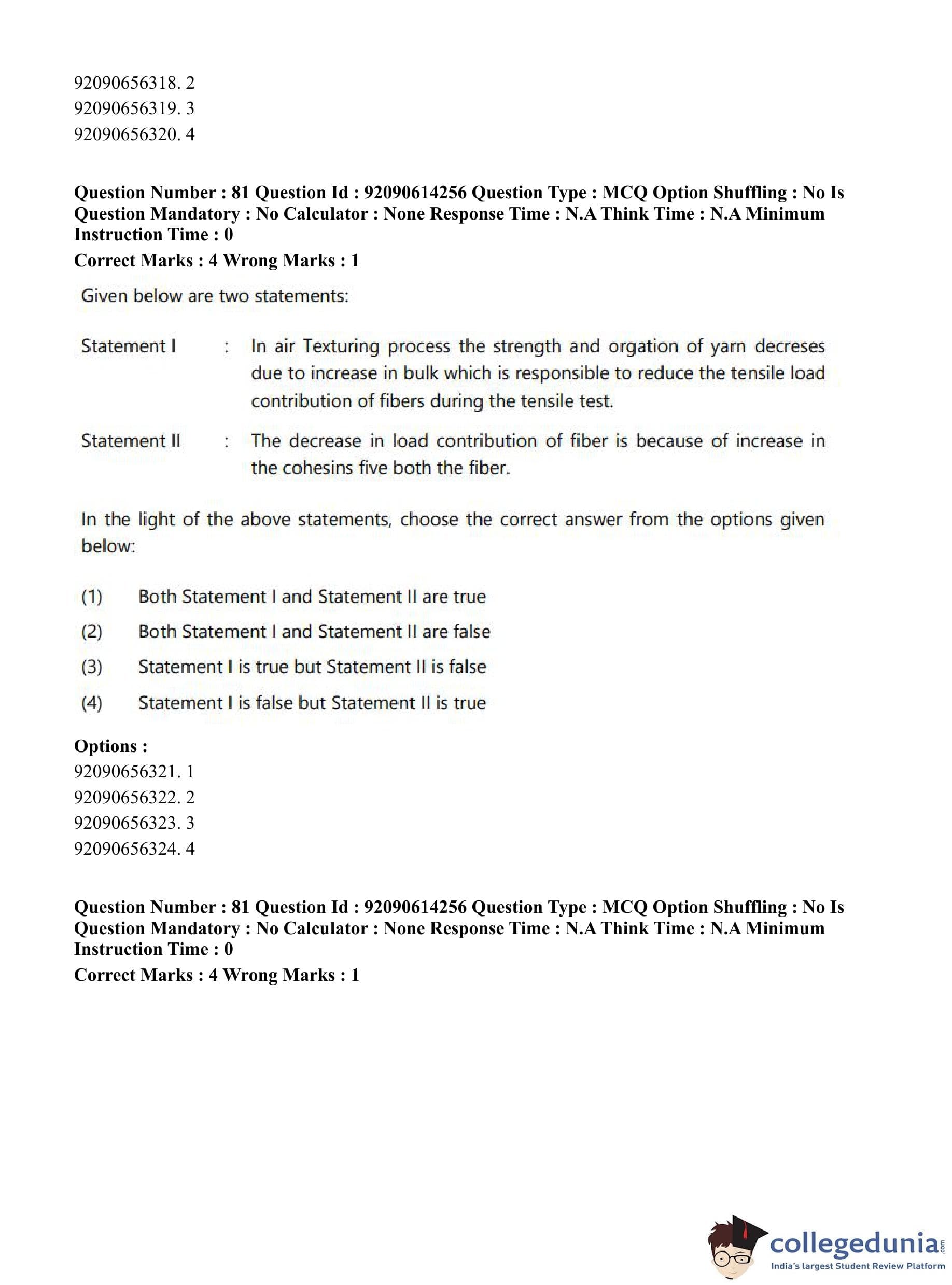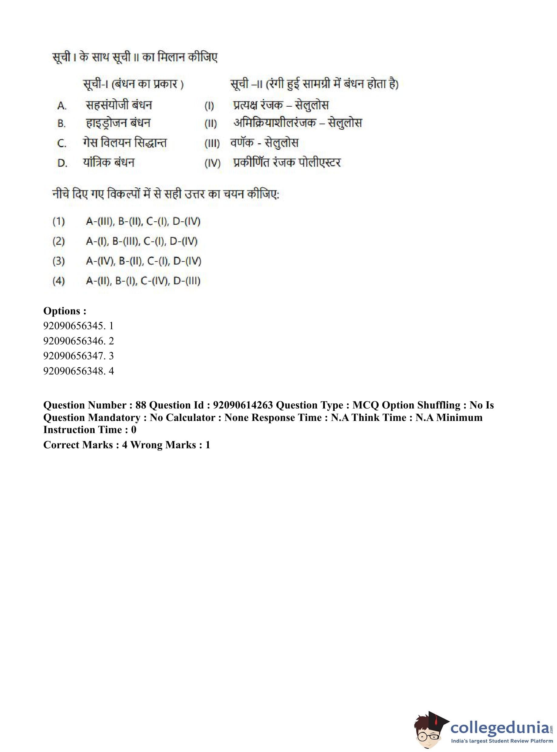 CUET PG 2023 Textile Engineering Question Paper in Hindi (June 12 - Shift 2)