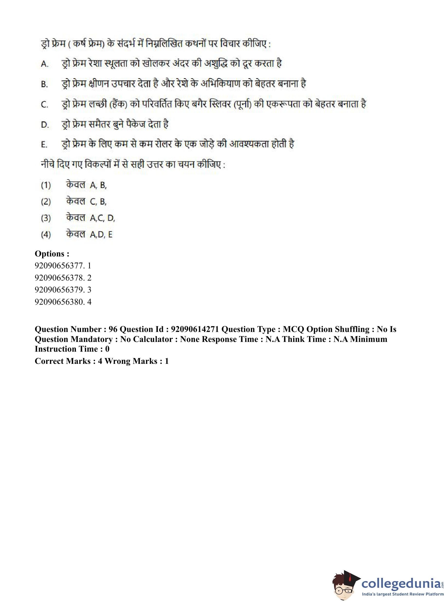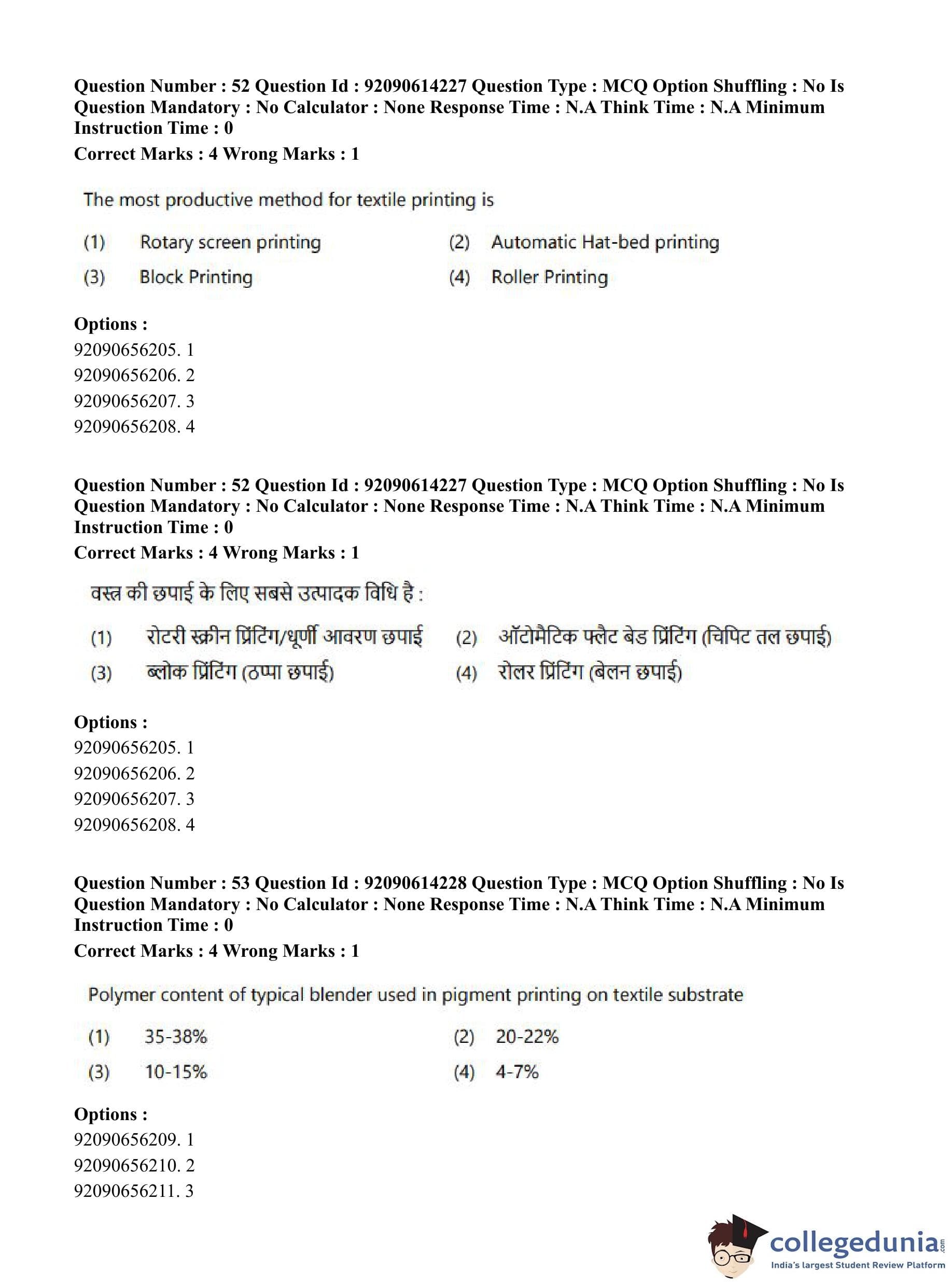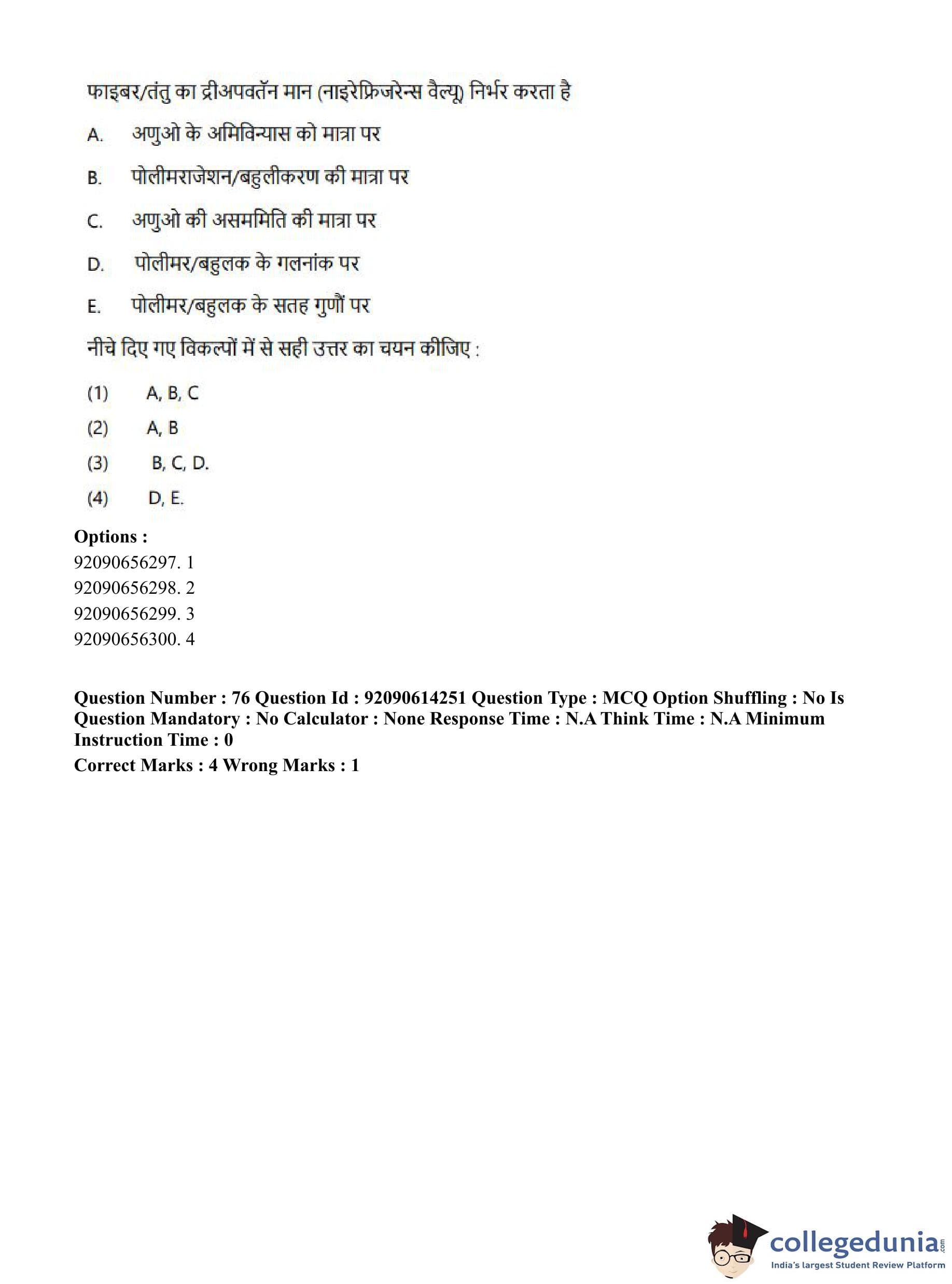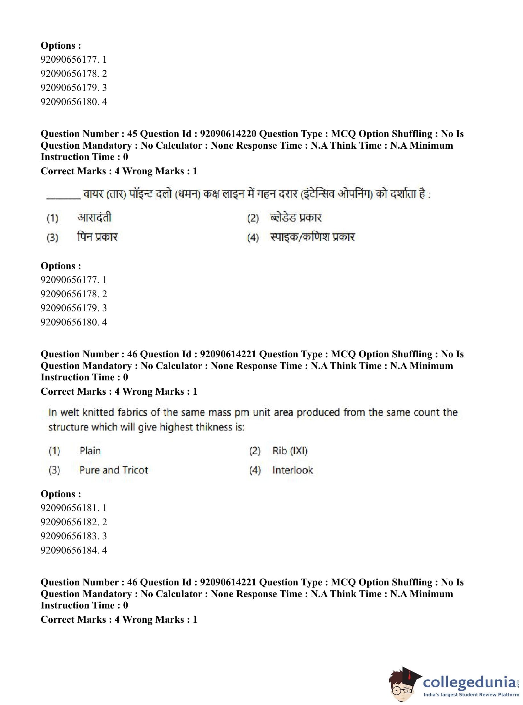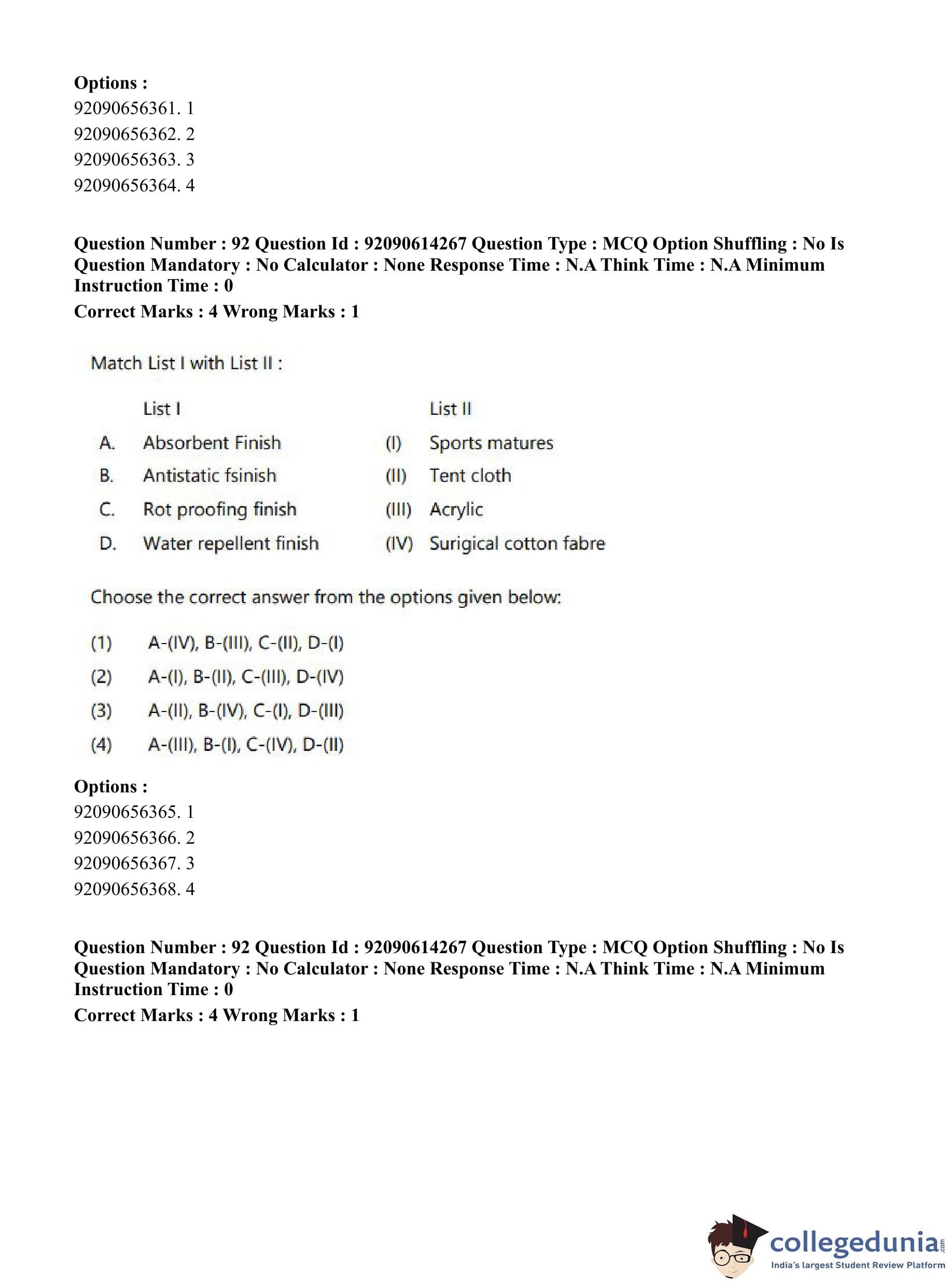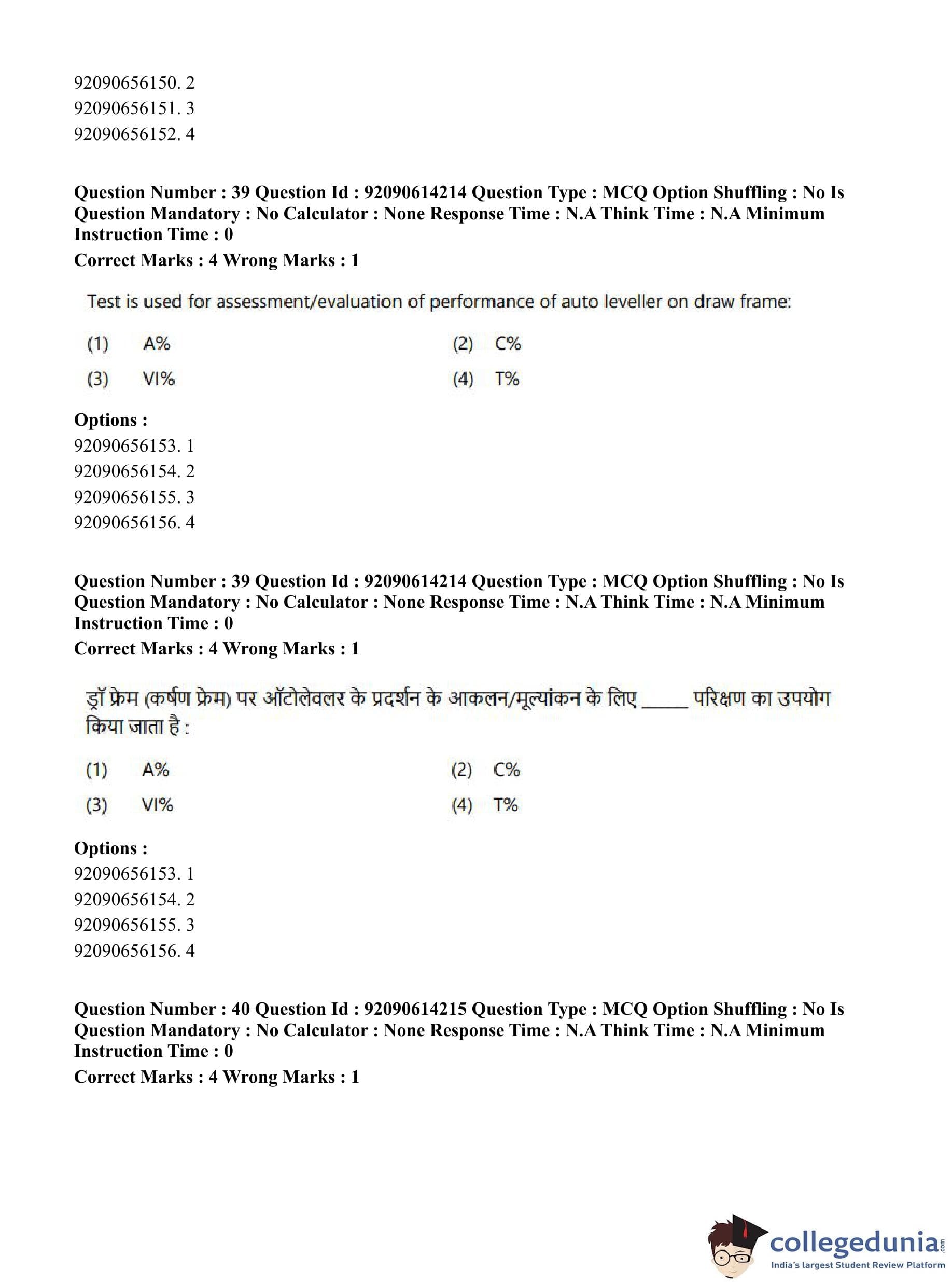 CUET PG 2023 Textile Engineering Question Paper in Hindi (June 12 - Shift 2)