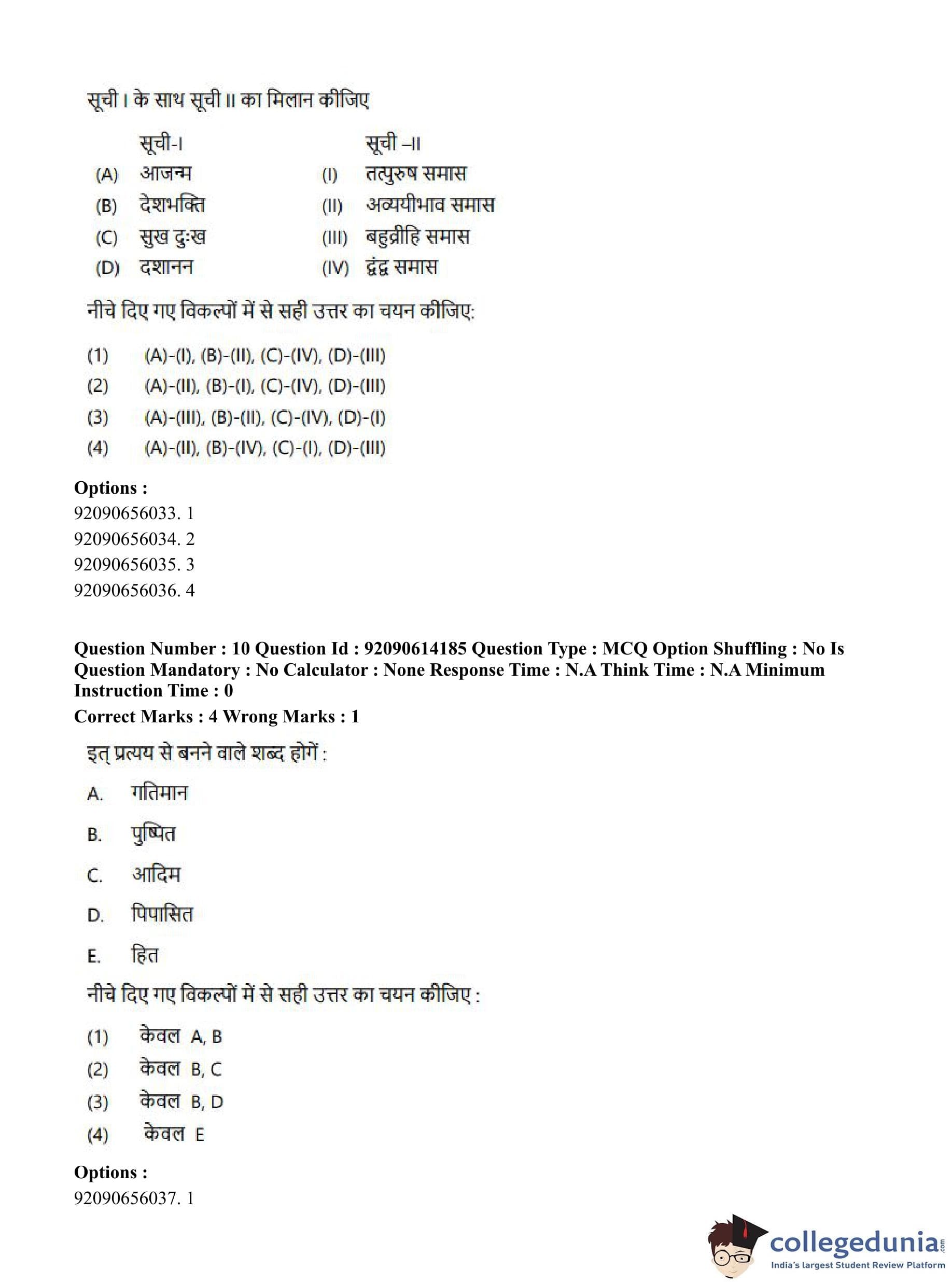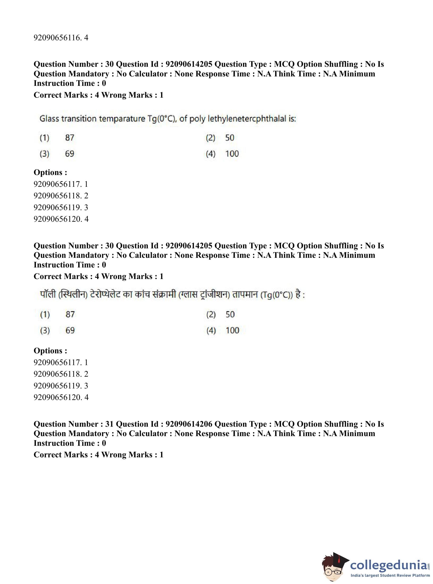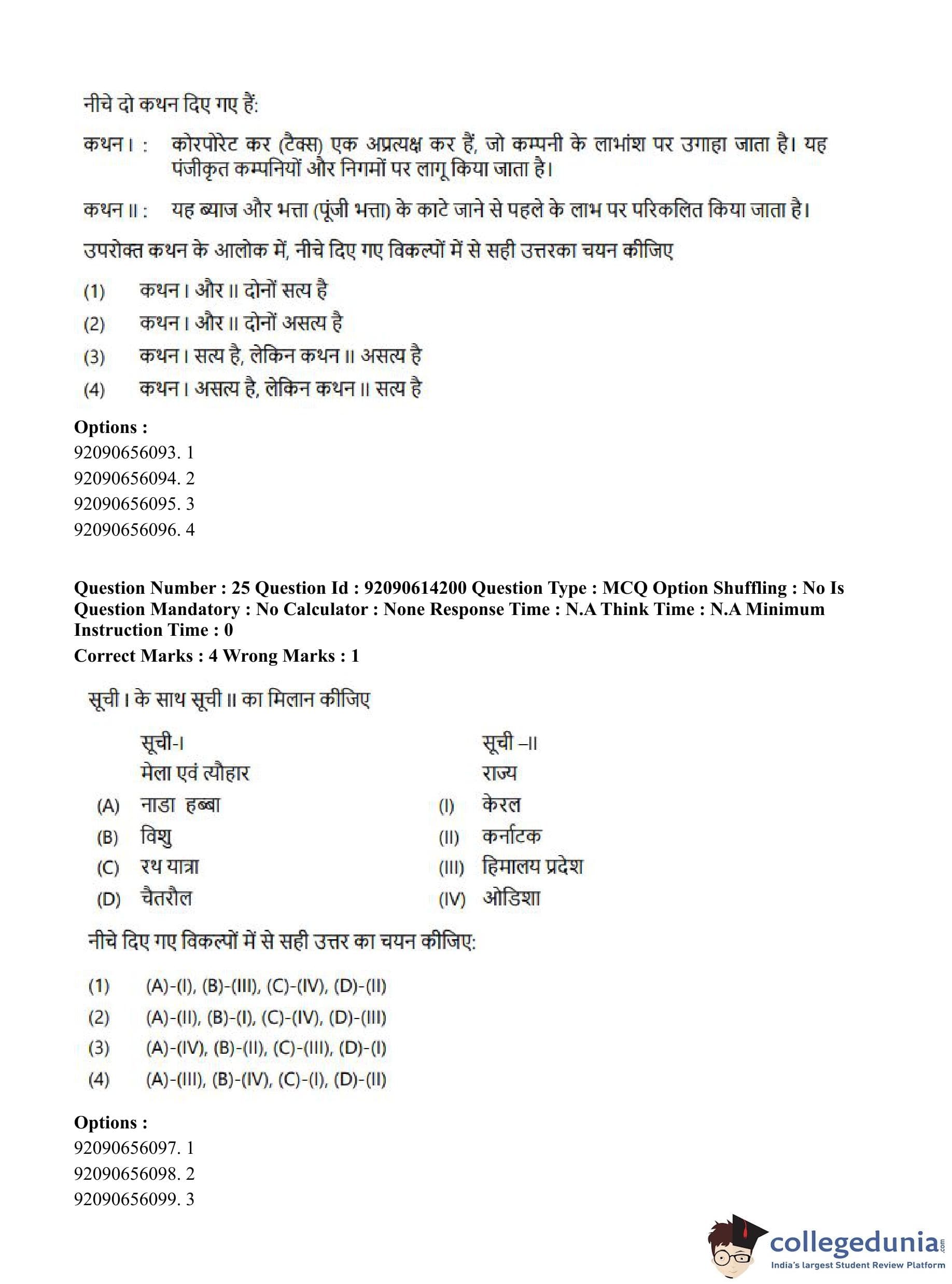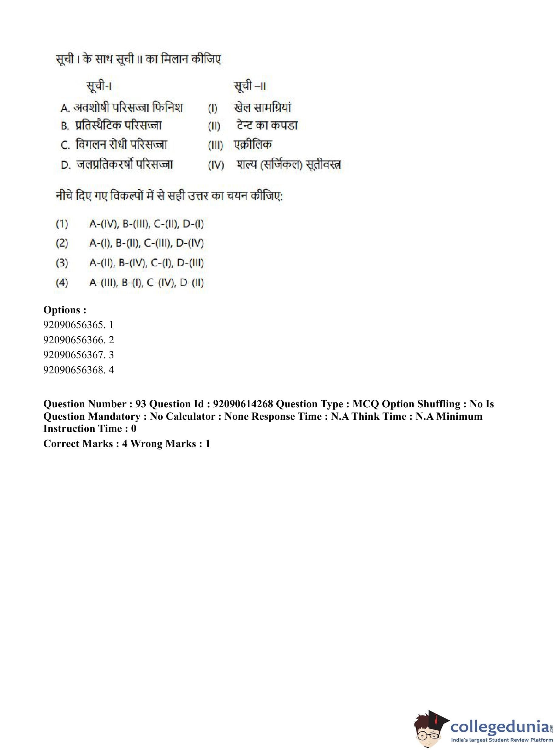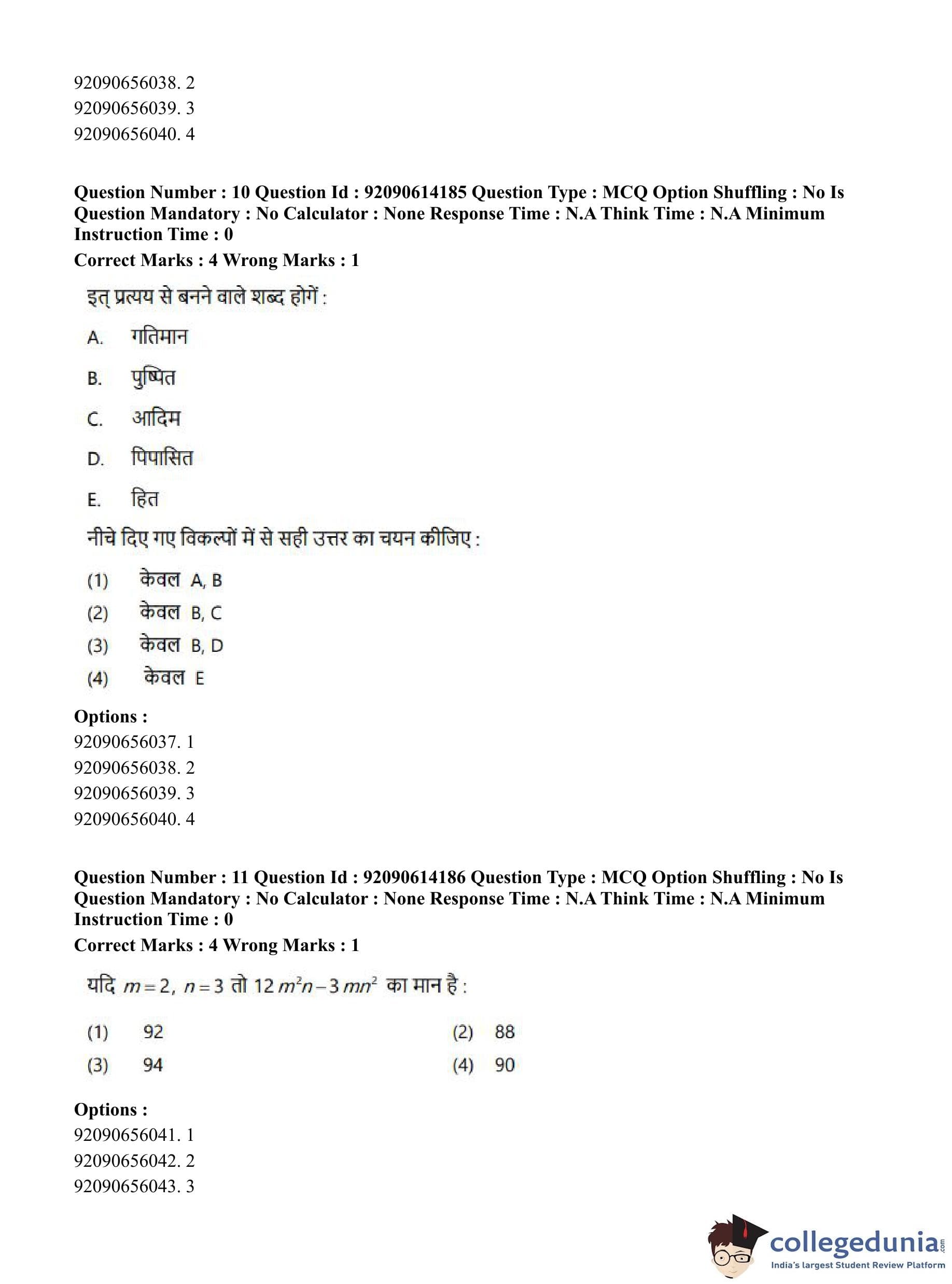 CUET PG 2023 Textile Engineering Question Paper in Hindi (June 12 - Shift 2)