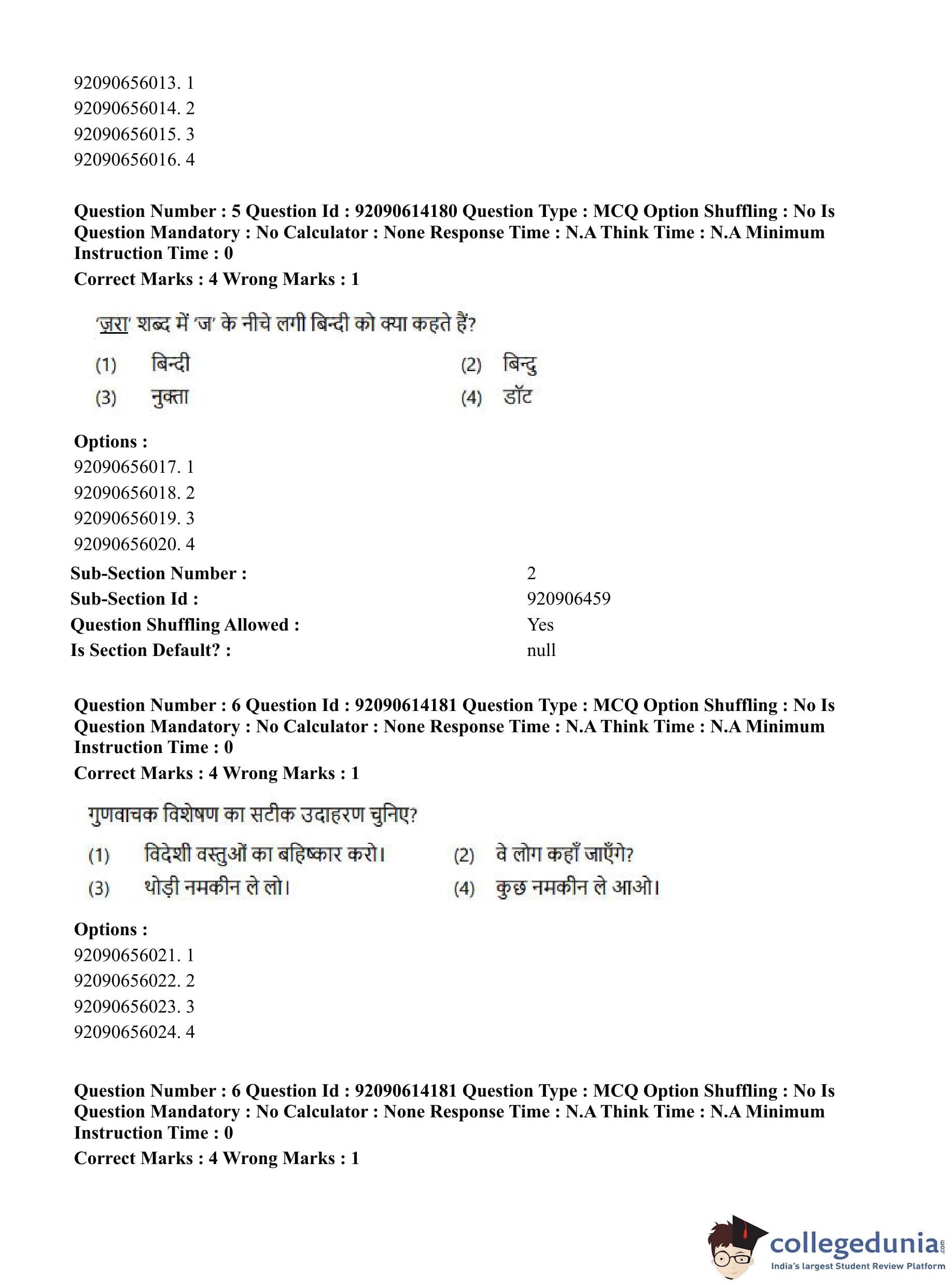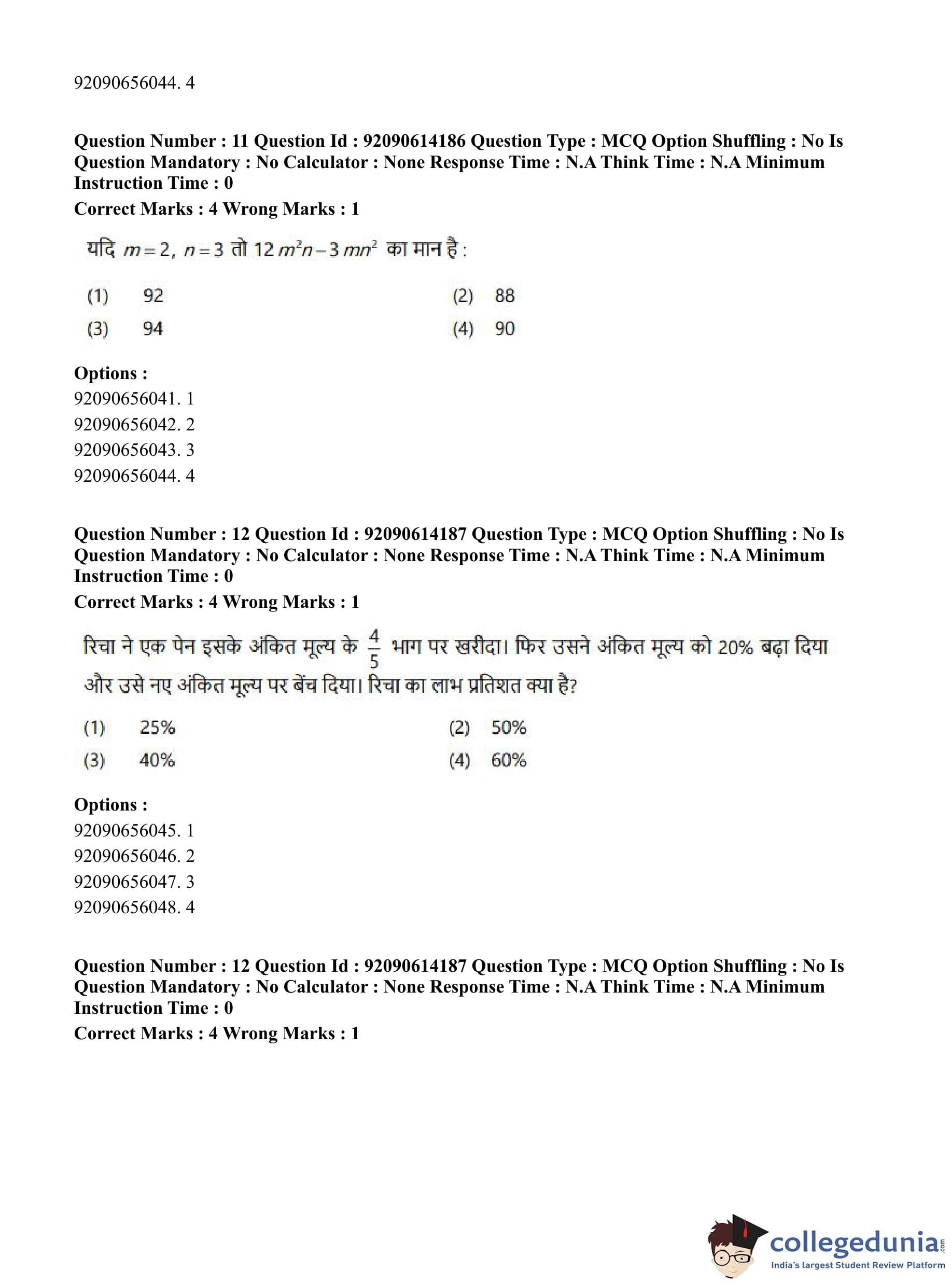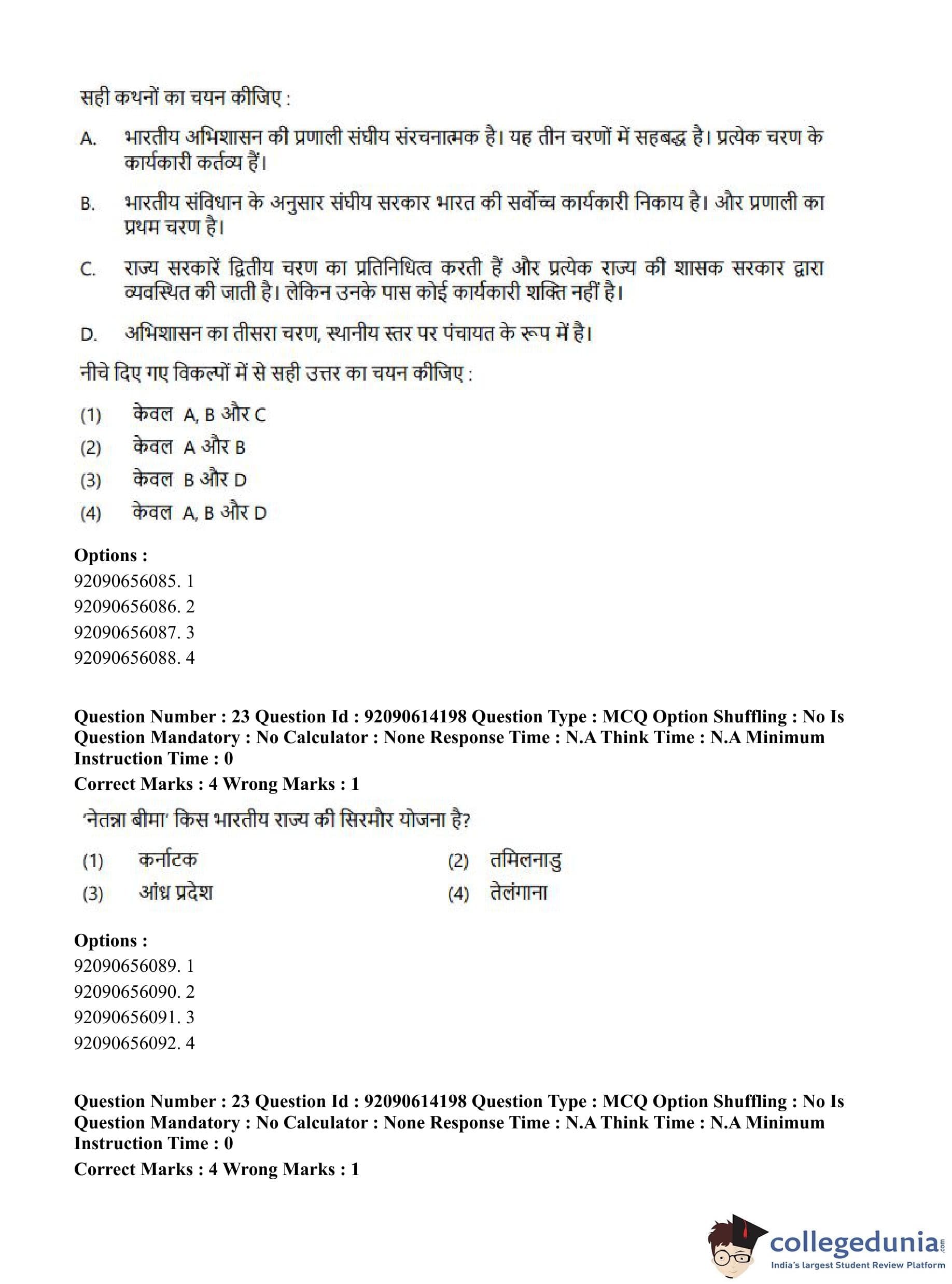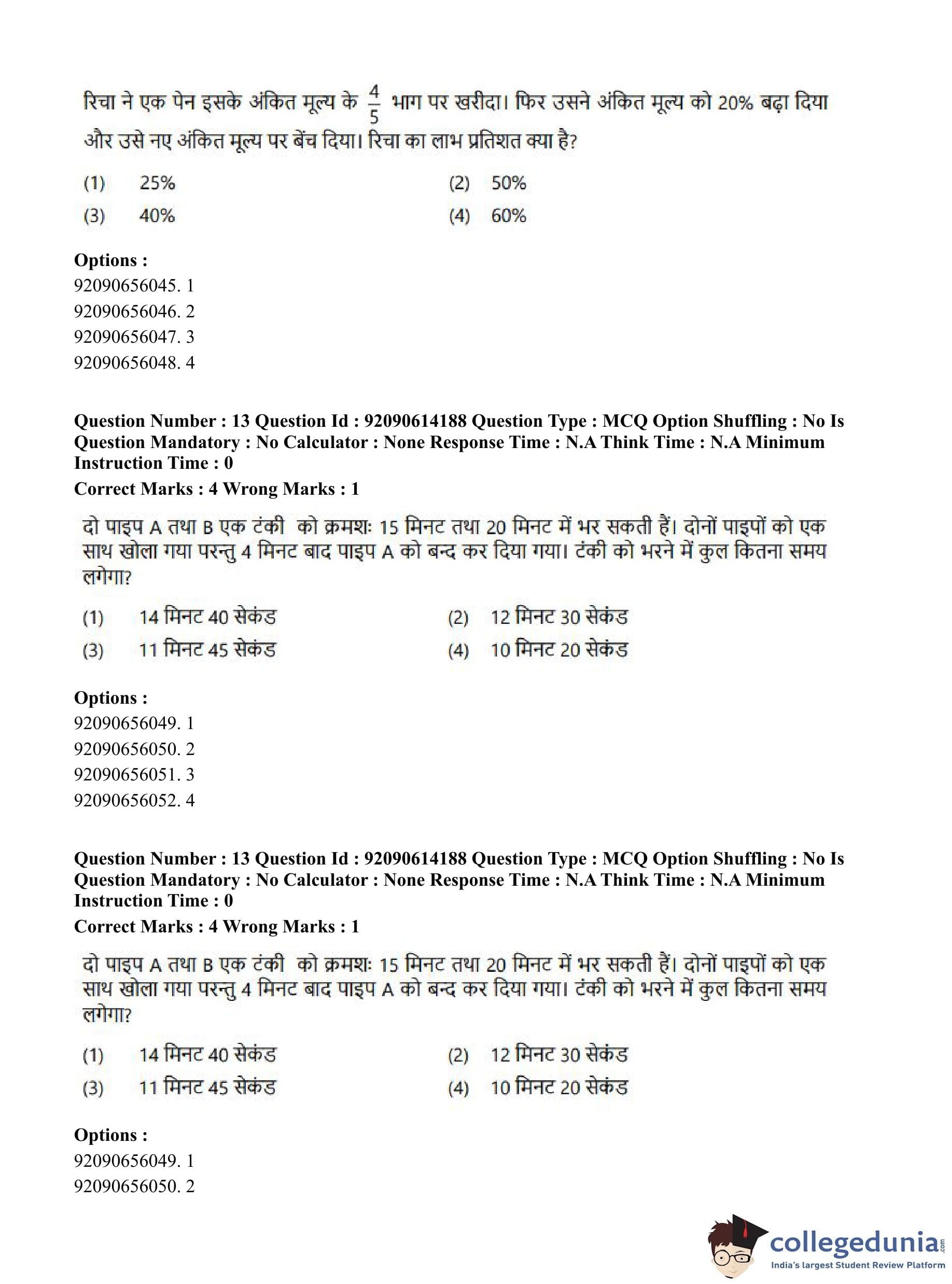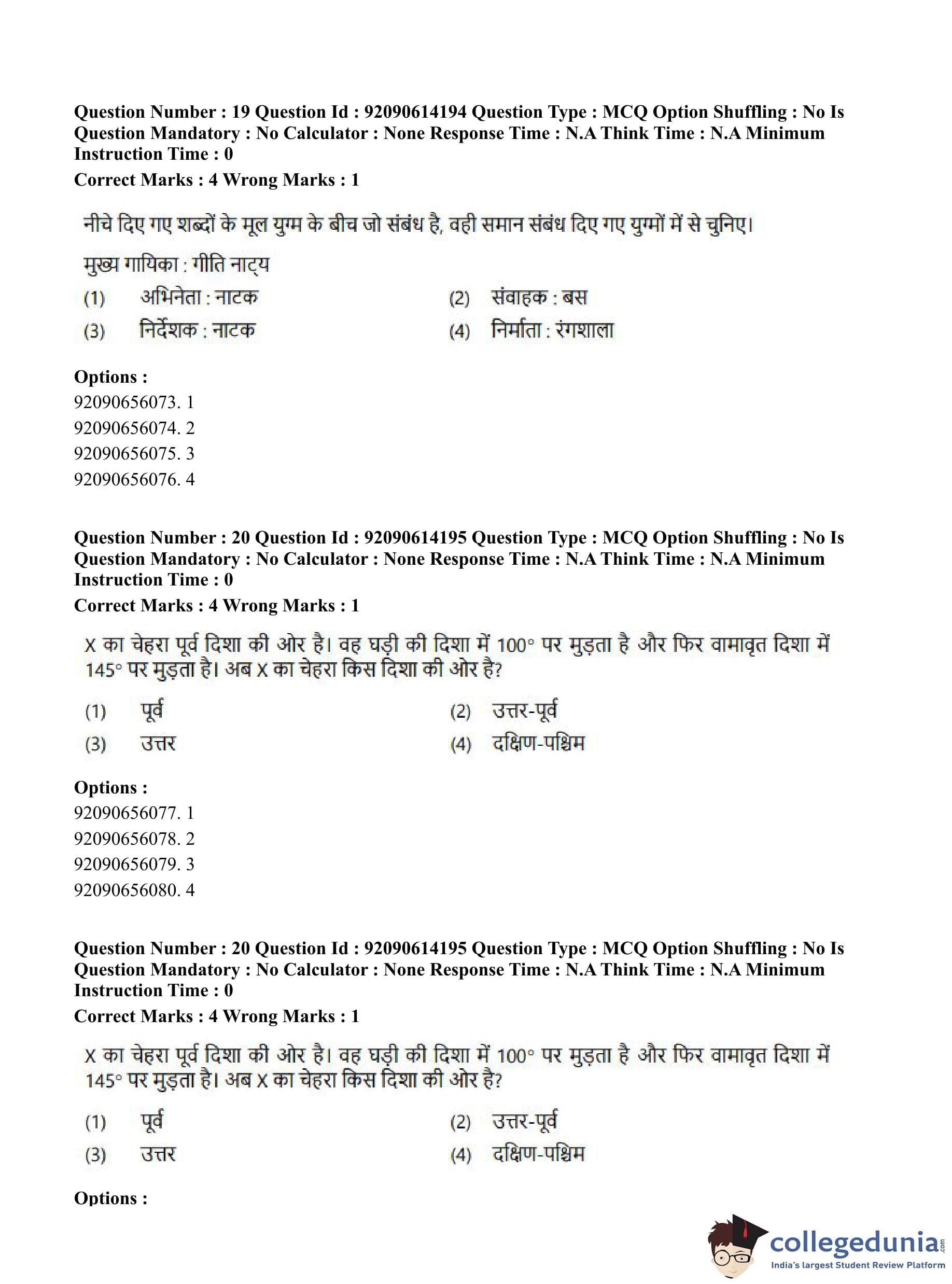 CUET PG 2023 Textile Engineering Question Paper in Hindi (June 12 - Shift 2)