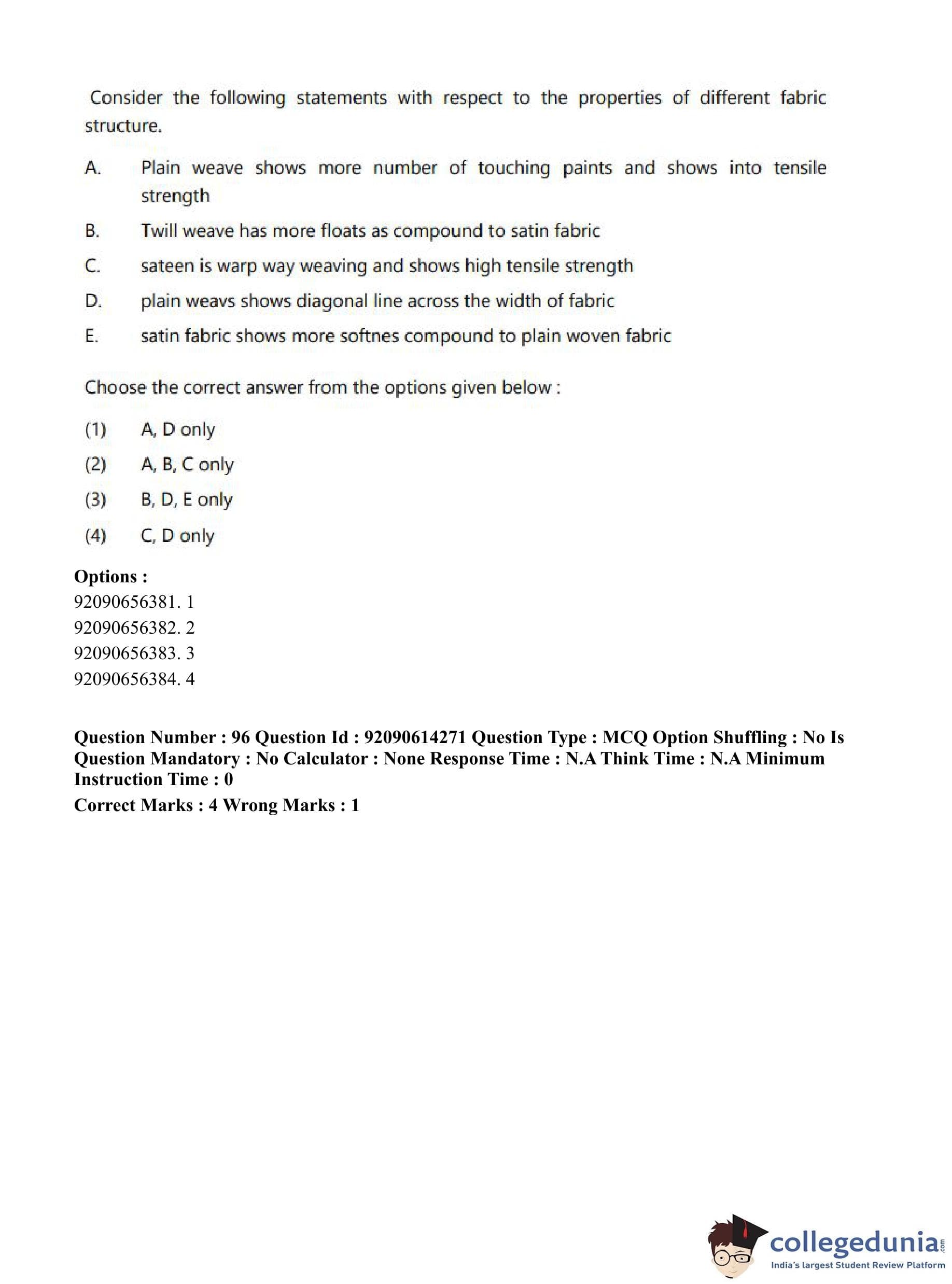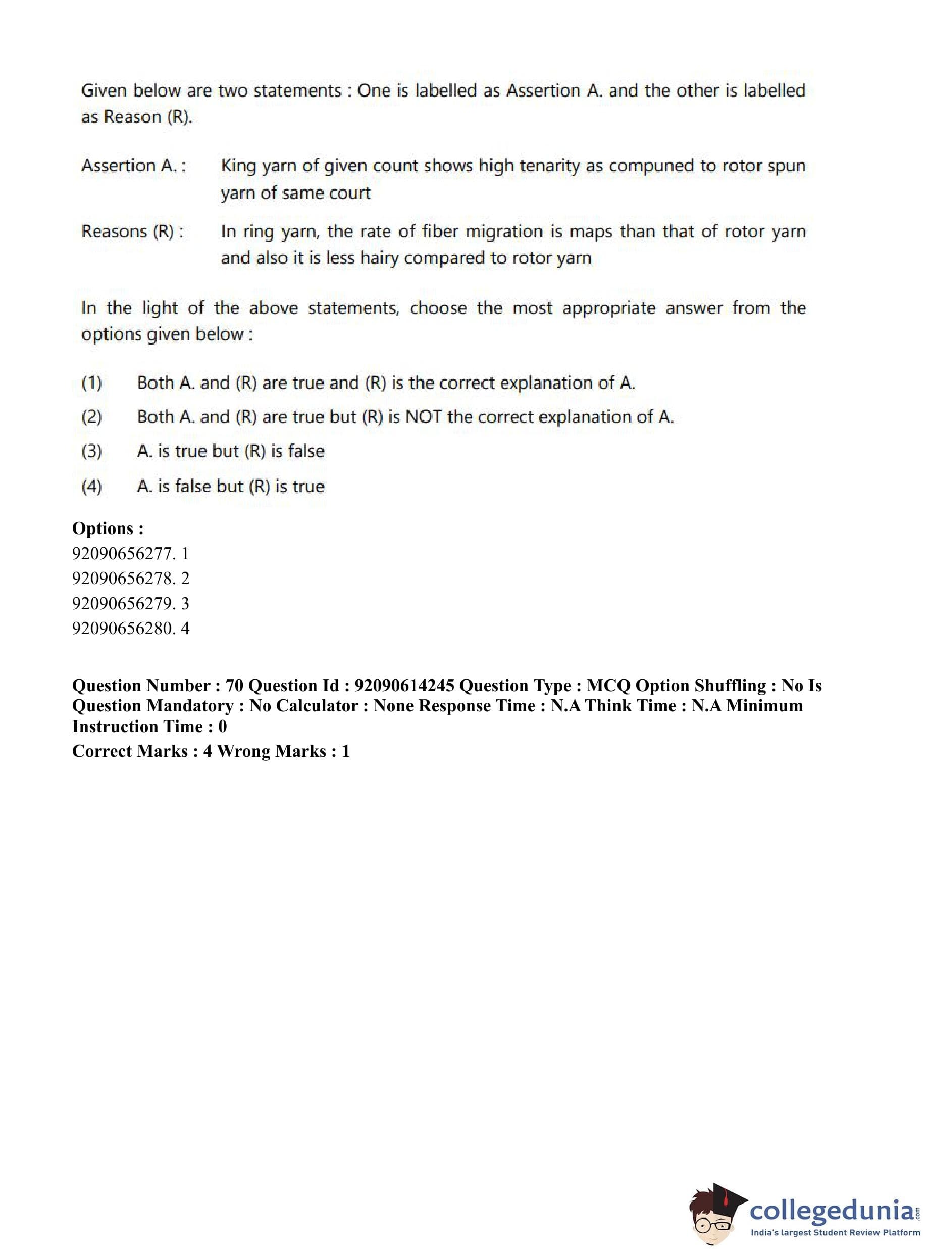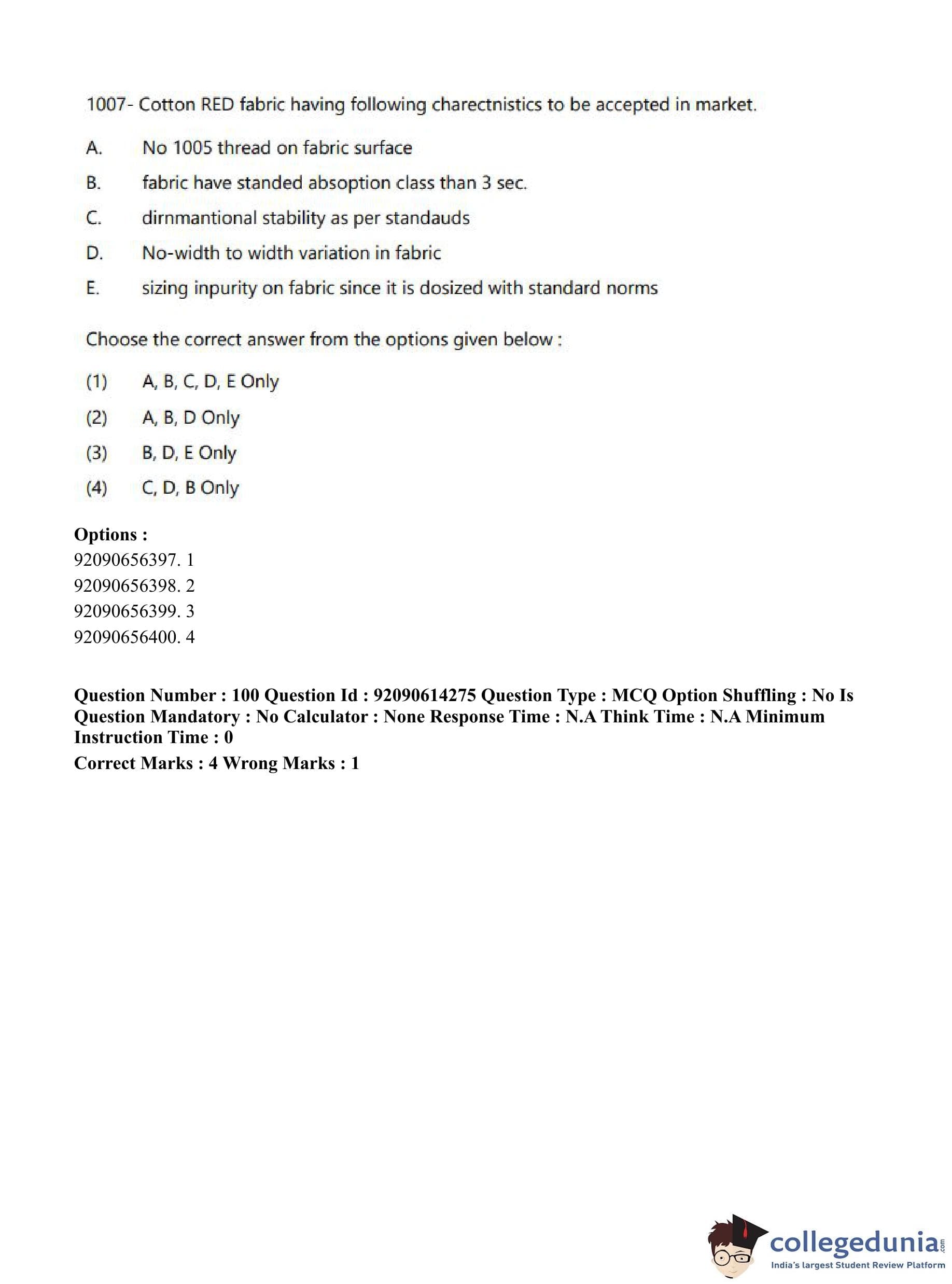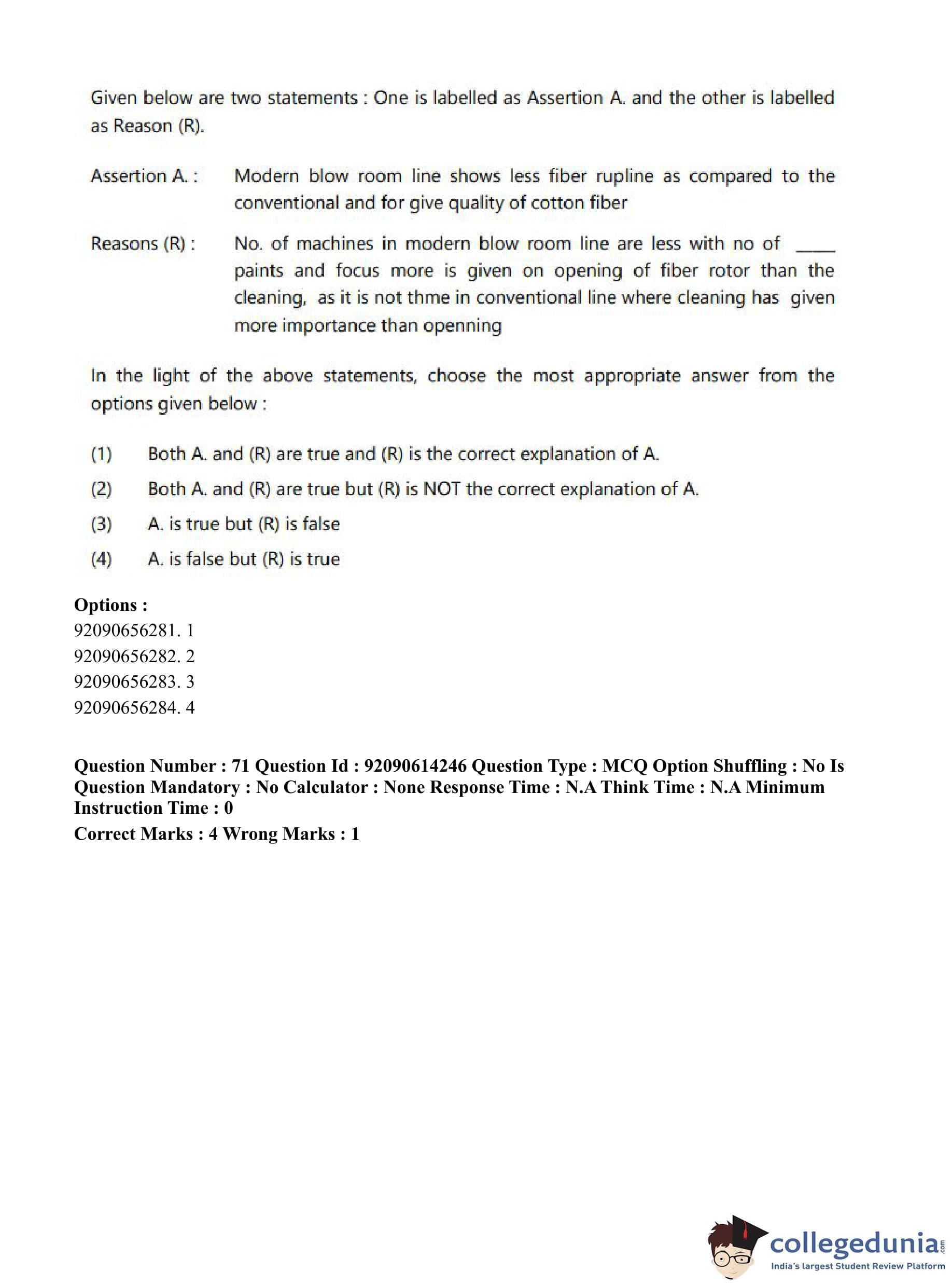 CUET PG 2023 Textile Engineering Question Paper with Answer Key PDF is available for download here. The exam was conducted by National Testing Agency (NTA) on June 12, 2023 in Shift 2. The question paper comprised a total of 100 questions divided into 2 sections.