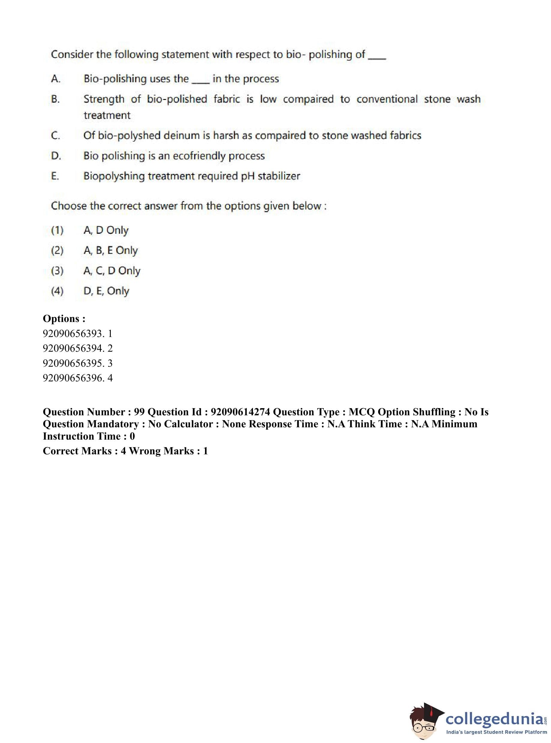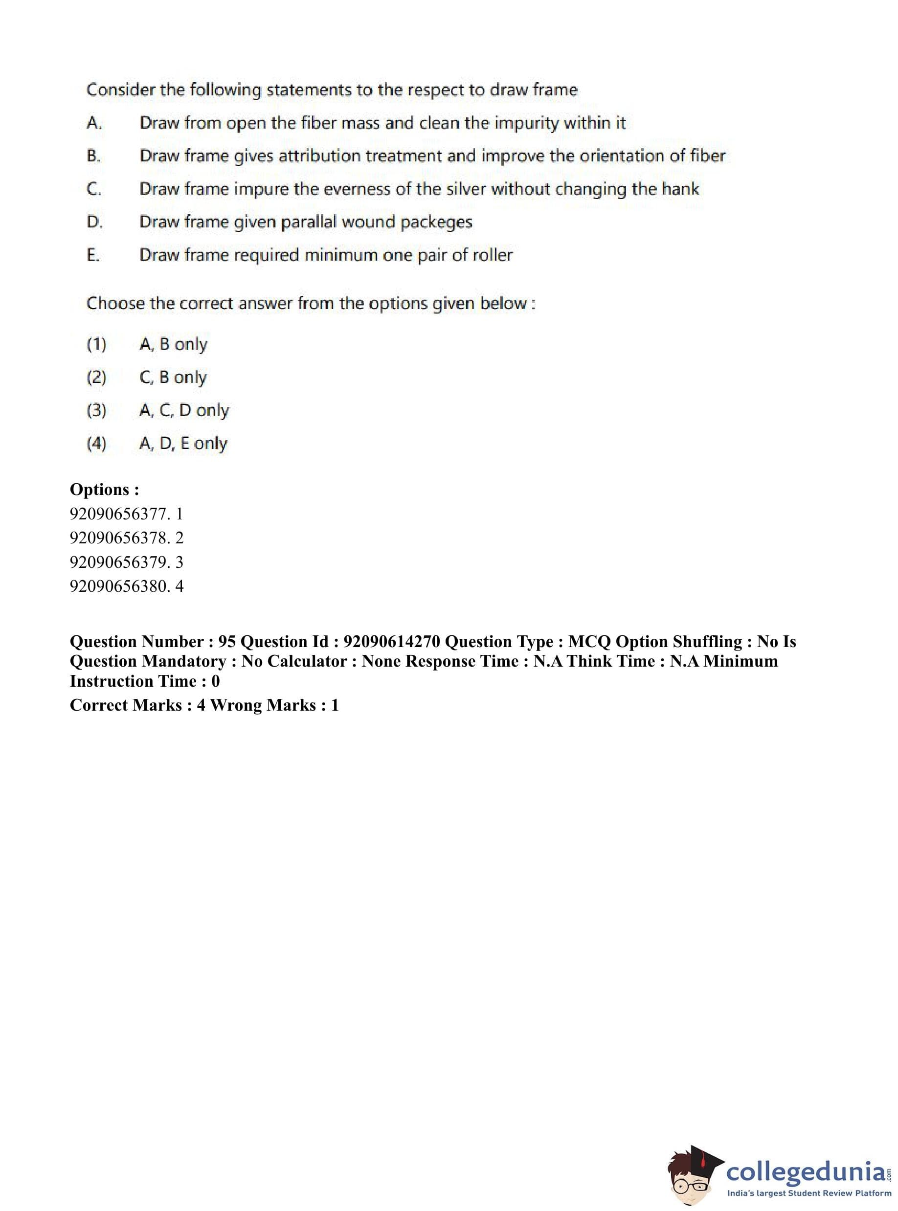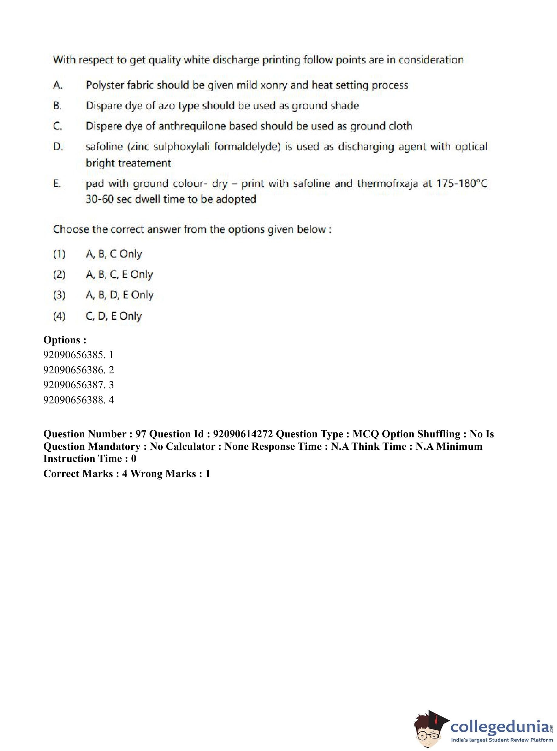 CUET PG 2023 Textile Engineering Question Paper with Answer Key PDF is available for download here. The exam was conducted by National Testing Agency (NTA) on June 12, 2023 in Shift 2. The question paper comprised a total of 100 questions divided into 2 sections.