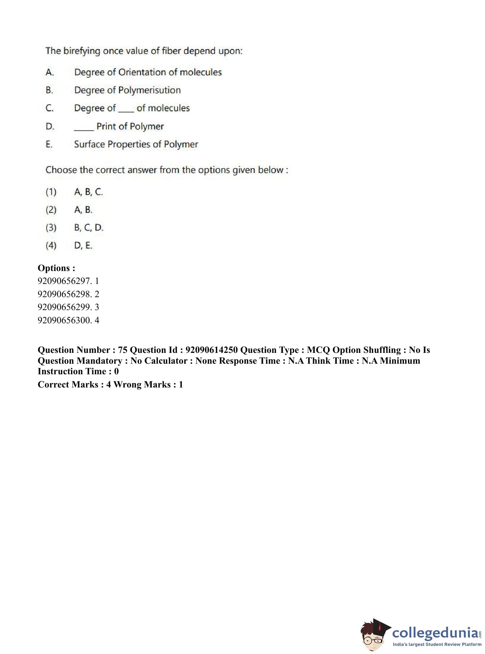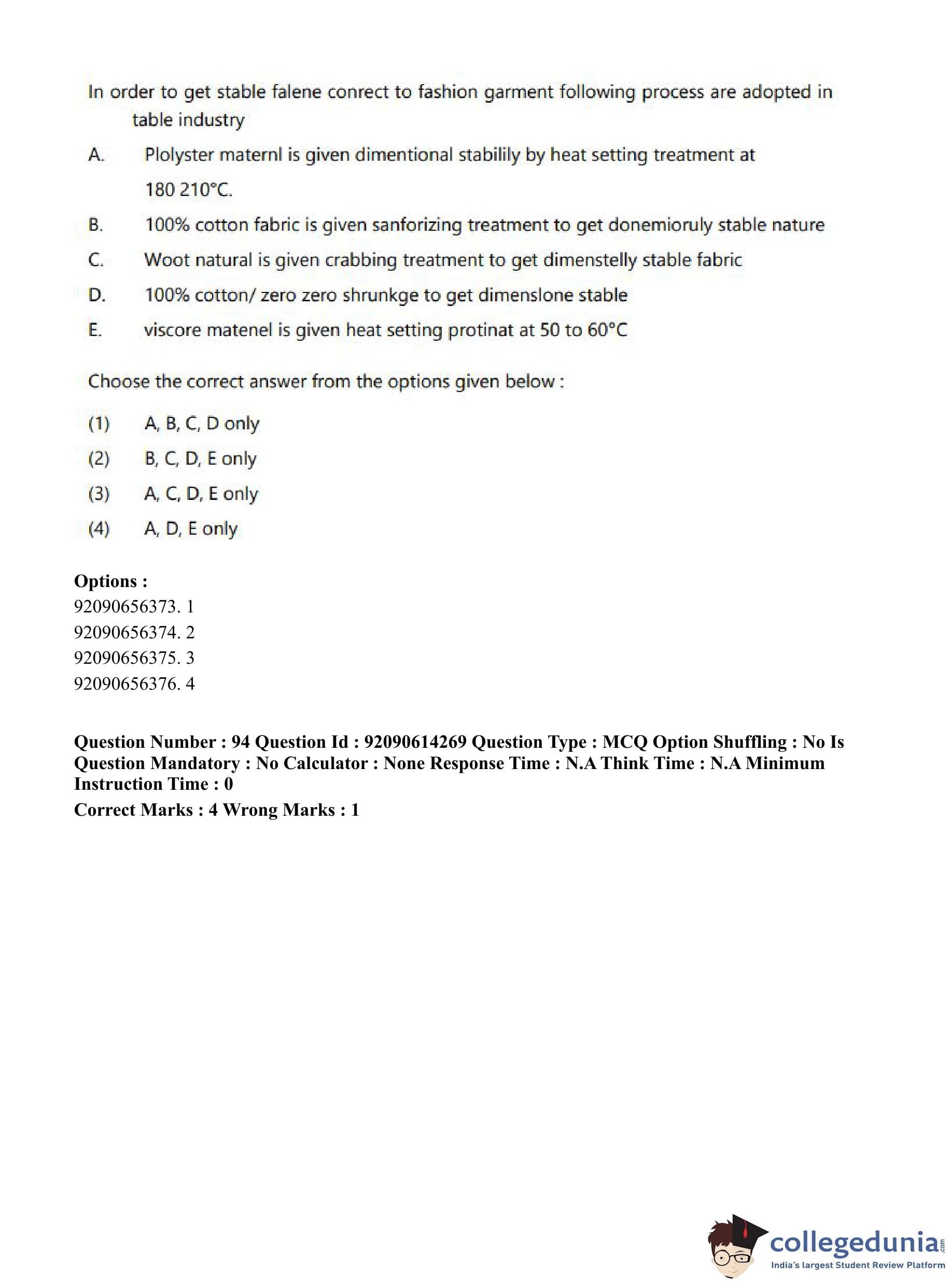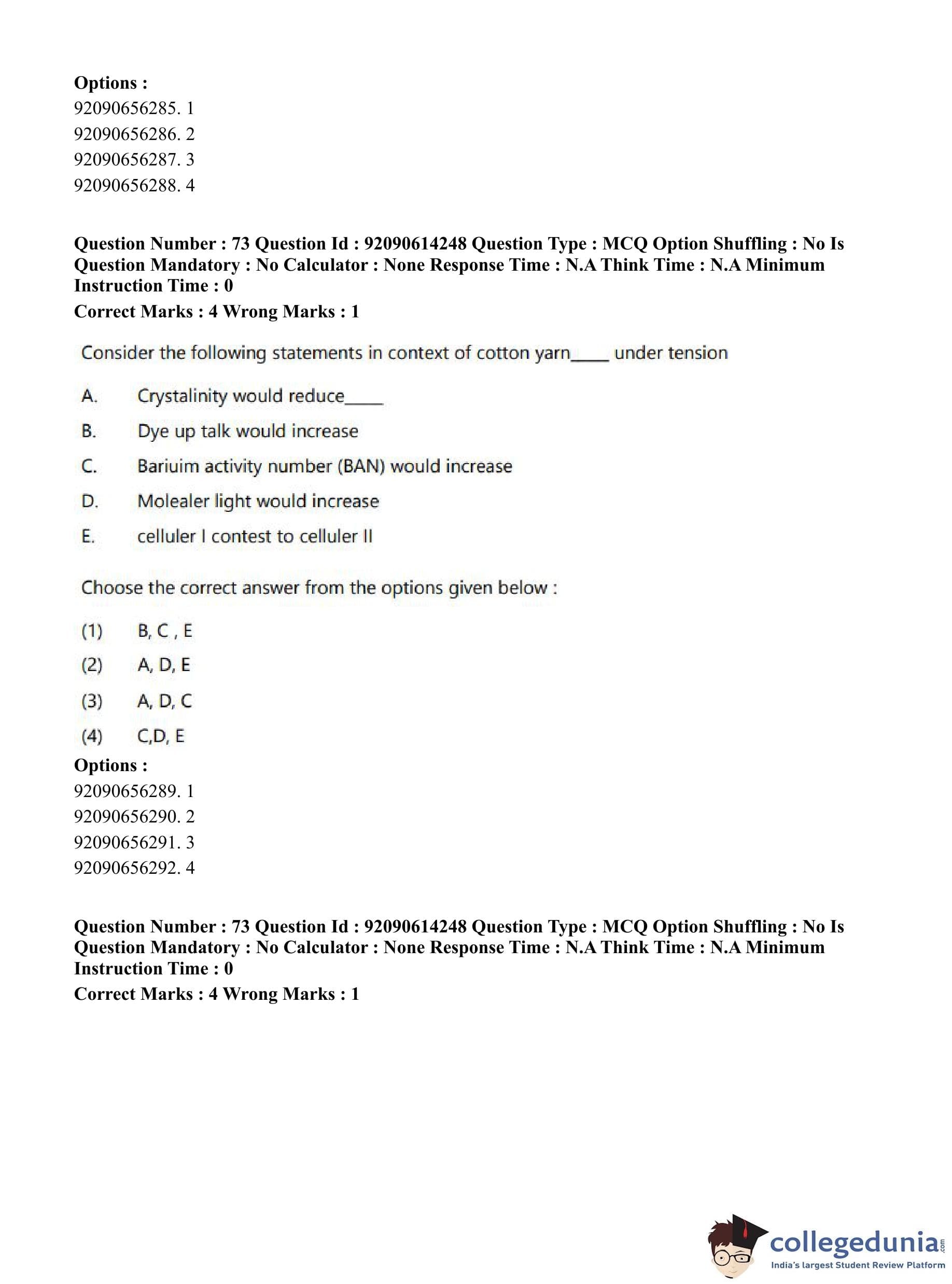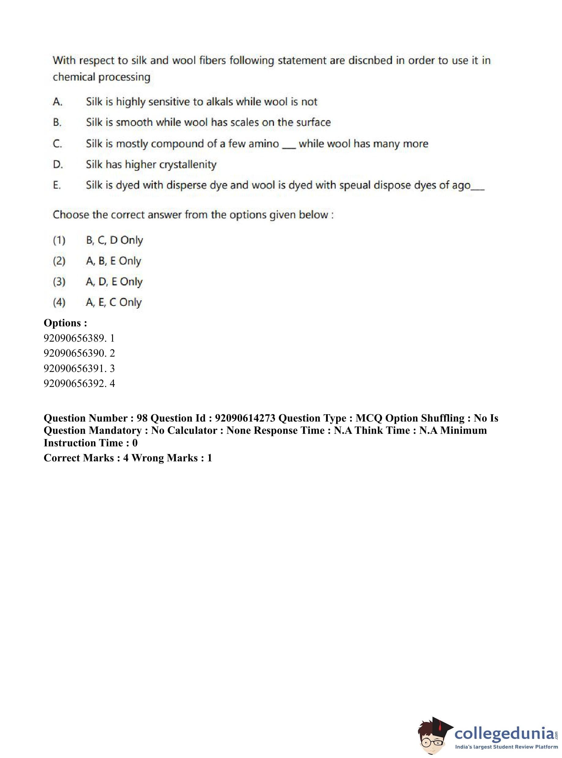 CUET PG 2023 Textile Engineering Question Paper with Answer Key PDF is available for download here. The exam was conducted by National Testing Agency (NTA) on June 12, 2023 in Shift 2. The question paper comprised a total of 100 questions divided into 2 sections.