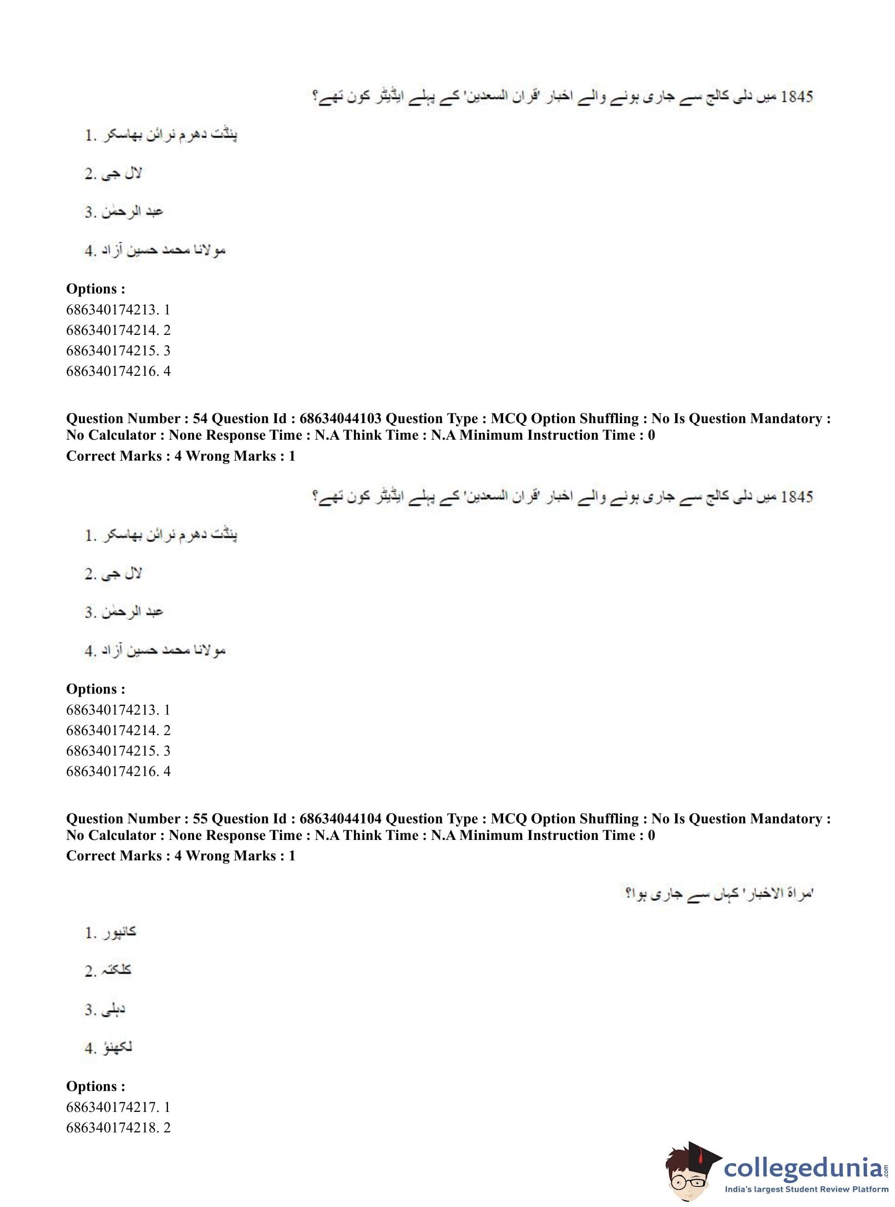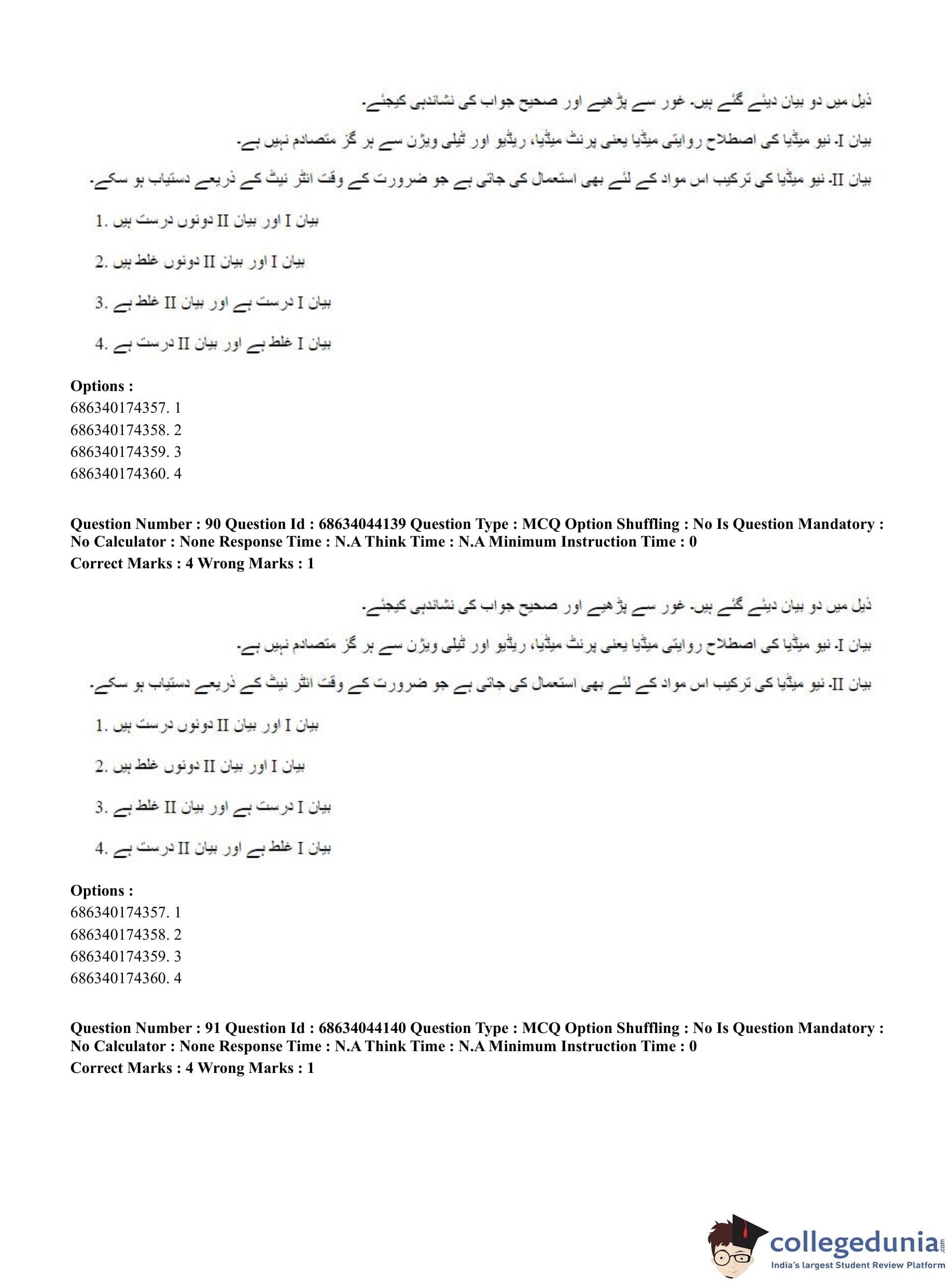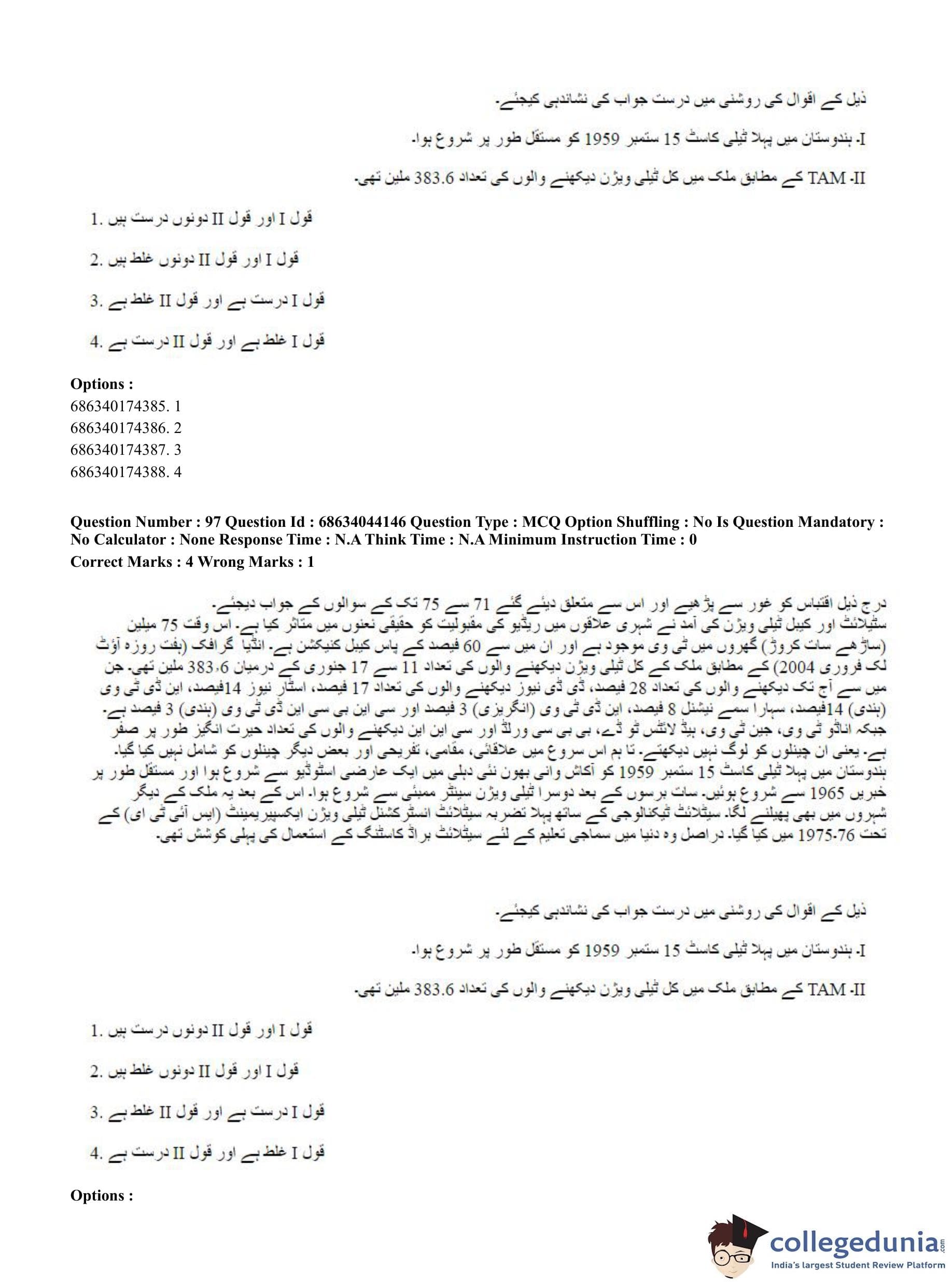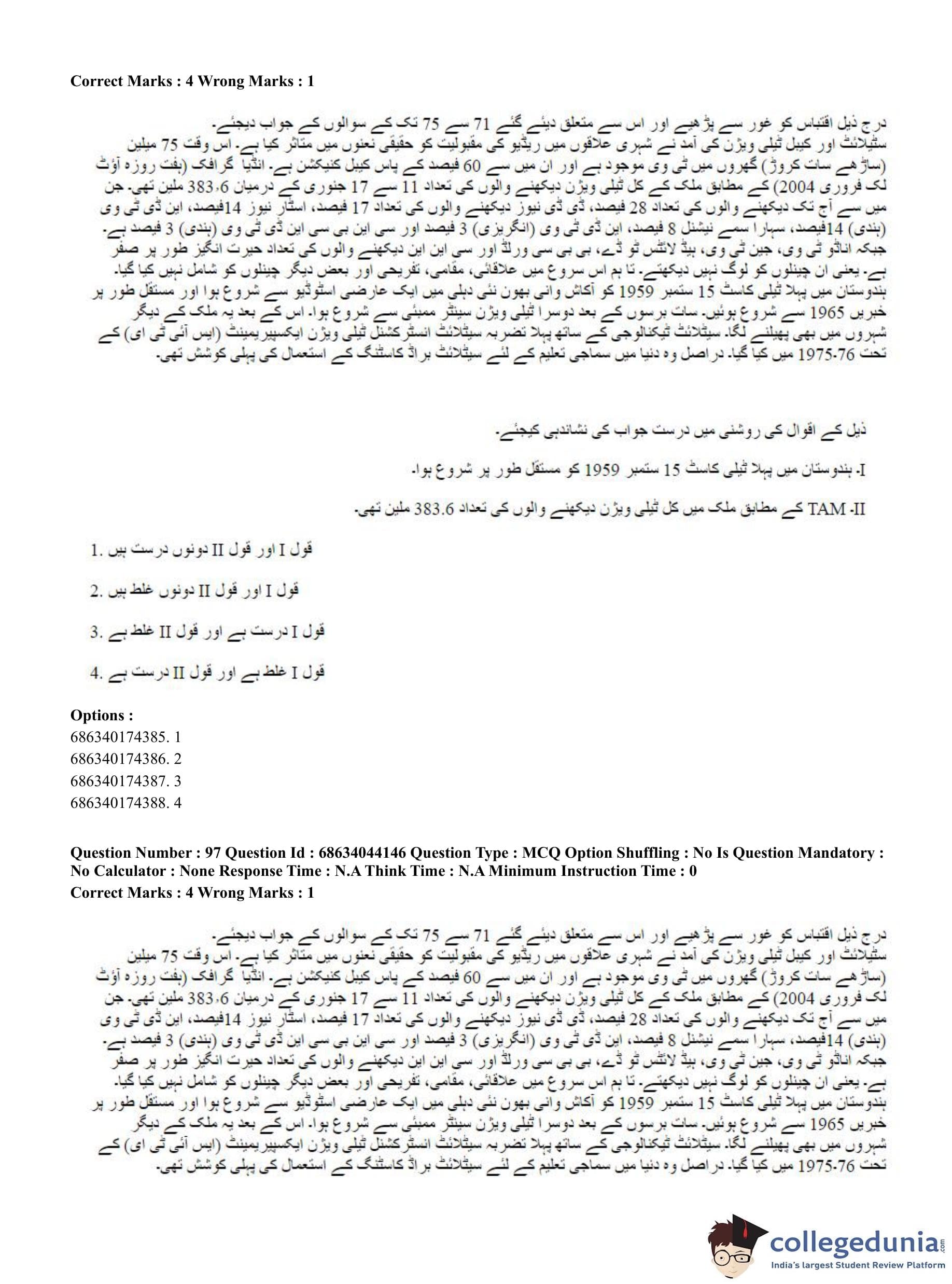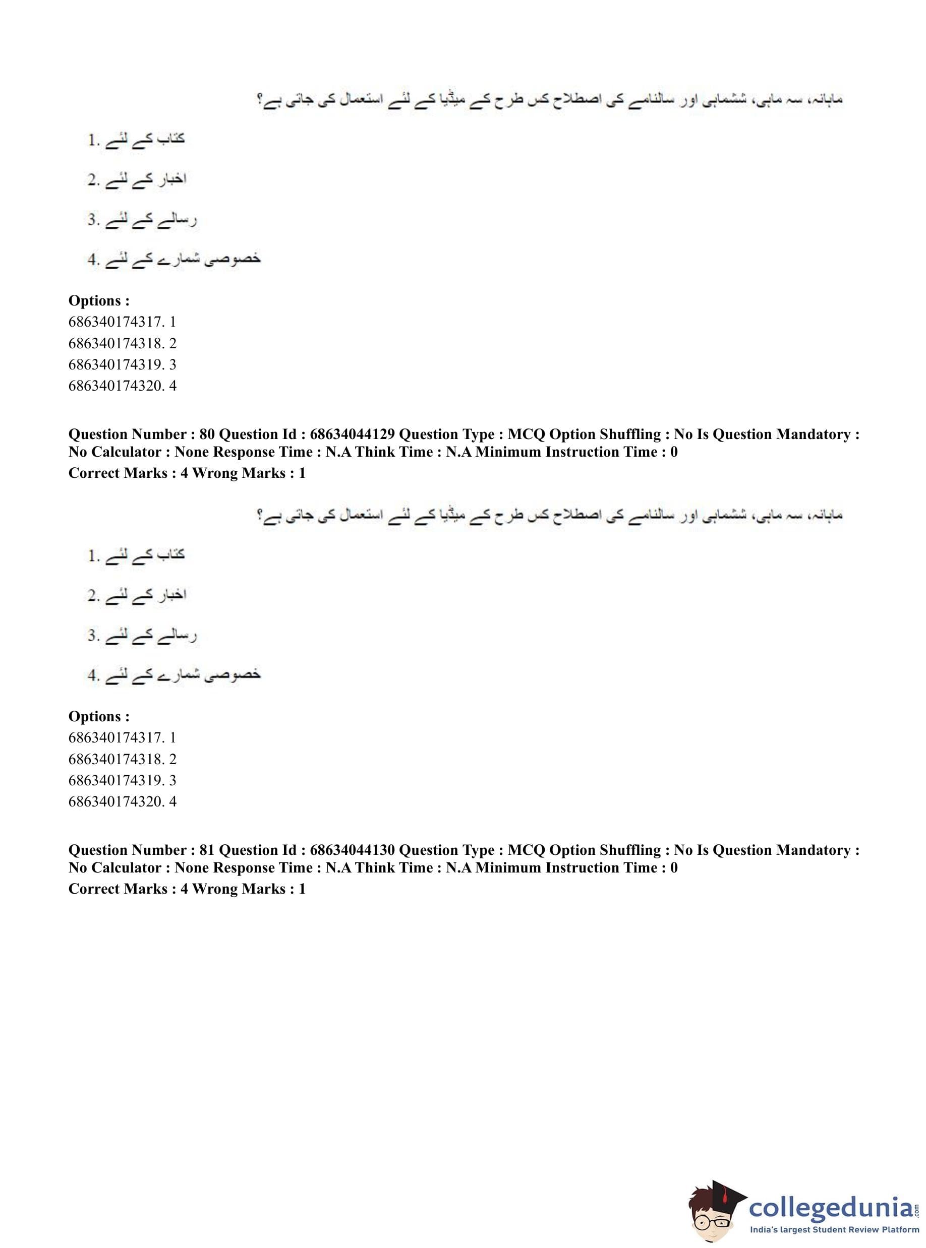 CUET PG 2023 Urdu Journalism Question Paper in English (June 30 - Shift 3)