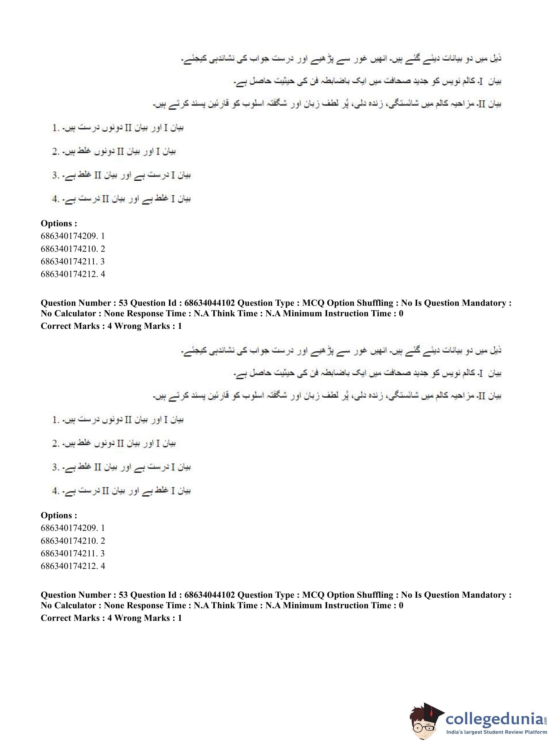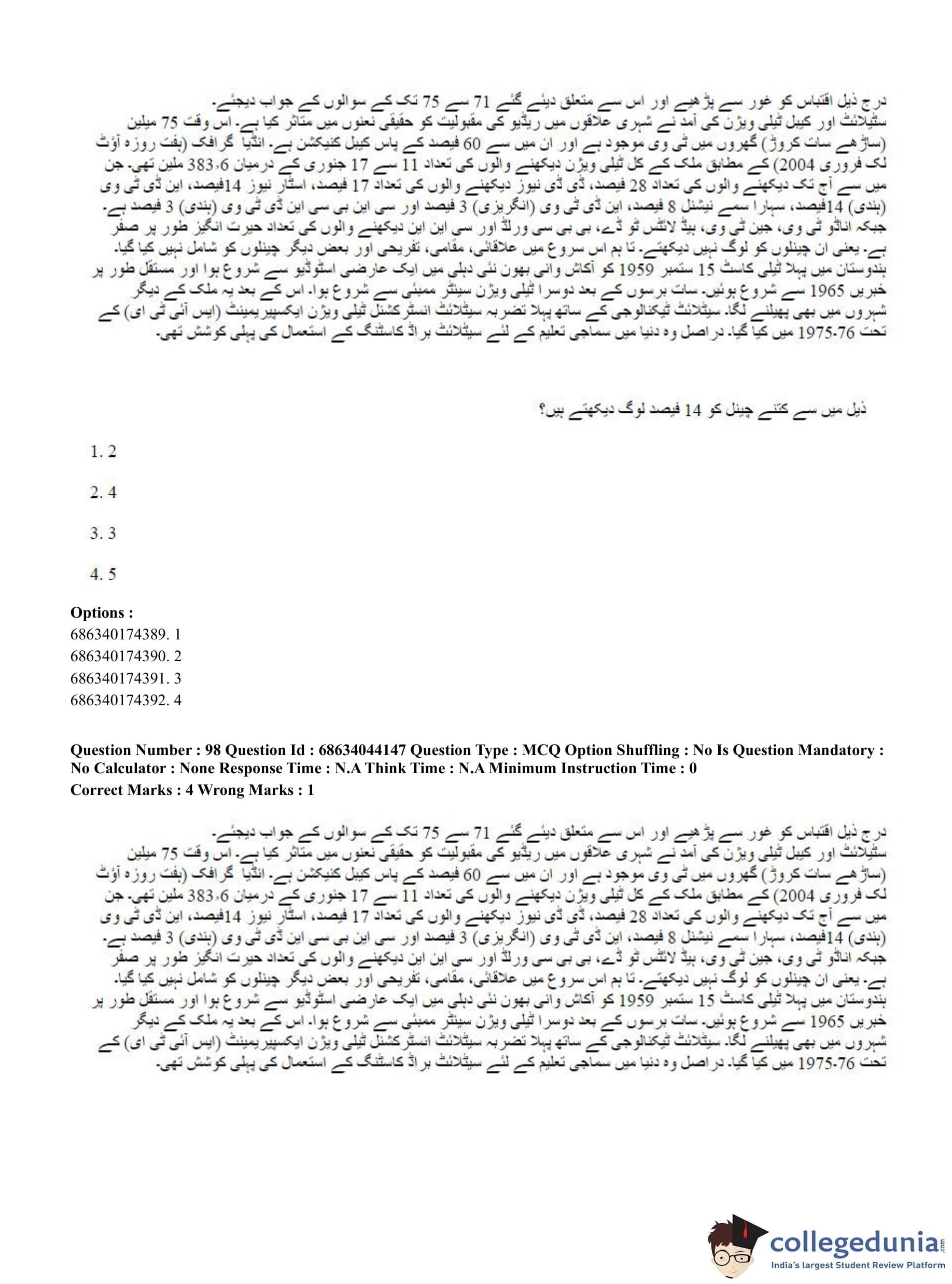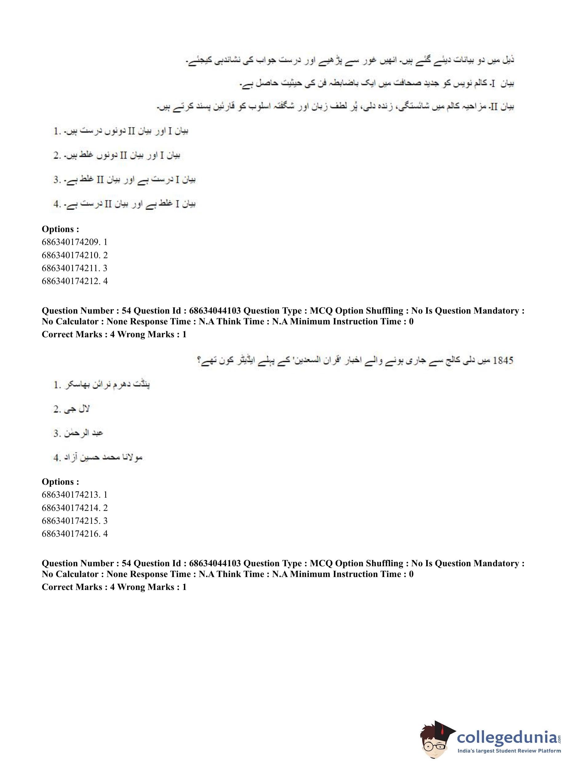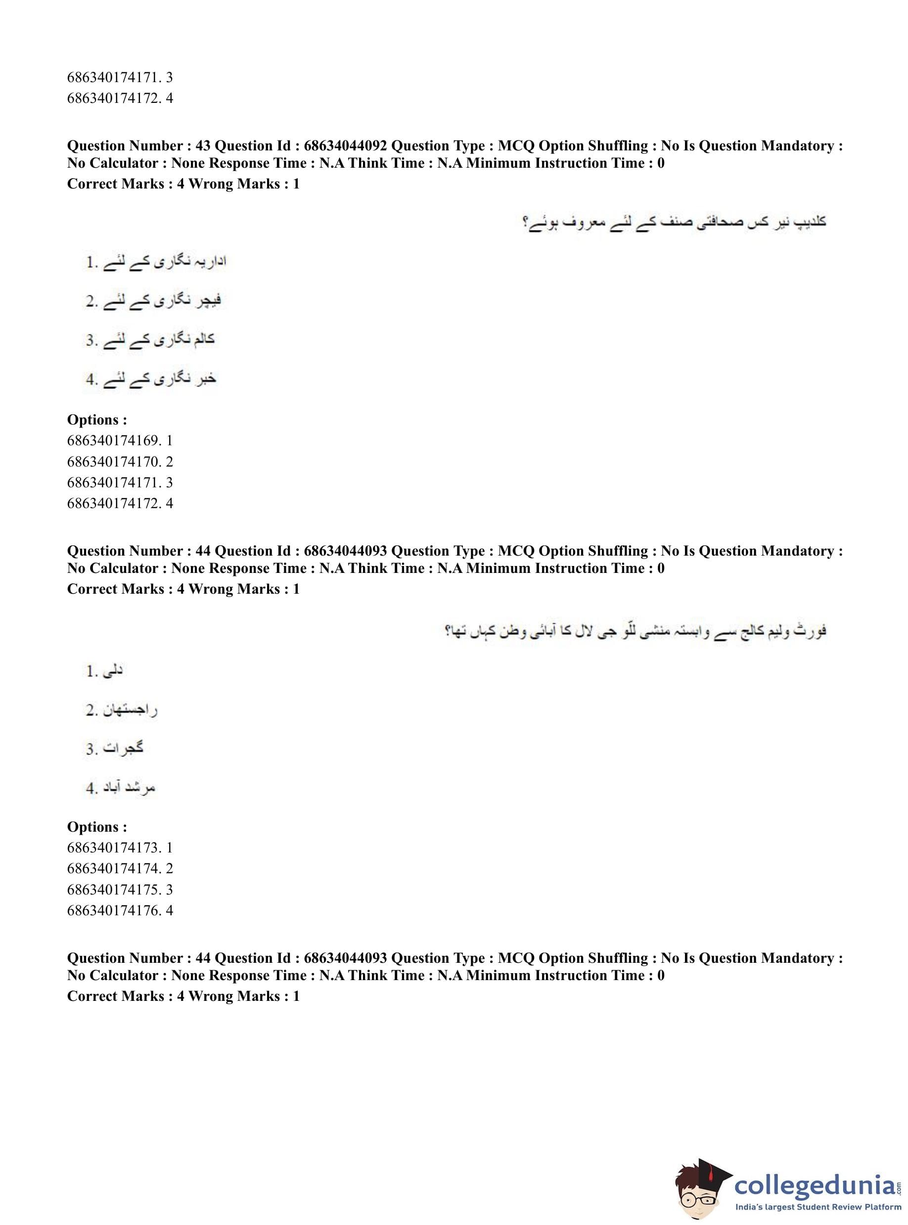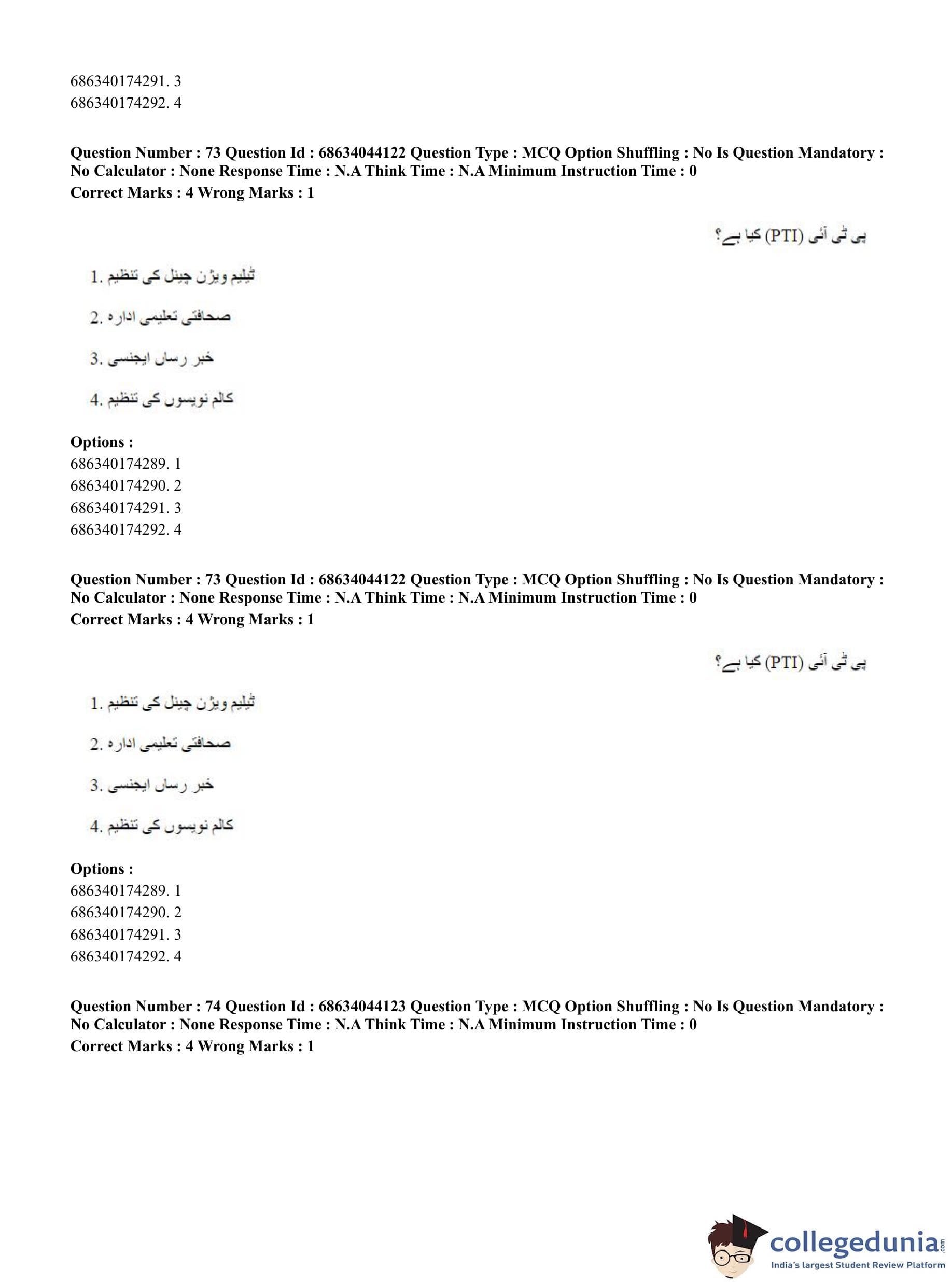 CUET PG 2023 Urdu Journalism Question Paper in English (June 30 - Shift 3)
