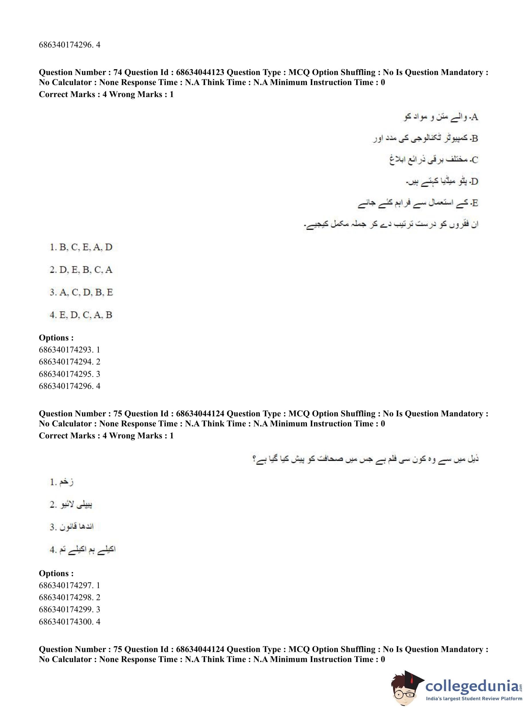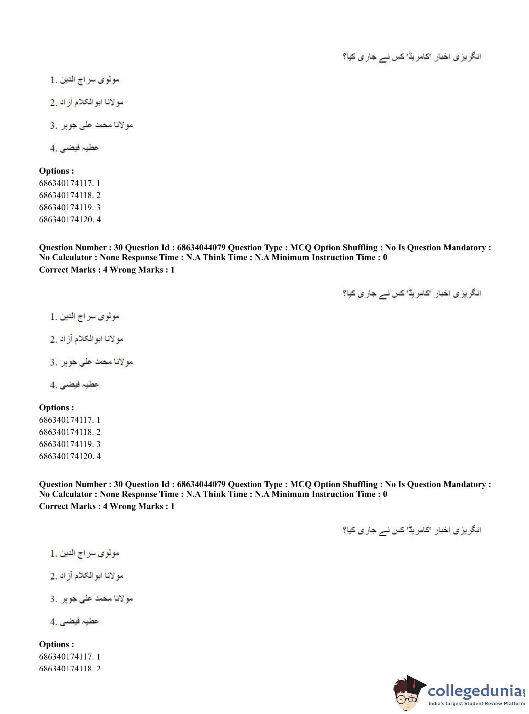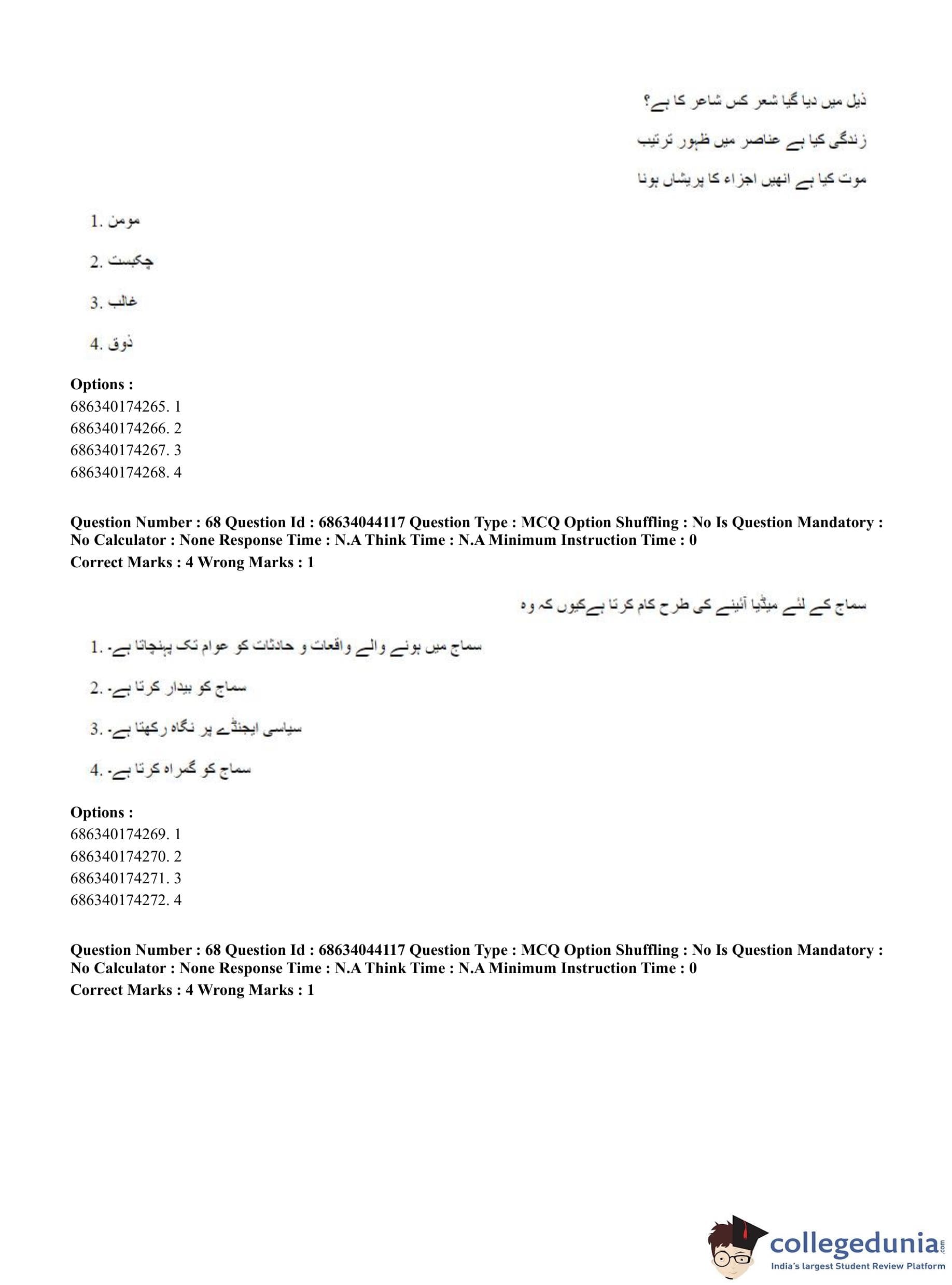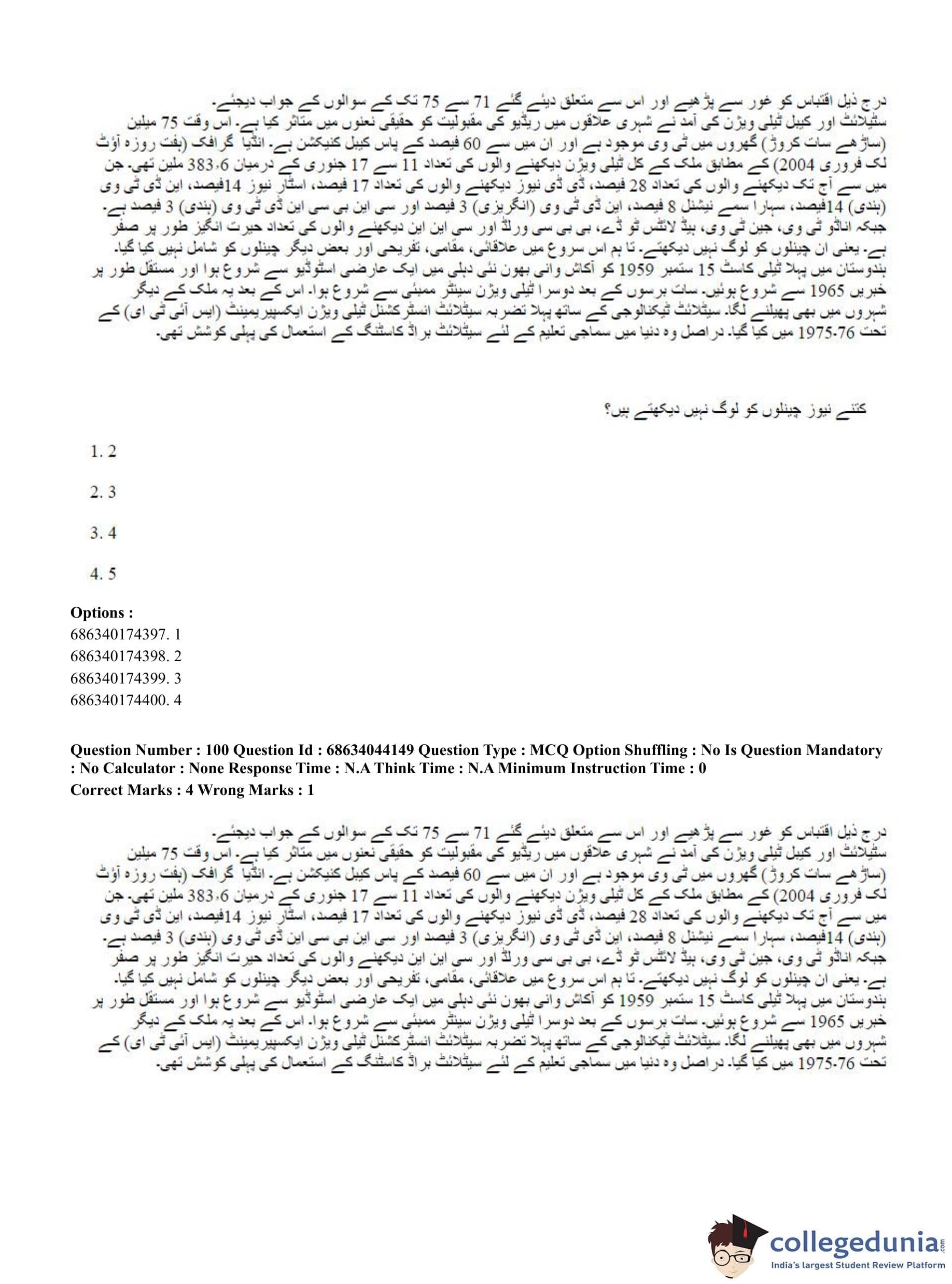 CUET PG 2023 Urdu Journalism Question Paper in English (June 30 - Shift 3)
