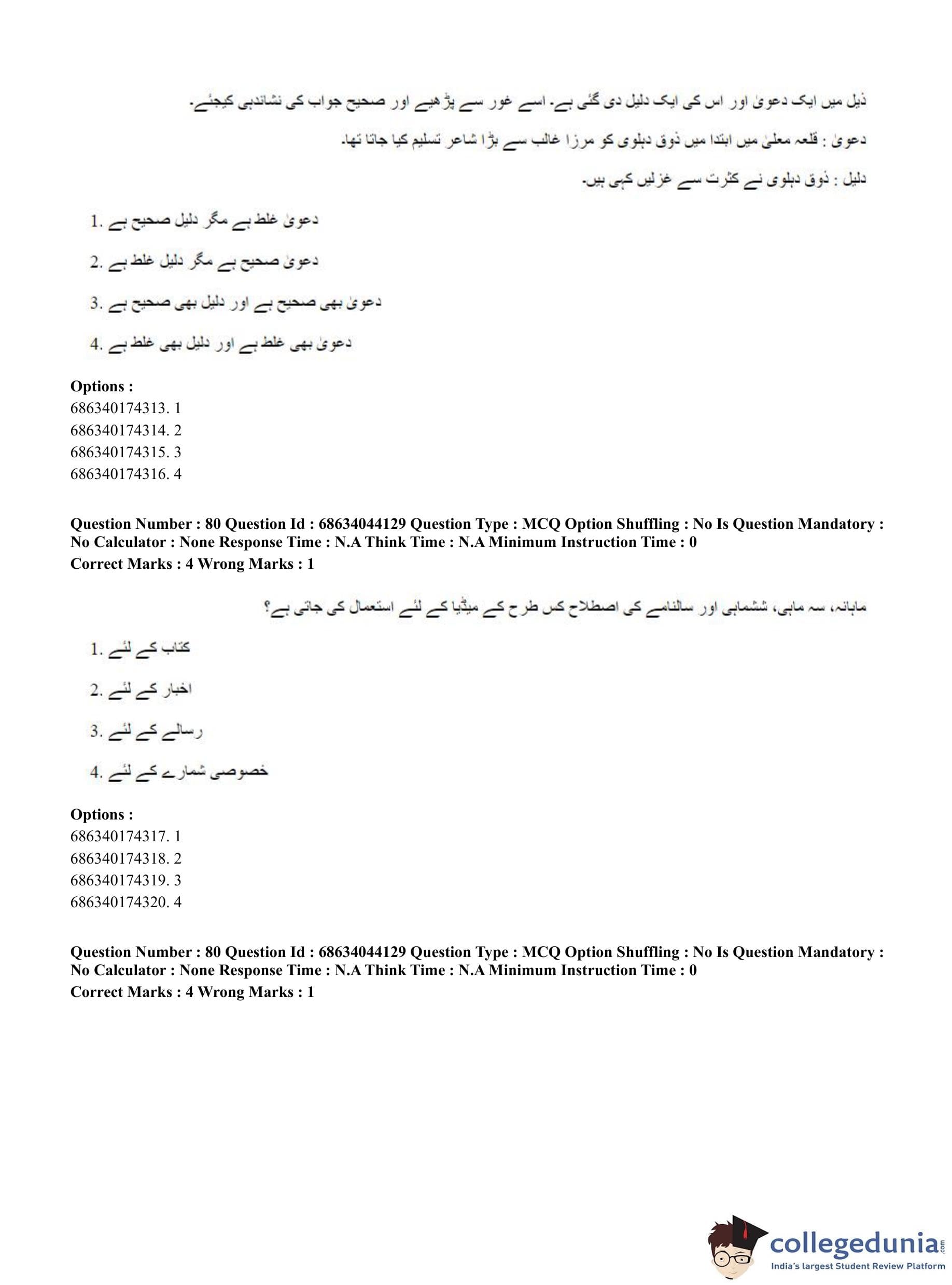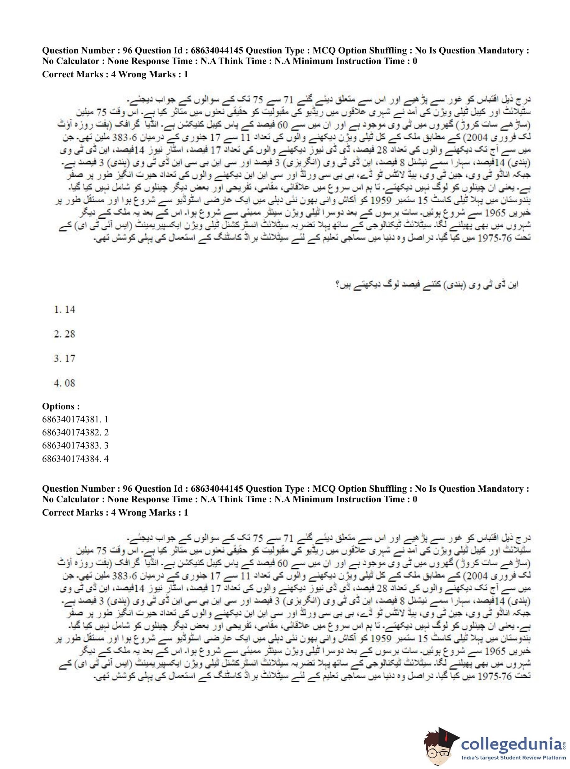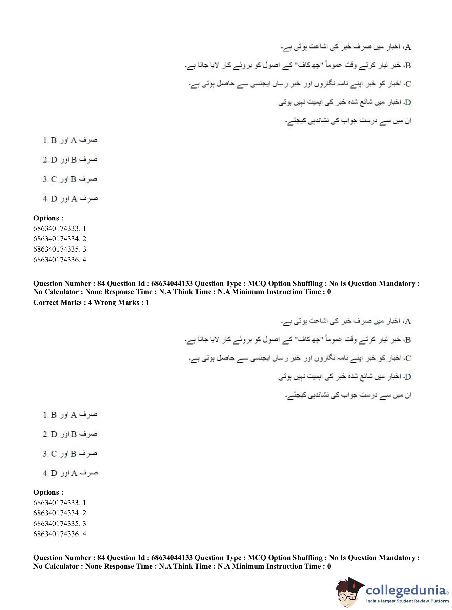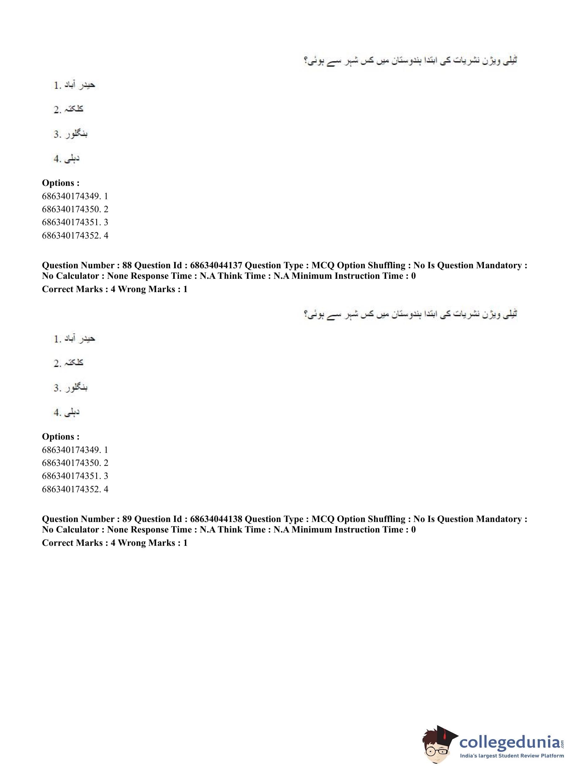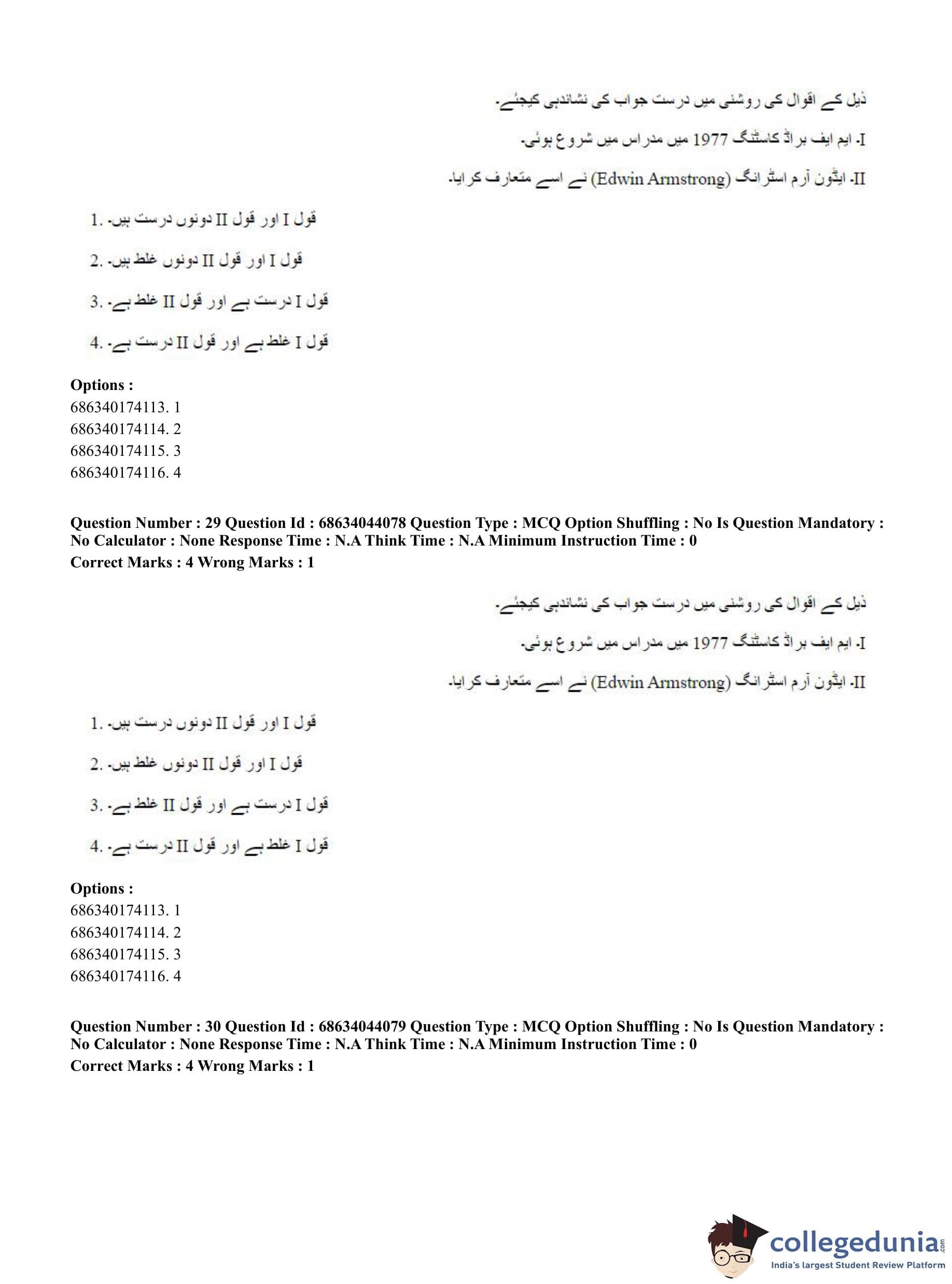 CUET PG 2023 Urdu Journalism Question Paper in English (June 30 - Shift 3)