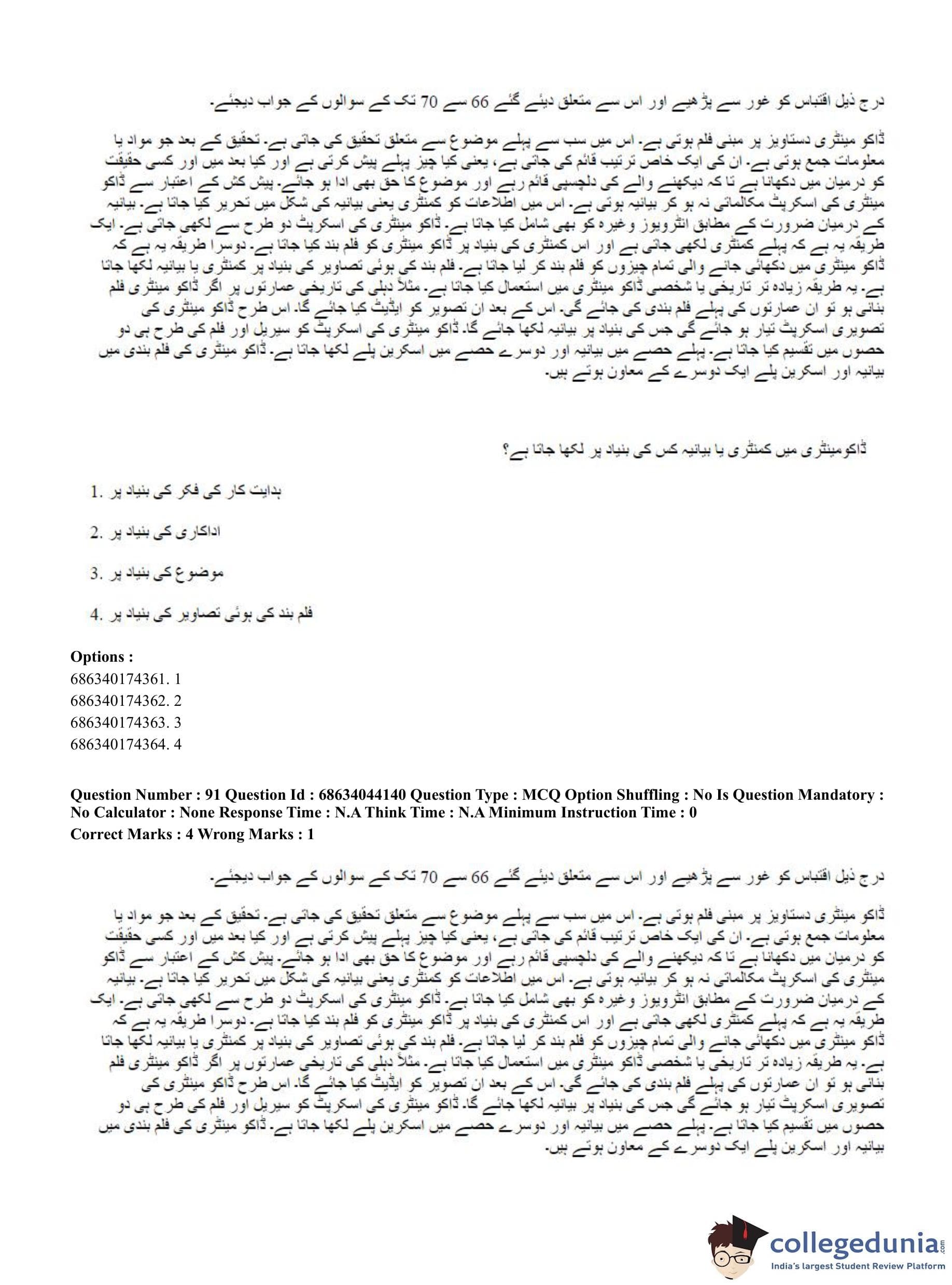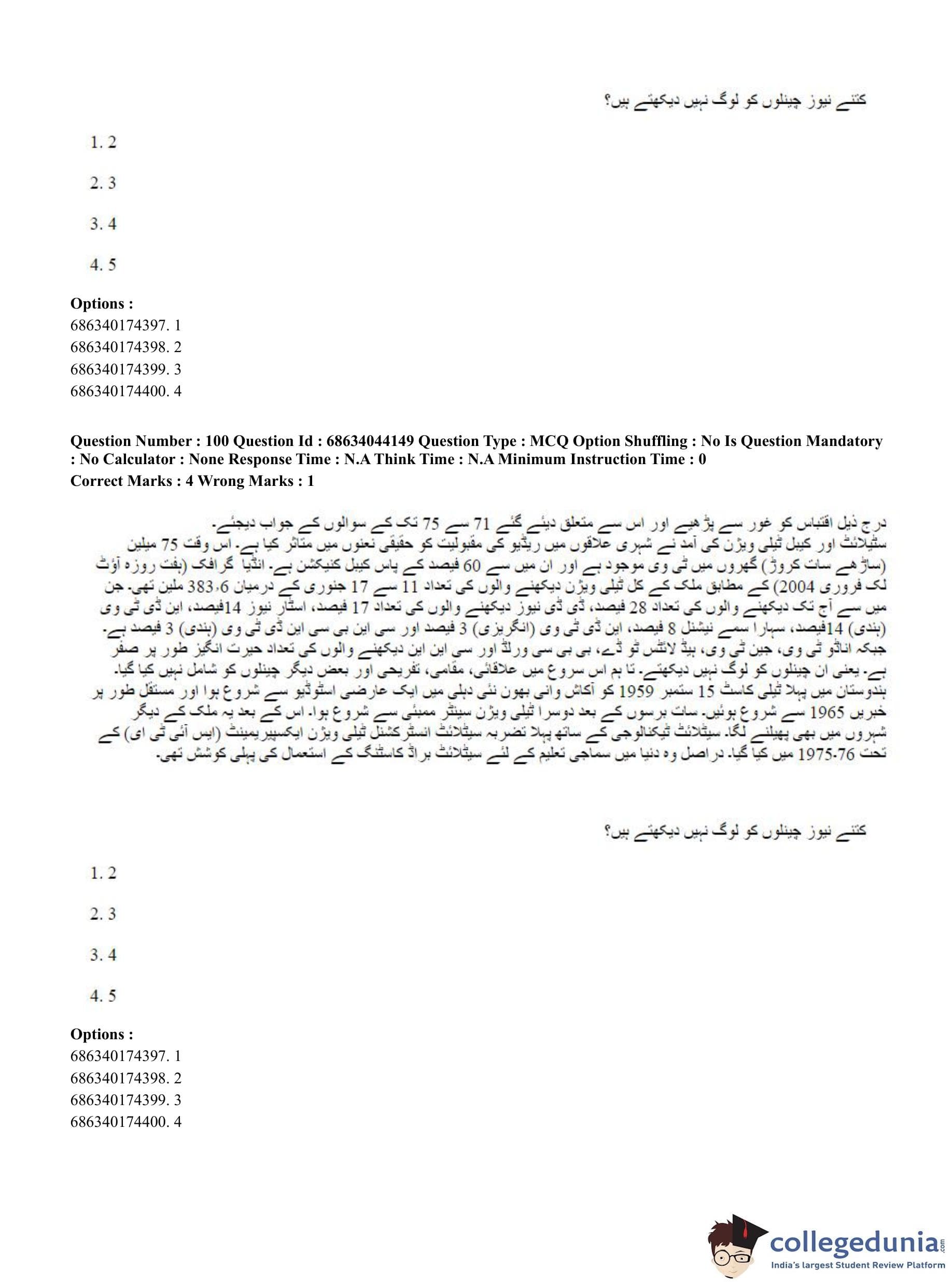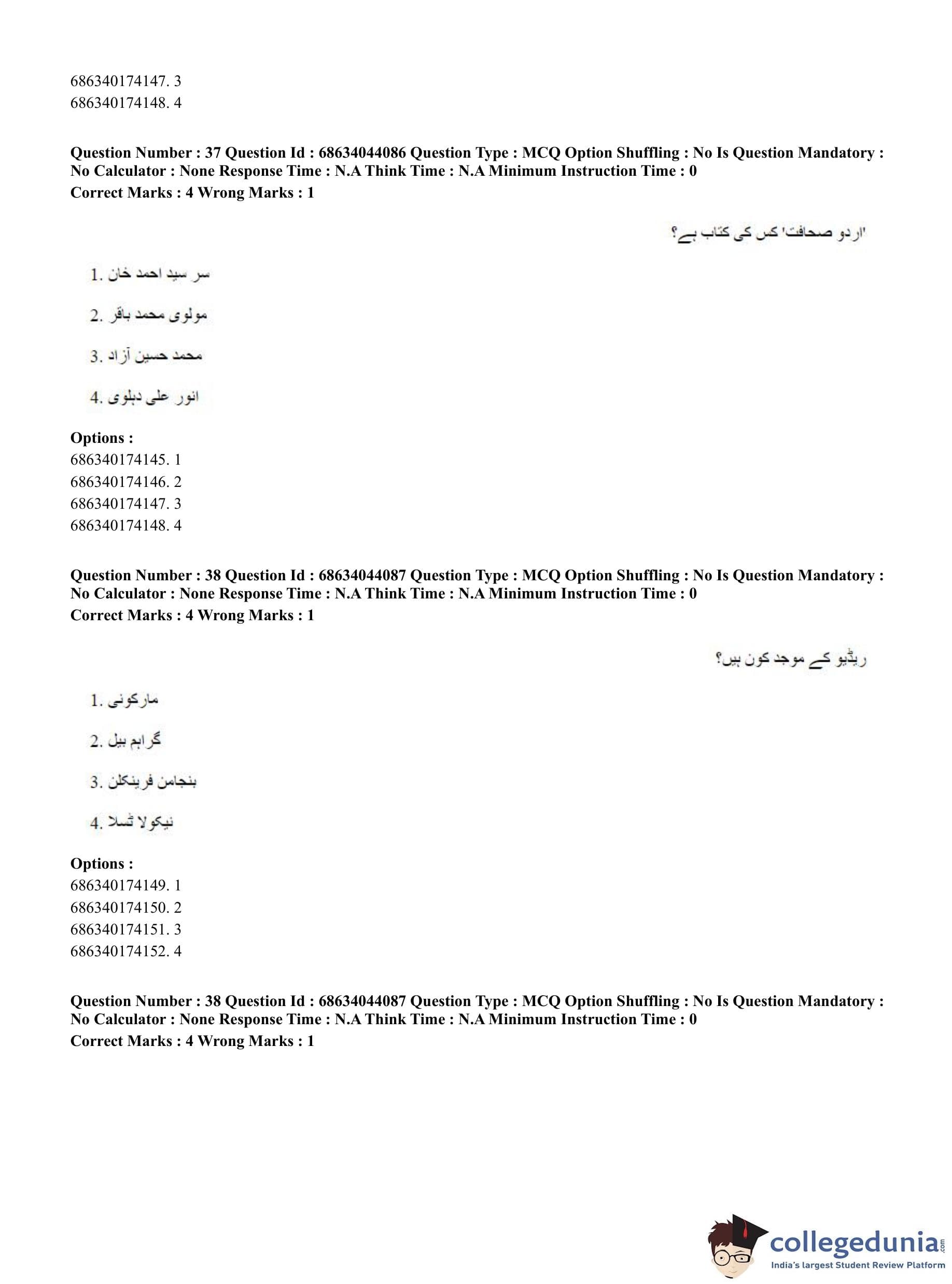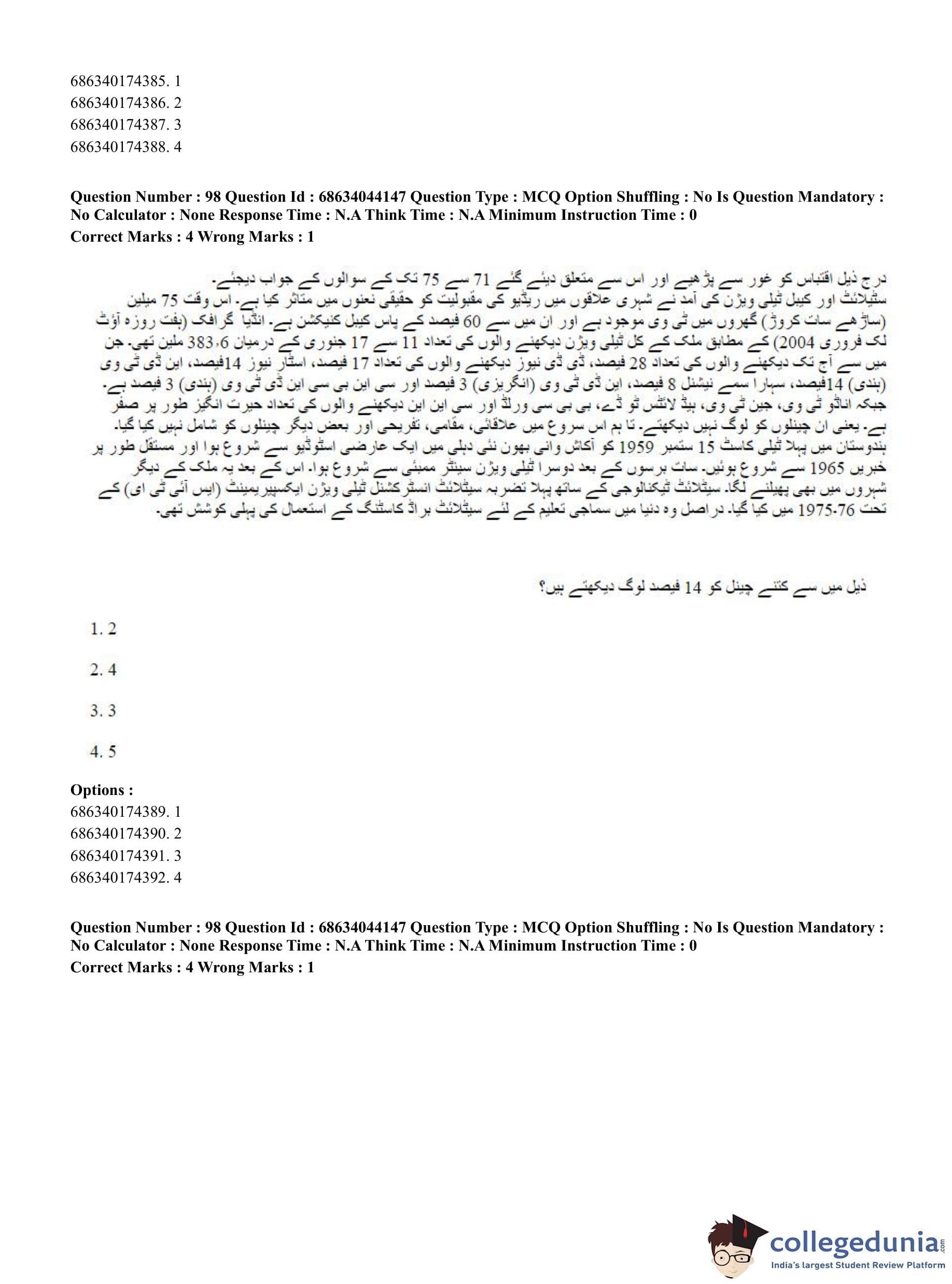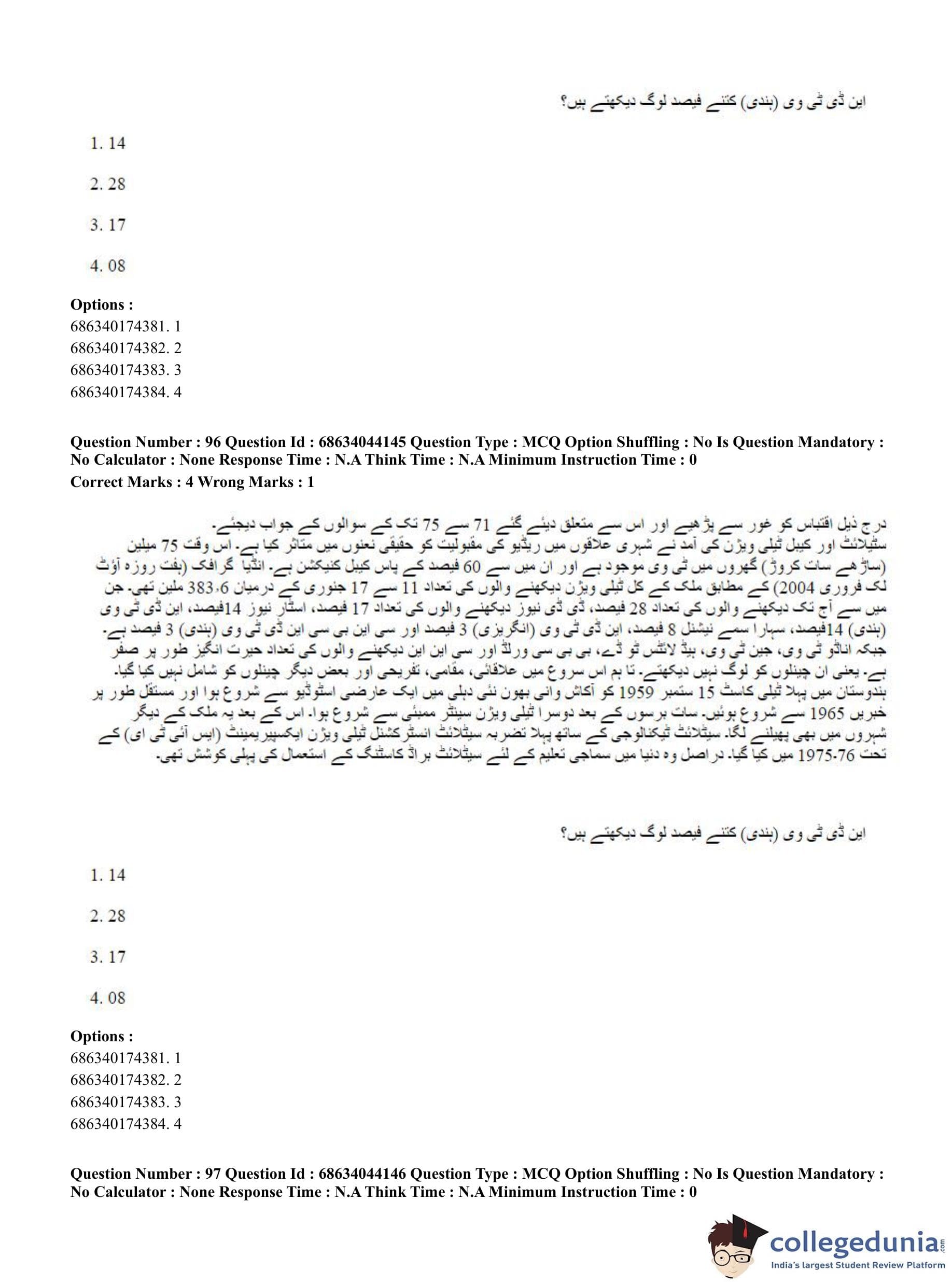 CUET PG 2023 Urdu Journalism Question Paper in English (June 30 - Shift 3)