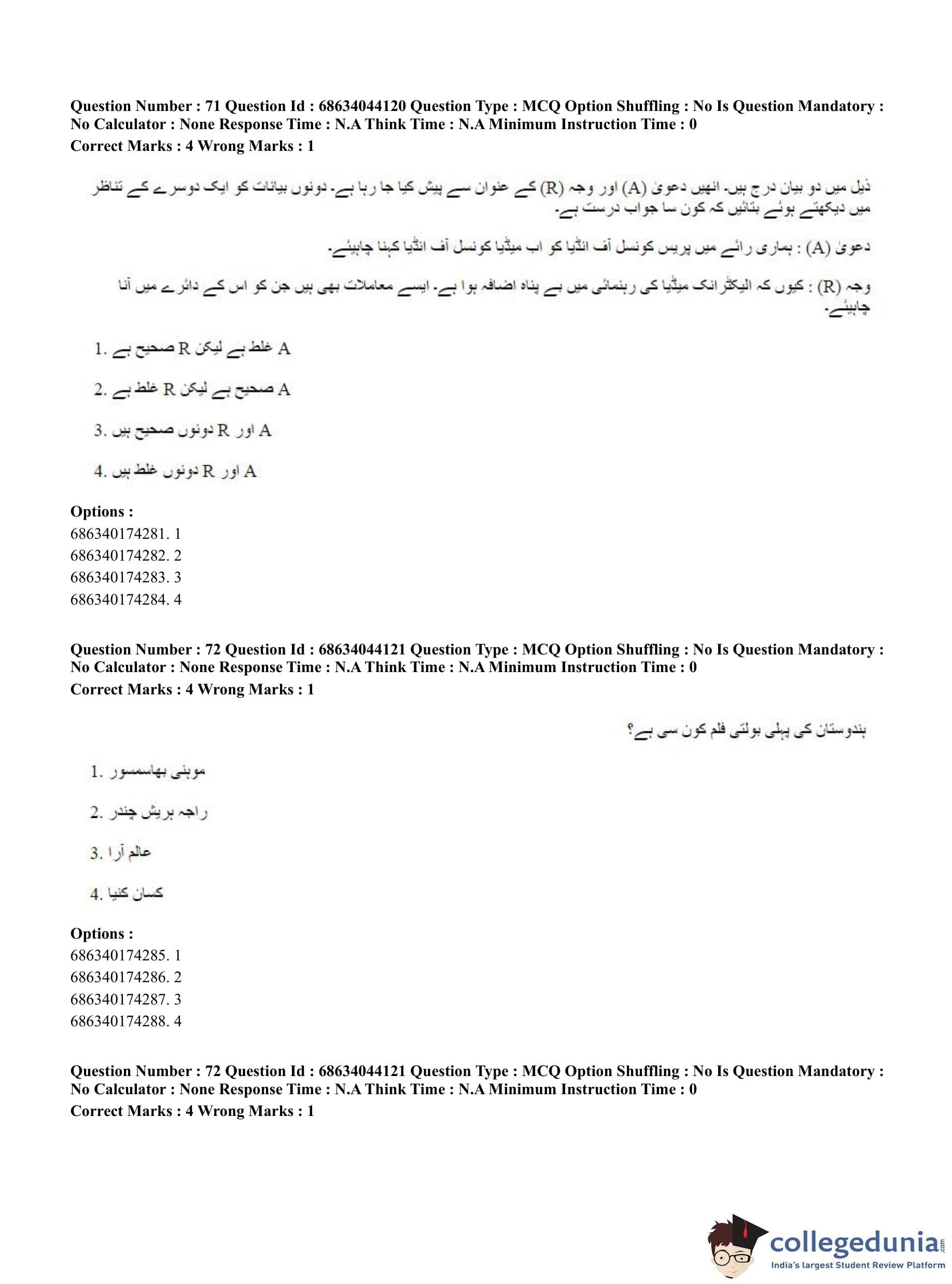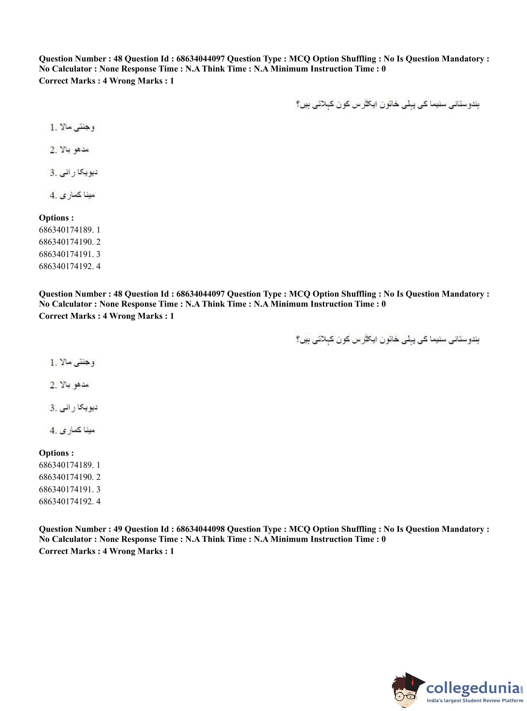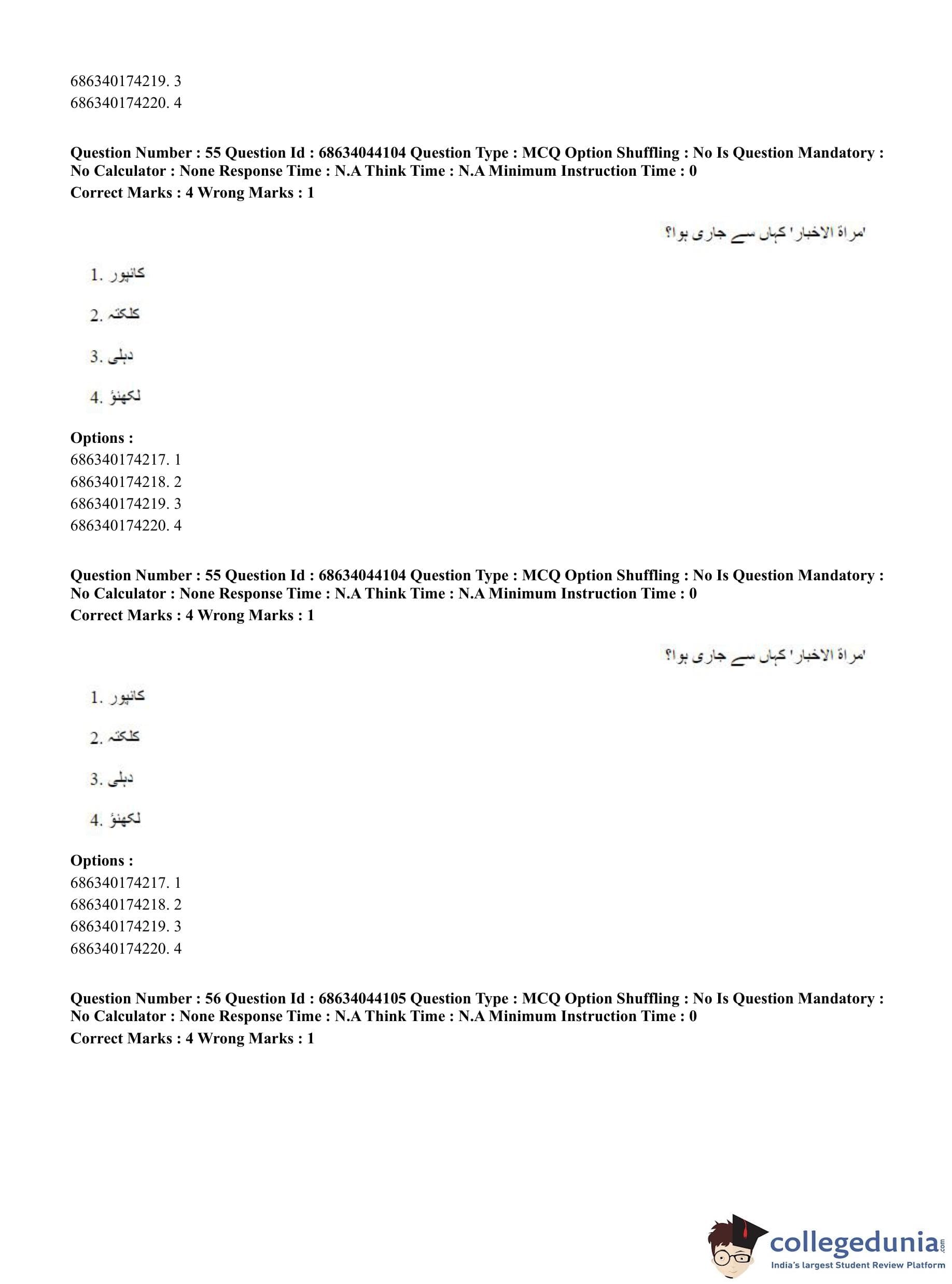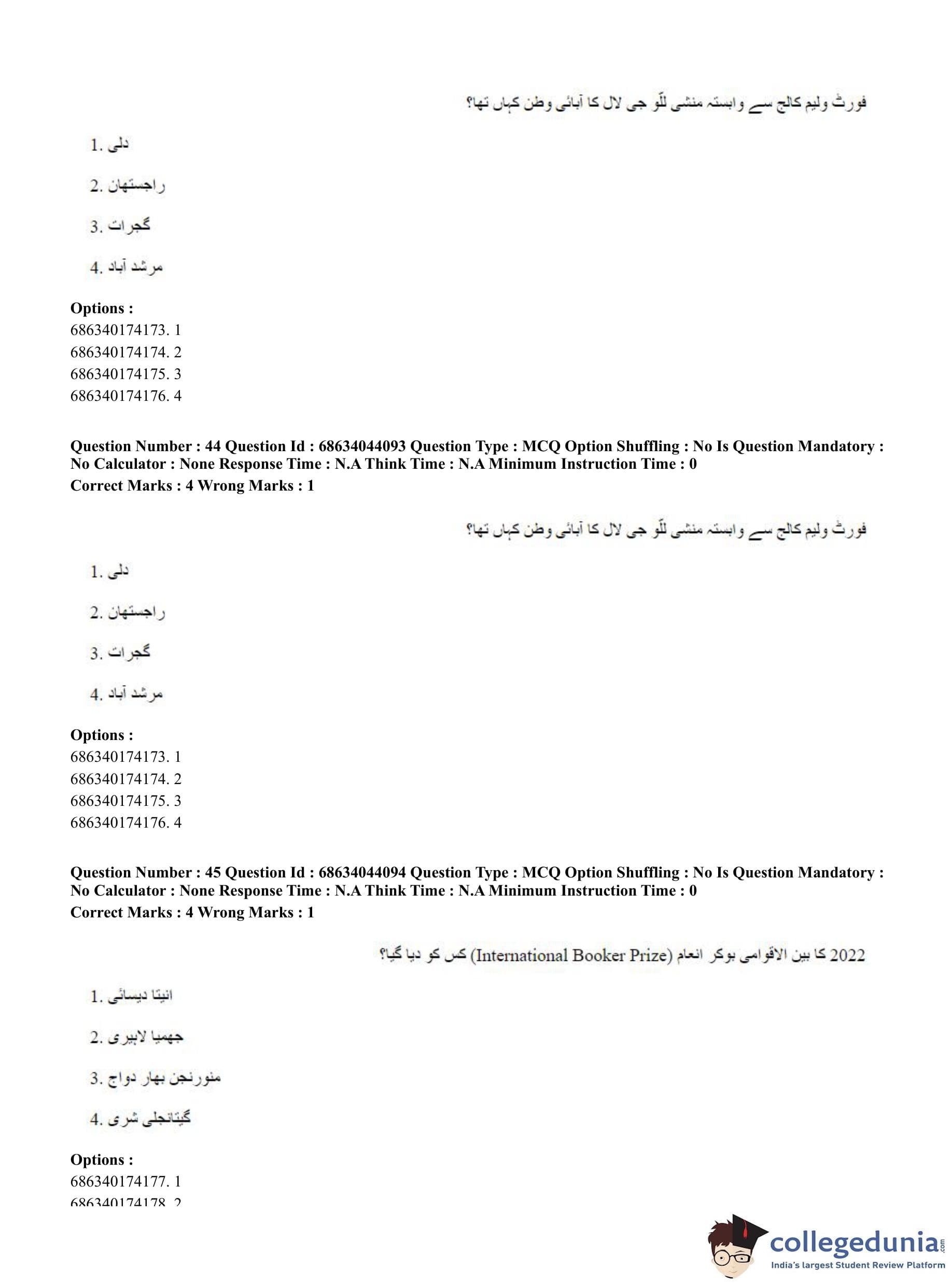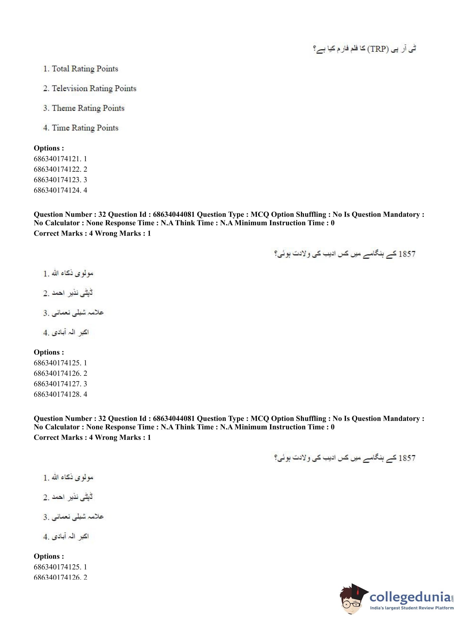 CUET PG 2023 Urdu Journalism Question Paper in English (June 30 - Shift 3)
