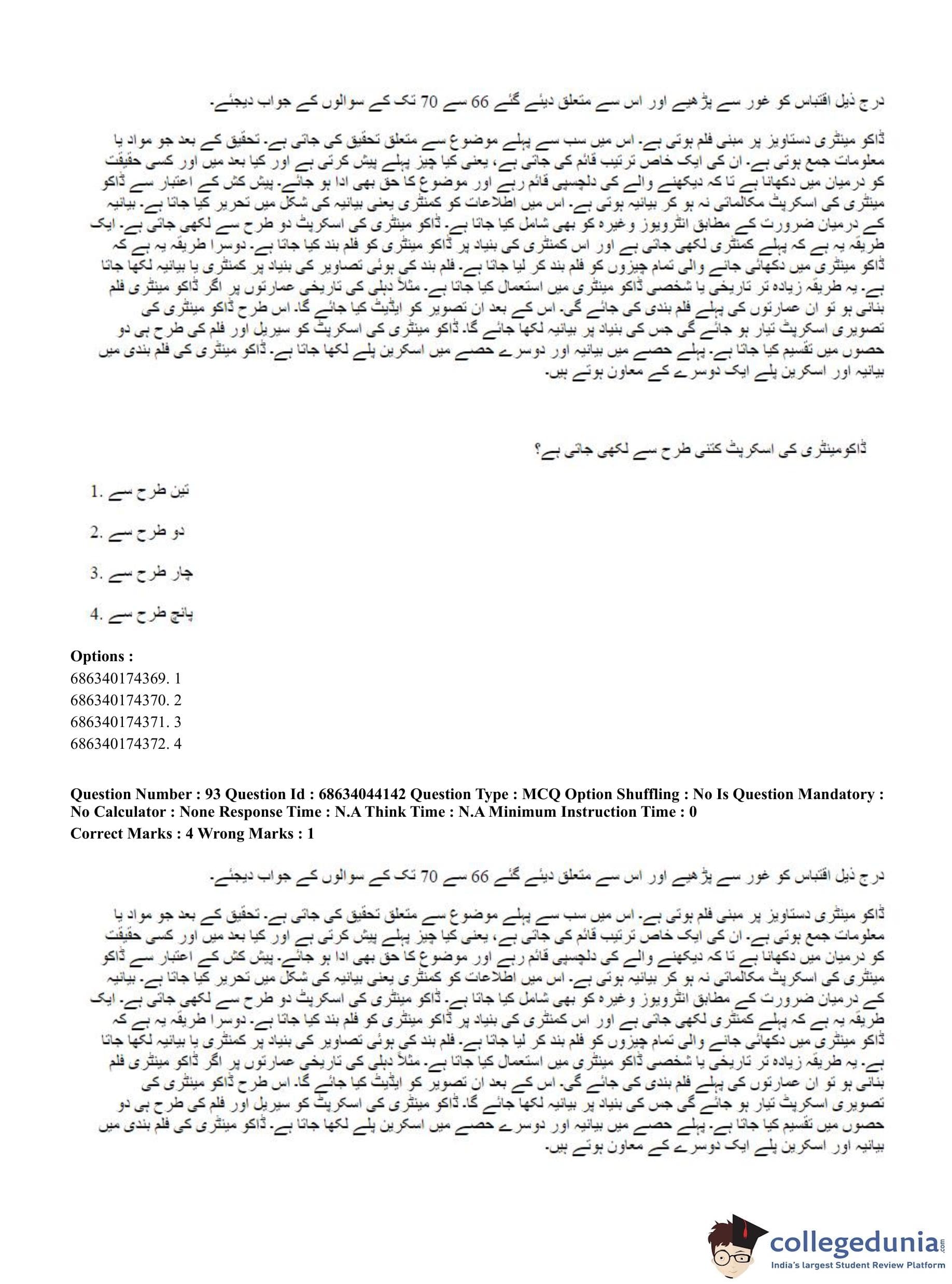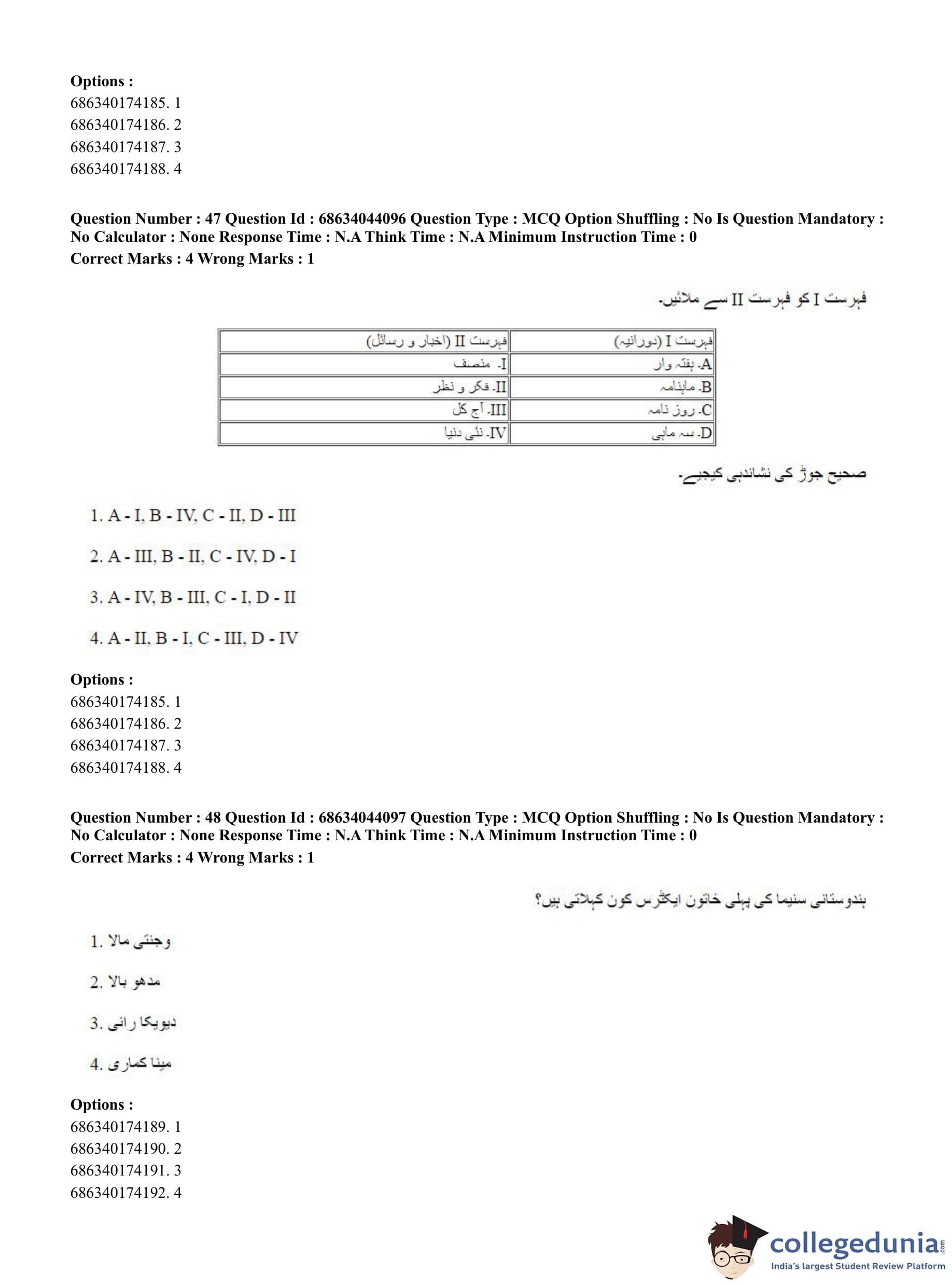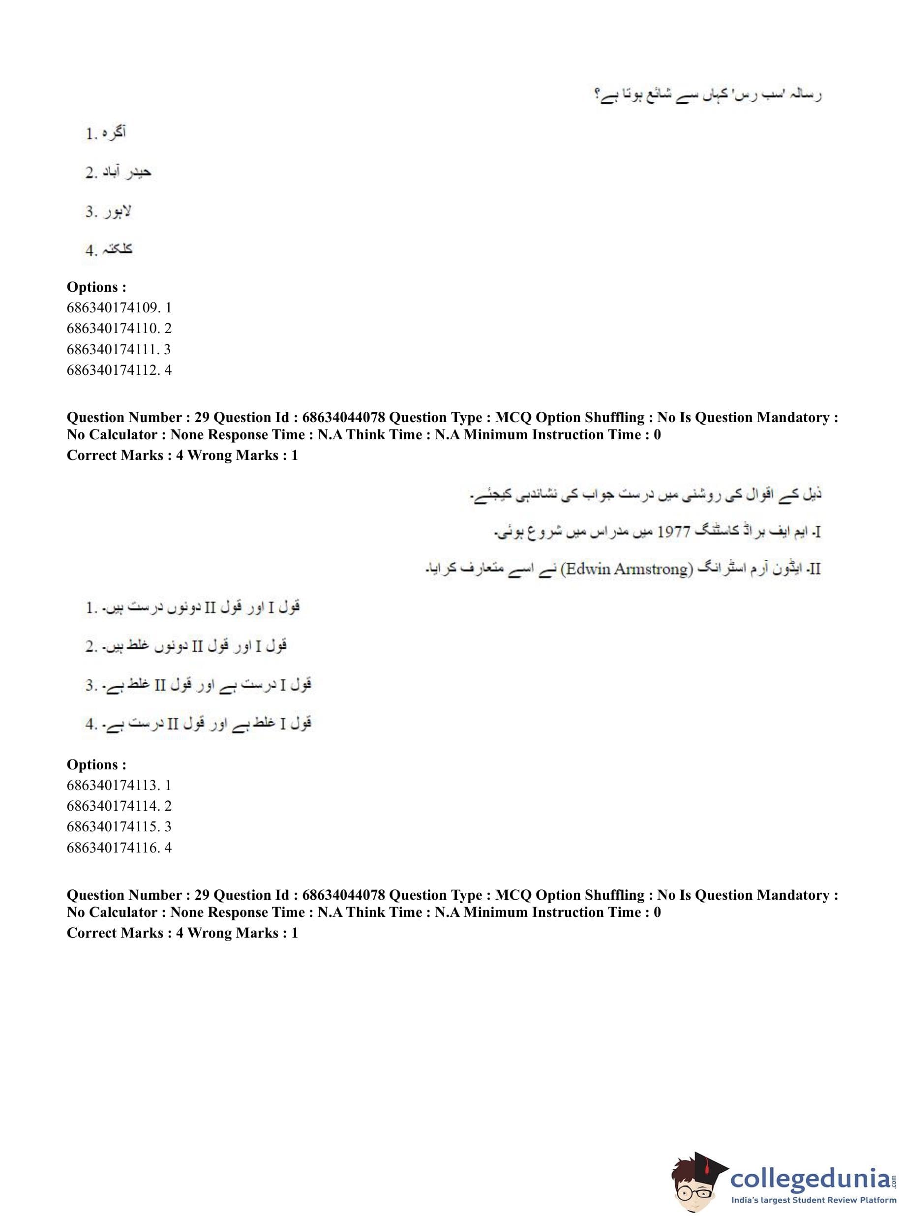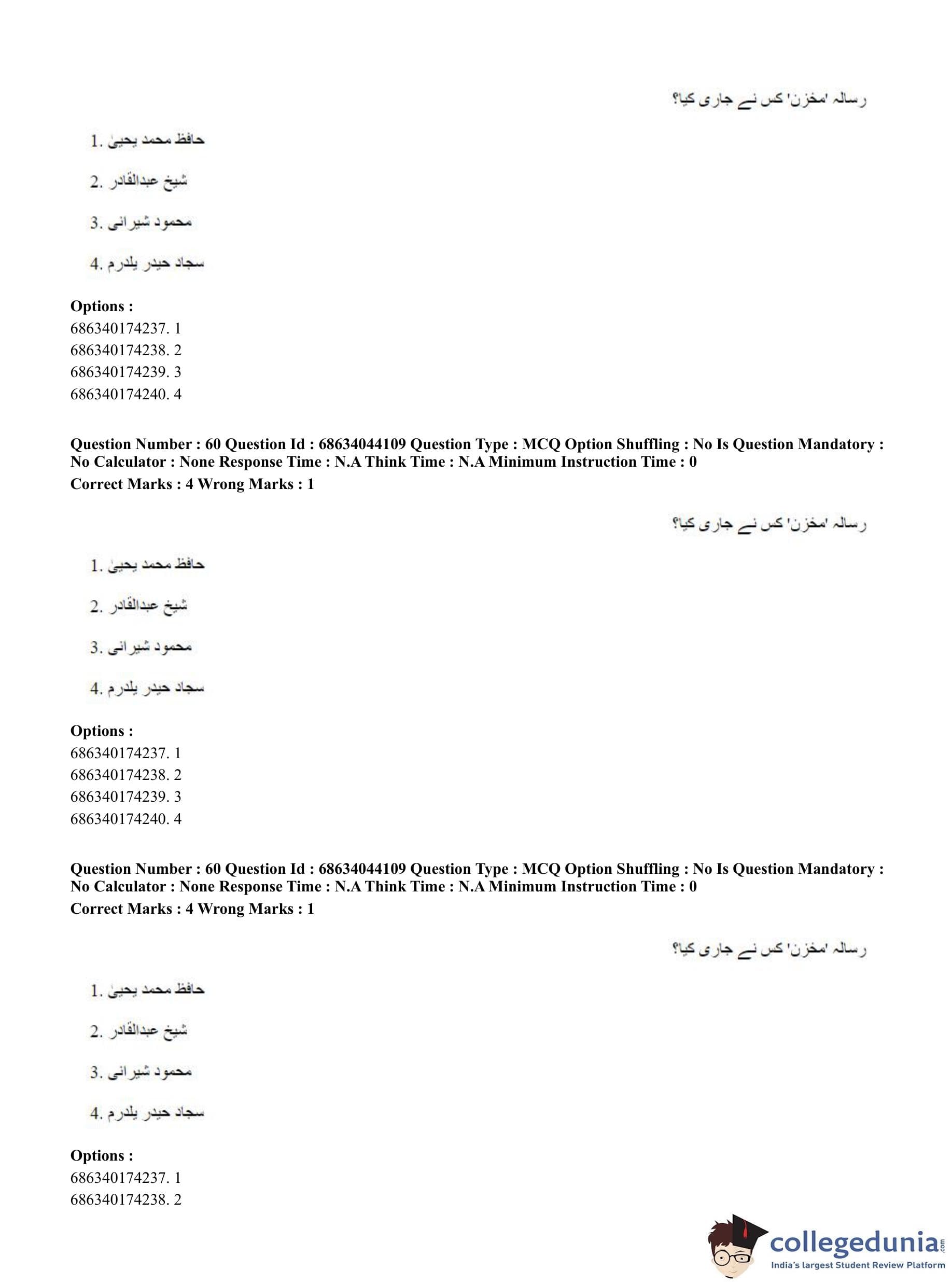 CUET PG 2023 Urdu Journalism Question Paper in English (June 30 - Shift 3)