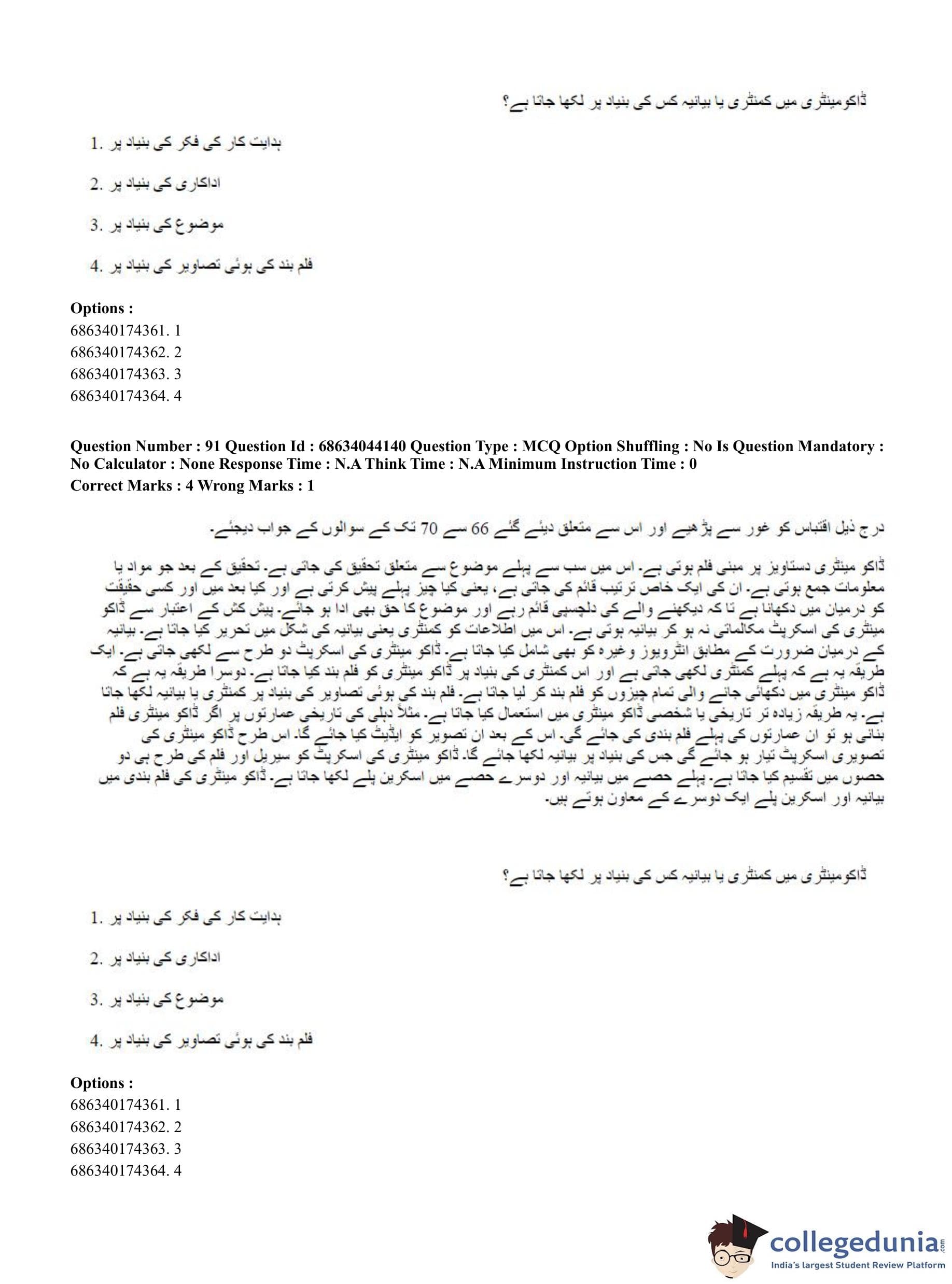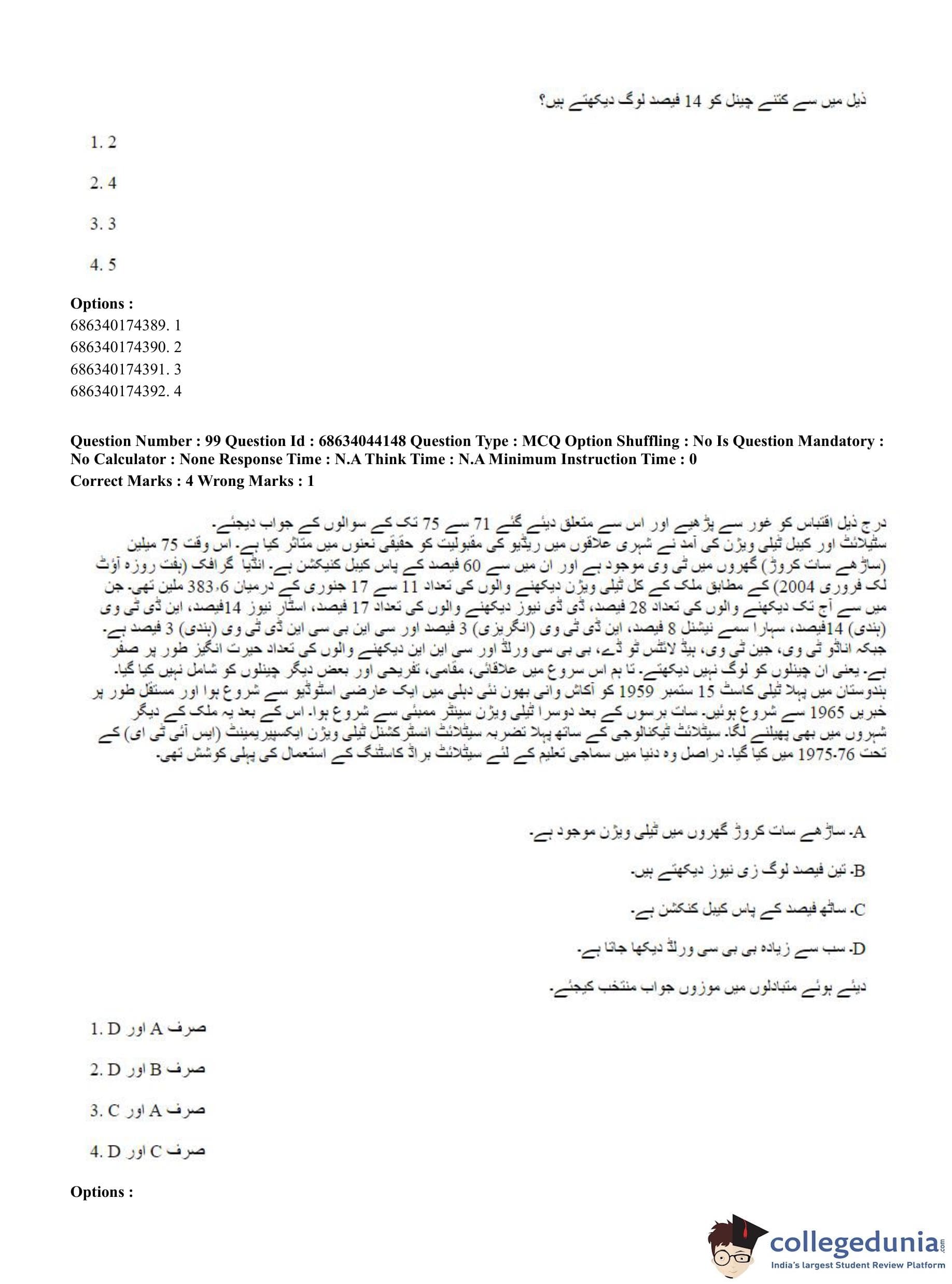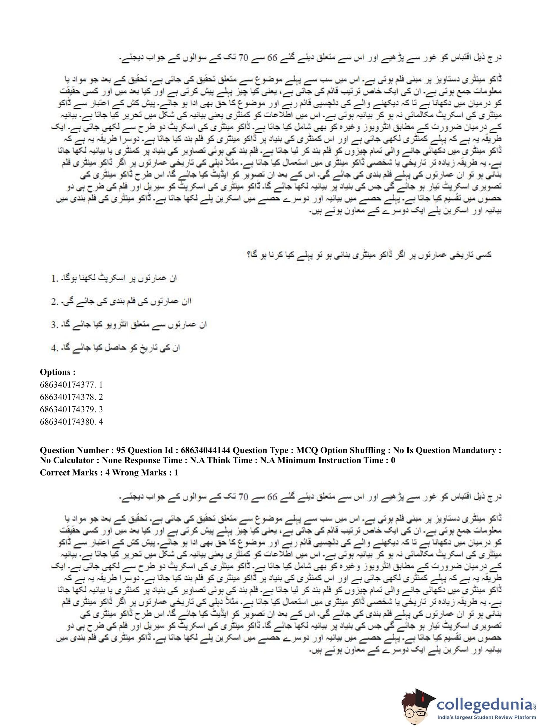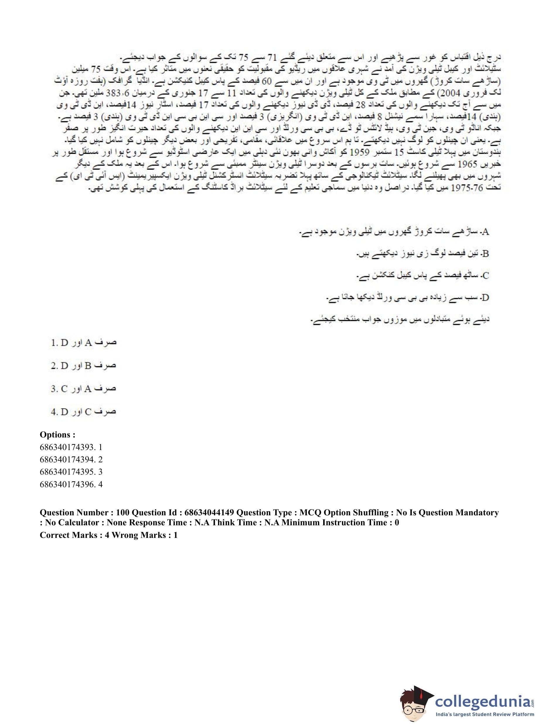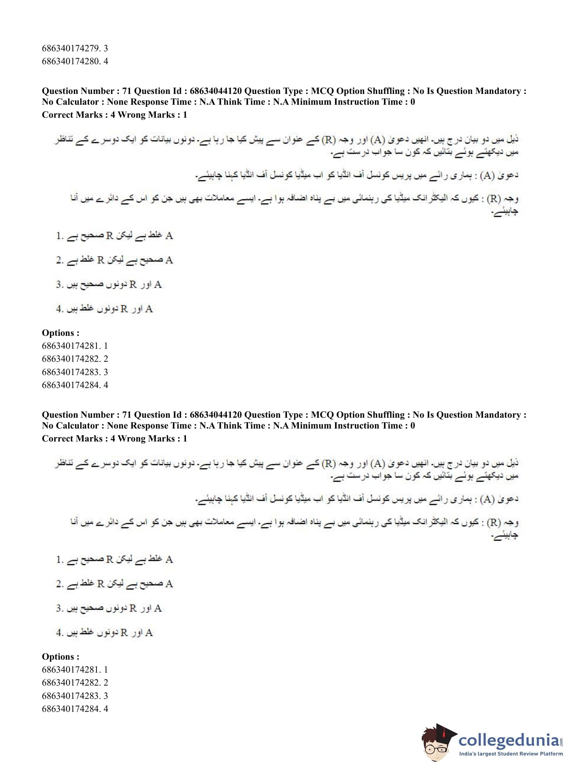 CUET PG 2023 Urdu Journalism Question Paper in English (June 30 - Shift 3)