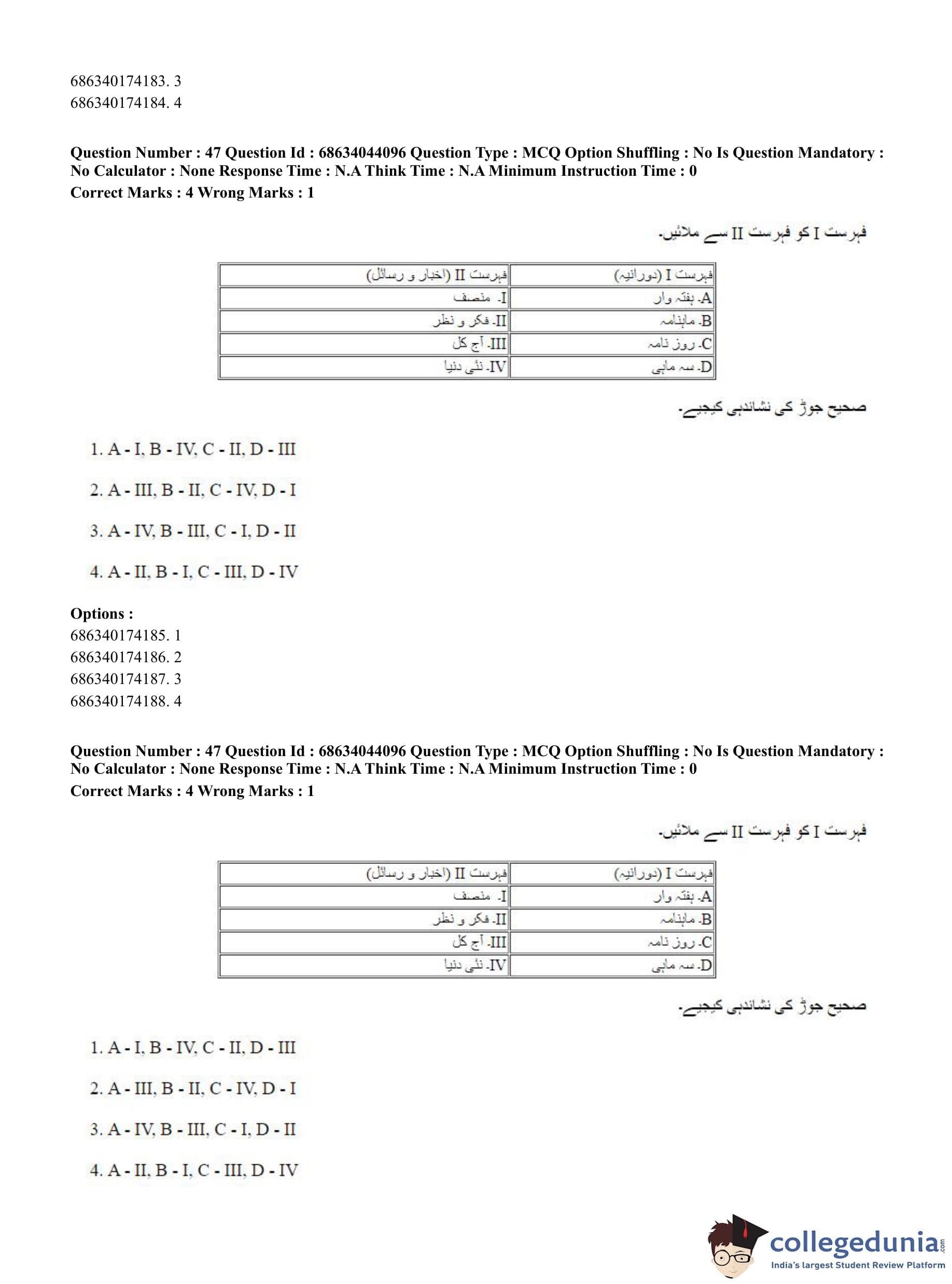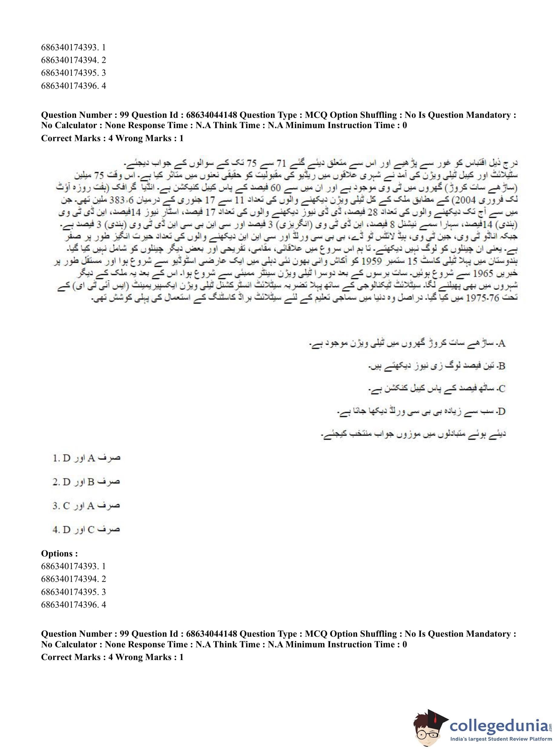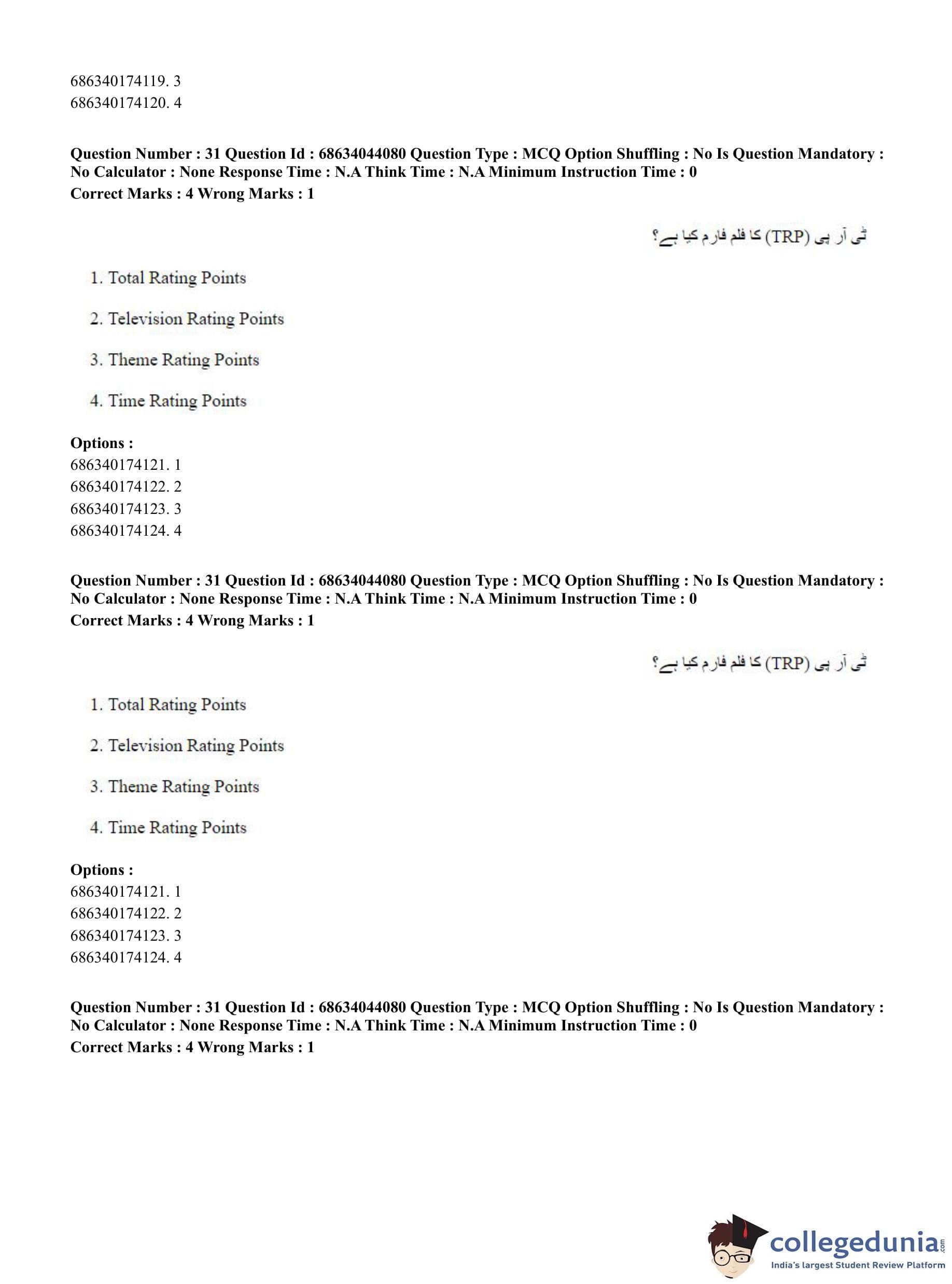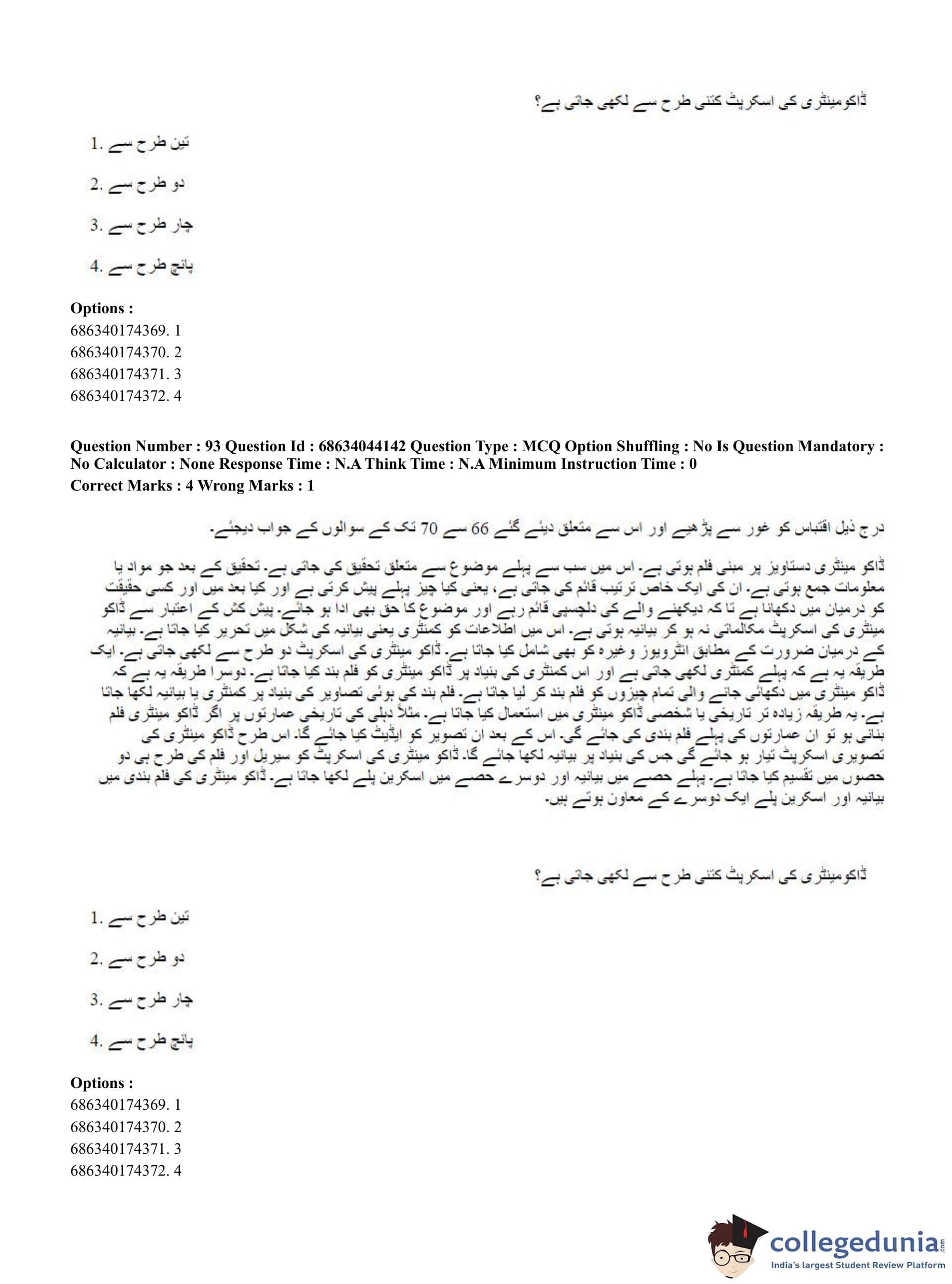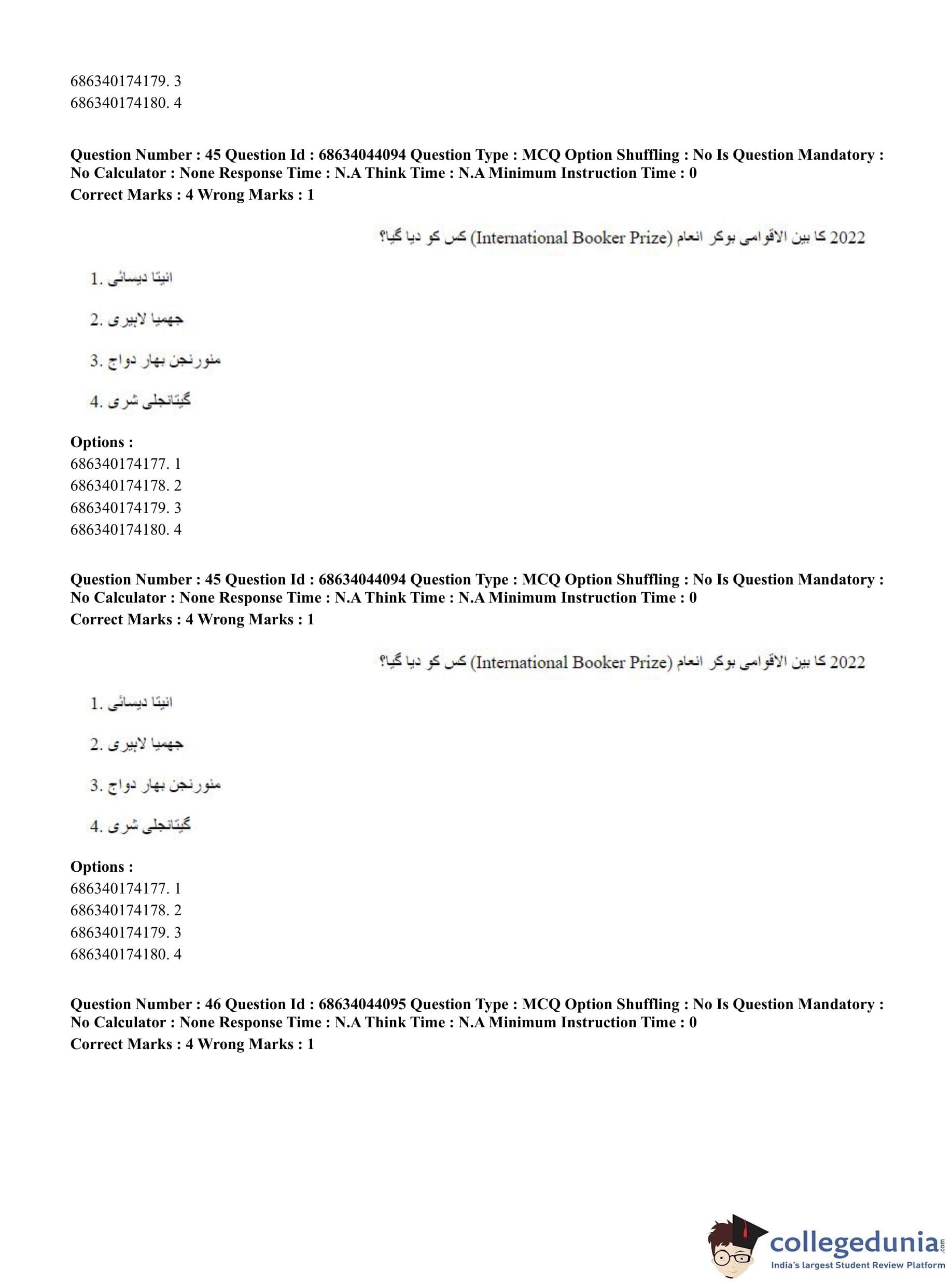 CUET PG 2023 Urdu Journalism Question Paper in English (June 30 - Shift 3)