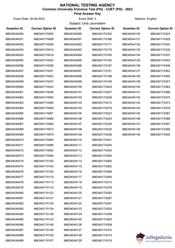 | CUET PG Urdu Journalism Question Paper 2023 PDF | CUET PG Urdu Journalism Answer Key 2023 PDF |