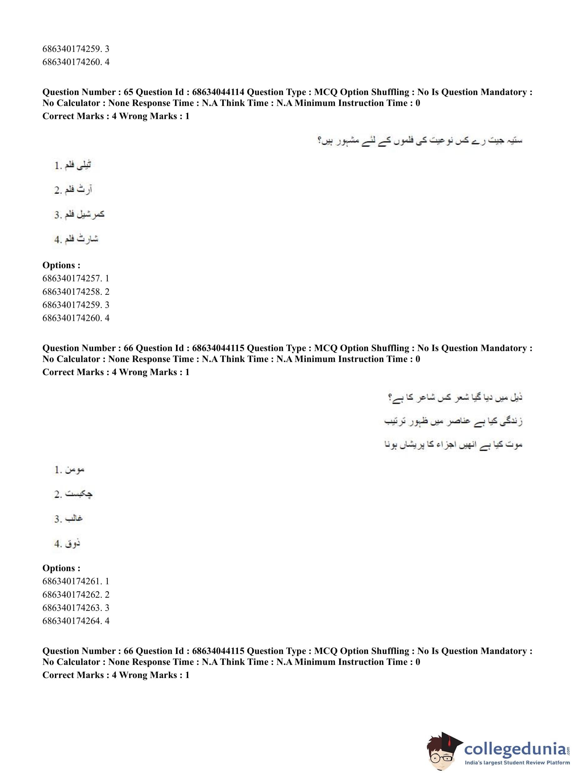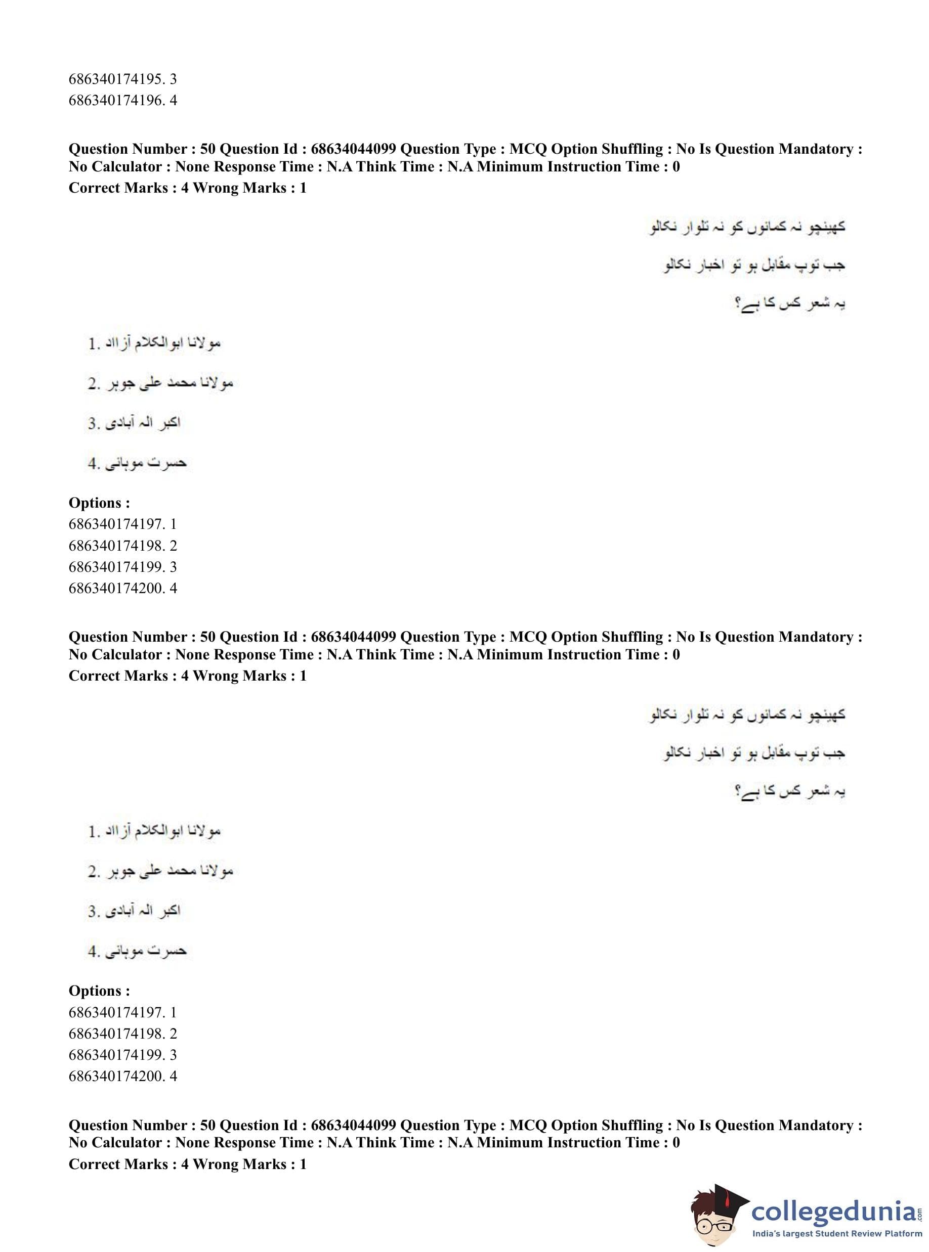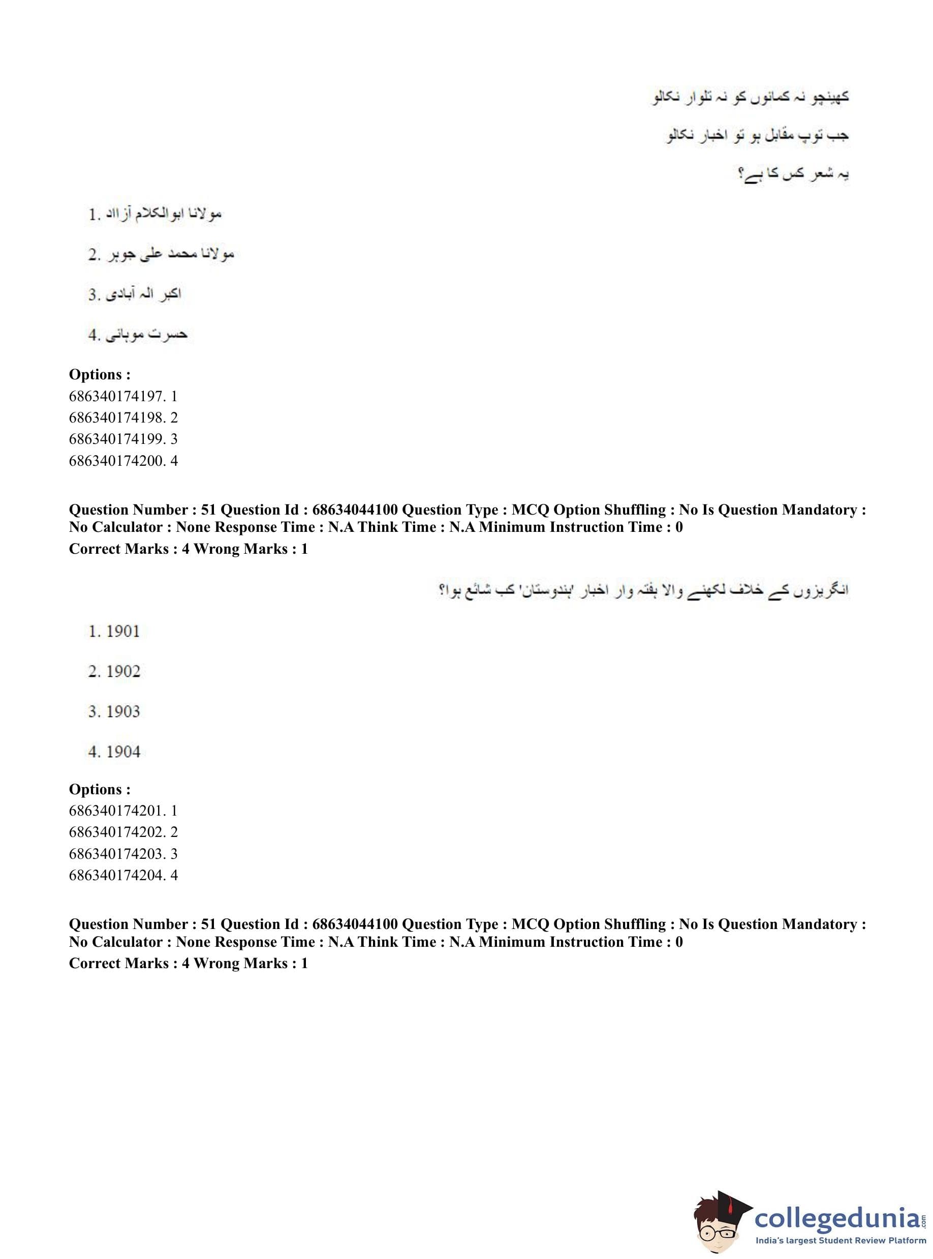 CUET PG 2023 Urdu Journalism Question Paper with Answer Key PDF in English is available for download here. The exam was conducted by National Testing Agency (NTA) on June 30, 2023 in Shift 3. The question paper comprised a total of 100 questions divided into 2 sections.