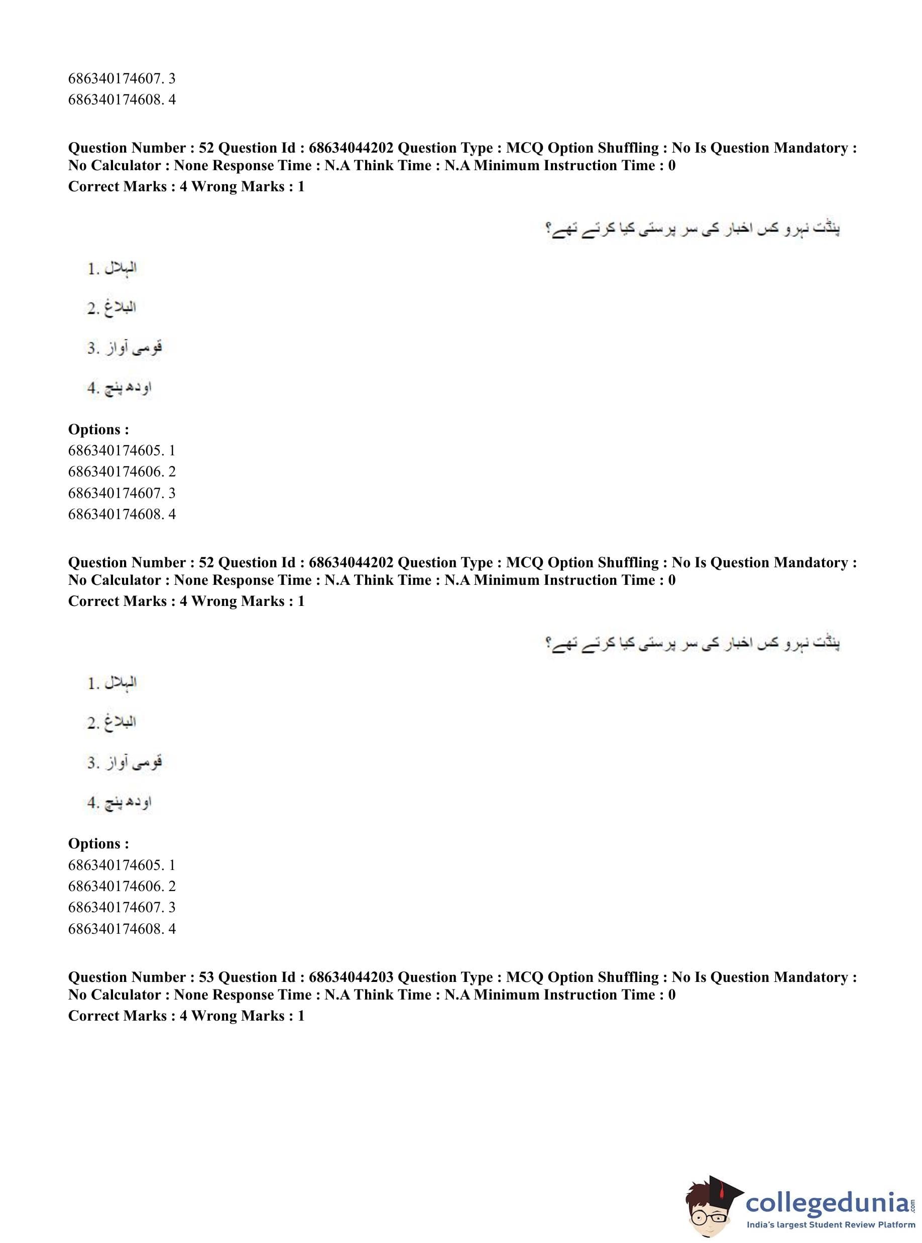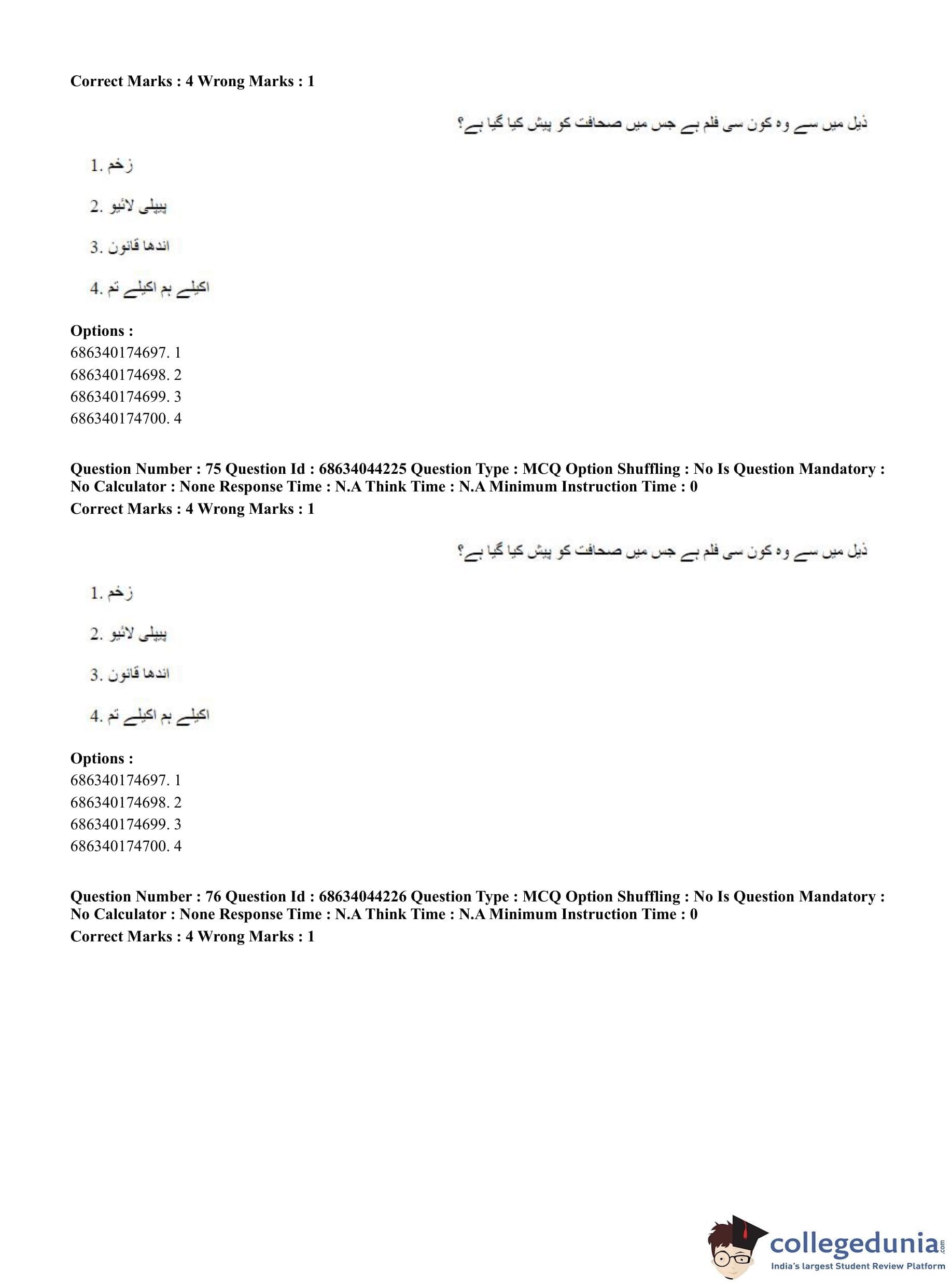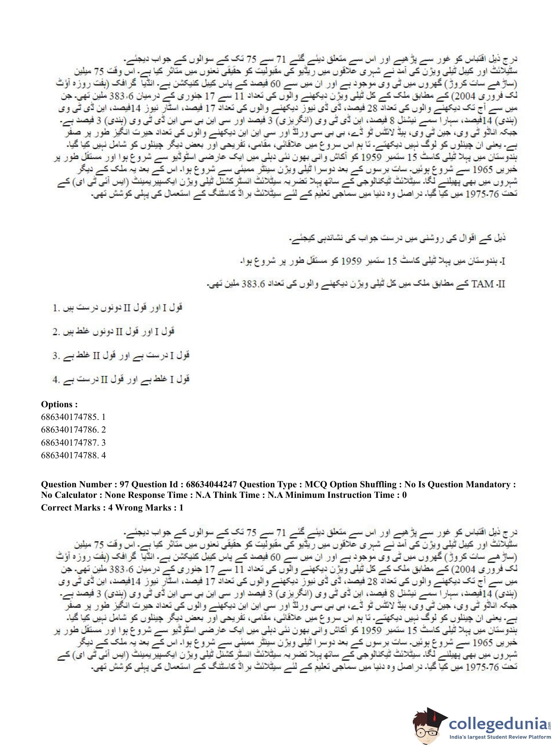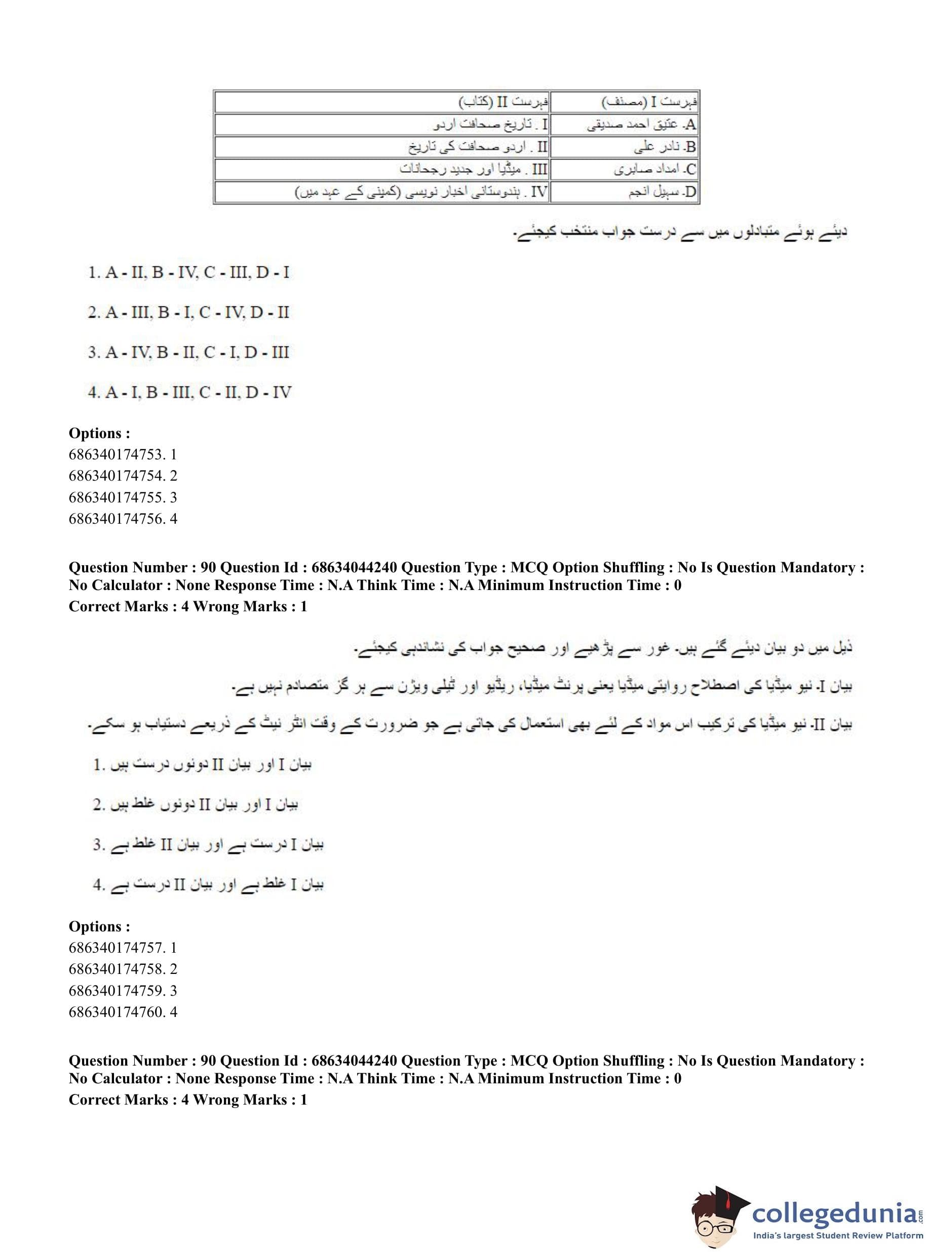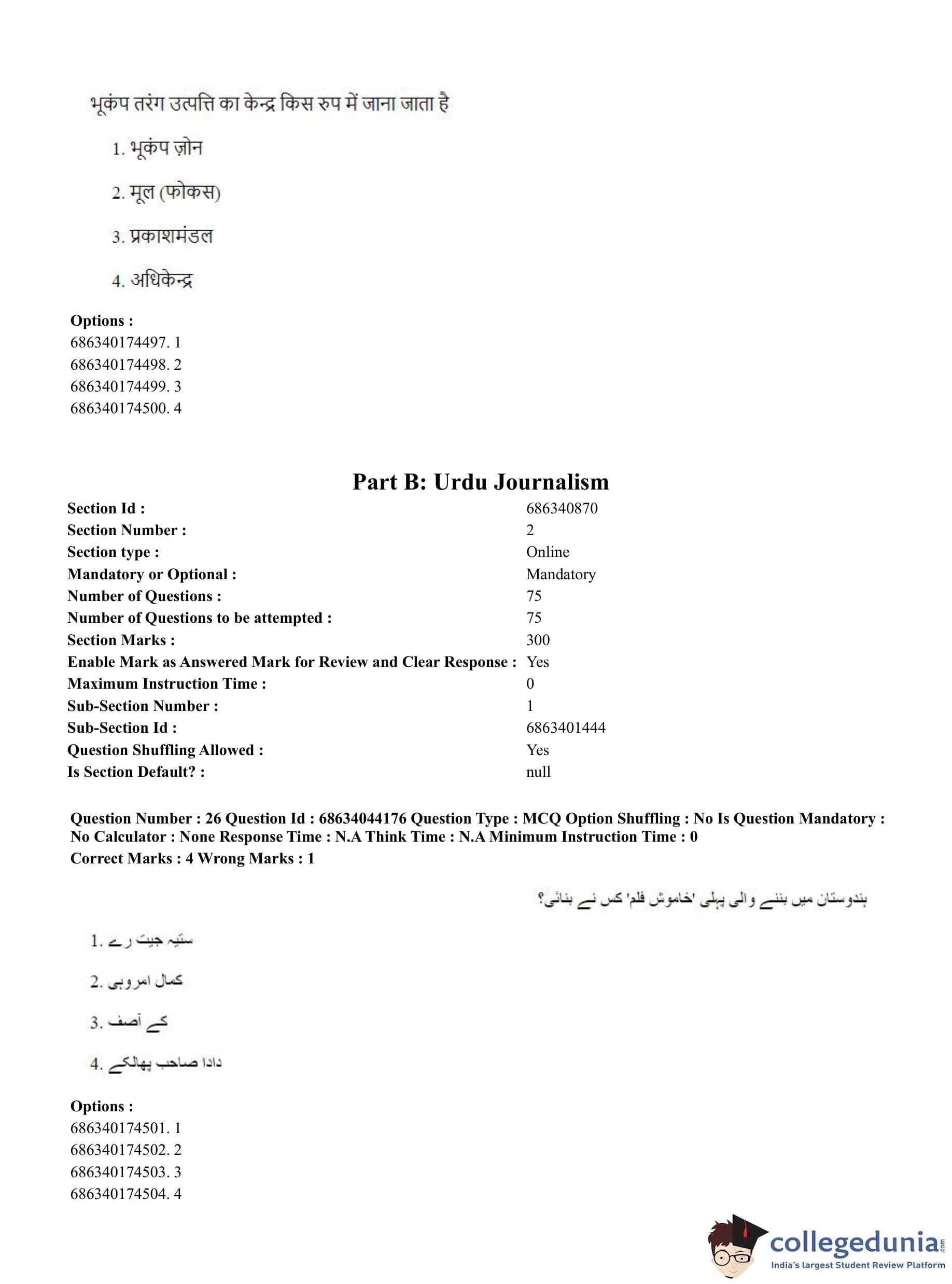 CUET PG 2023 Urdu Journalism Question Paper in Hindi (June 30 - Shift 3)