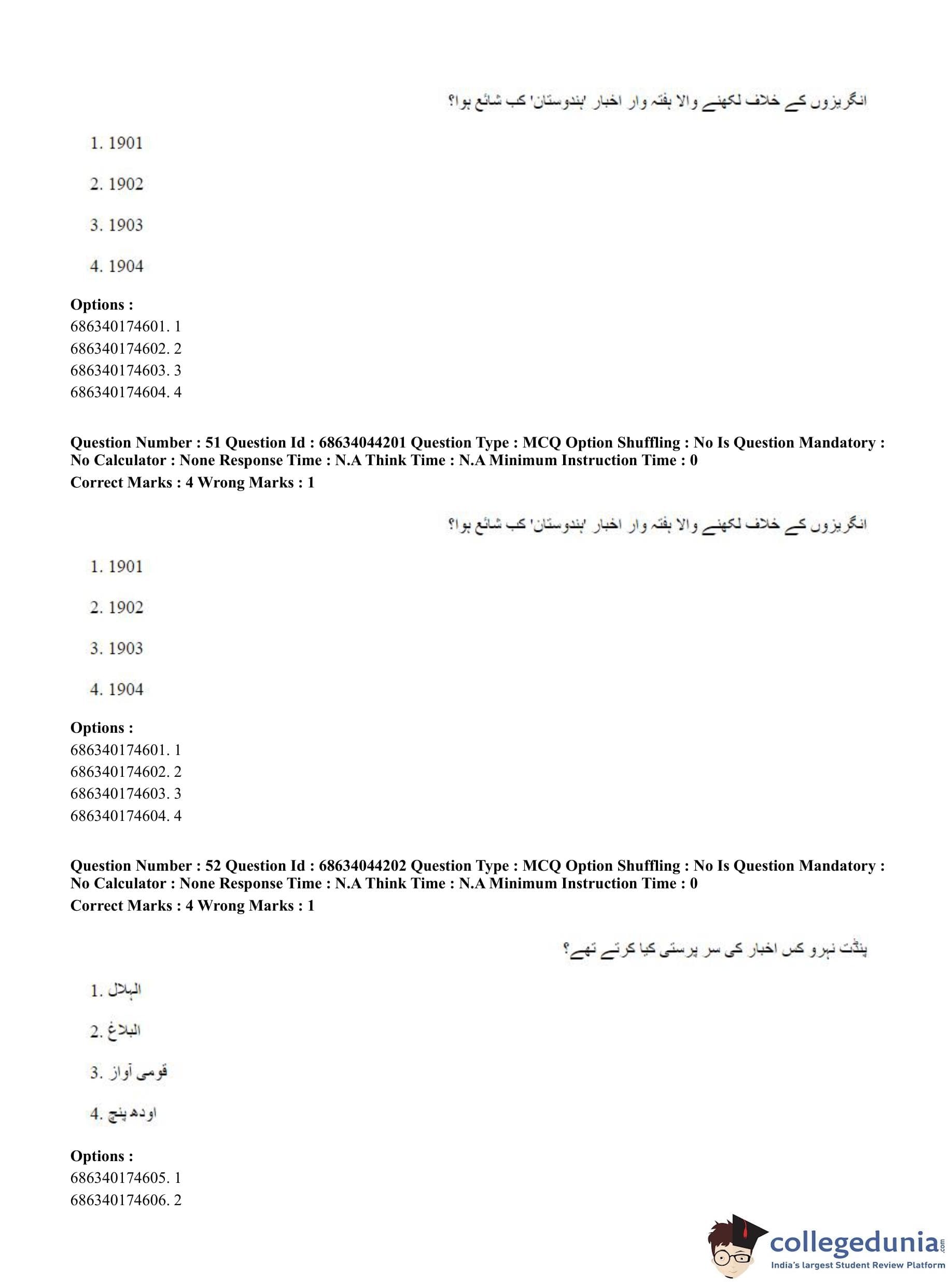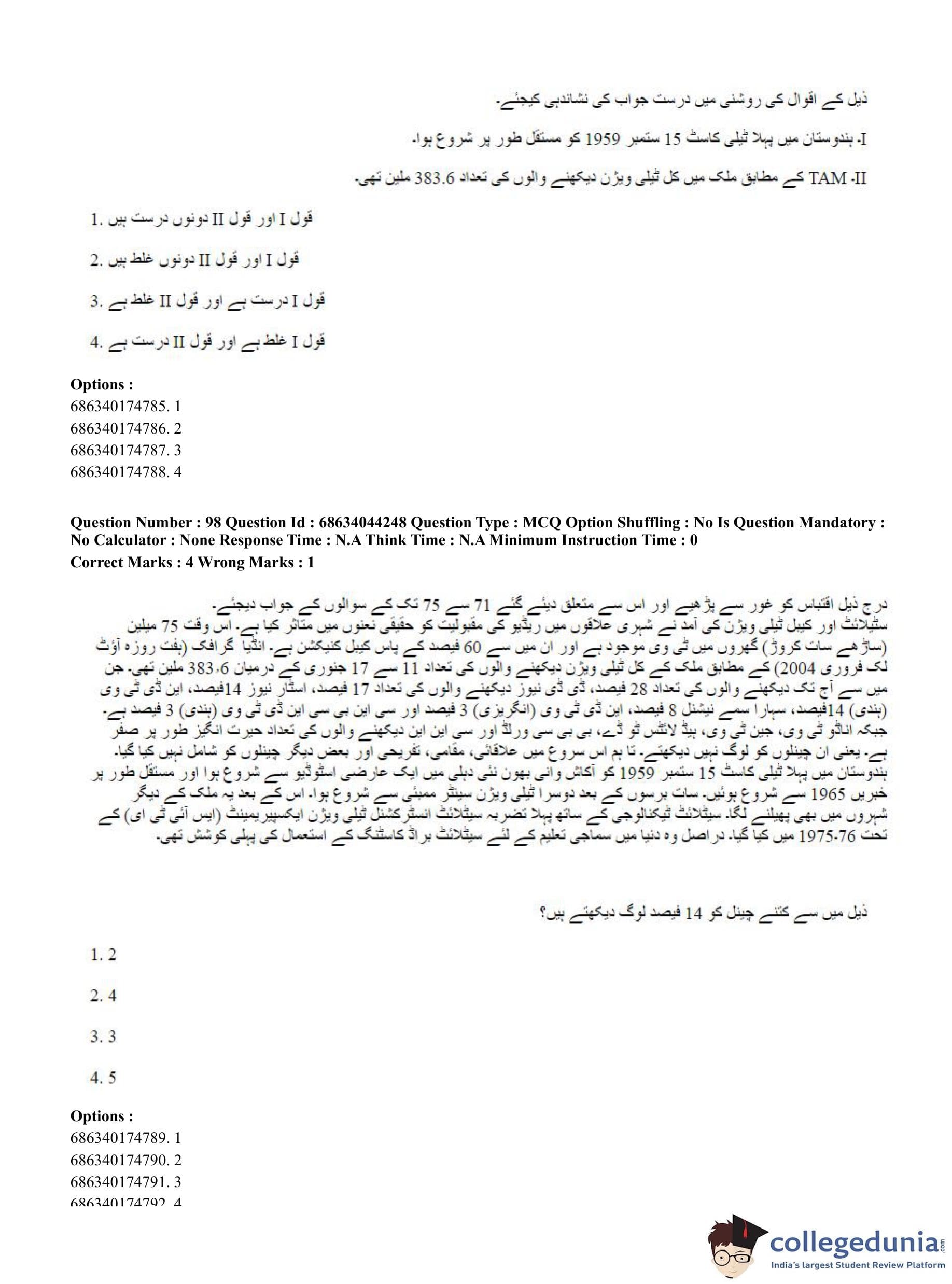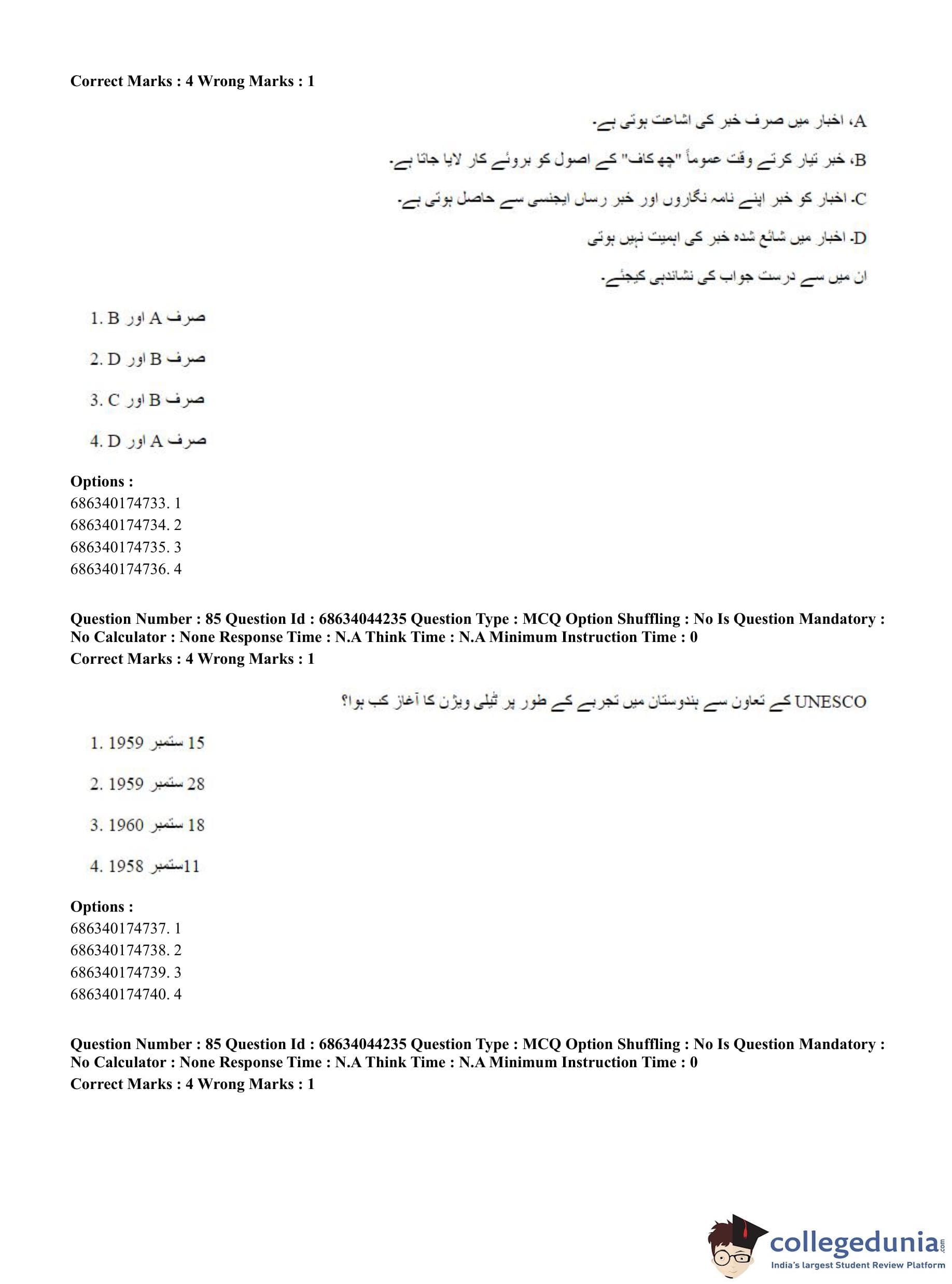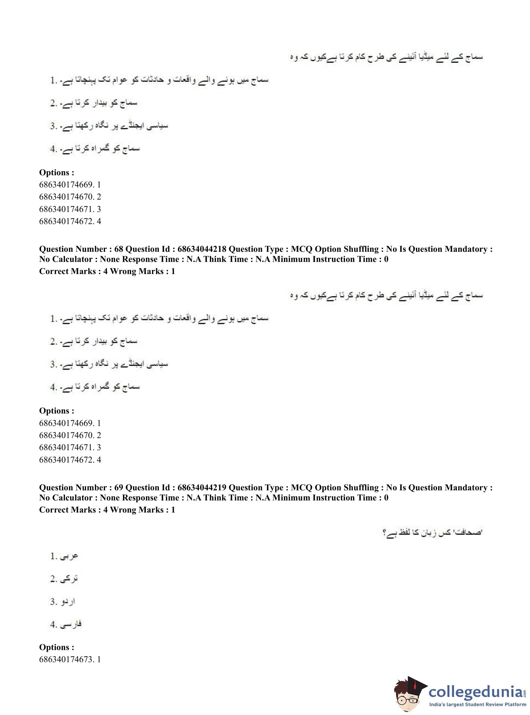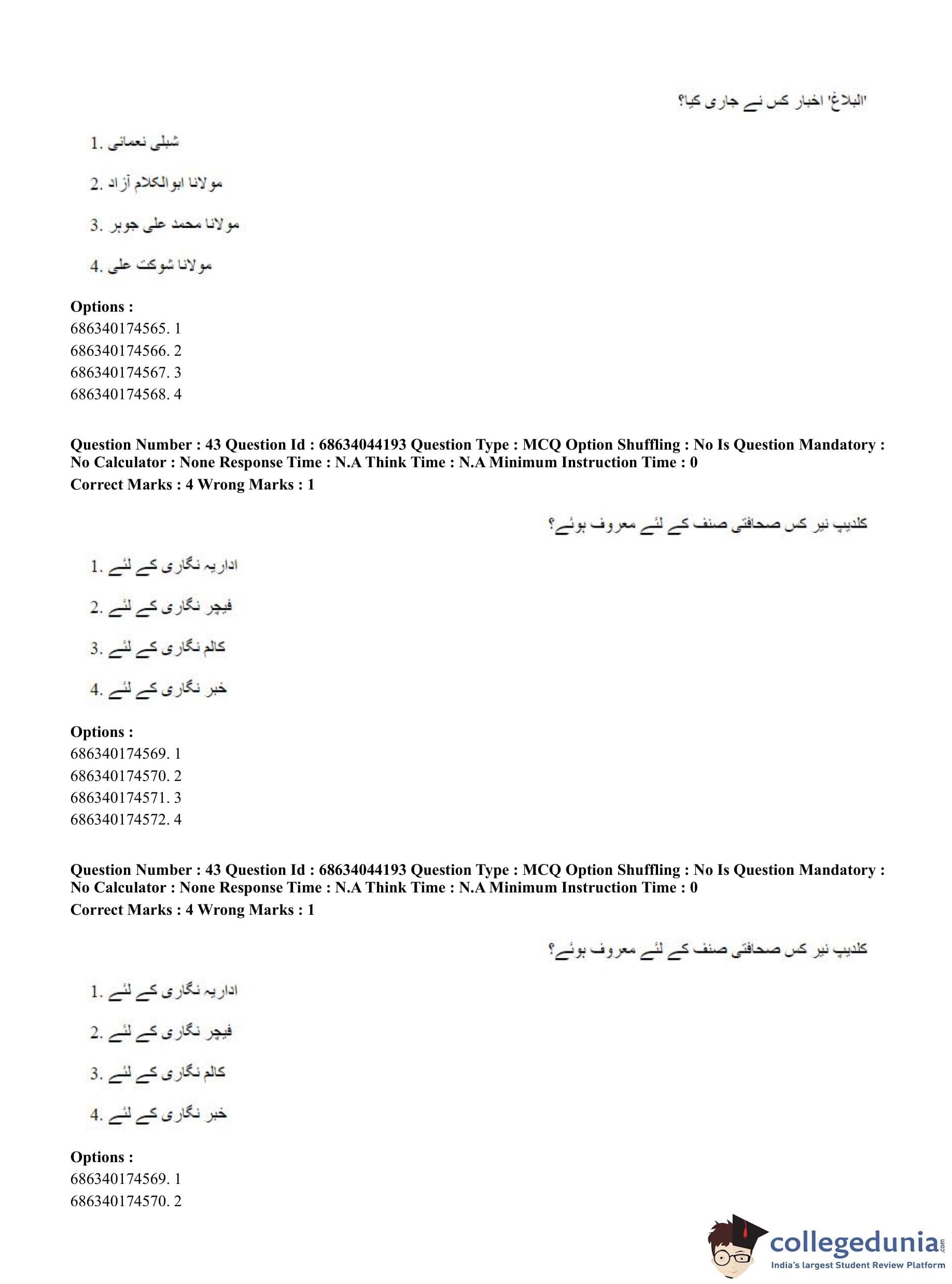 CUET PG 2023 Urdu Journalism Question Paper in Hindi (June 30 - Shift 3)
