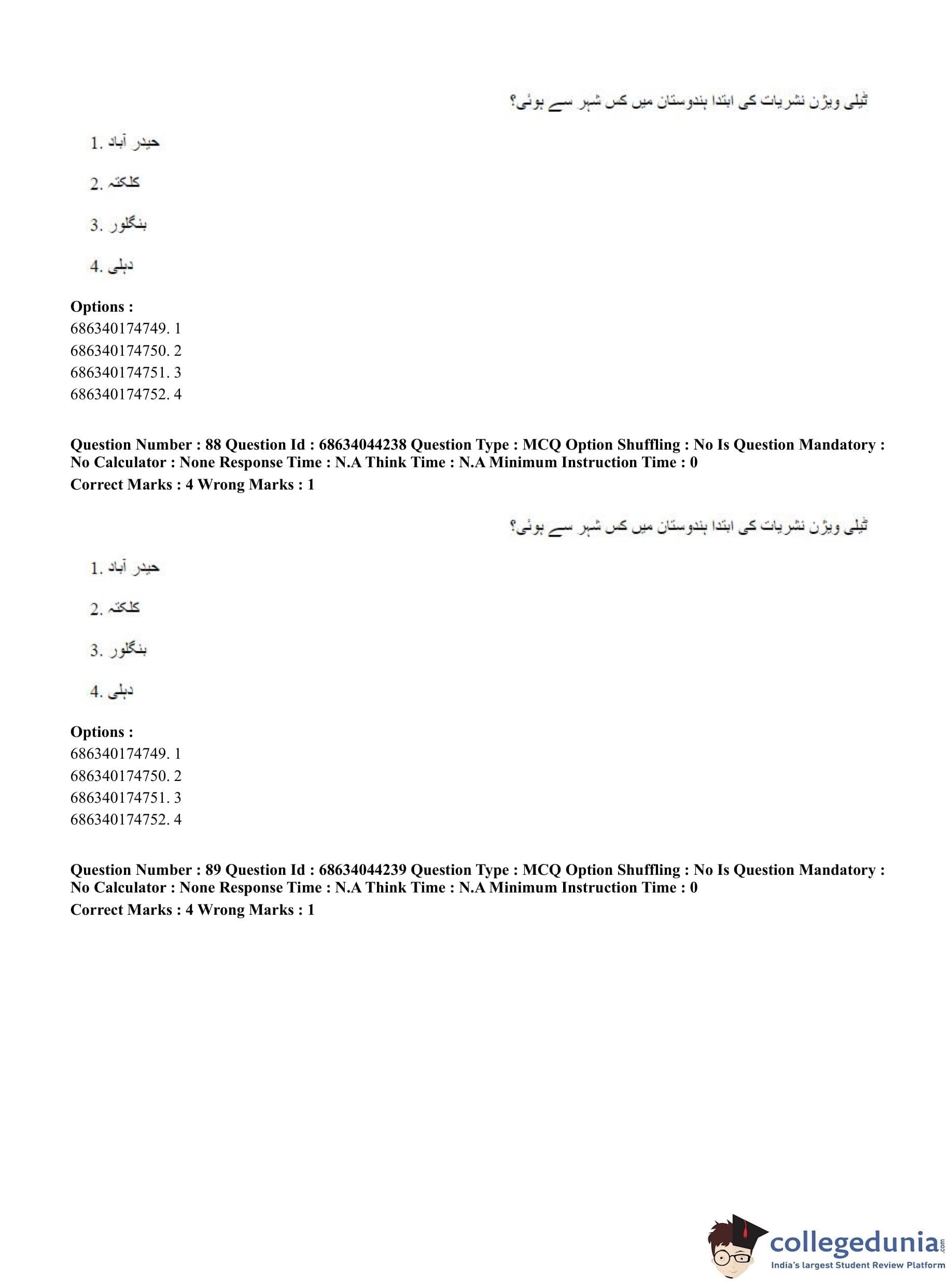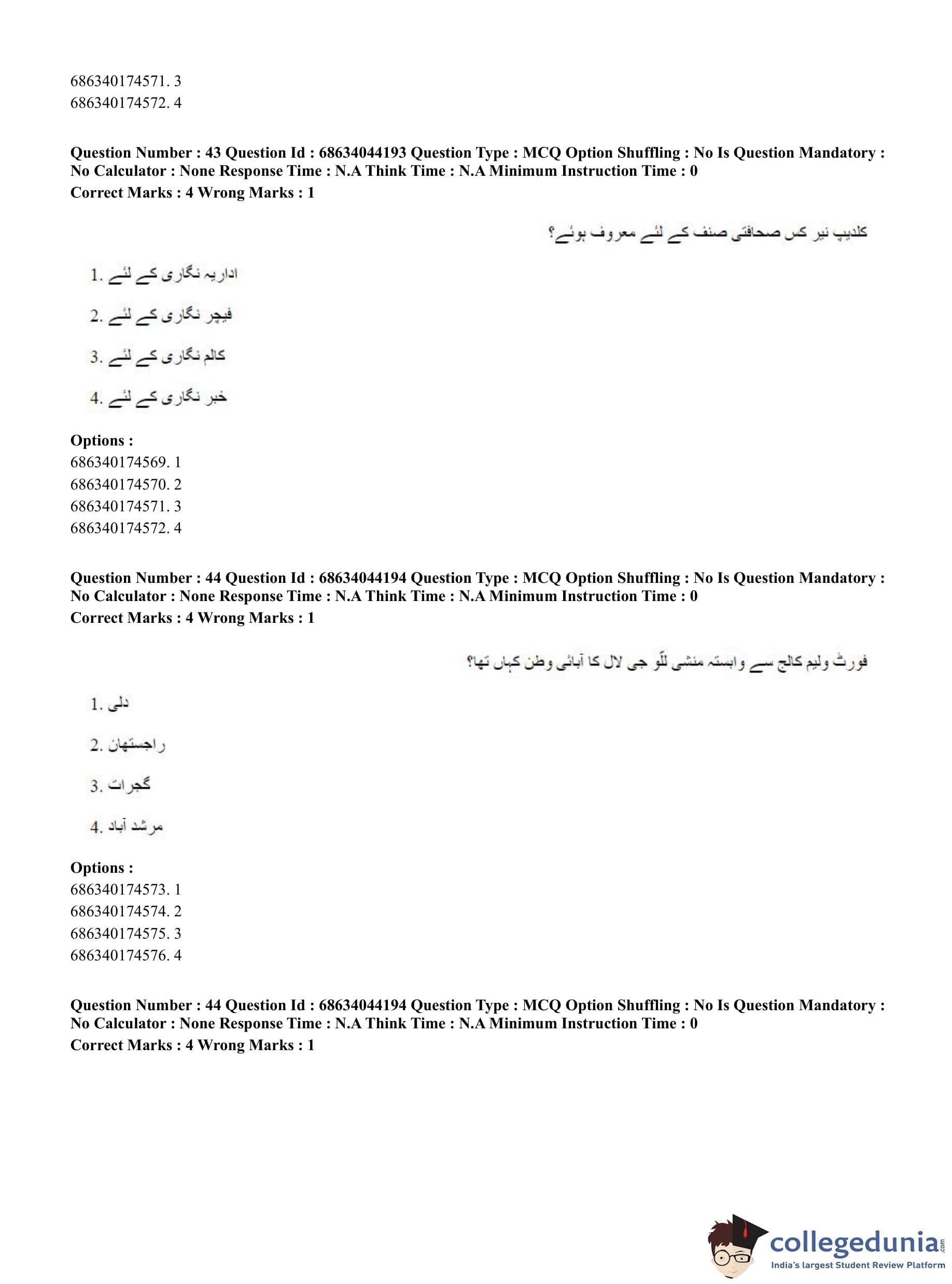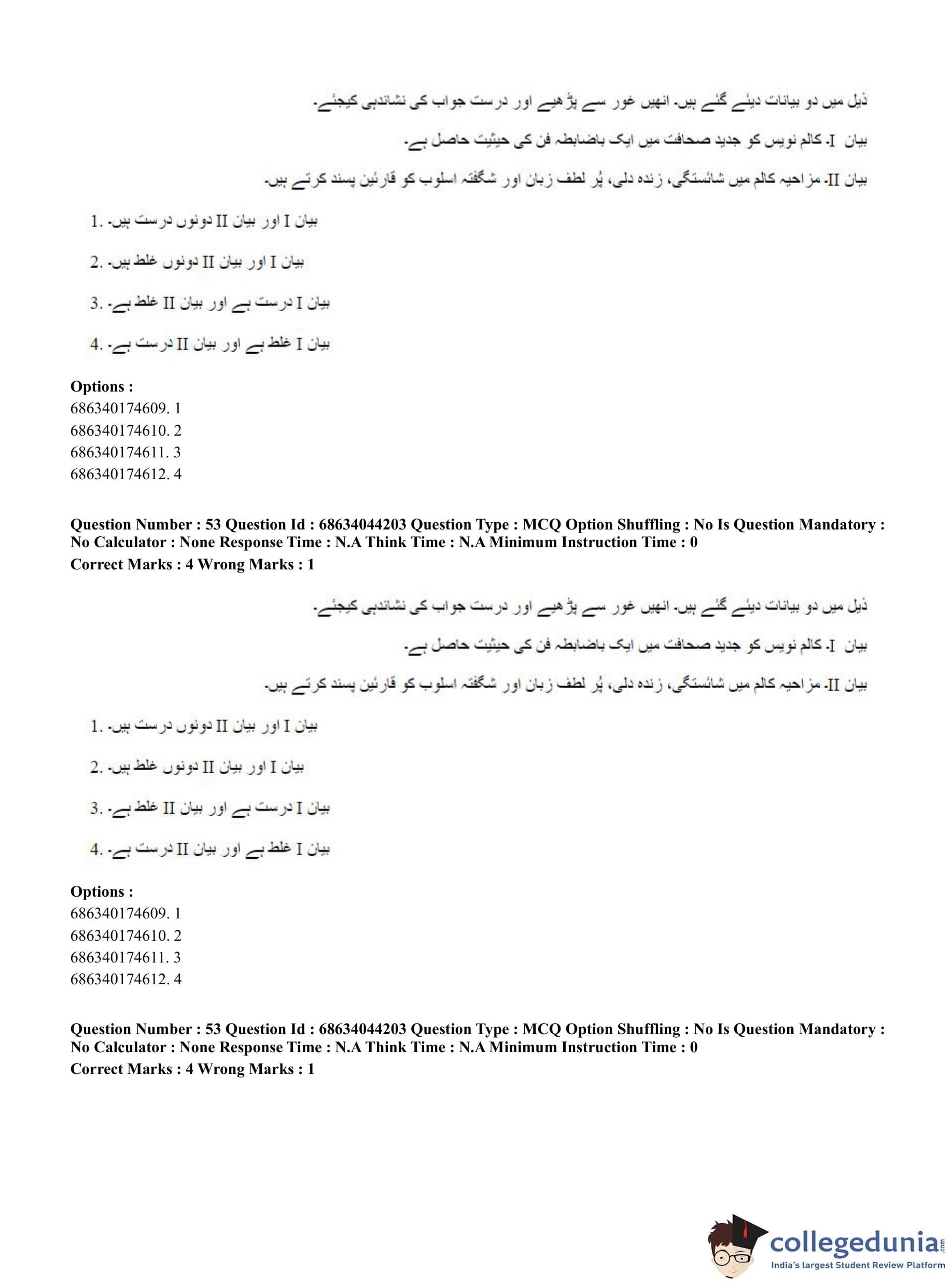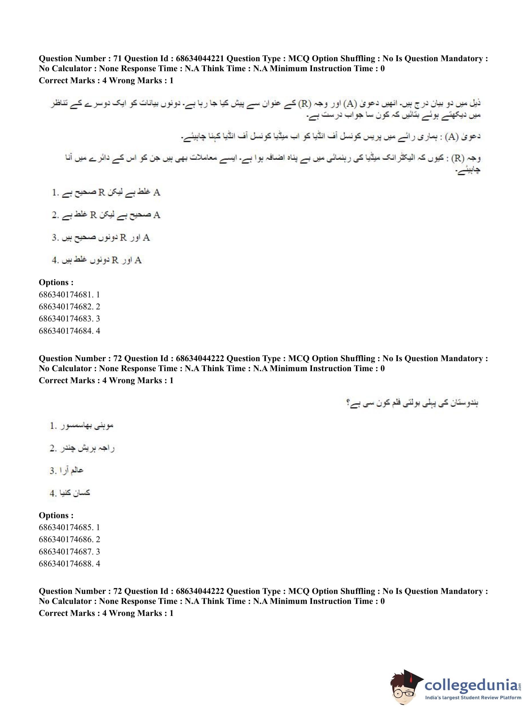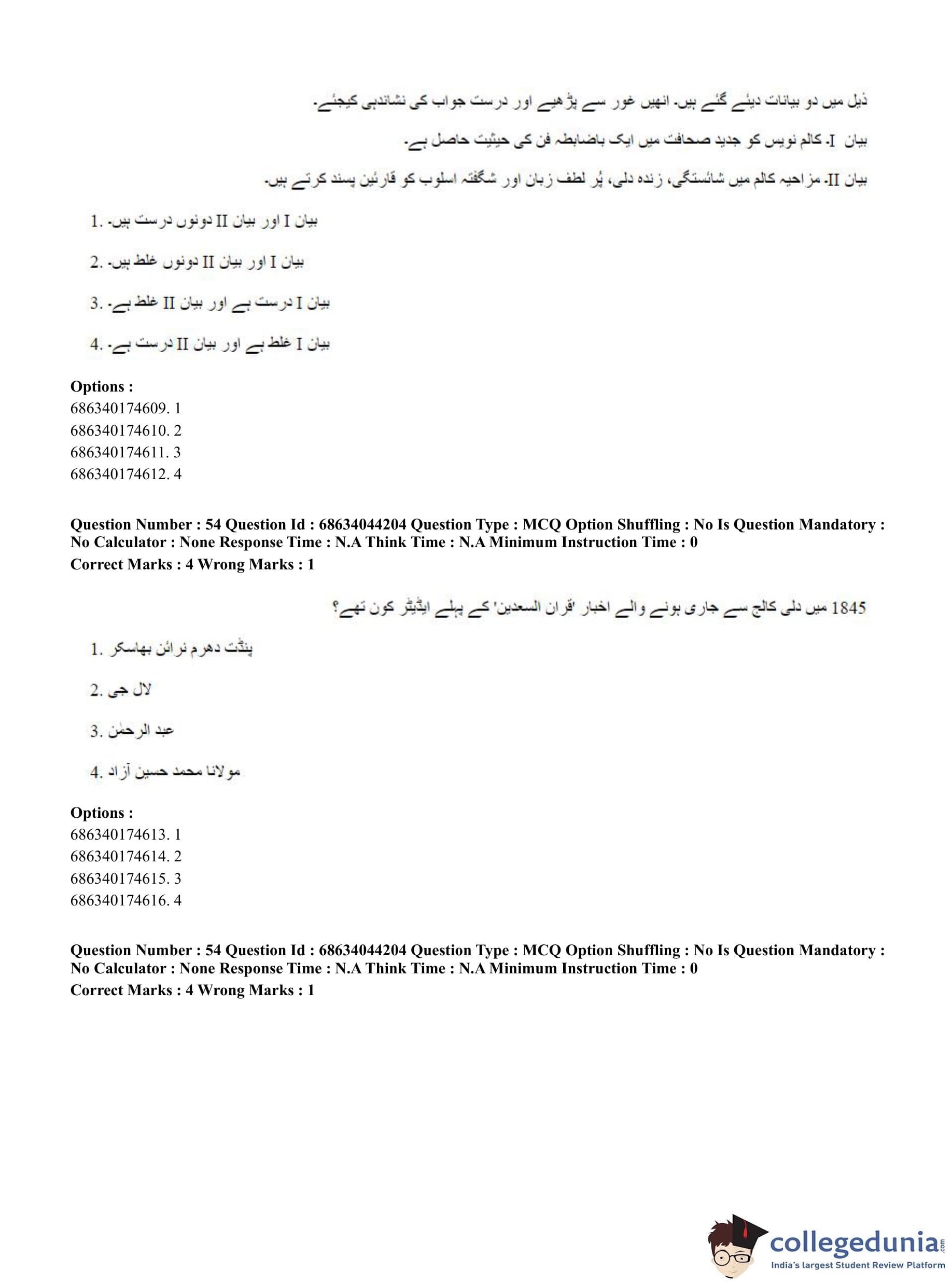 CUET PG 2023 Urdu Journalism Question Paper in Hindi (June 30 - Shift 3)