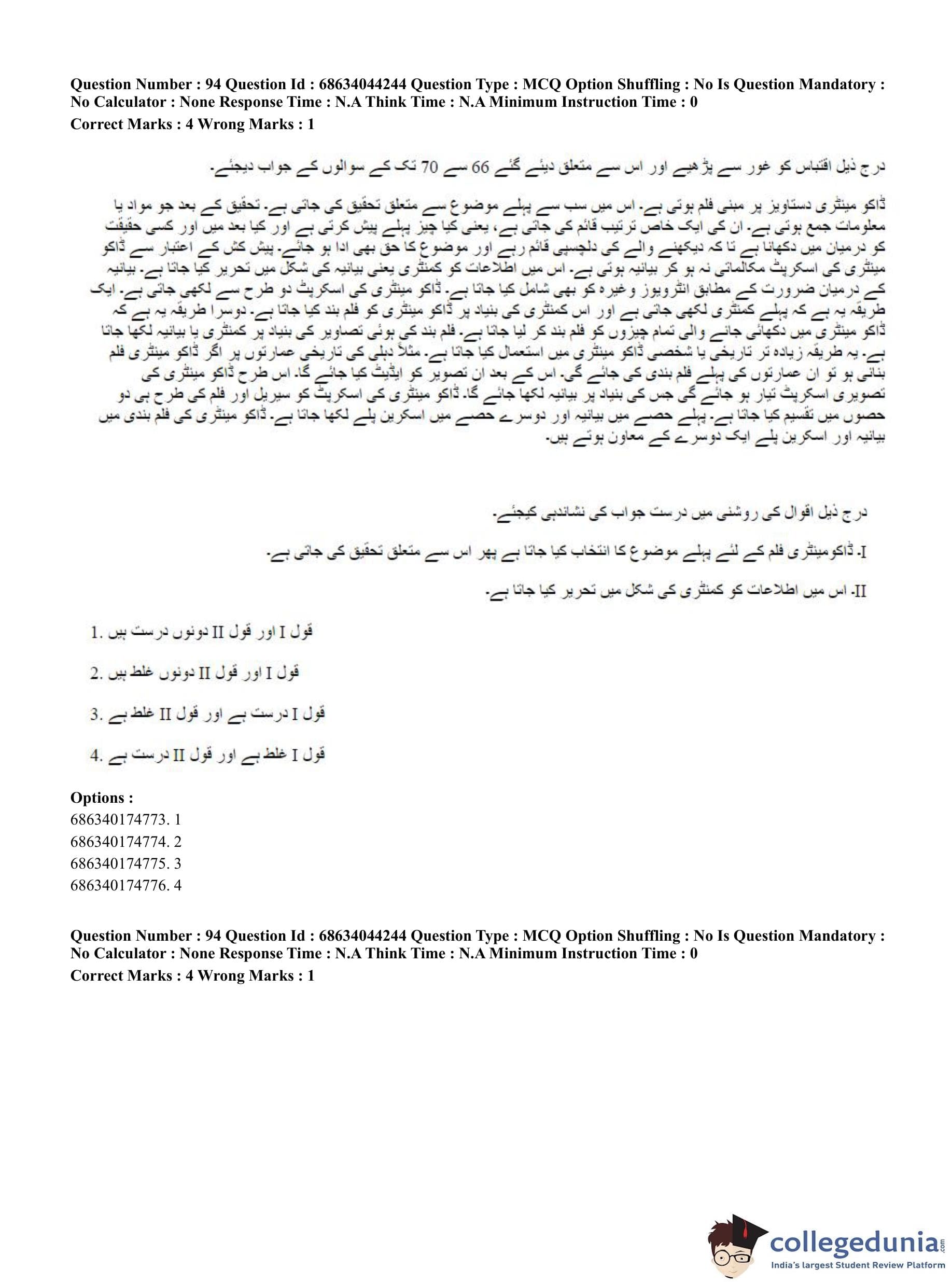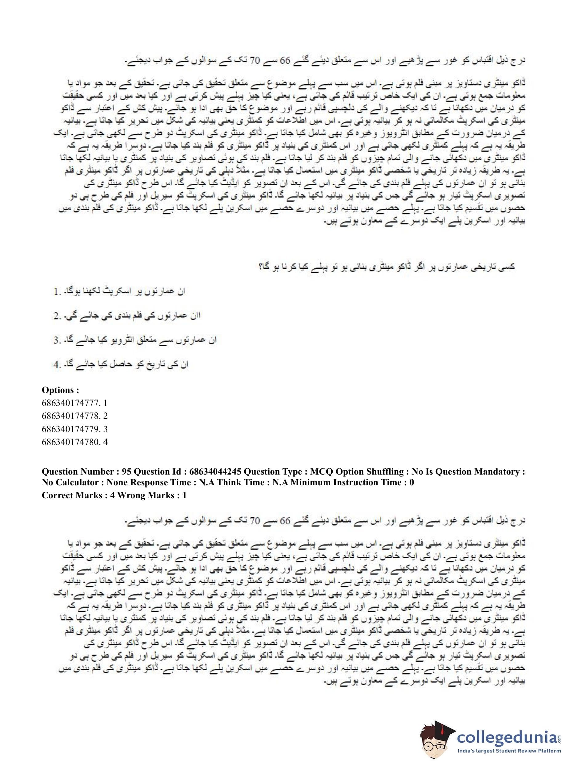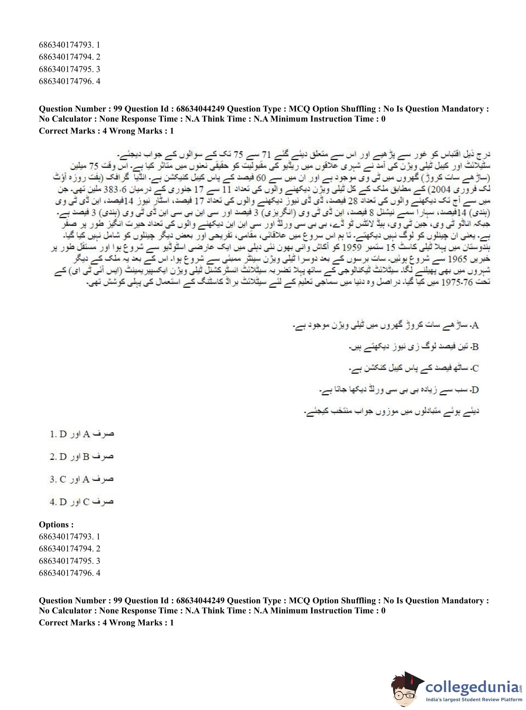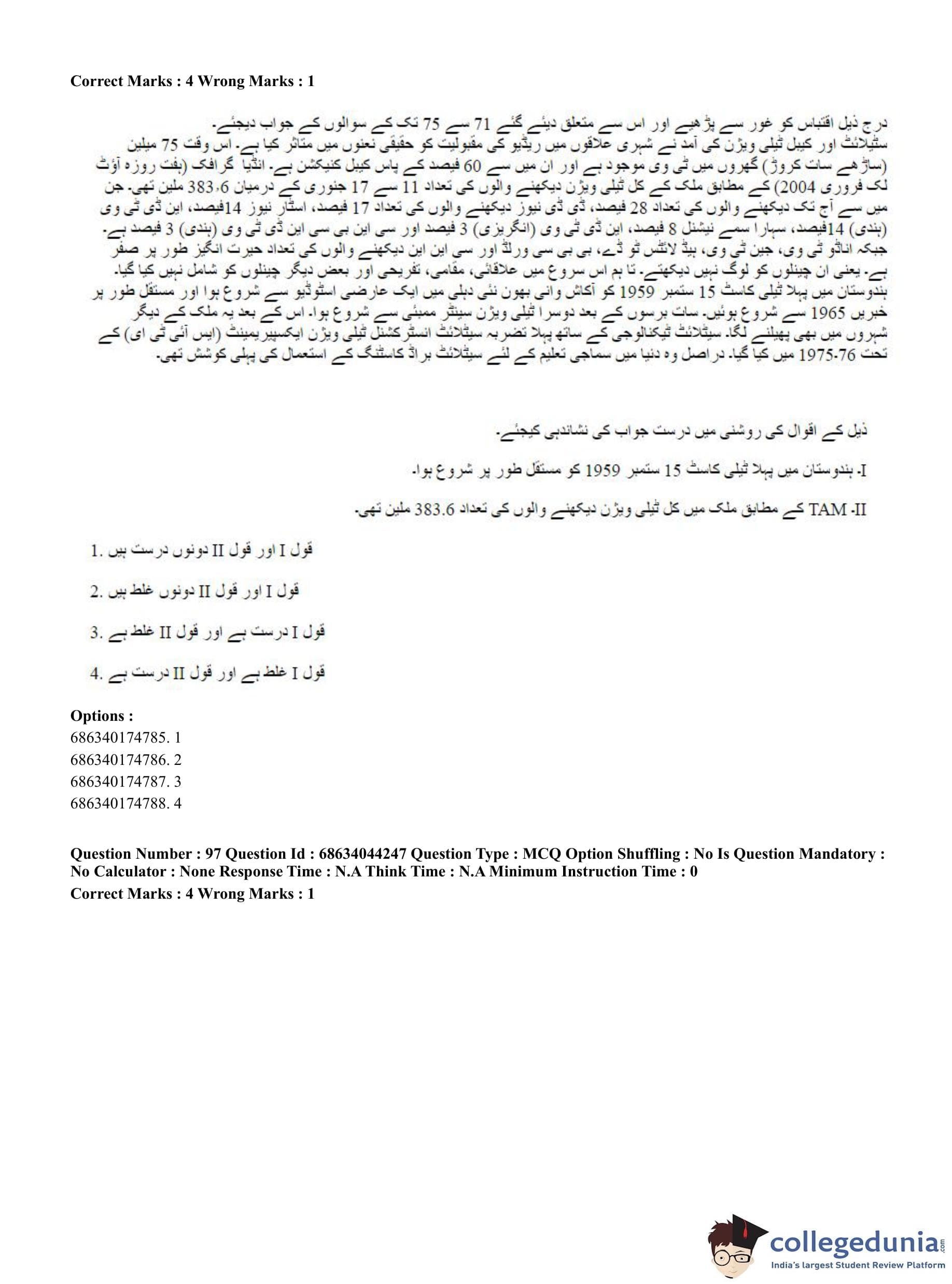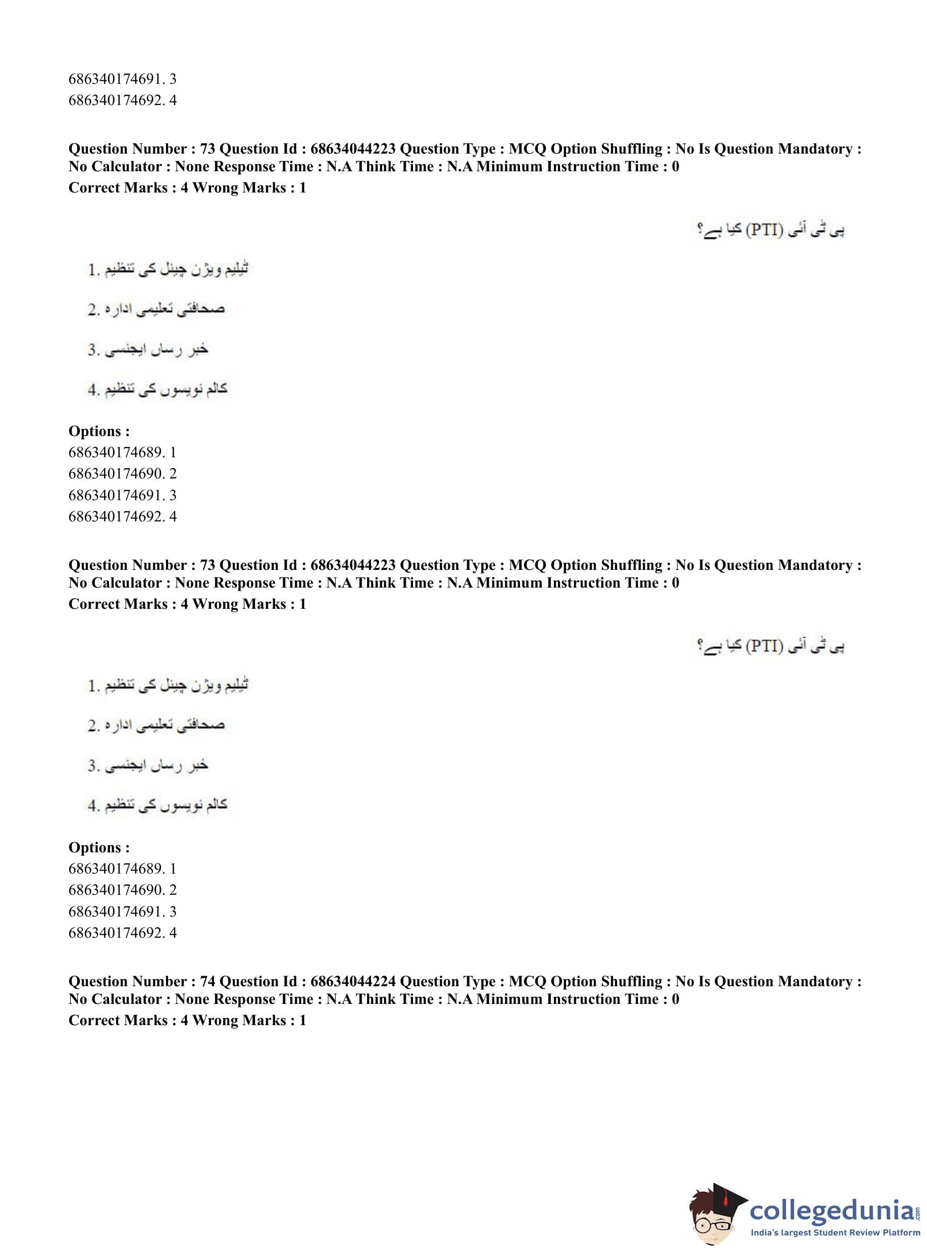 CUET PG 2023 Urdu Journalism Question Paper in Hindi (June 30 - Shift 3)