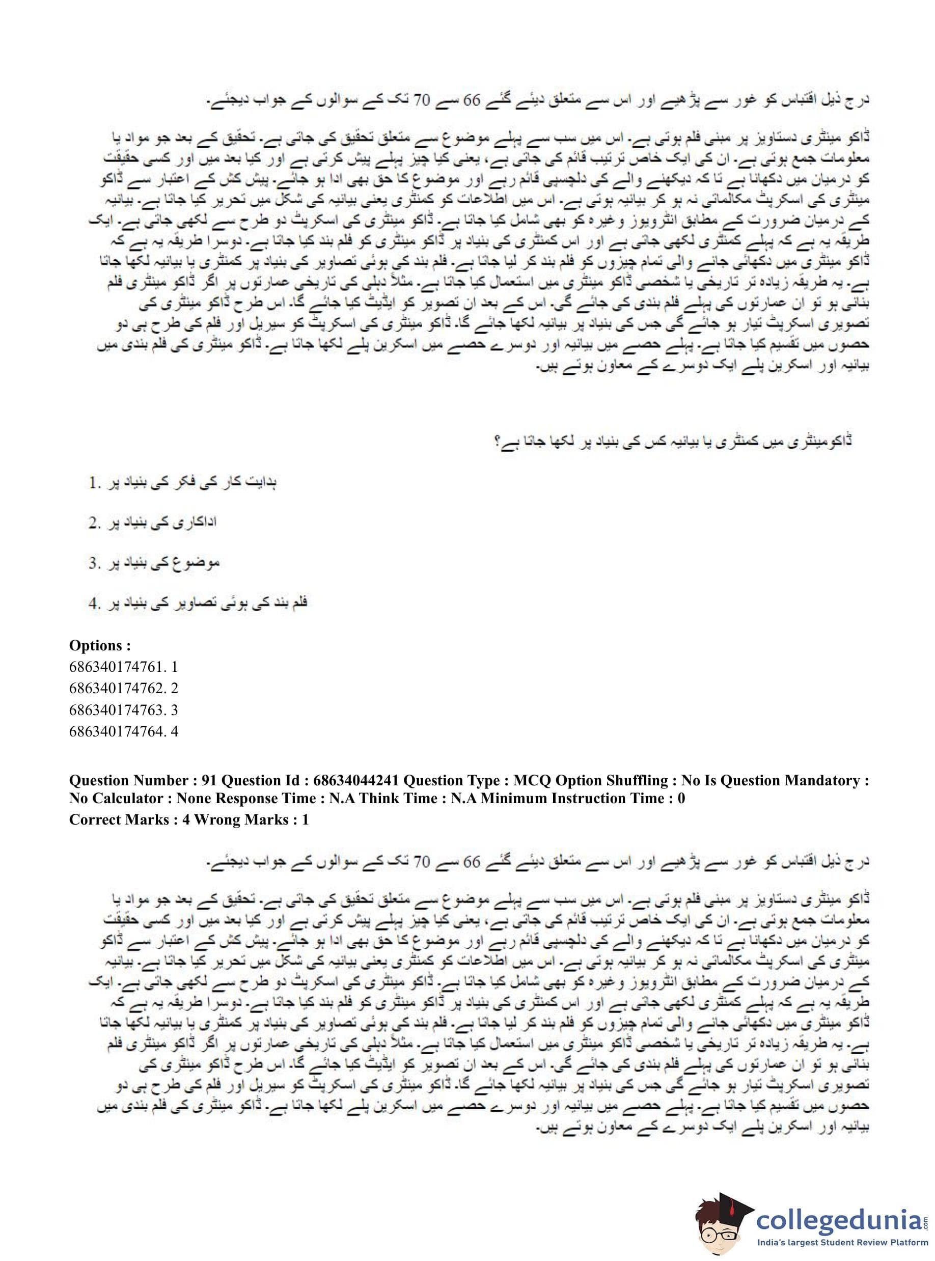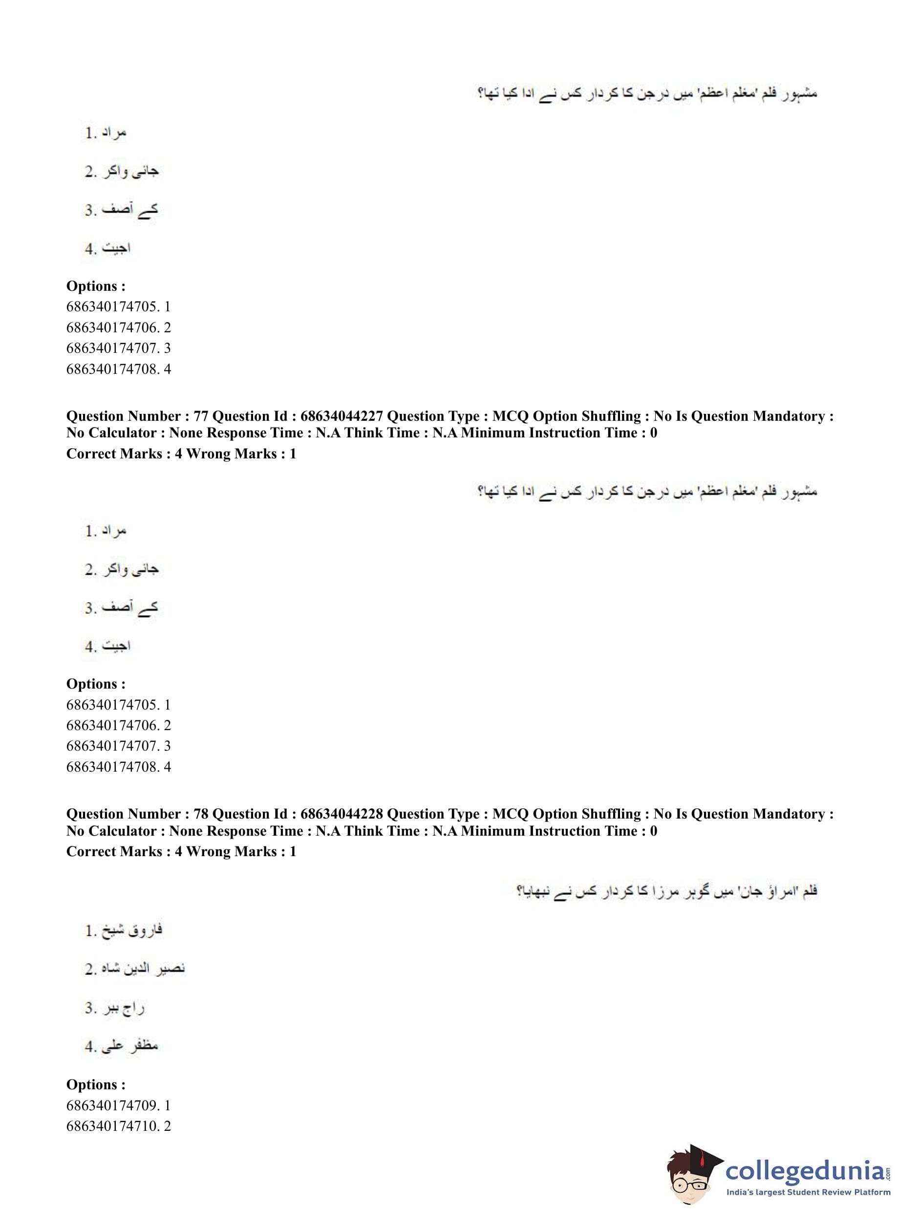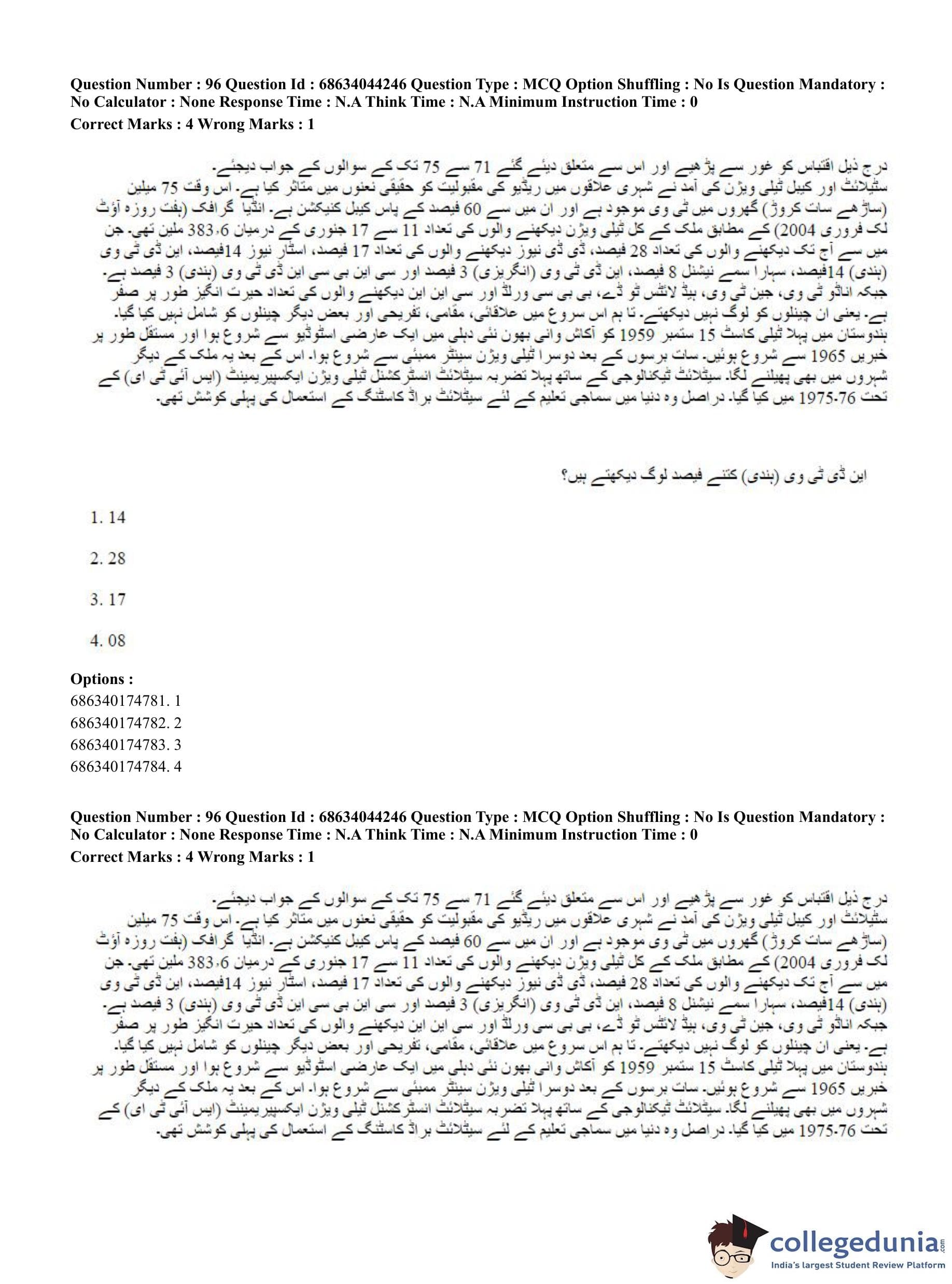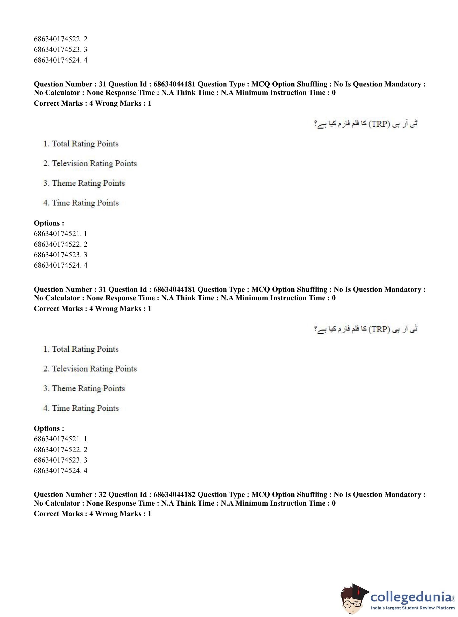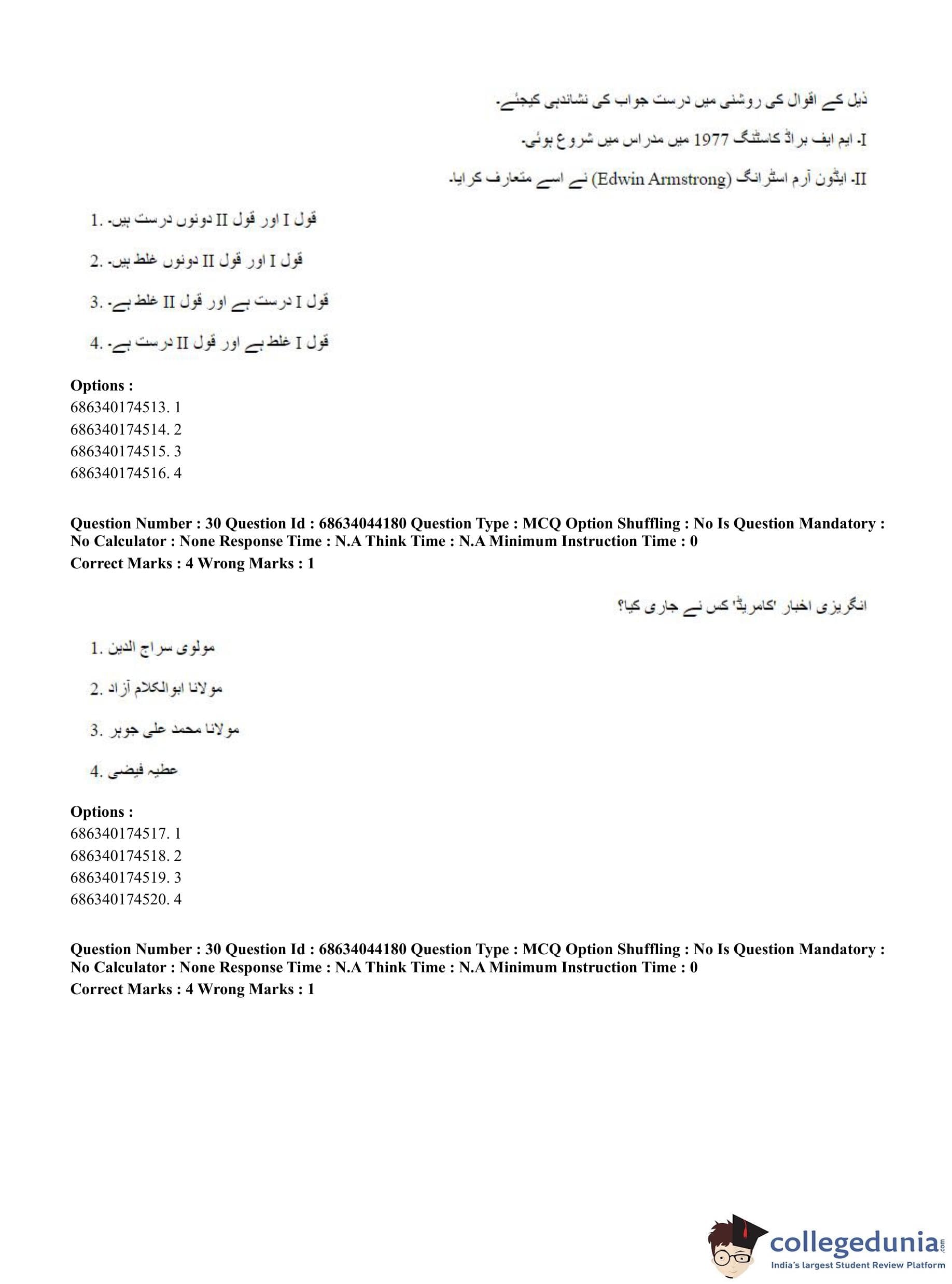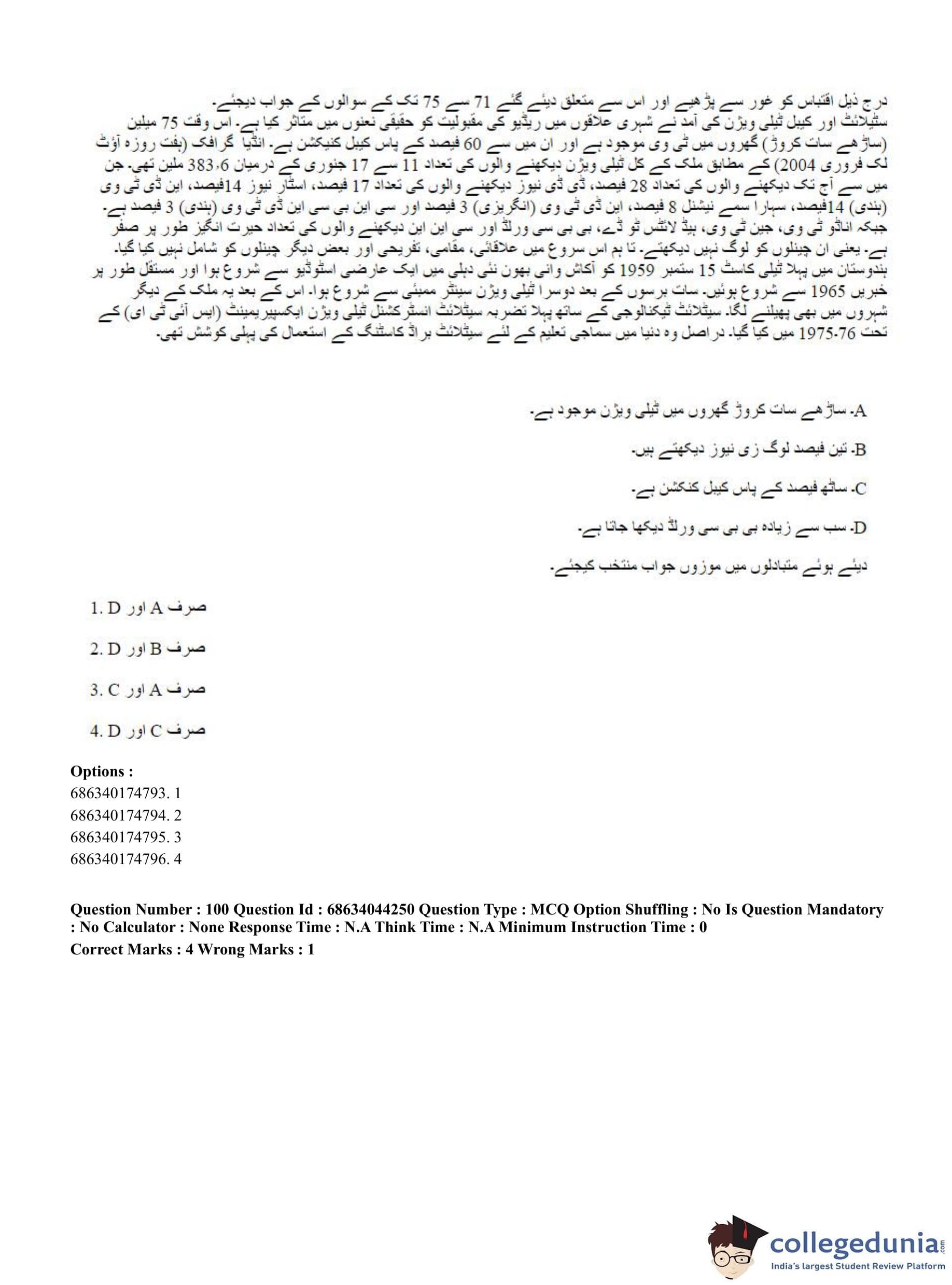 CUET PG 2023 Urdu Journalism Question Paper in Hindi (June 30 - Shift 3)