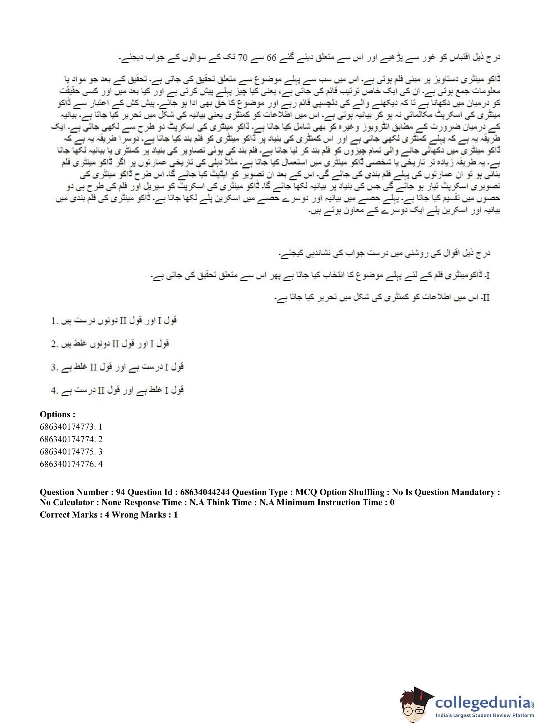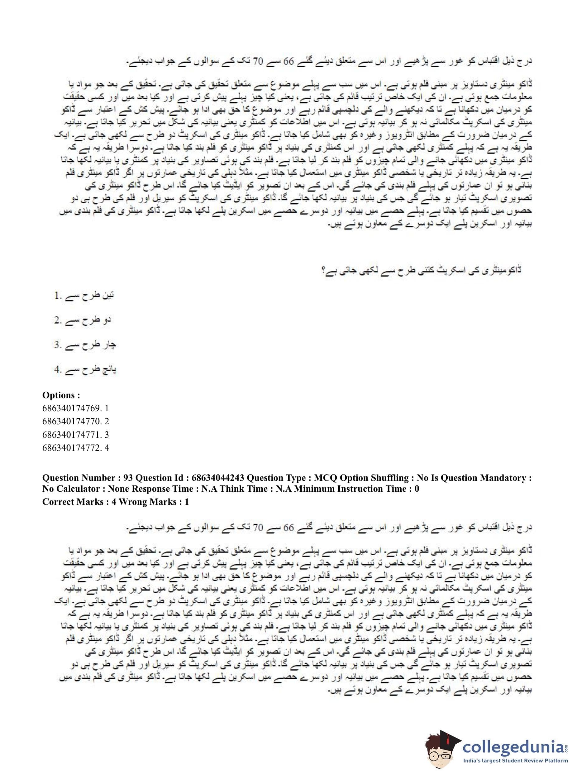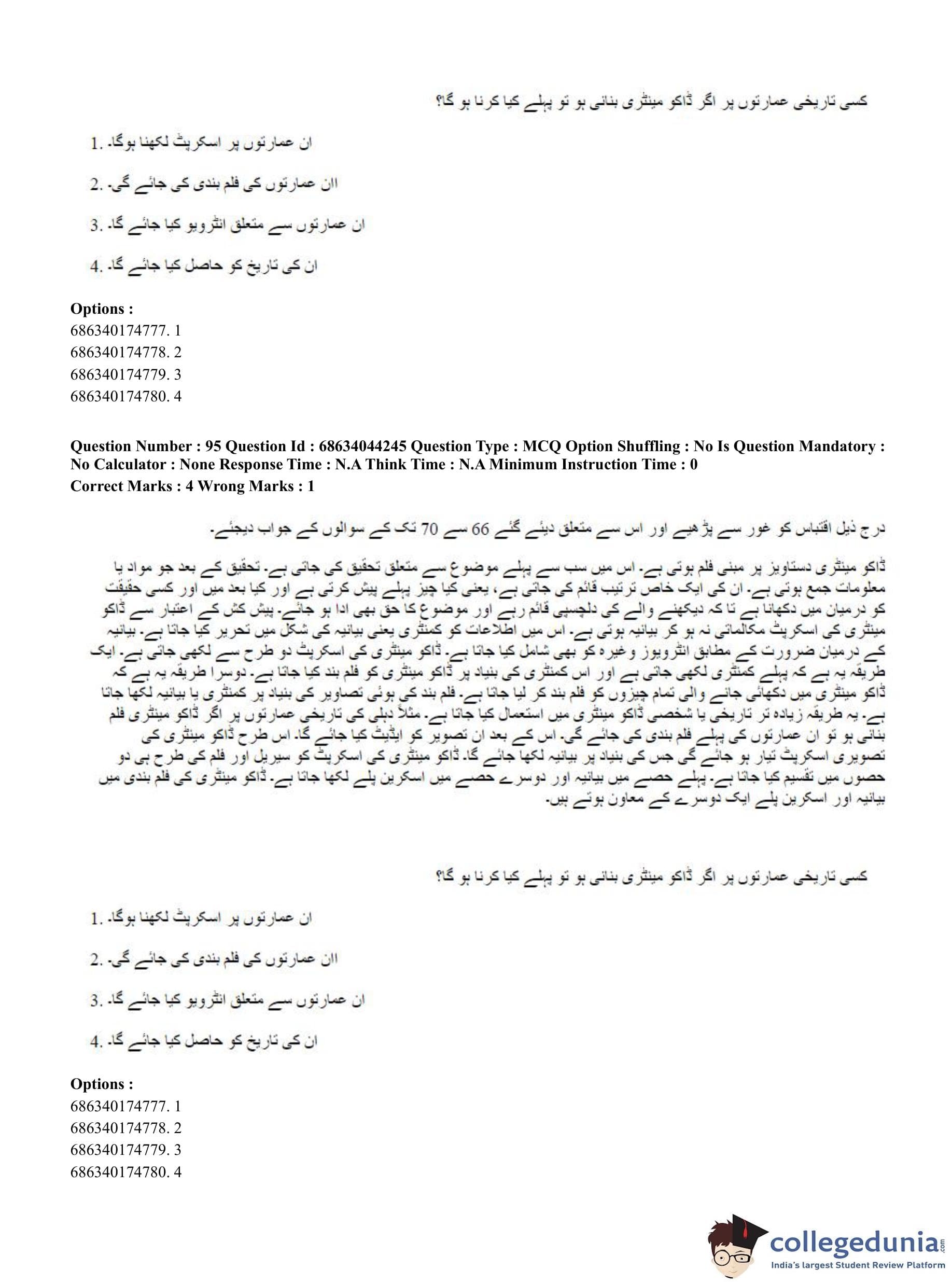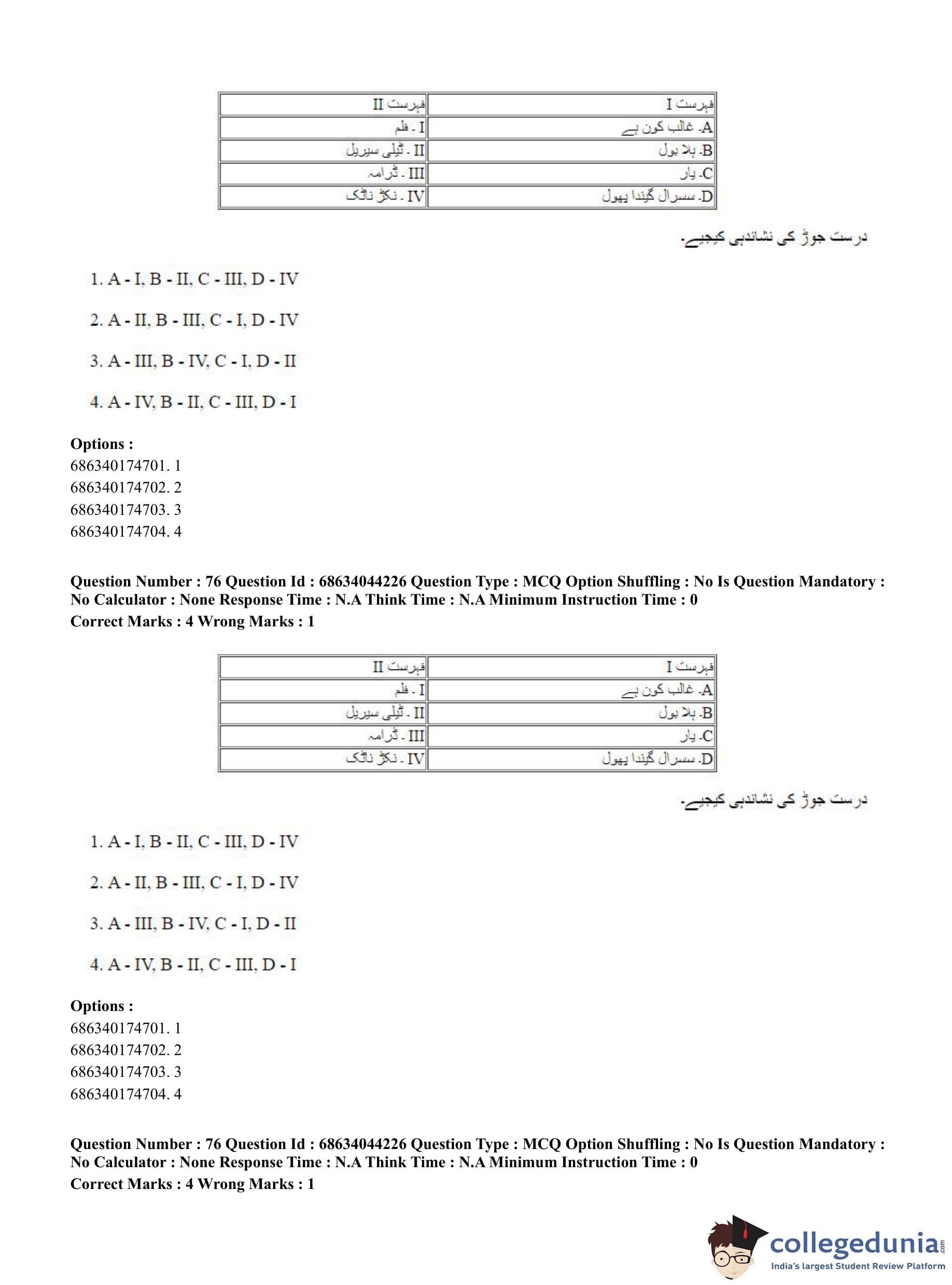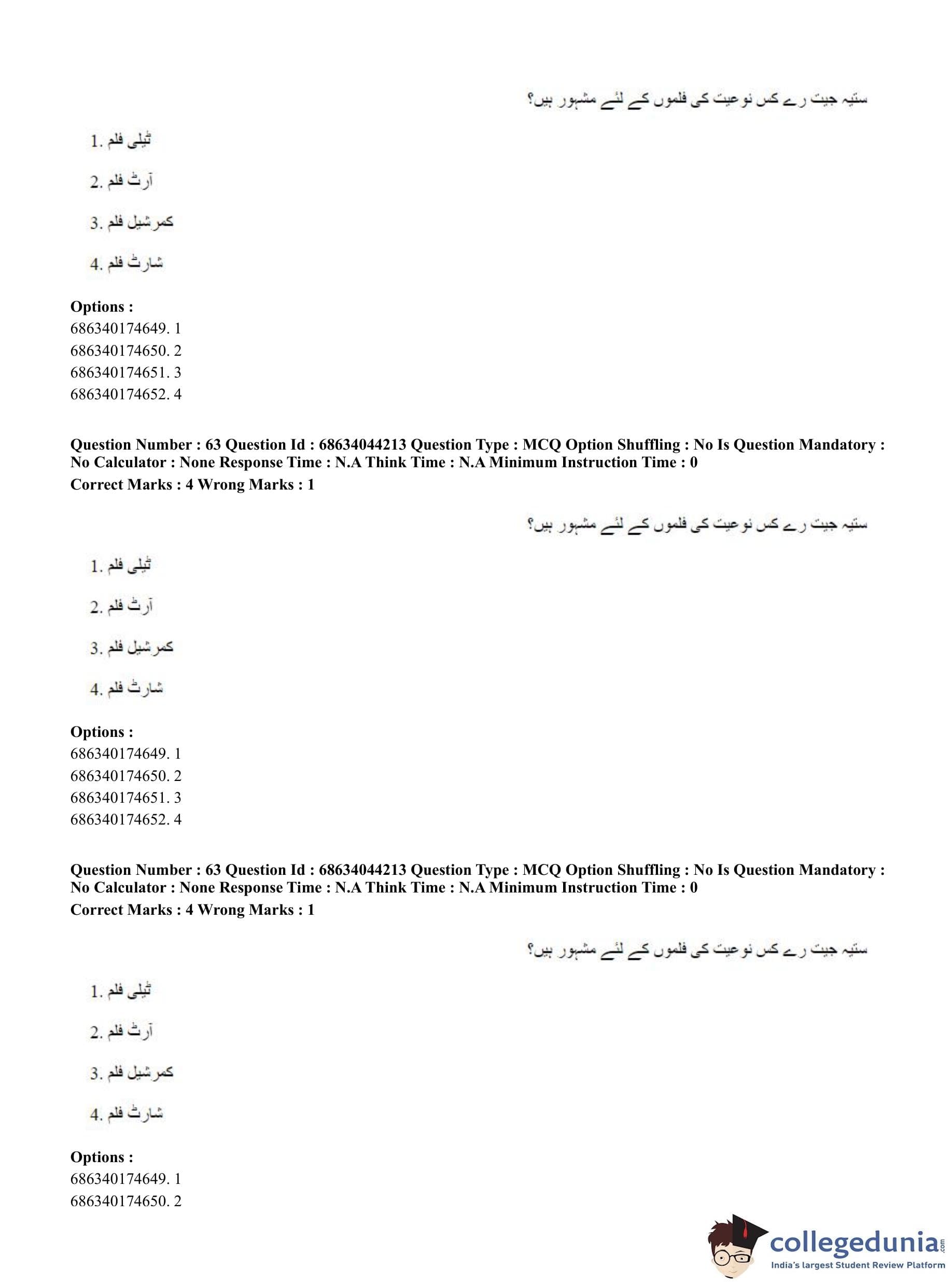 CUET PG 2023 Urdu Journalism Question Paper in Hindi (June 30 - Shift 3)