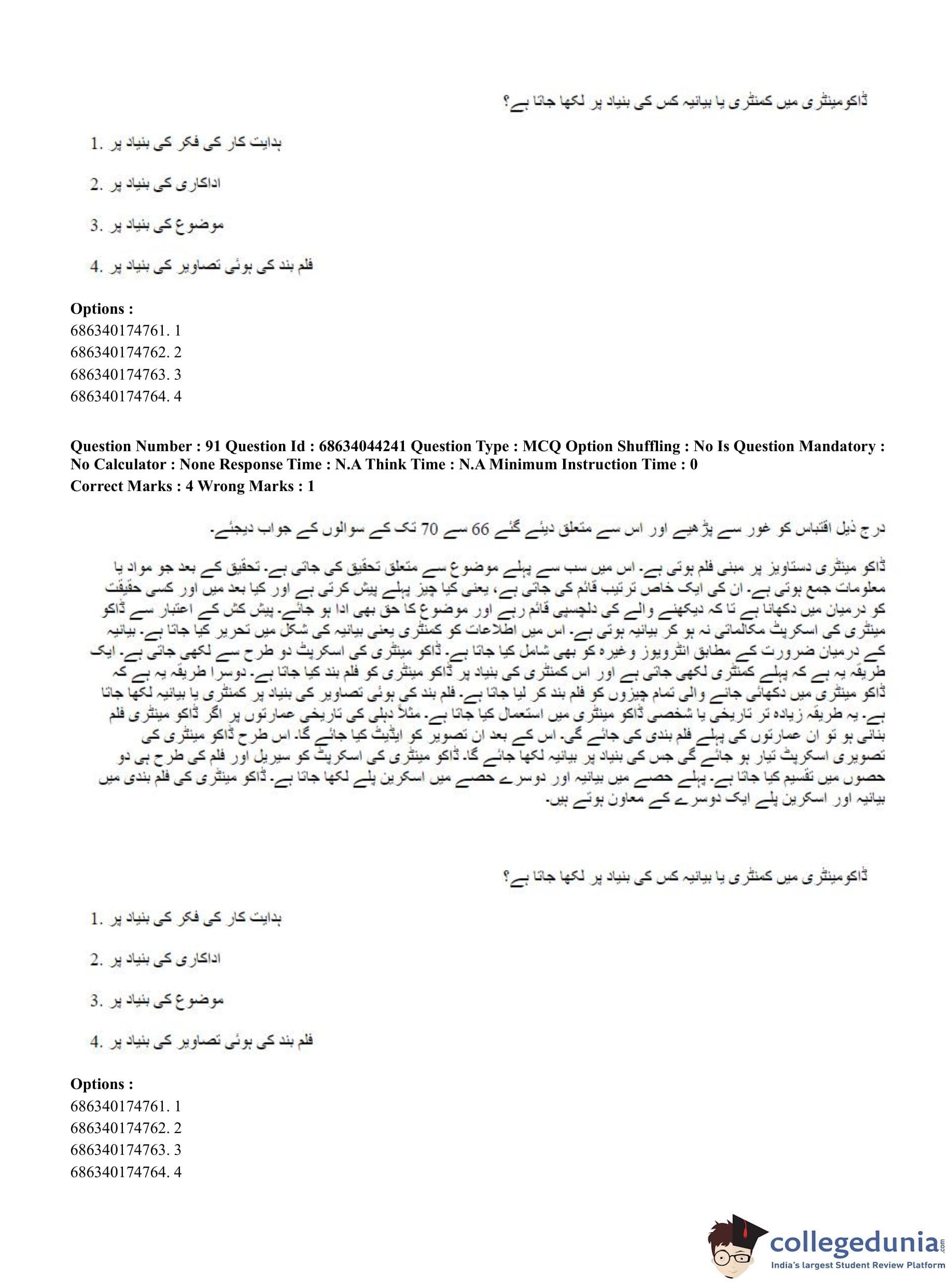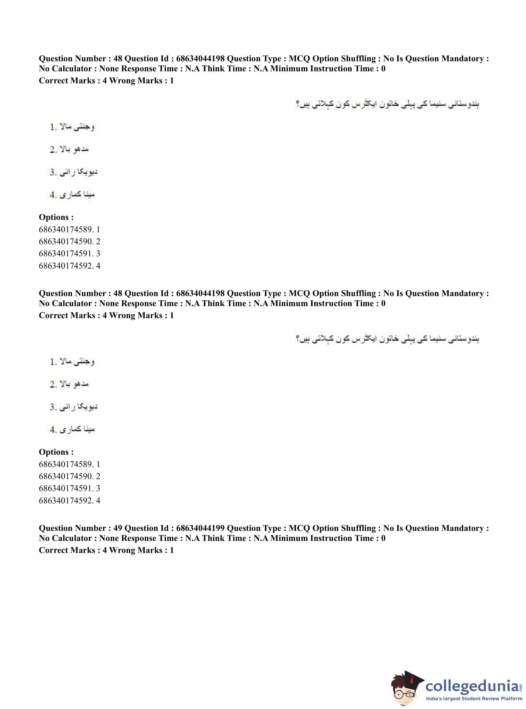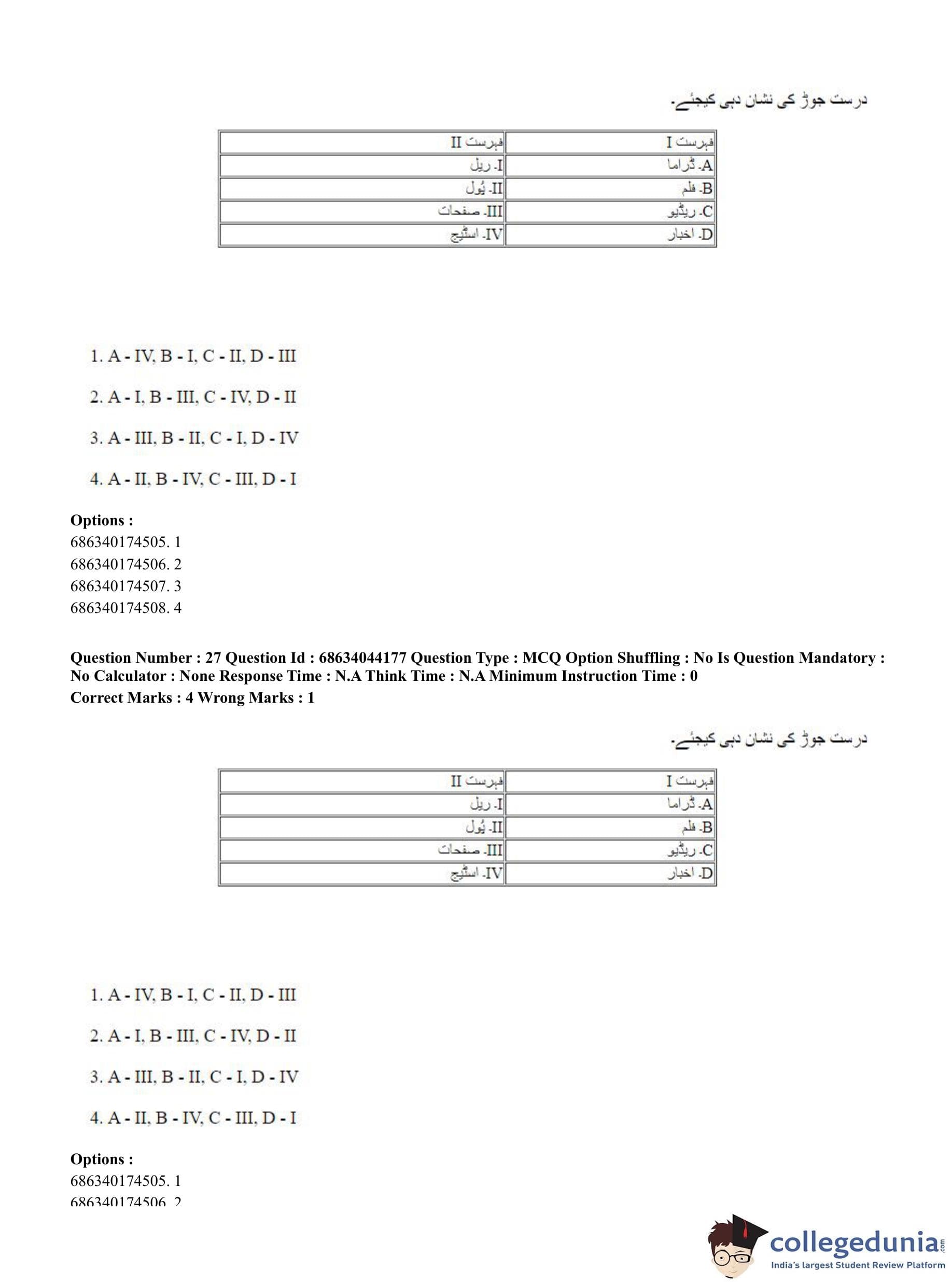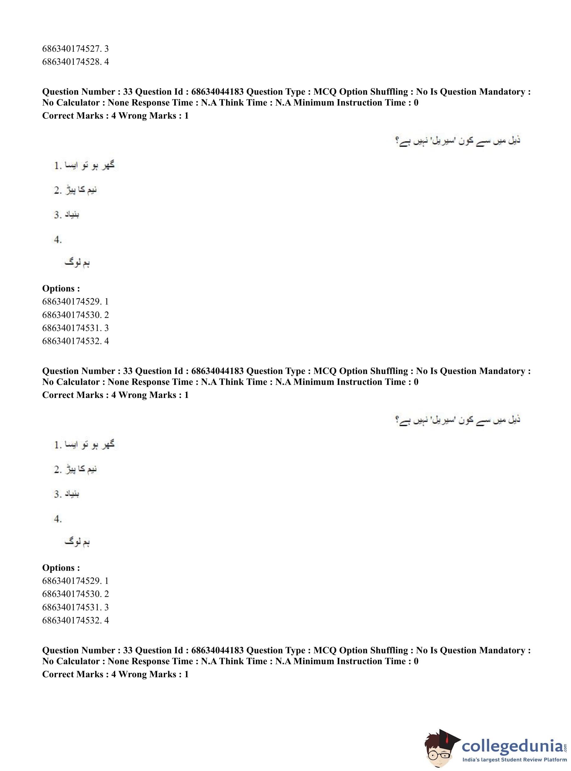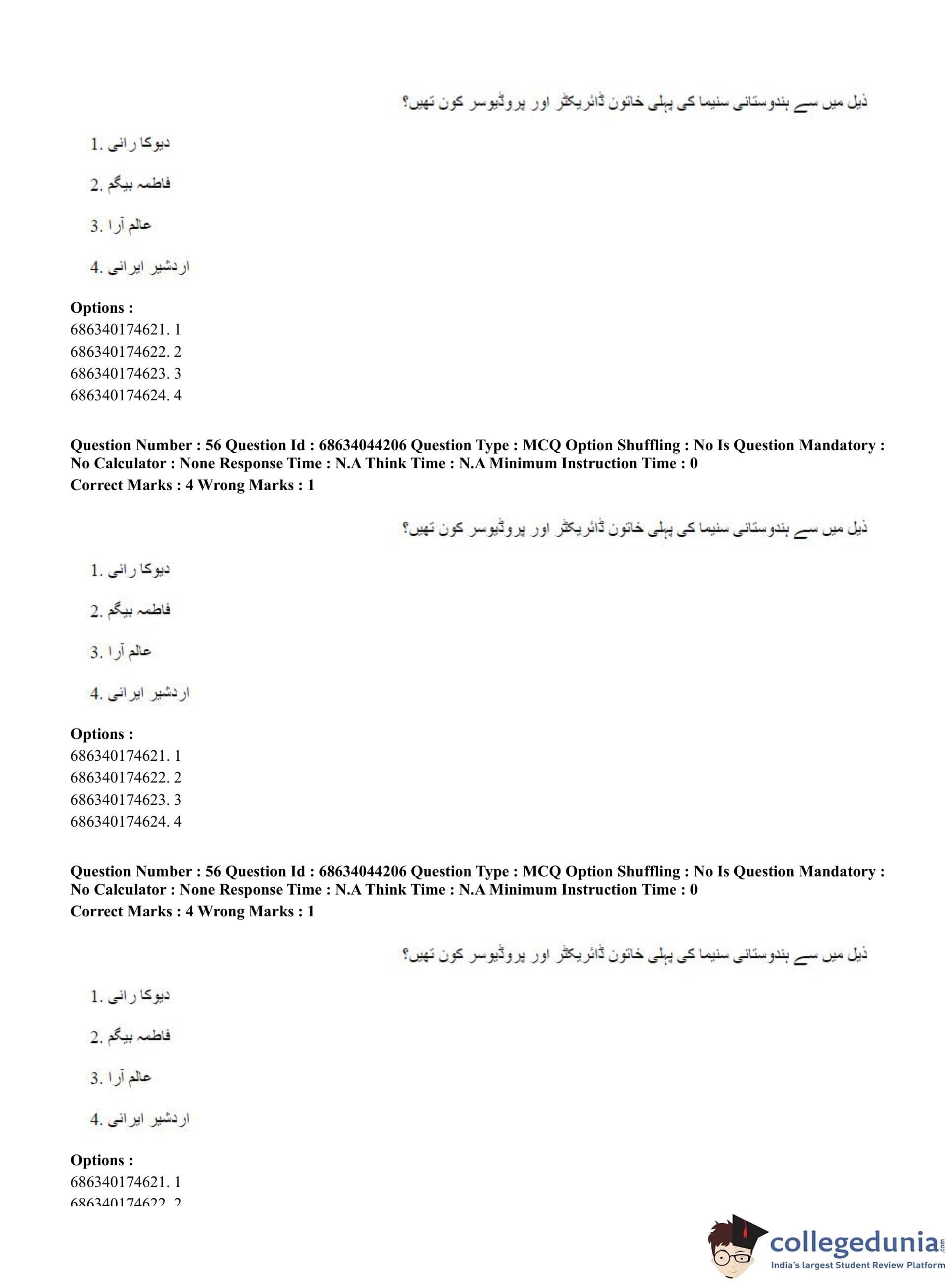 CUET PG 2023 Urdu Journalism Question Paper in Hindi (June 30 - Shift 3)