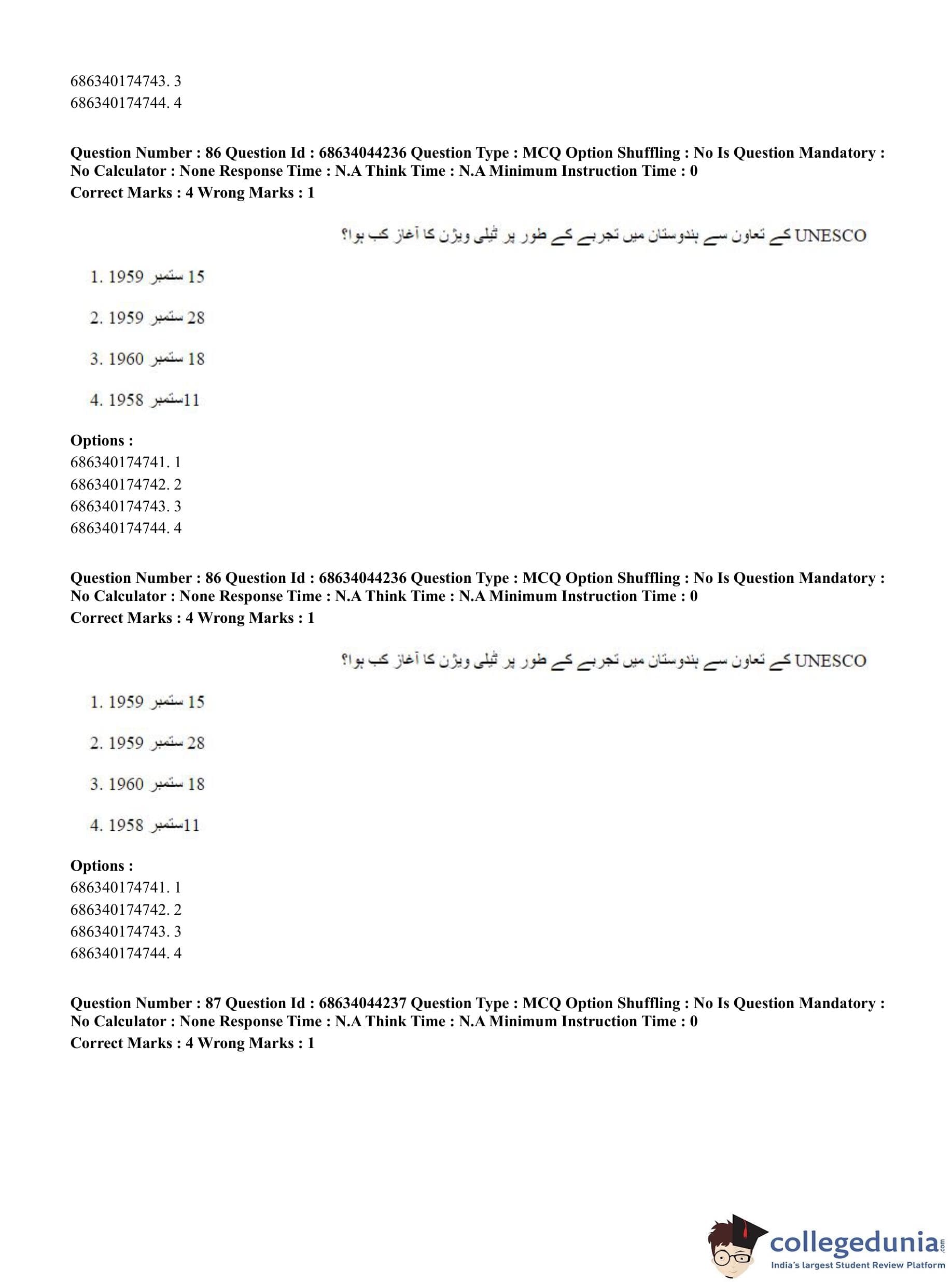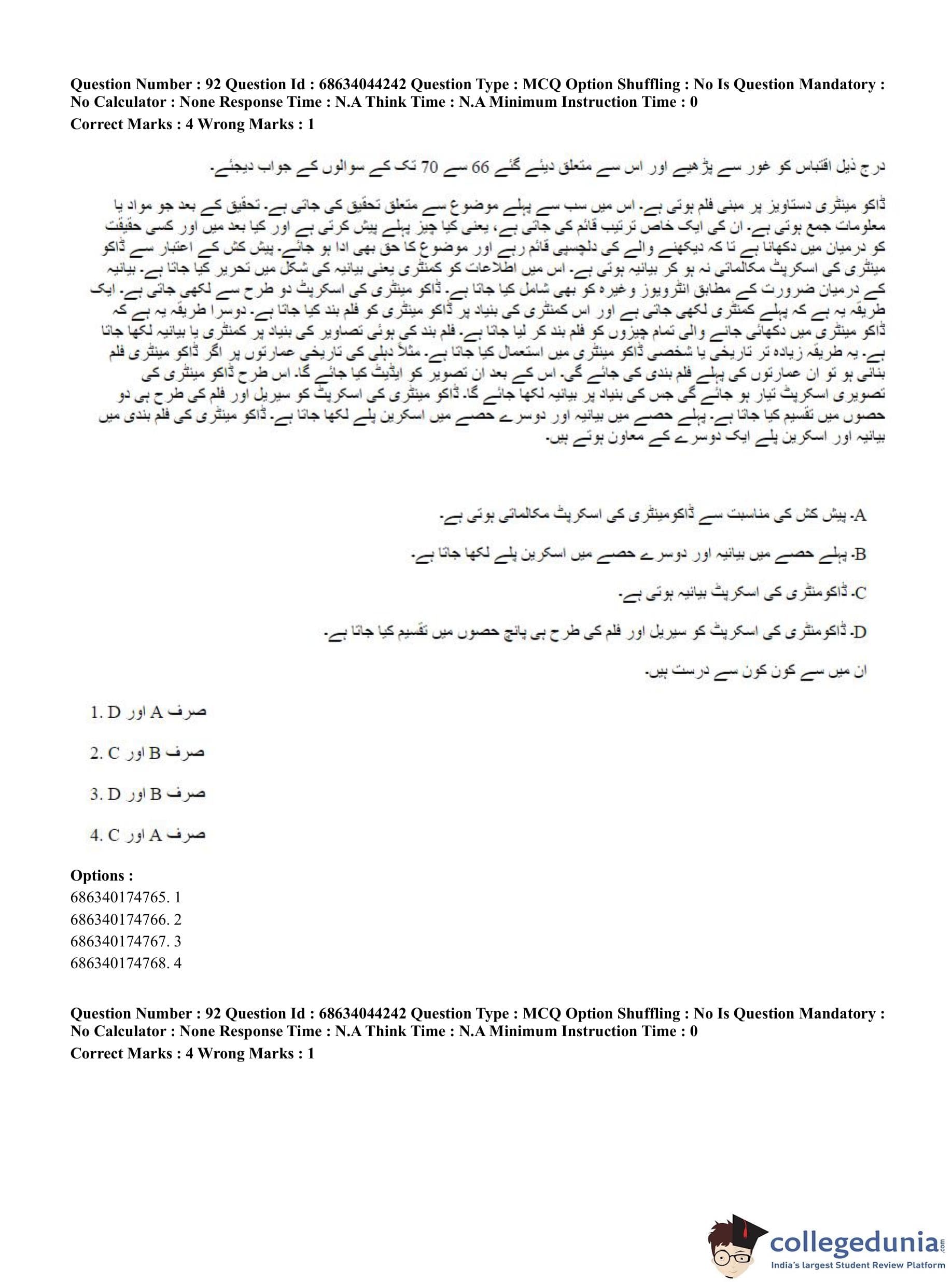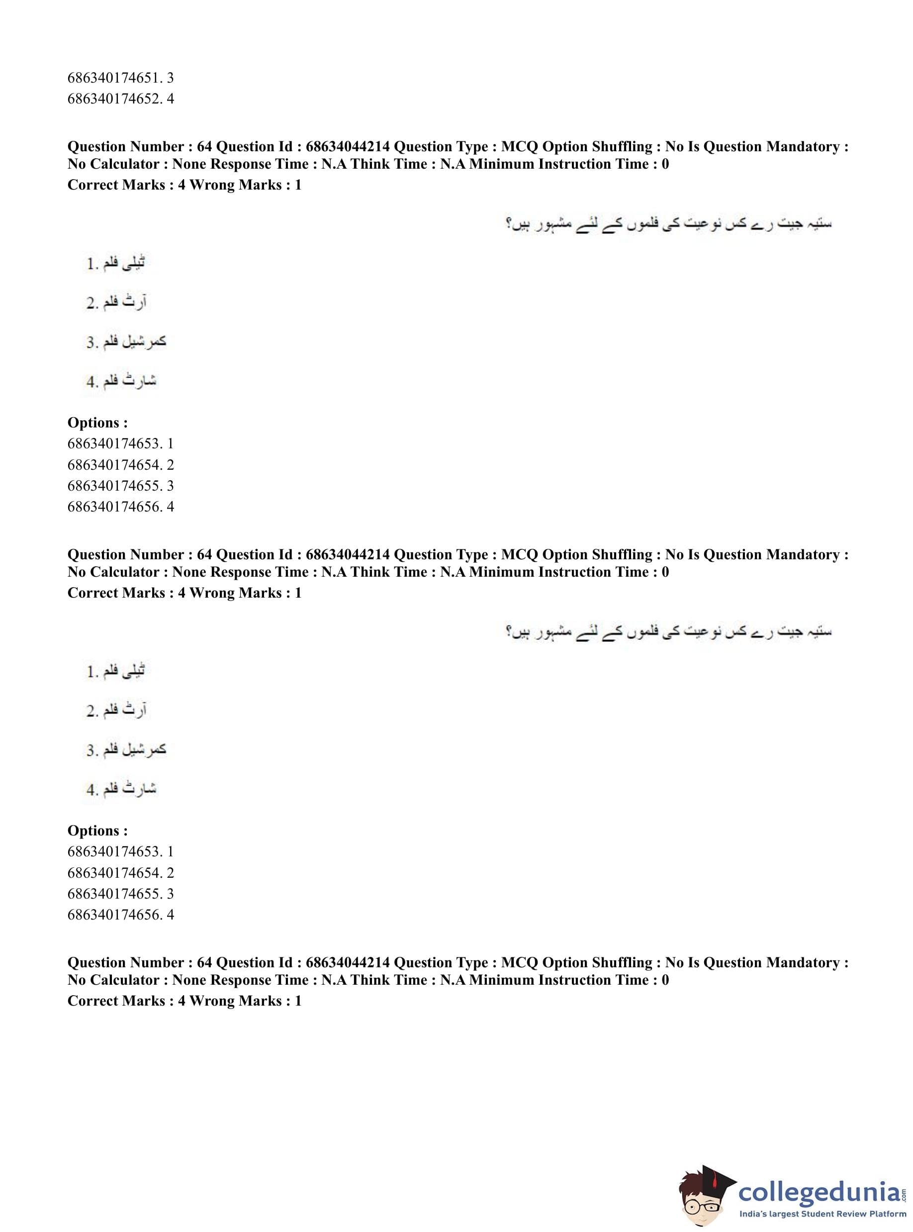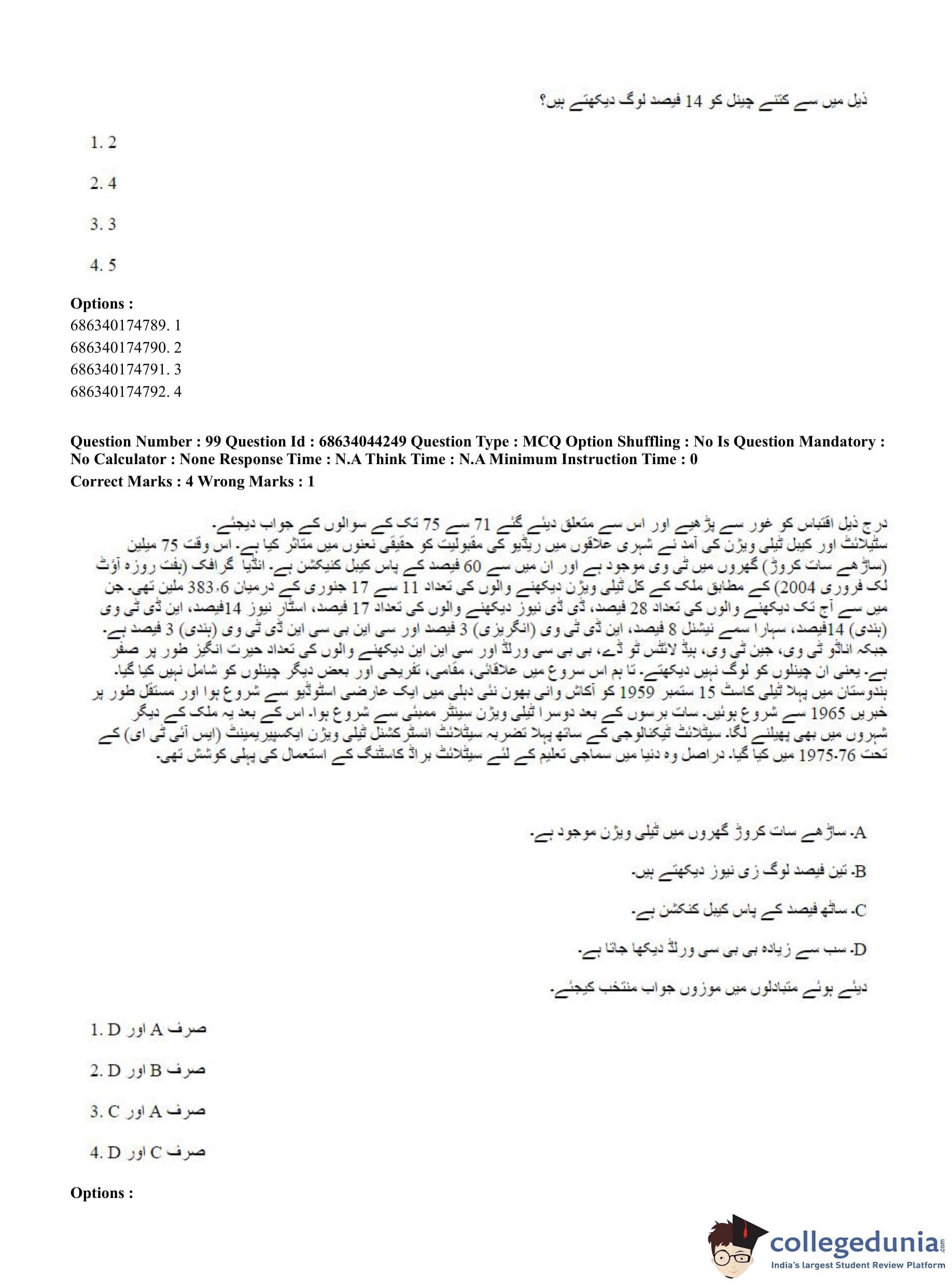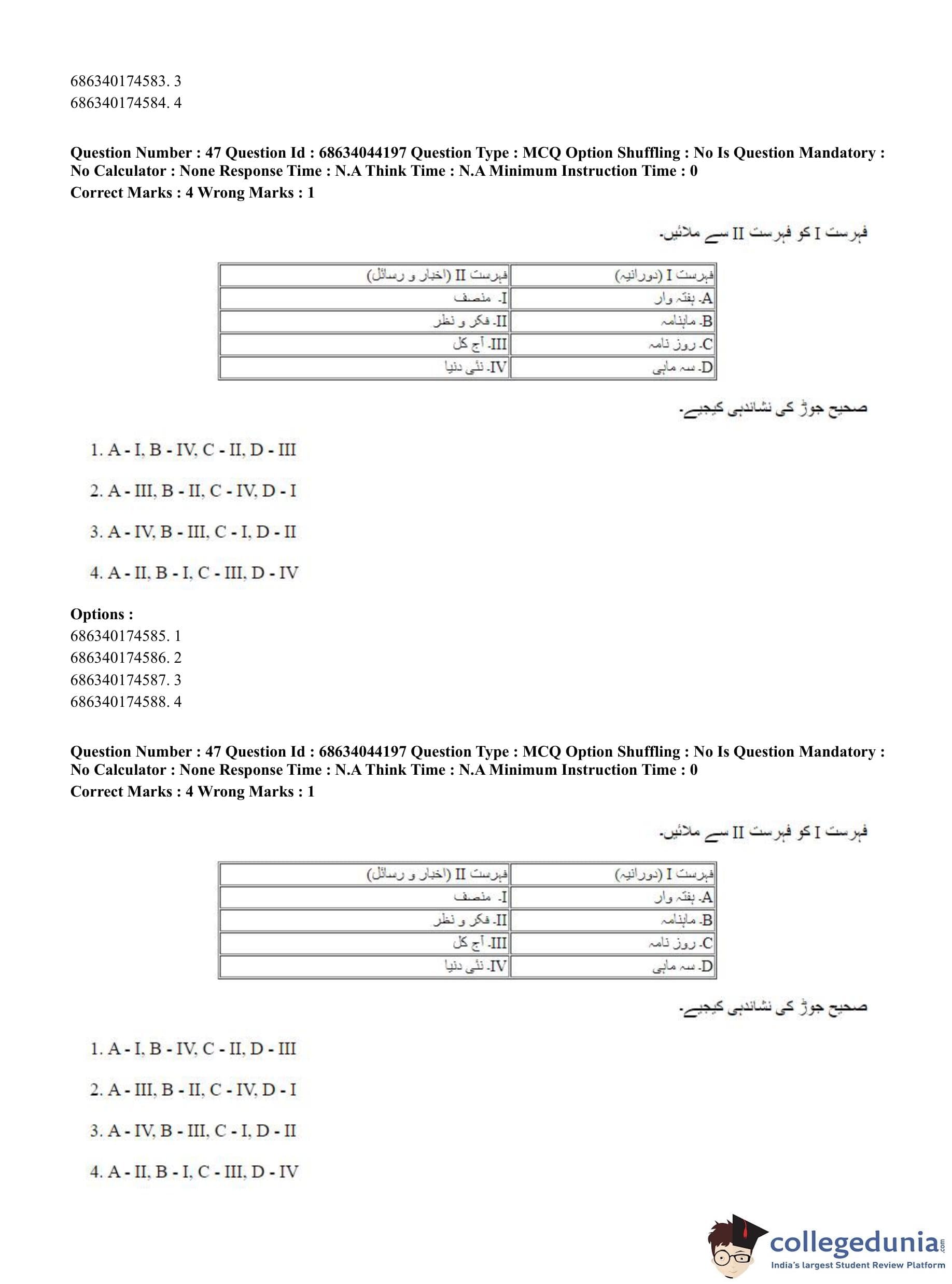 CUET PG 2023 Urdu Journalism Question Paper in Hindi (June 30 - Shift 3)