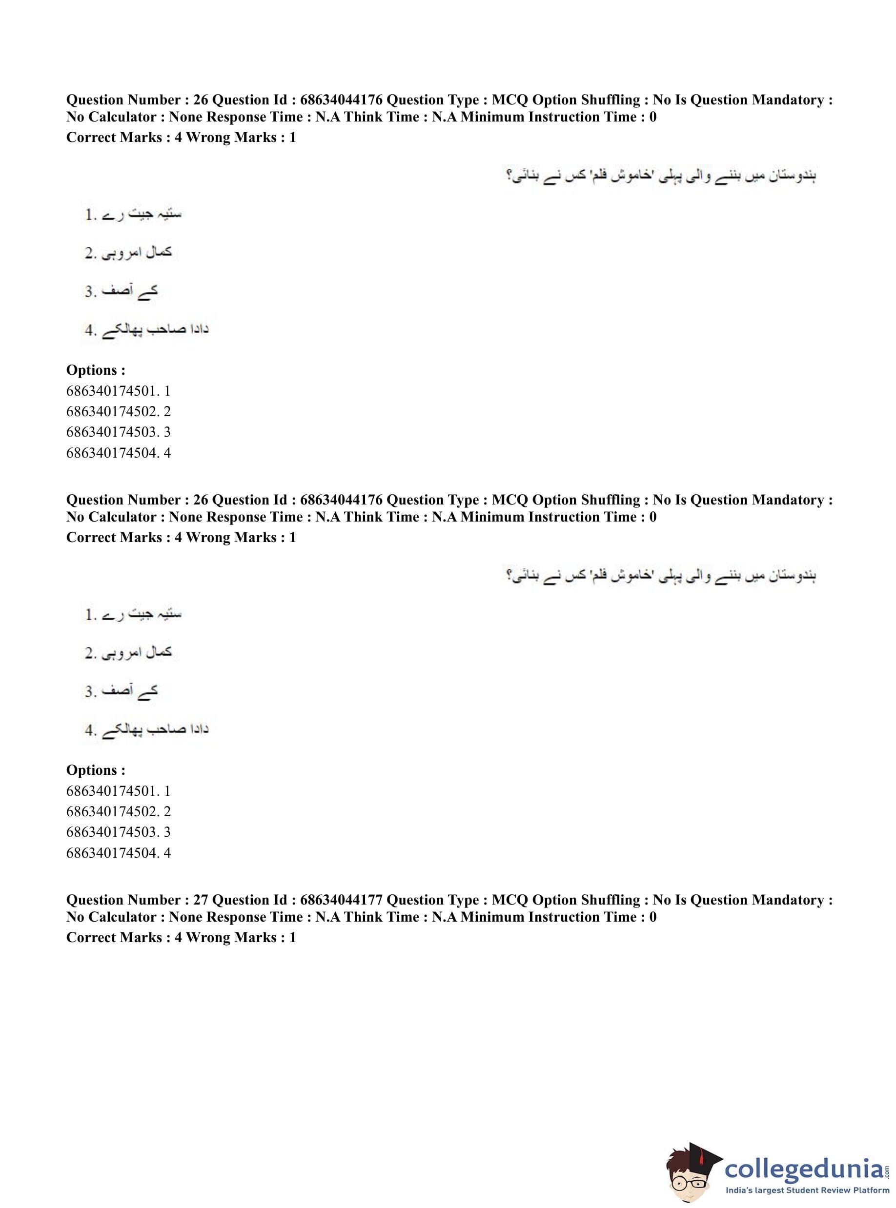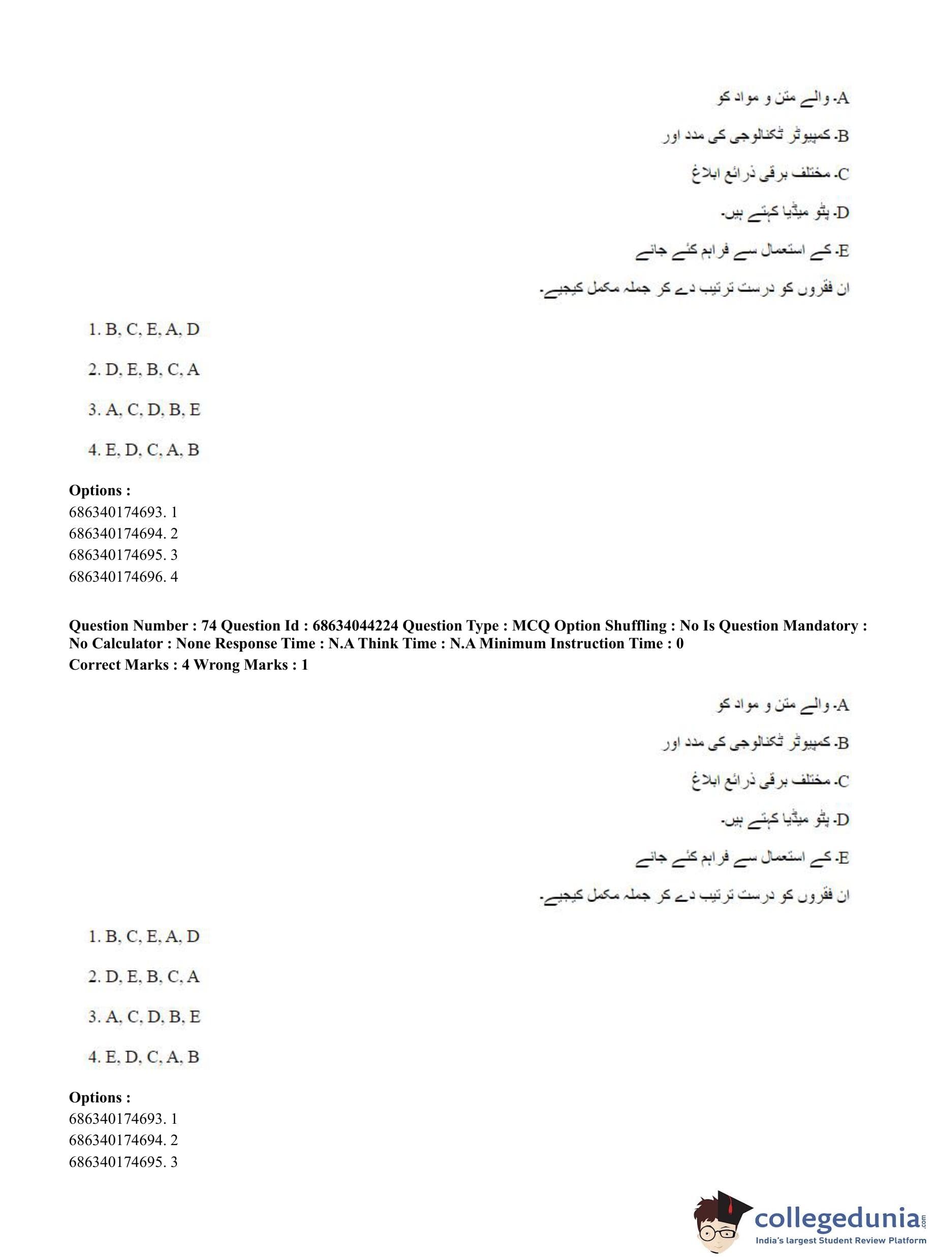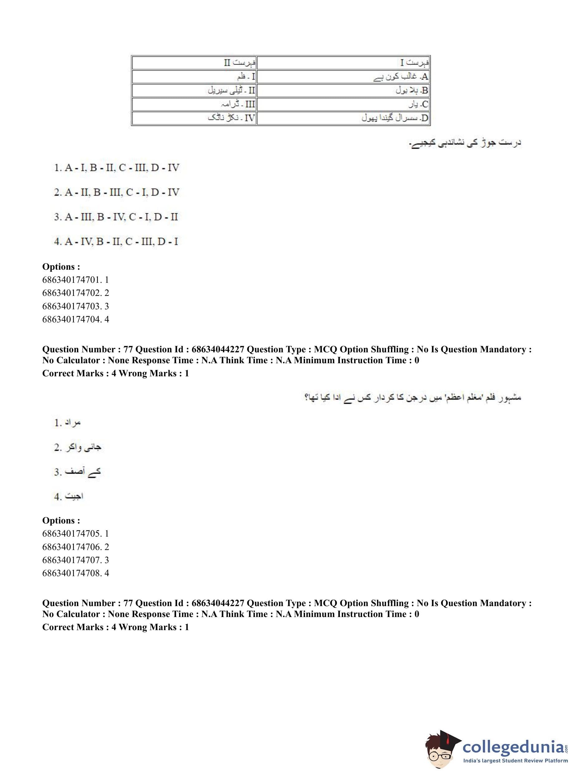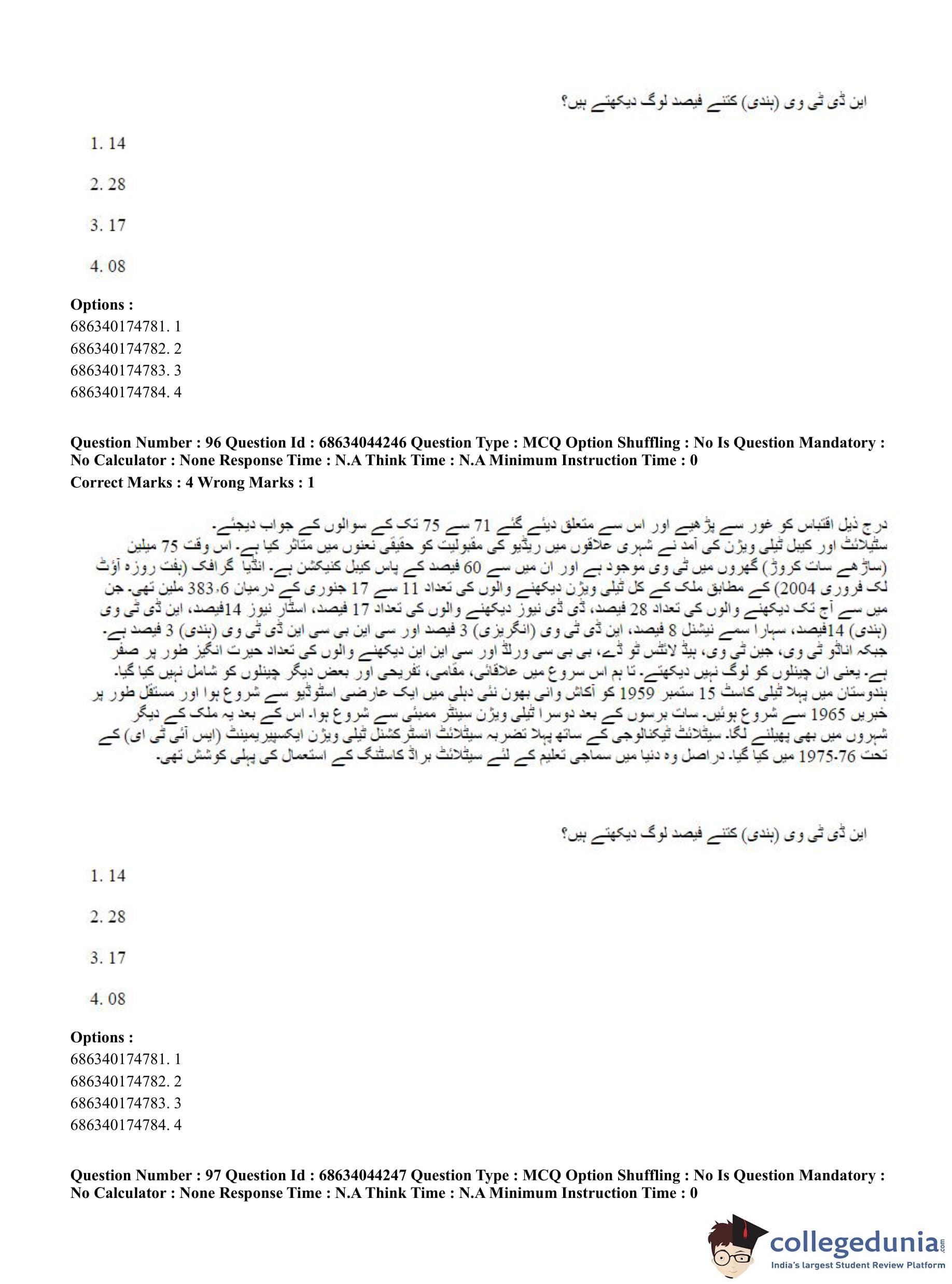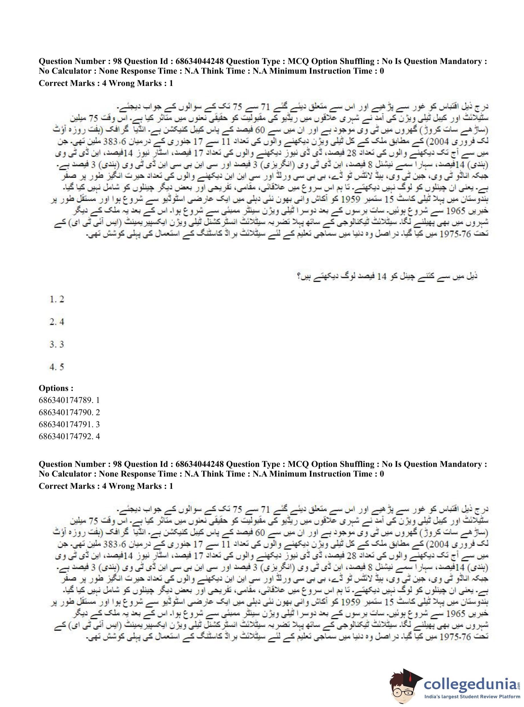 CUET PG 2023 Urdu Journalism Question Paper in Hindi (June 30 - Shift 3)