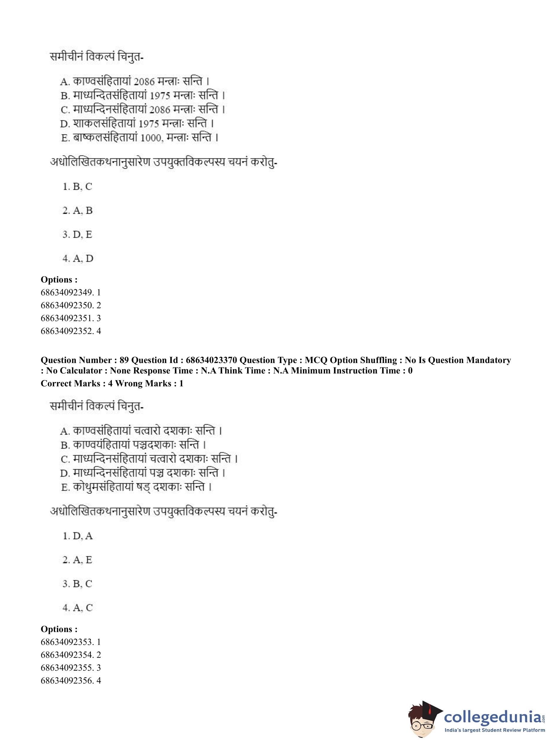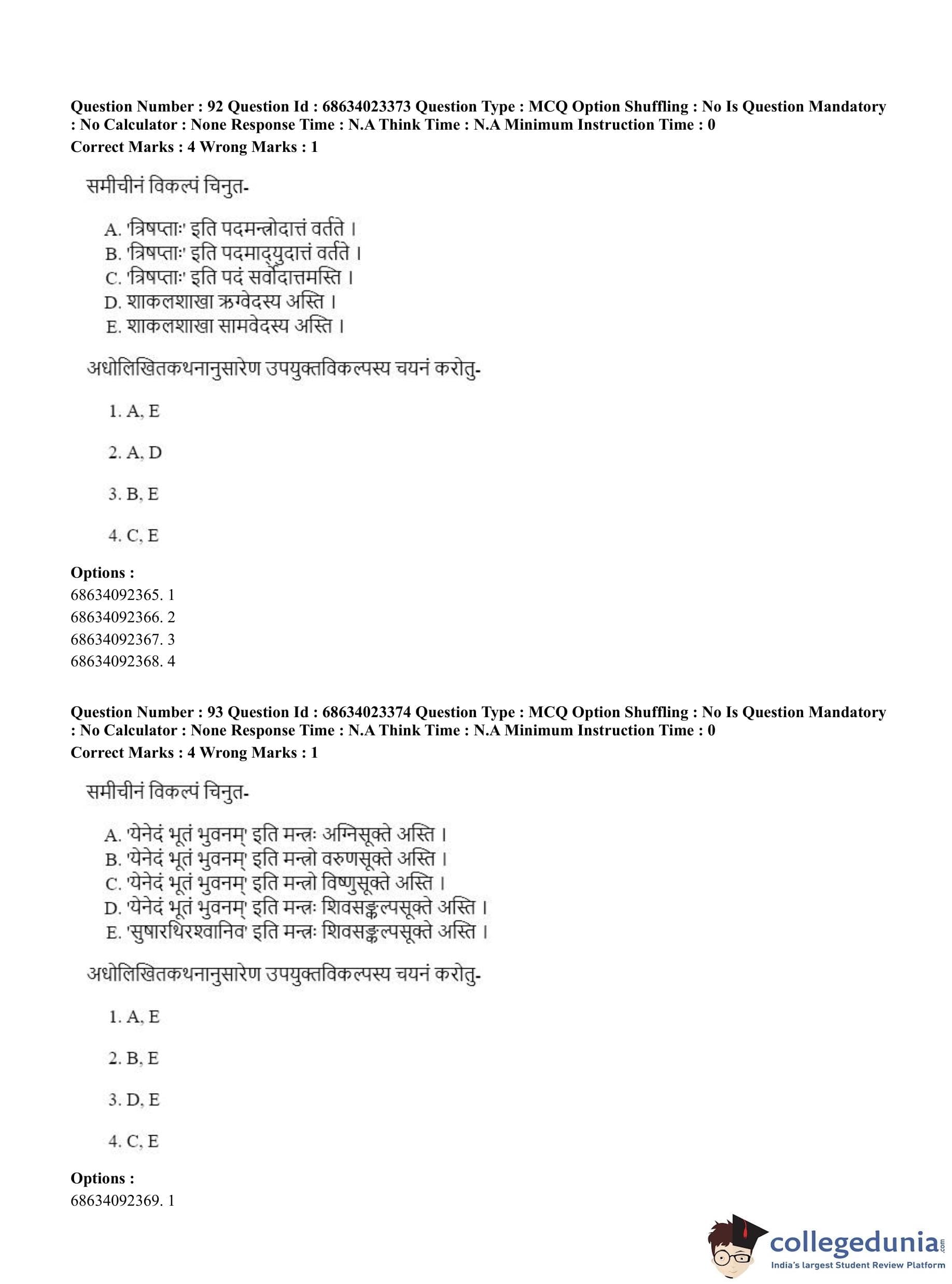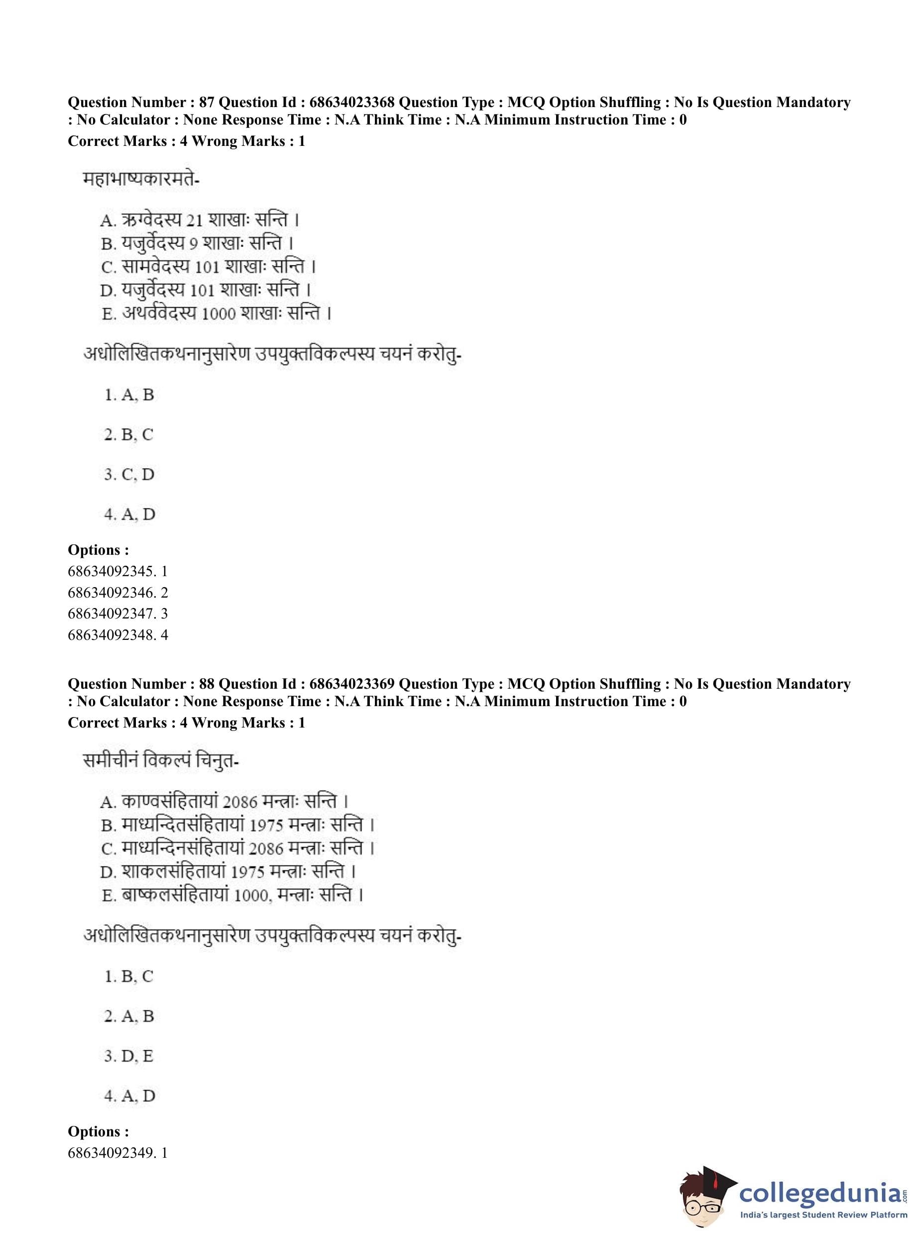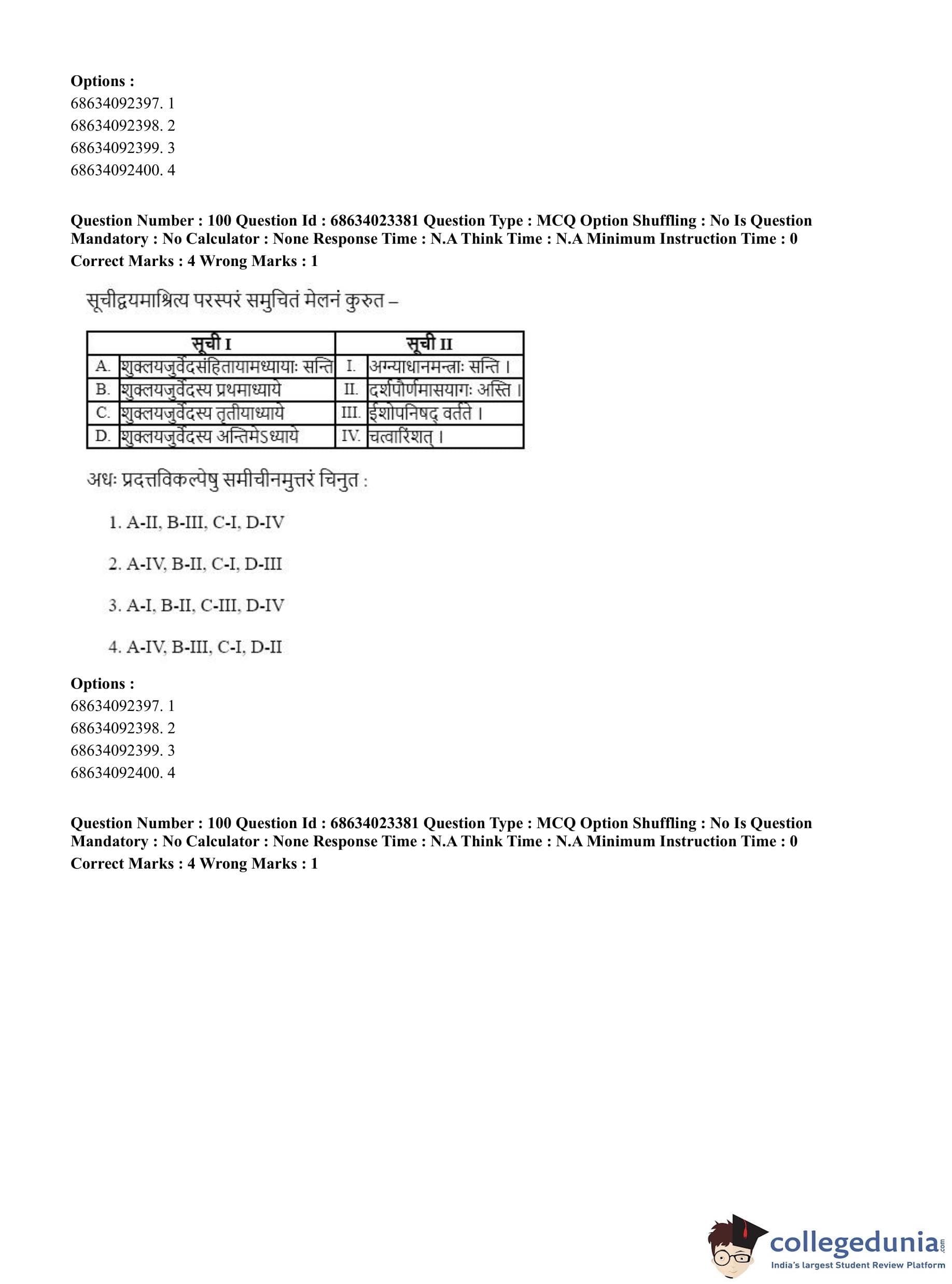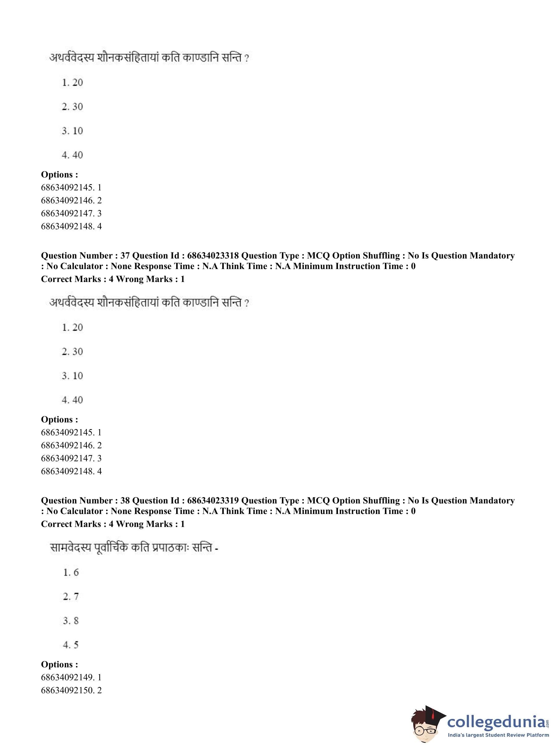 CUET PG 2023 Veda Question Paper in English (June 15 - Shift 3)