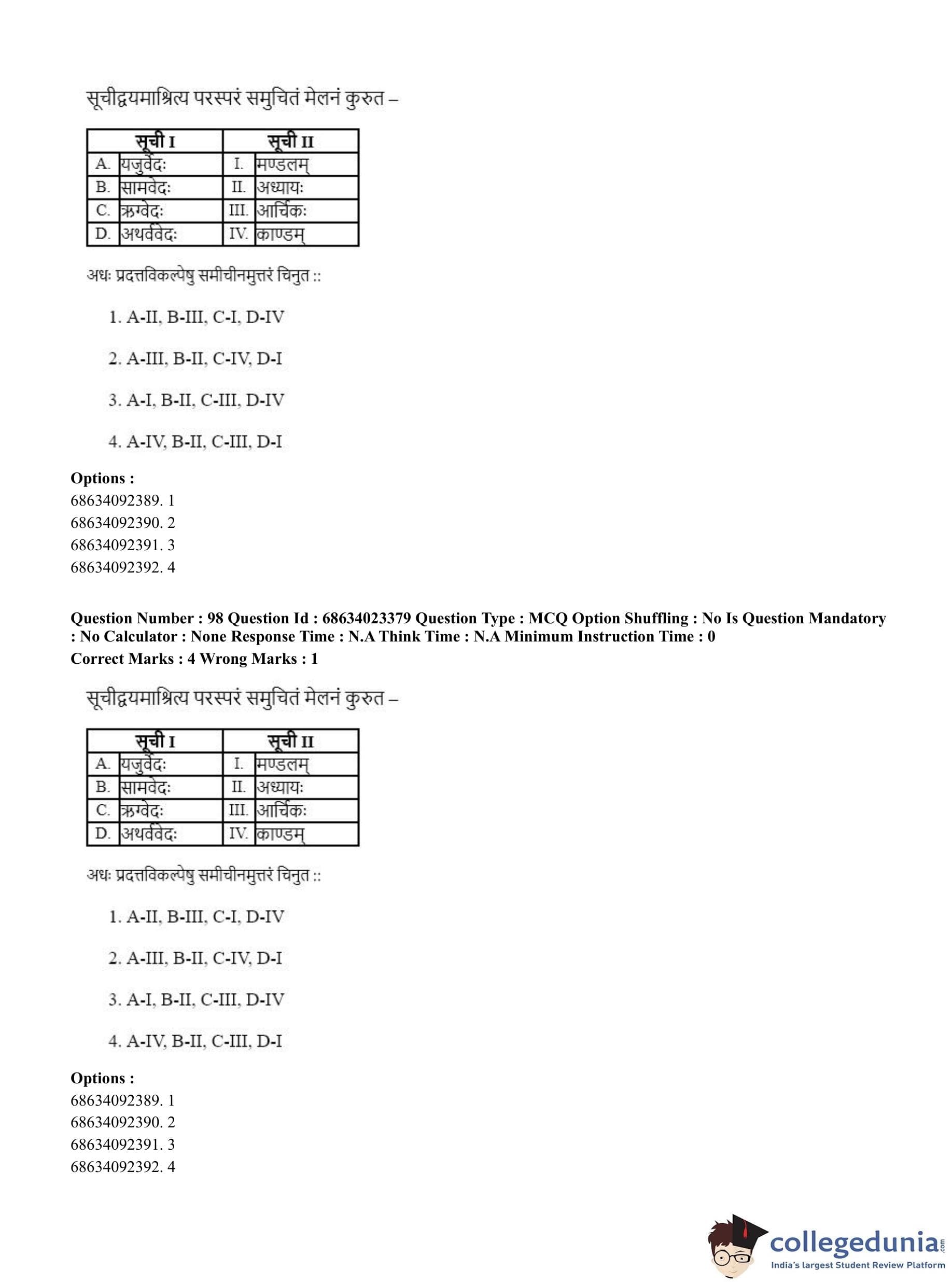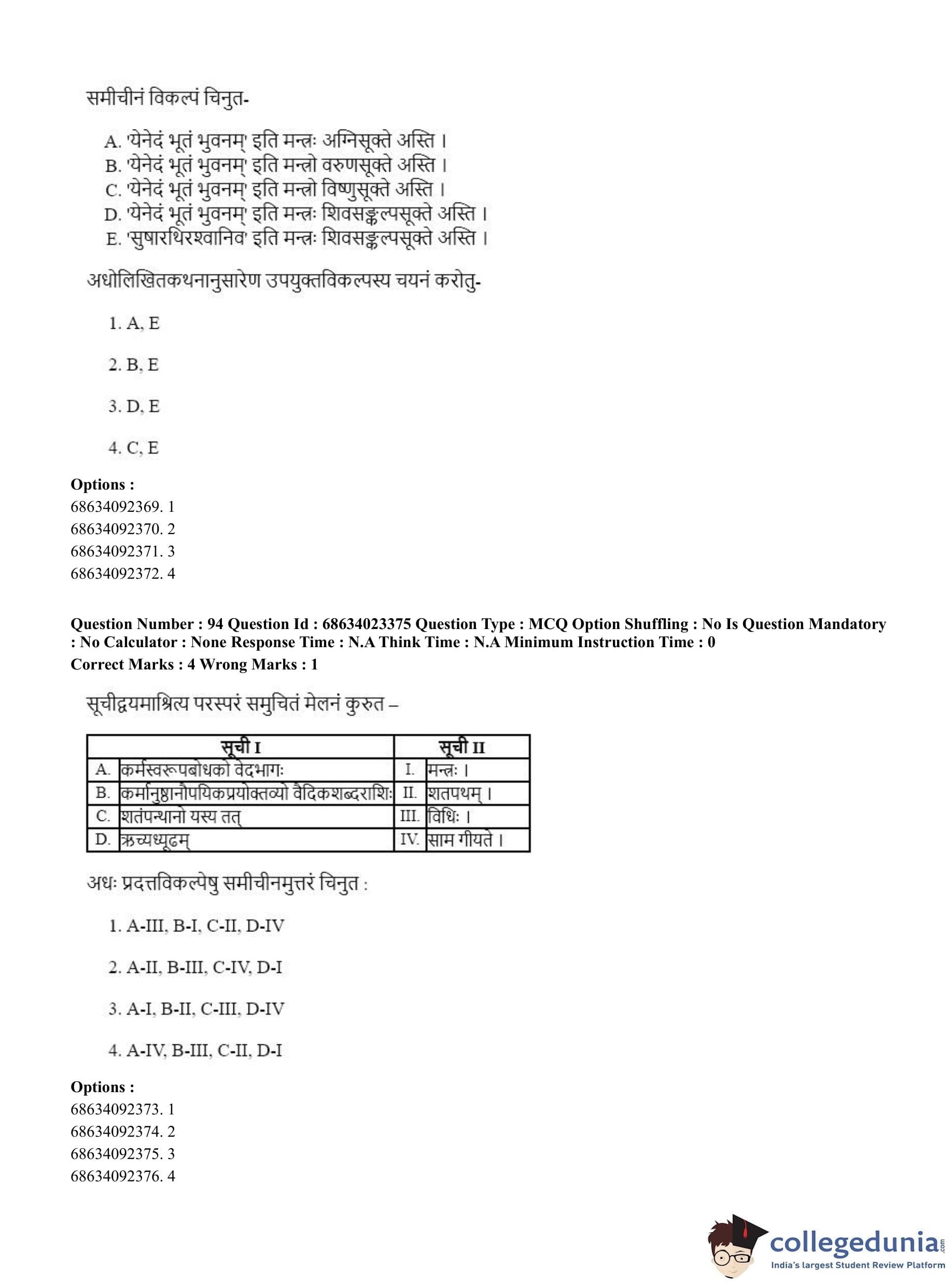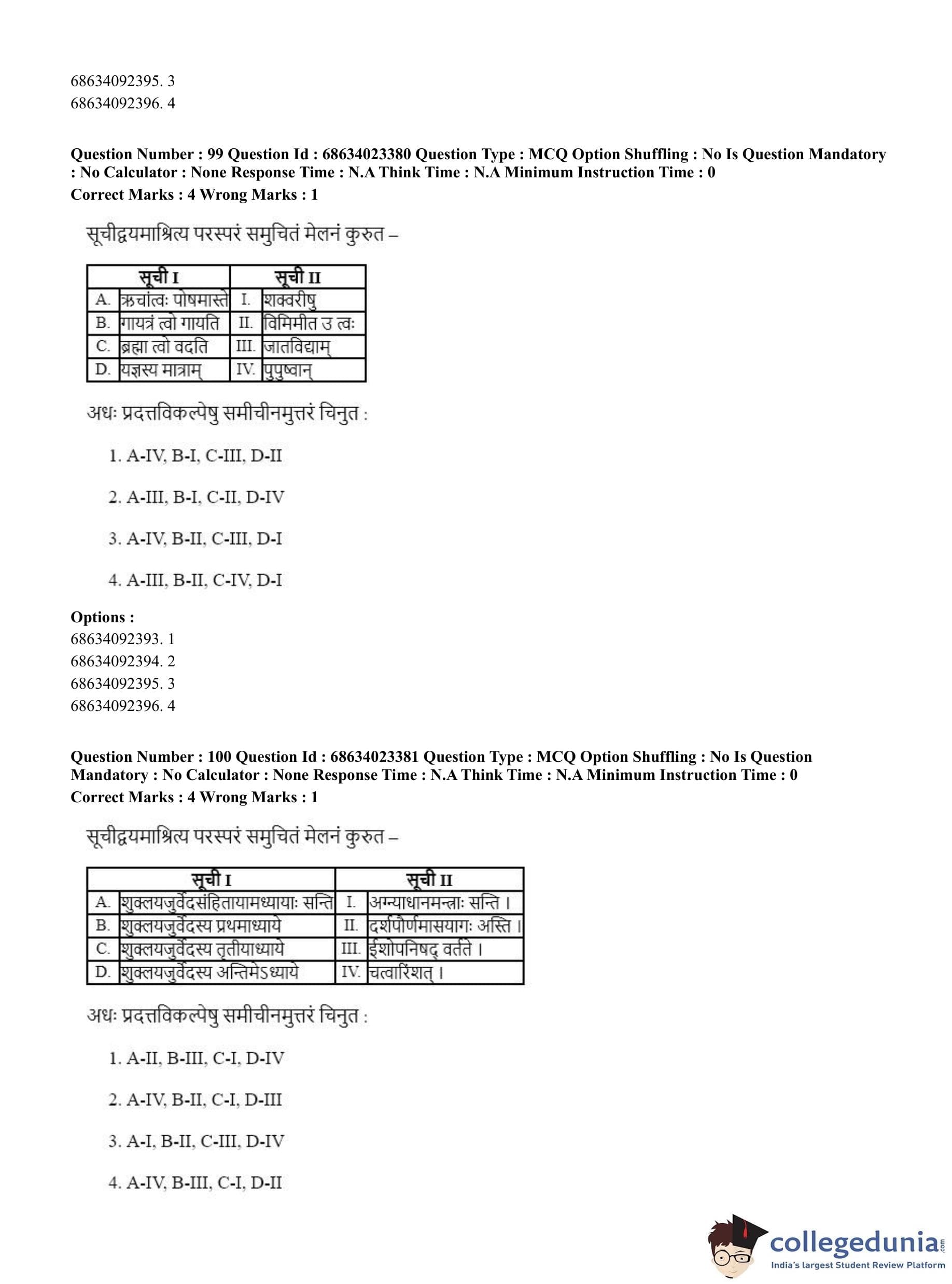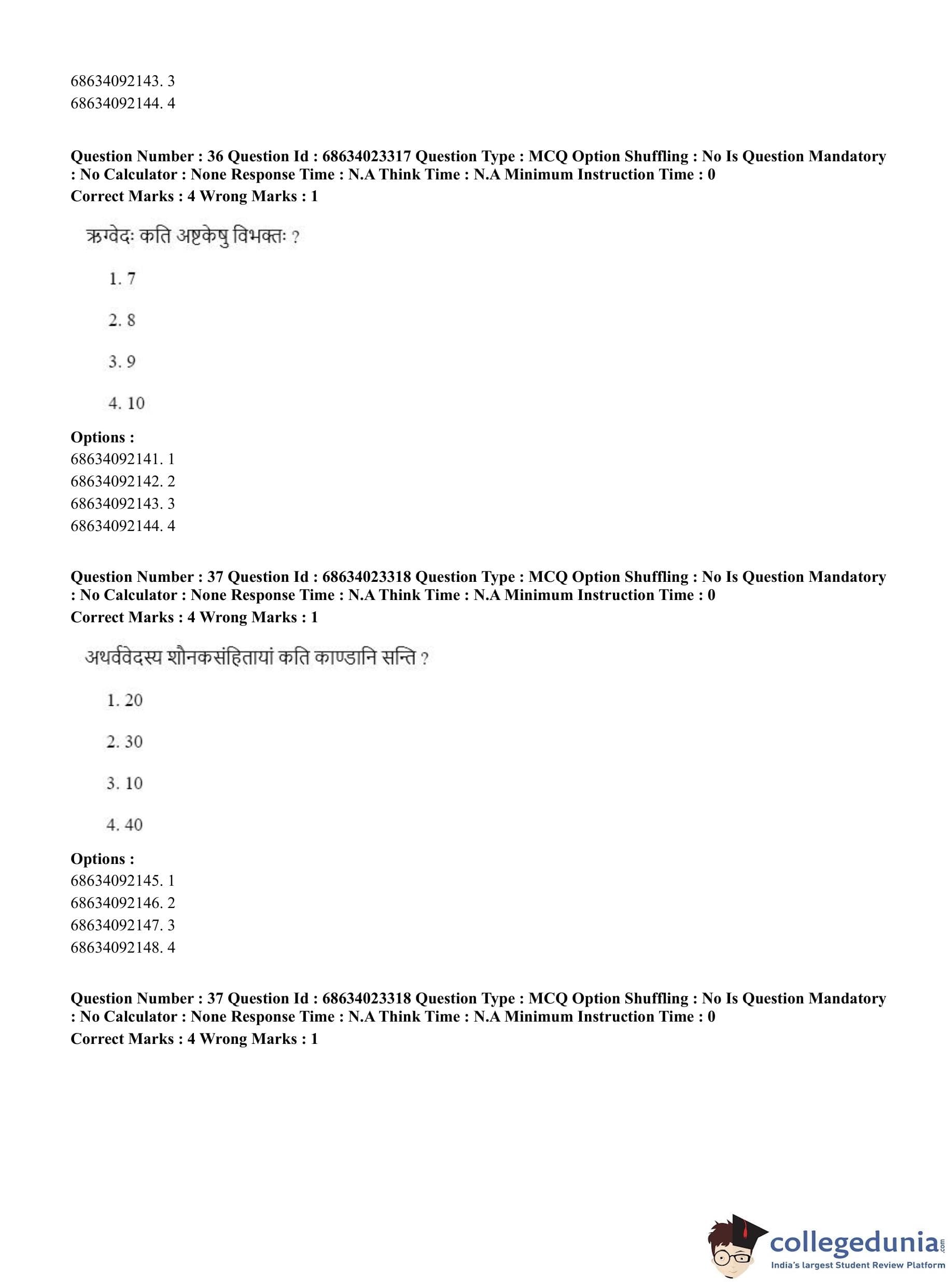 CUET PG 2023 Veda Question Paper in English (June 15 - Shift 3)