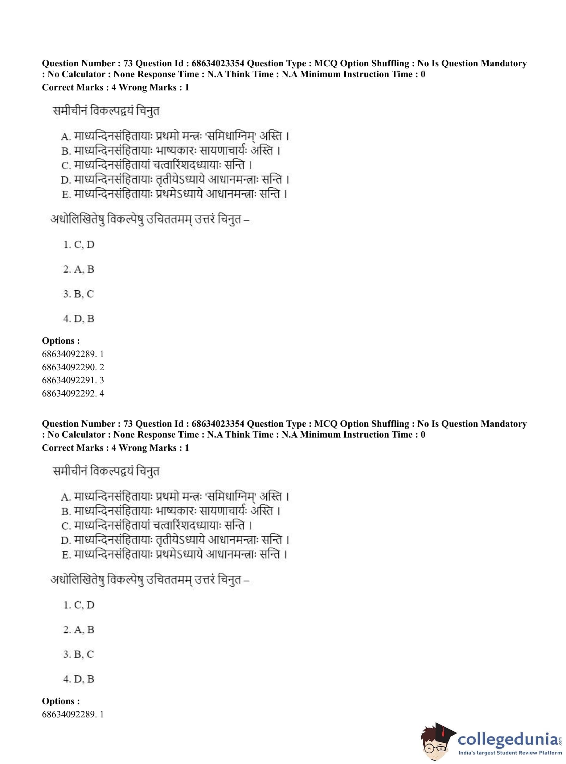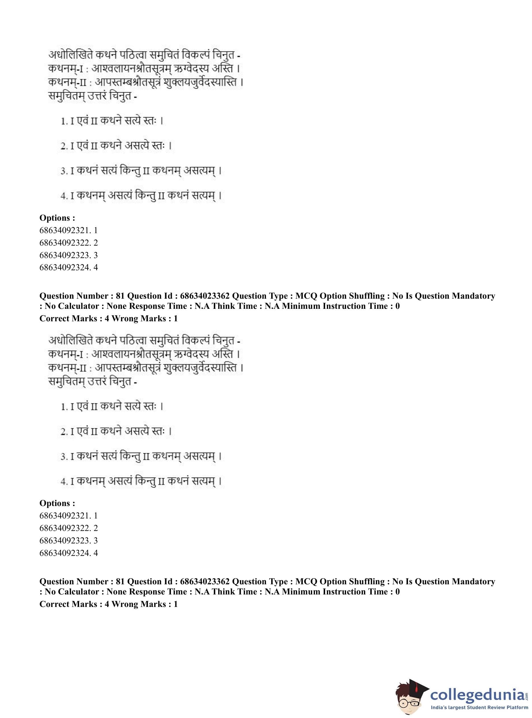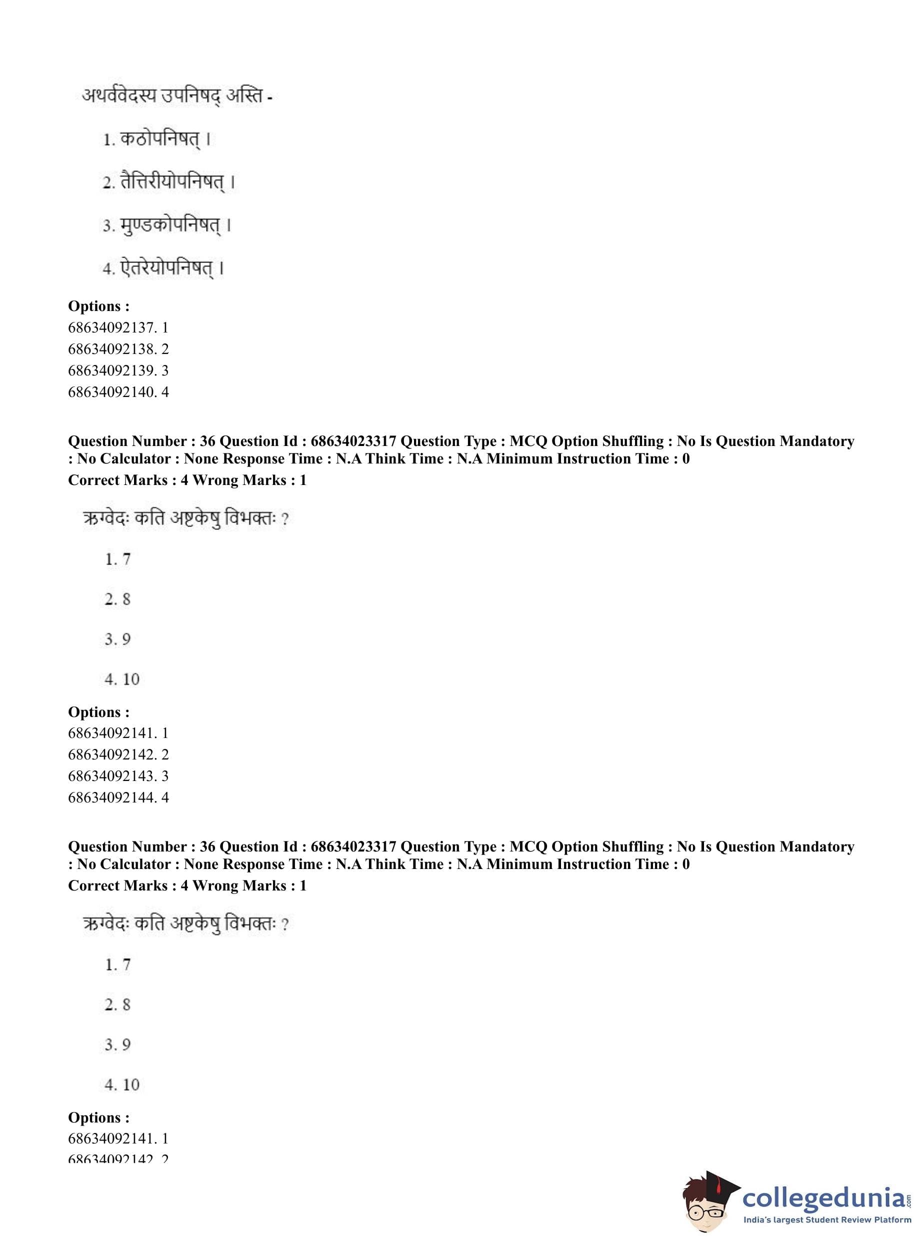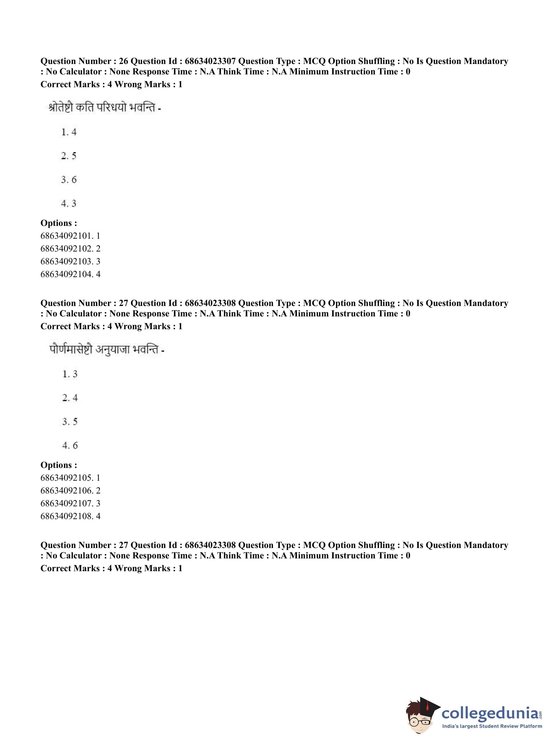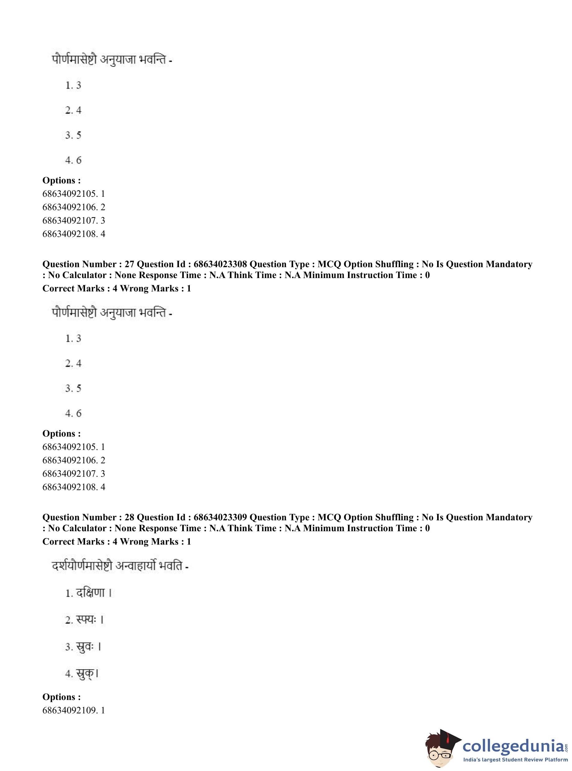 CUET PG 2023 Veda Question Paper in English (June 15 - Shift 3)