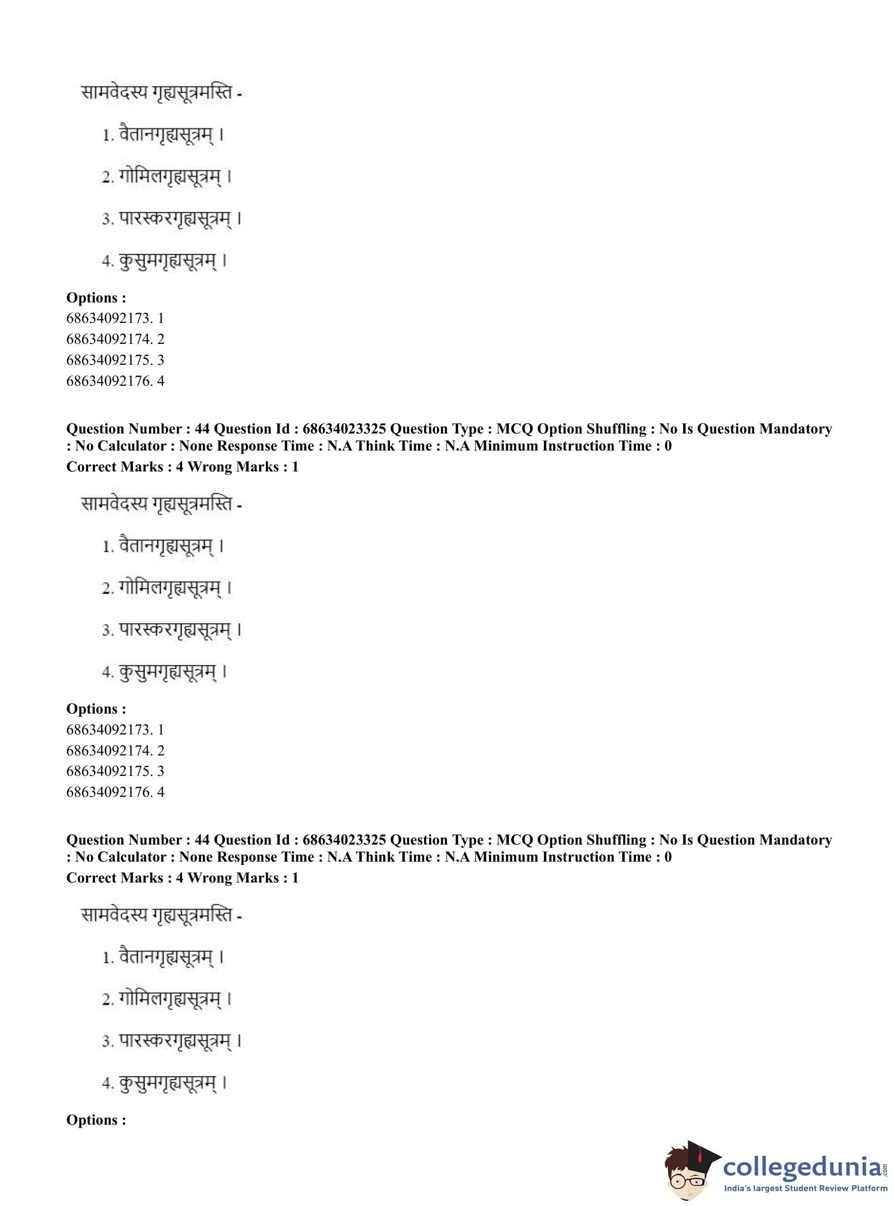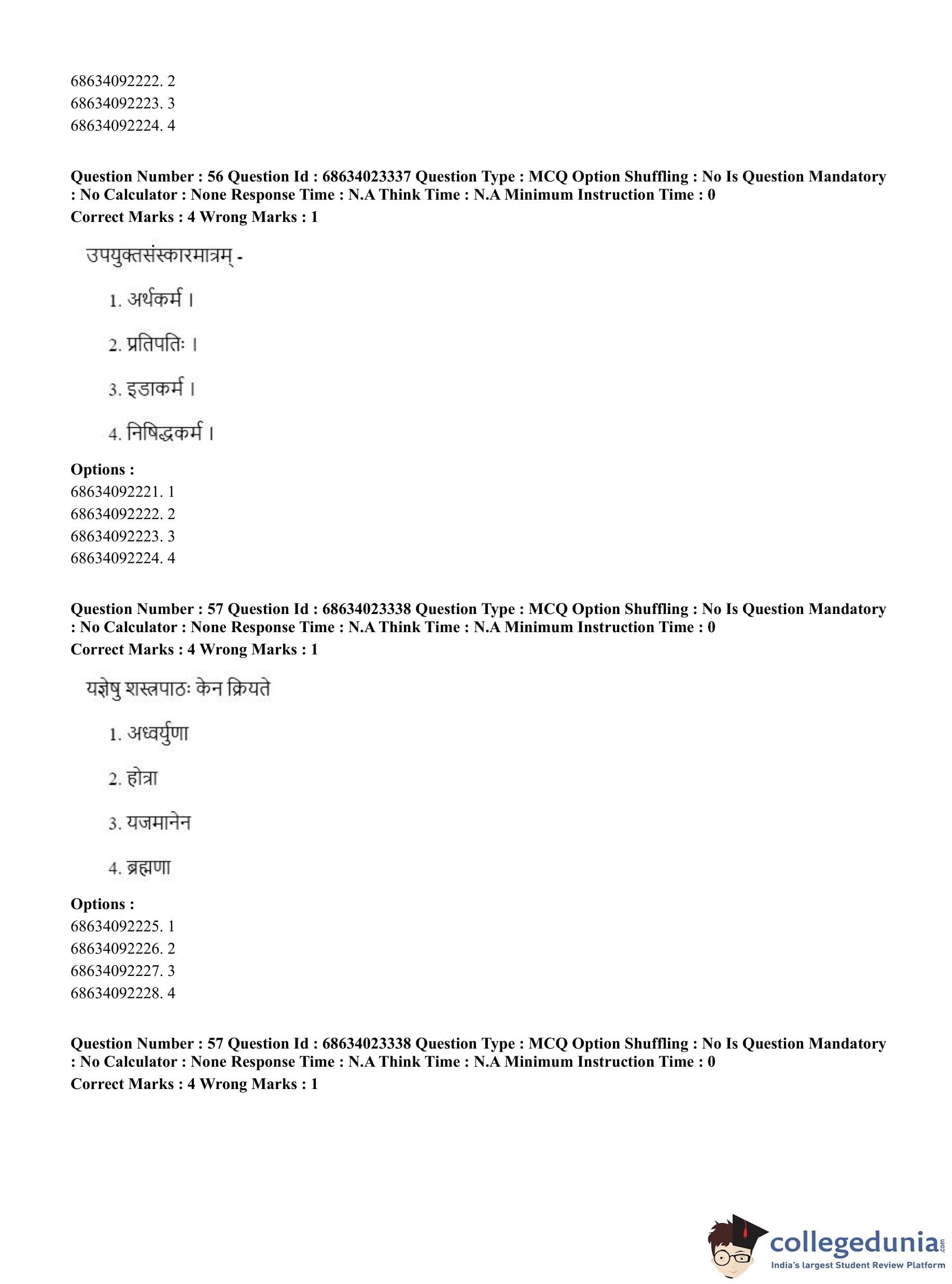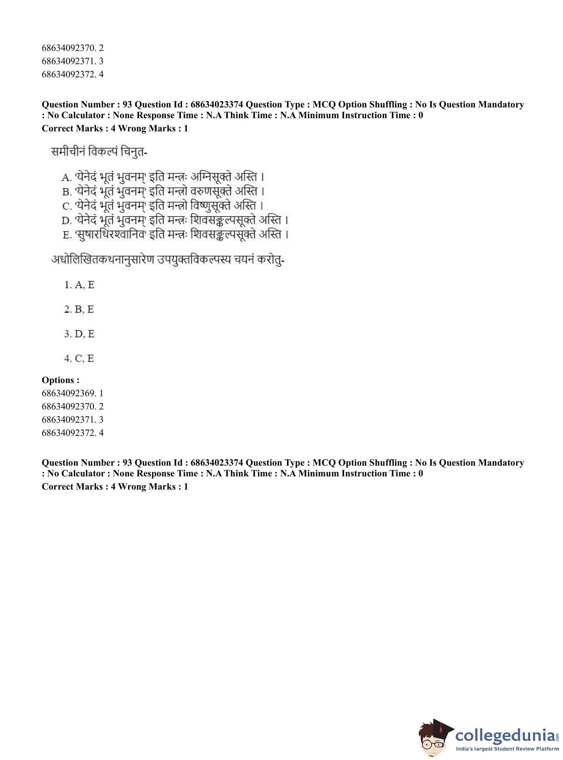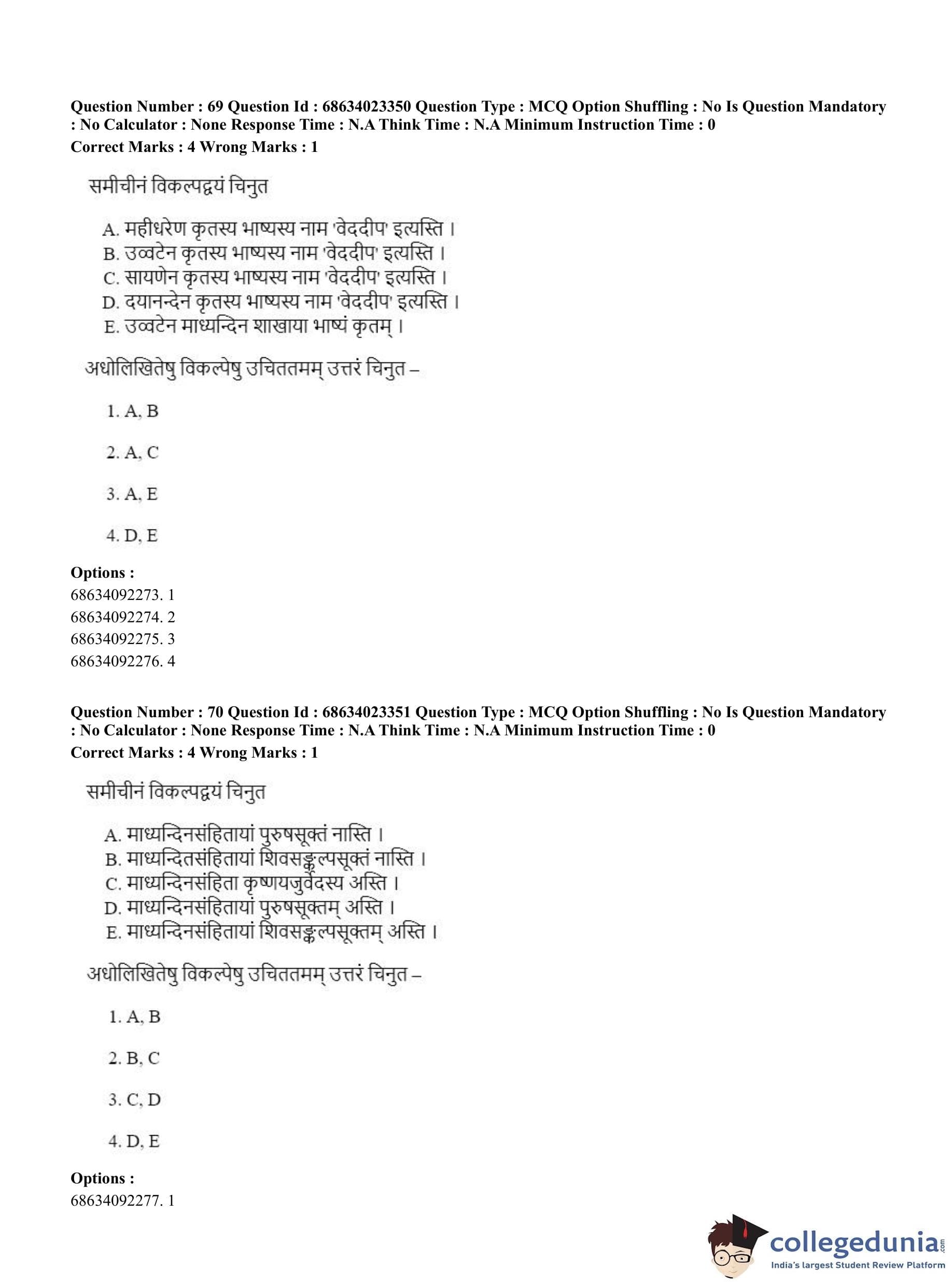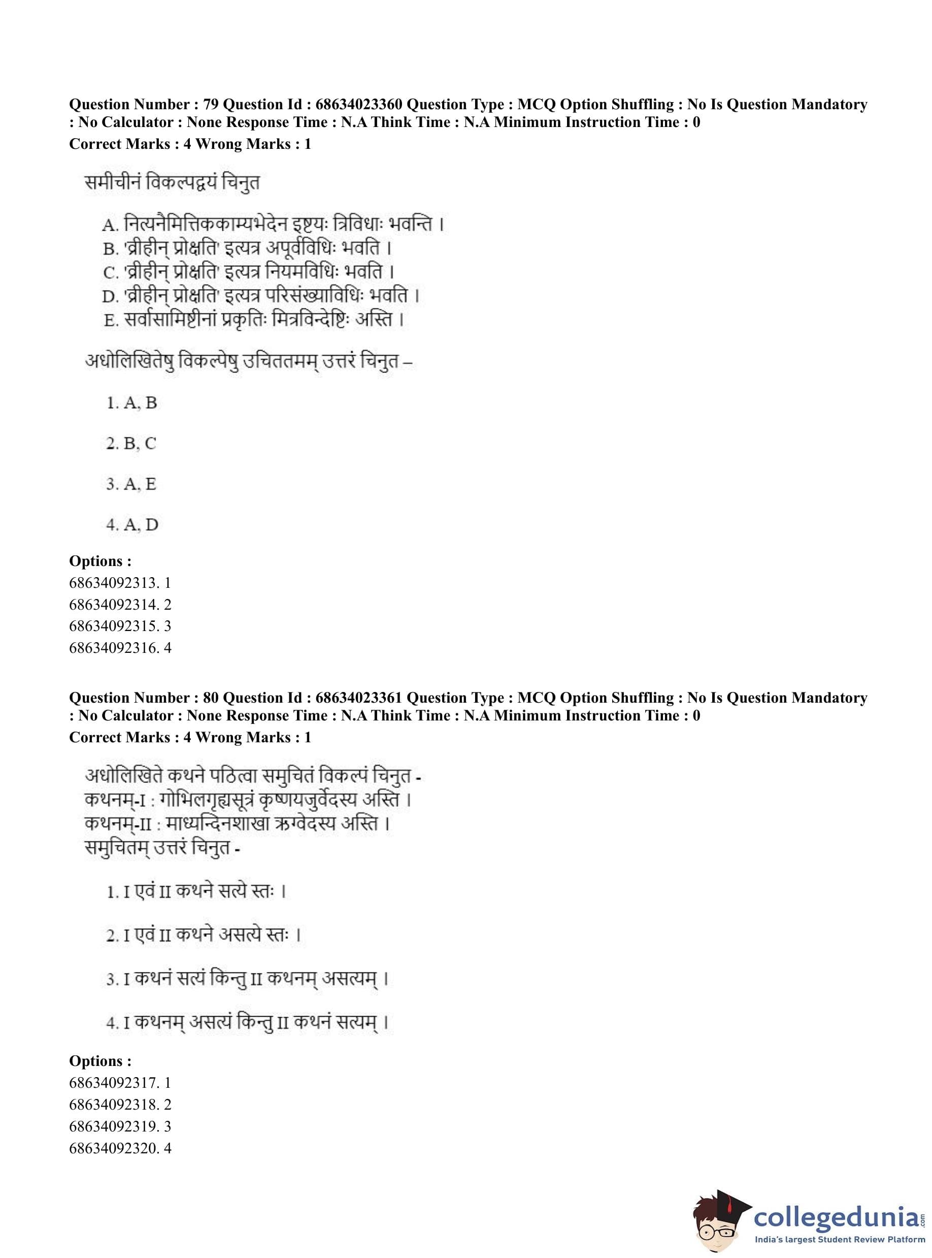 CUET PG 2023 Veda Question Paper in English (June 15 - Shift 3)