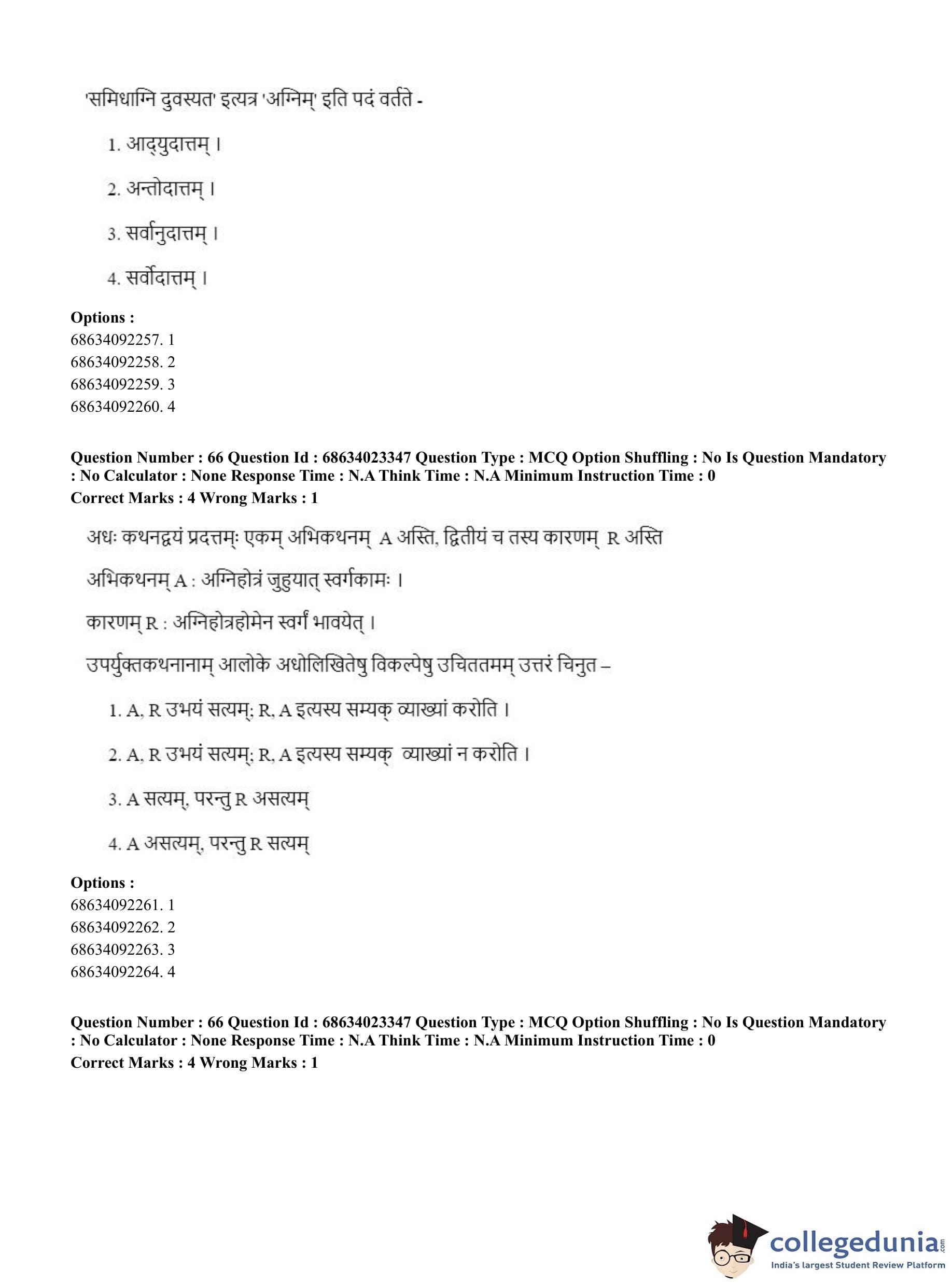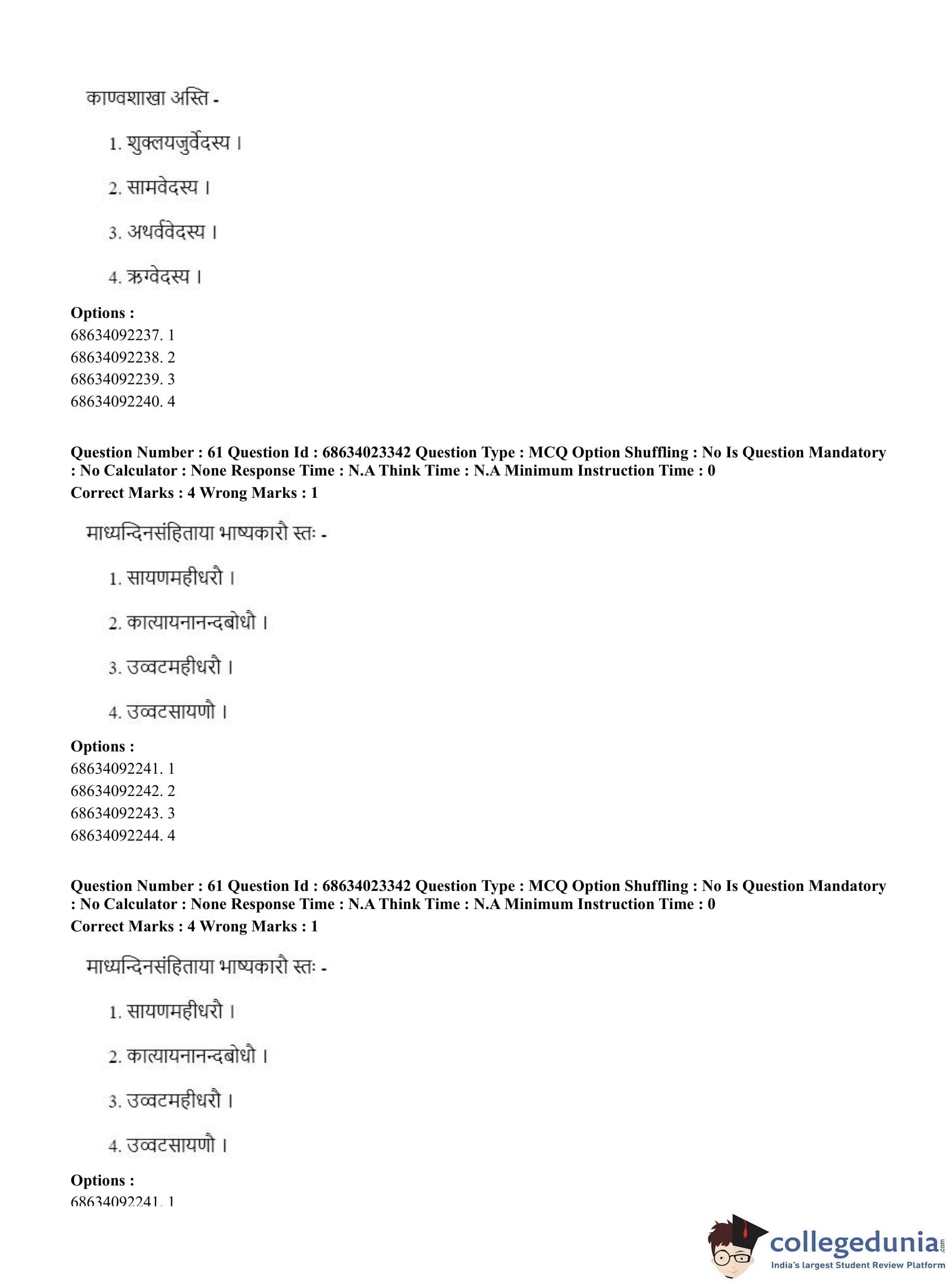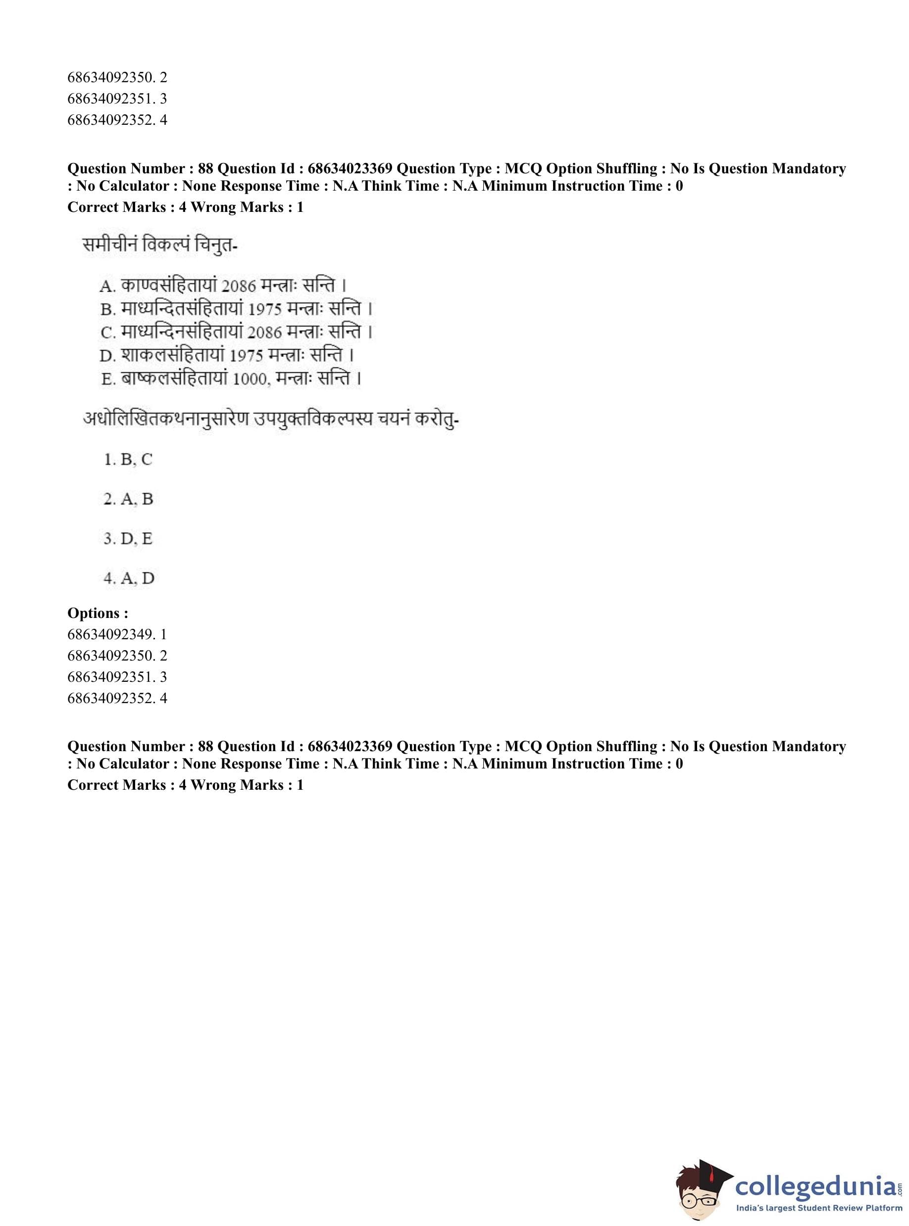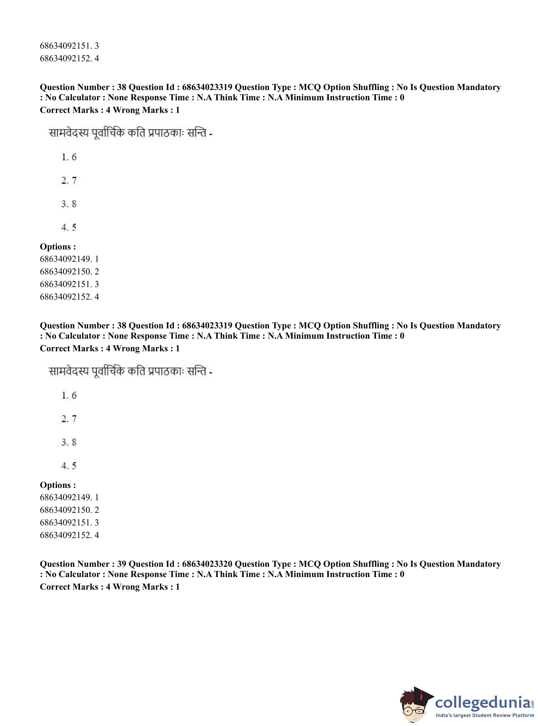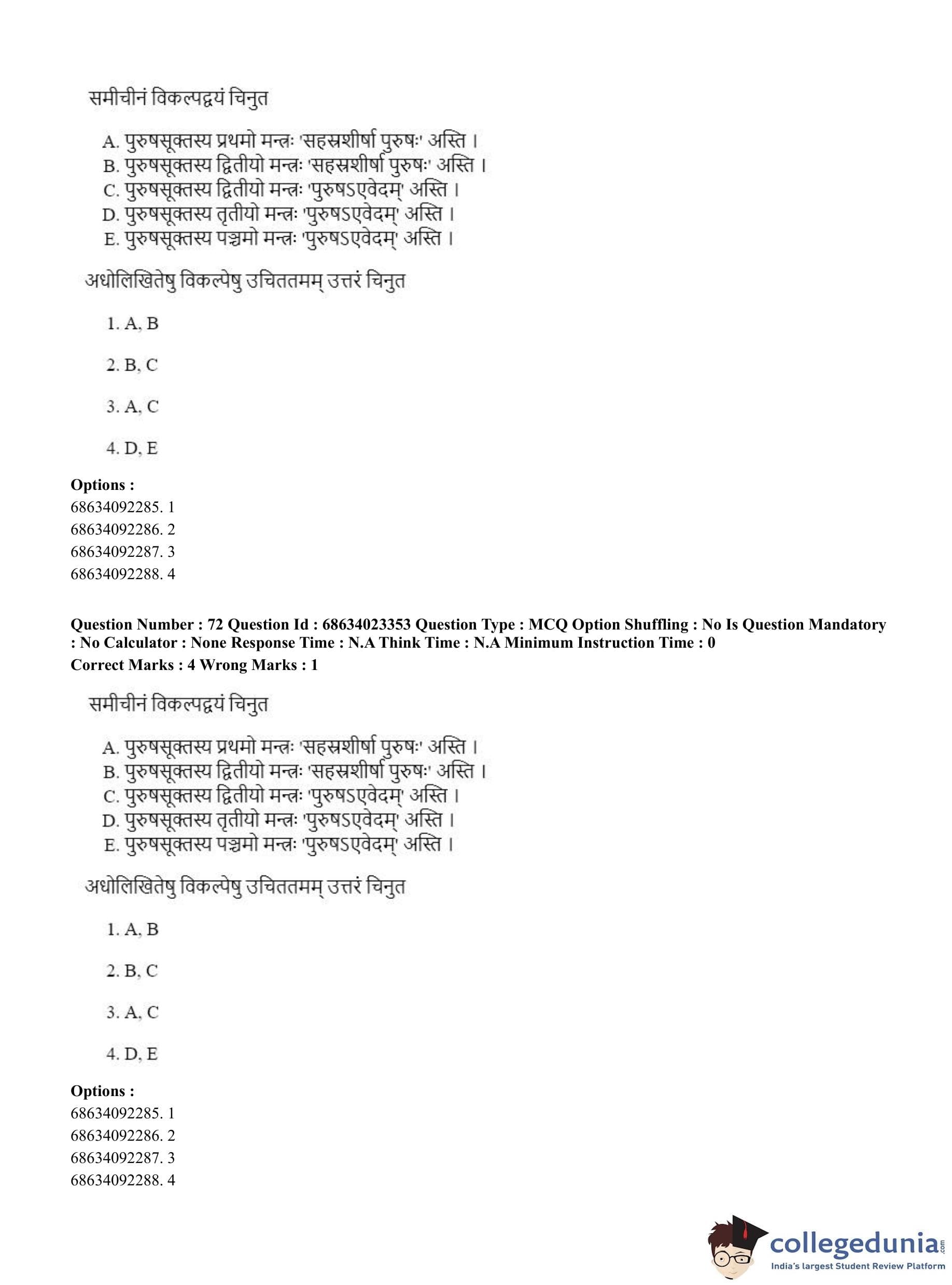 CUET PG 2023 Veda Question Paper in English (June 15 - Shift 3)