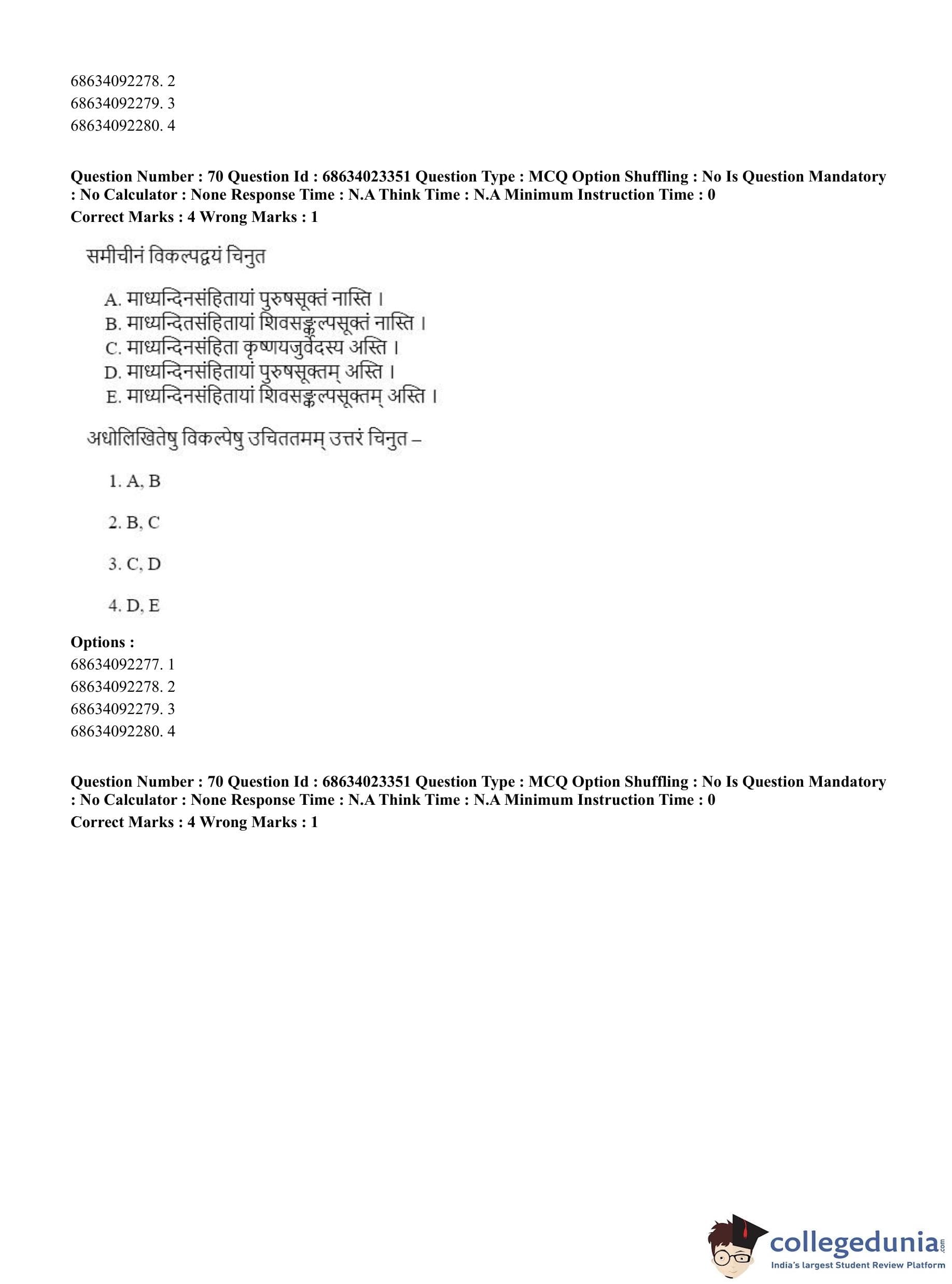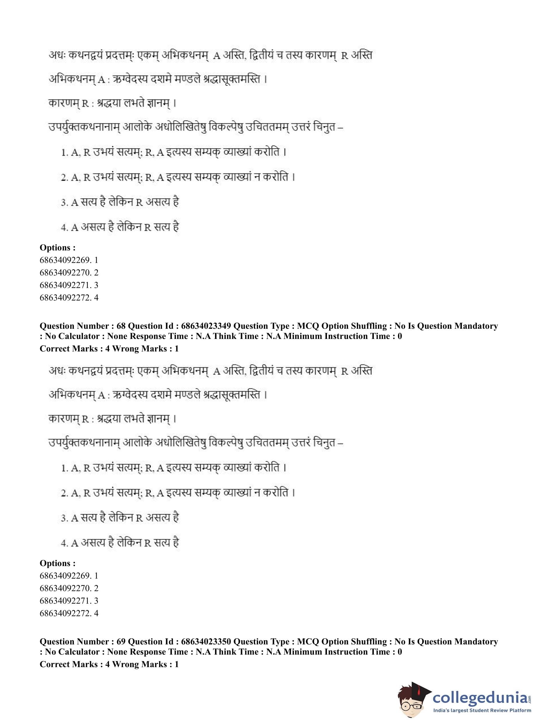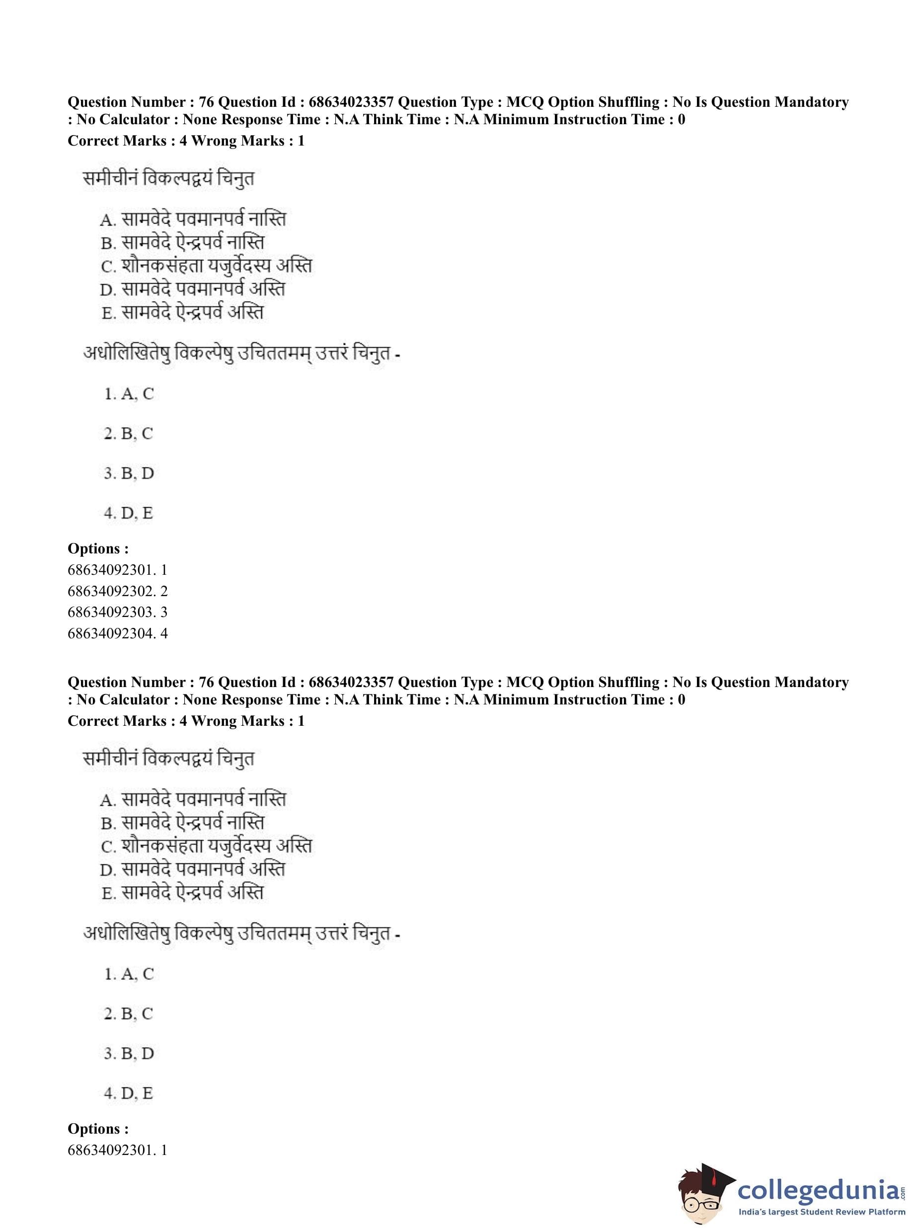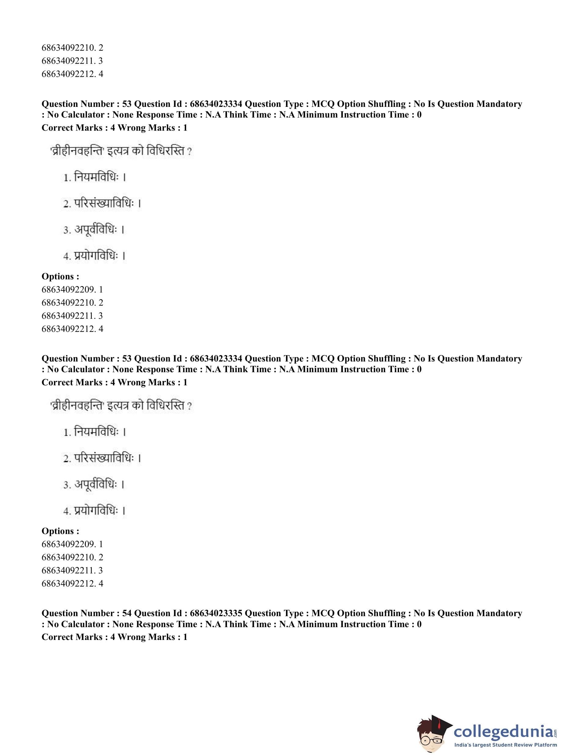 CUET PG 2023 Veda Question Paper in English (June 15 - Shift 3)