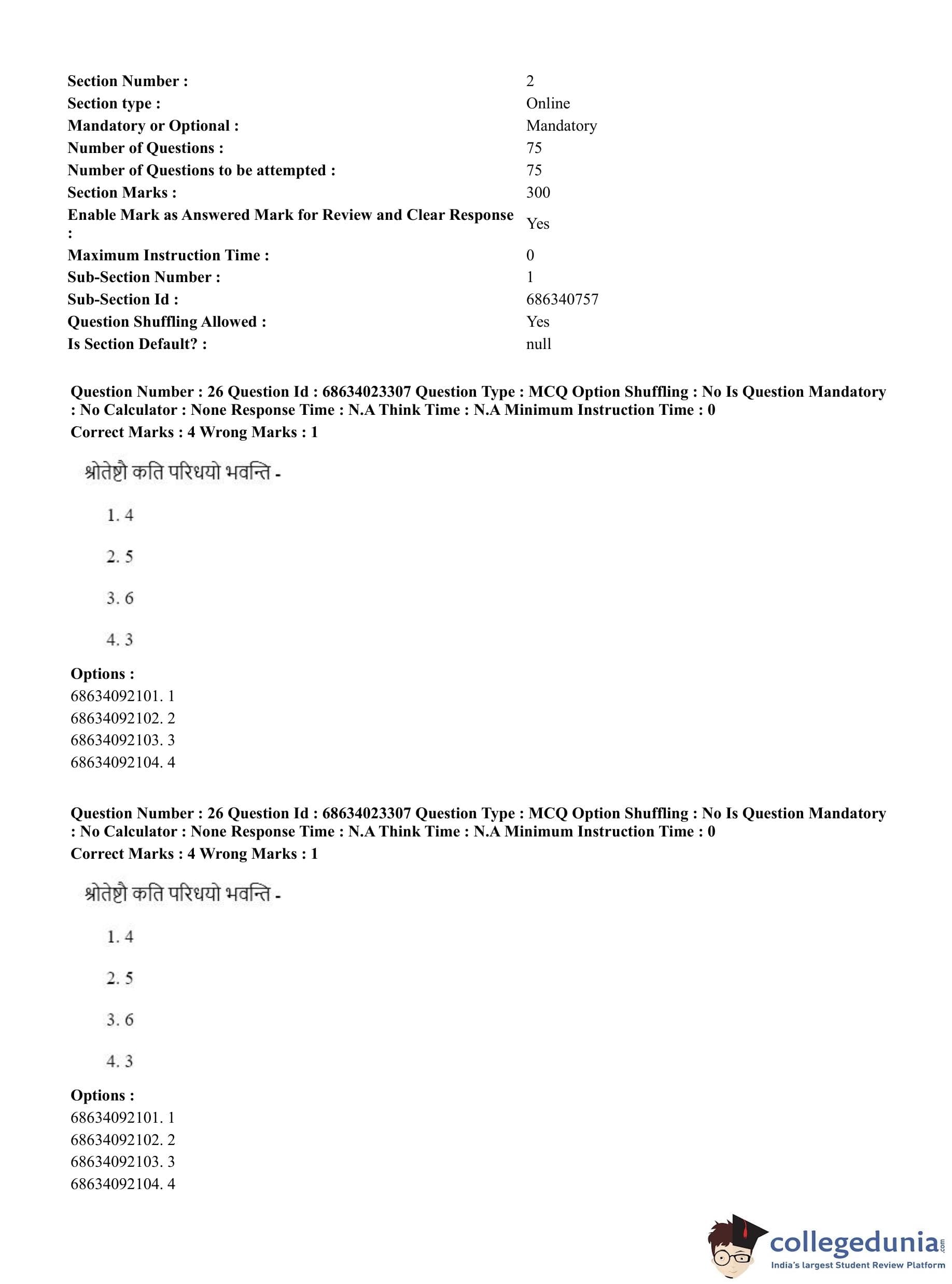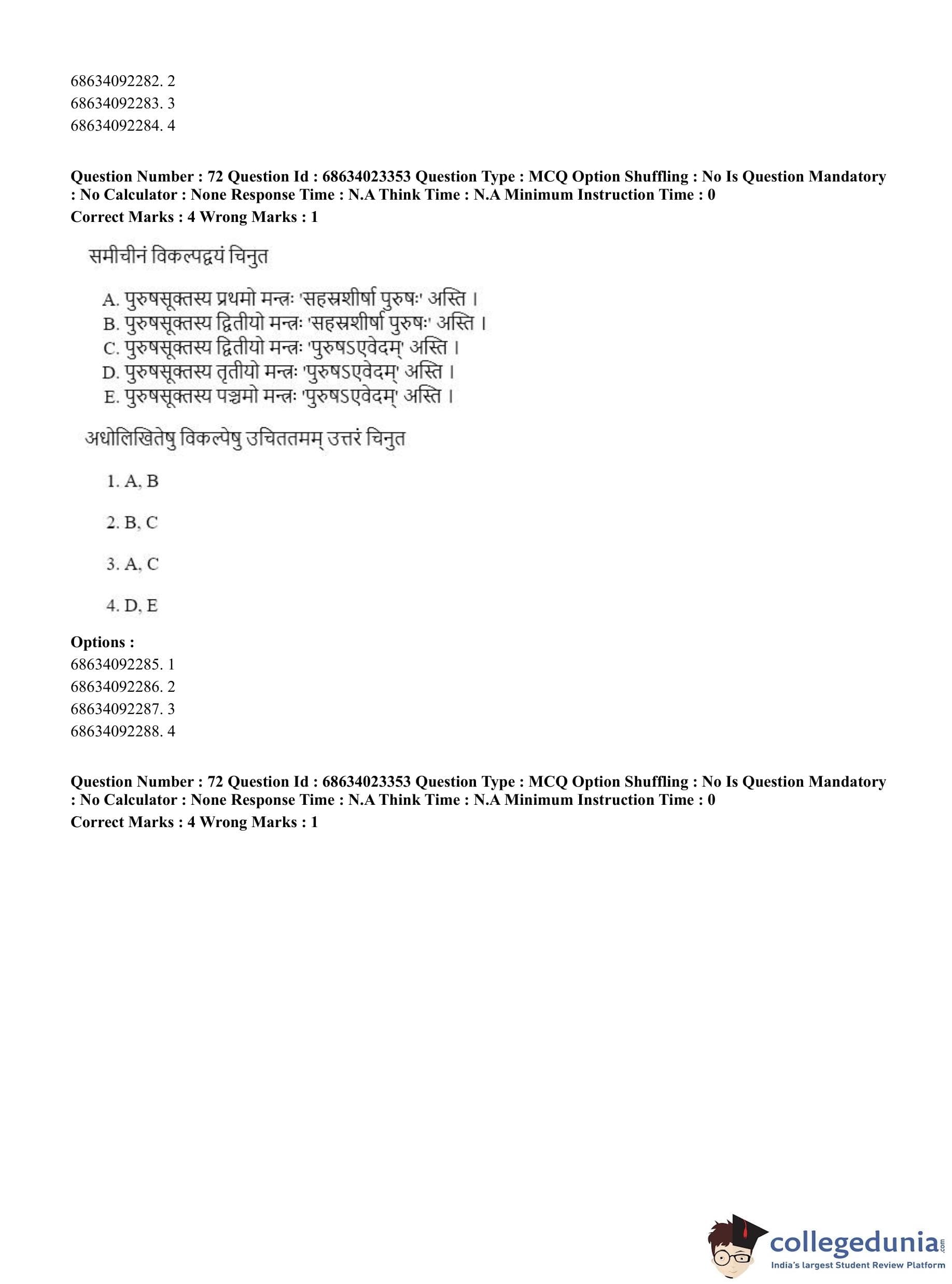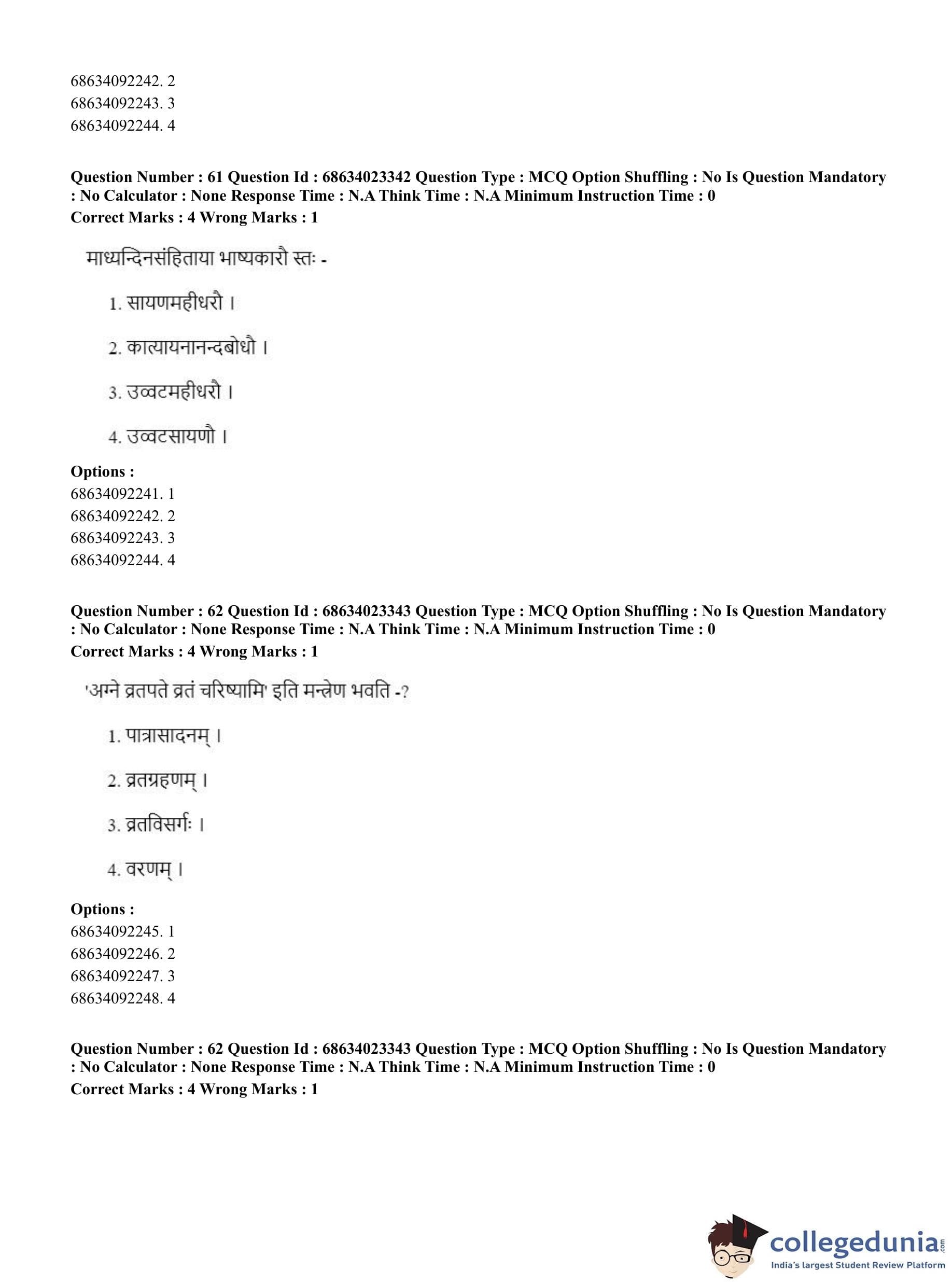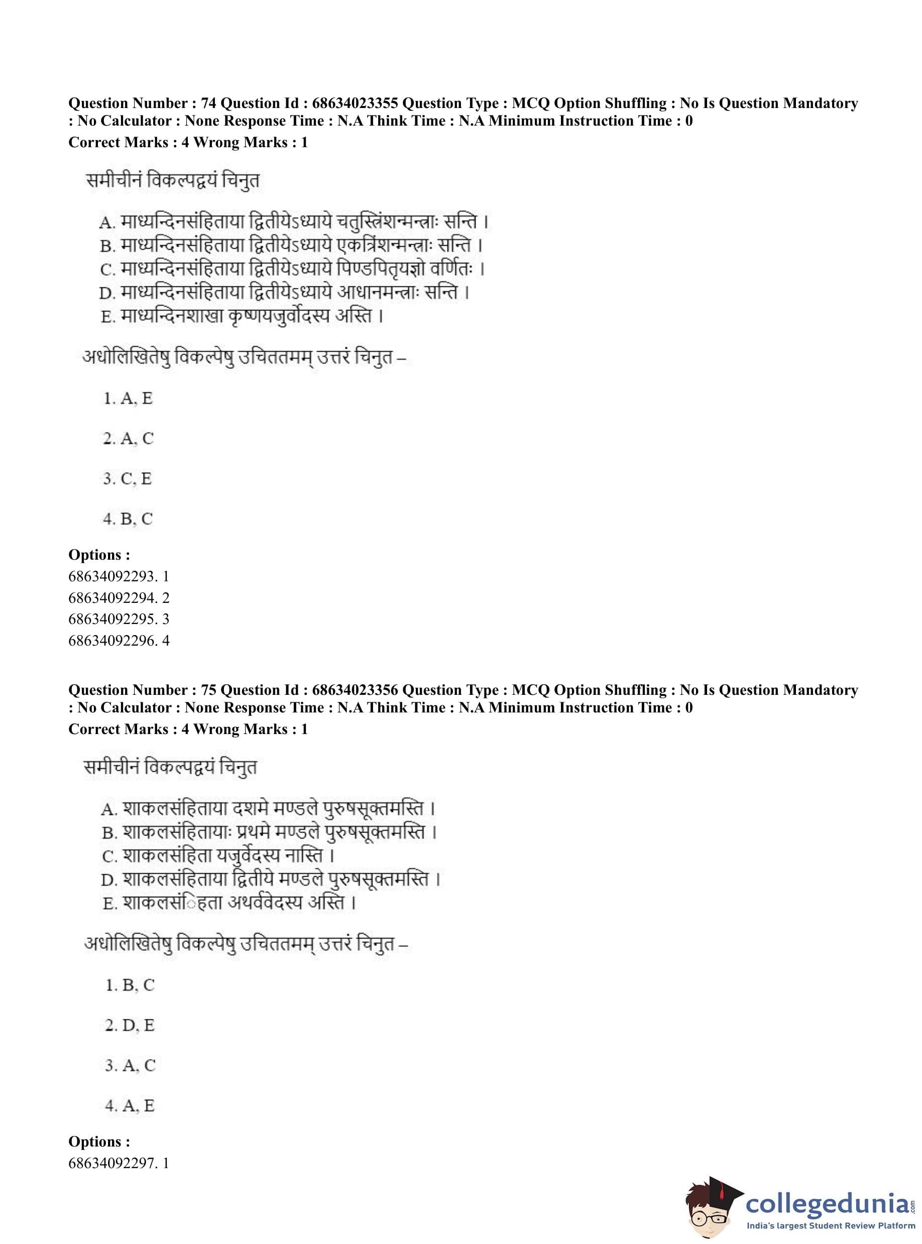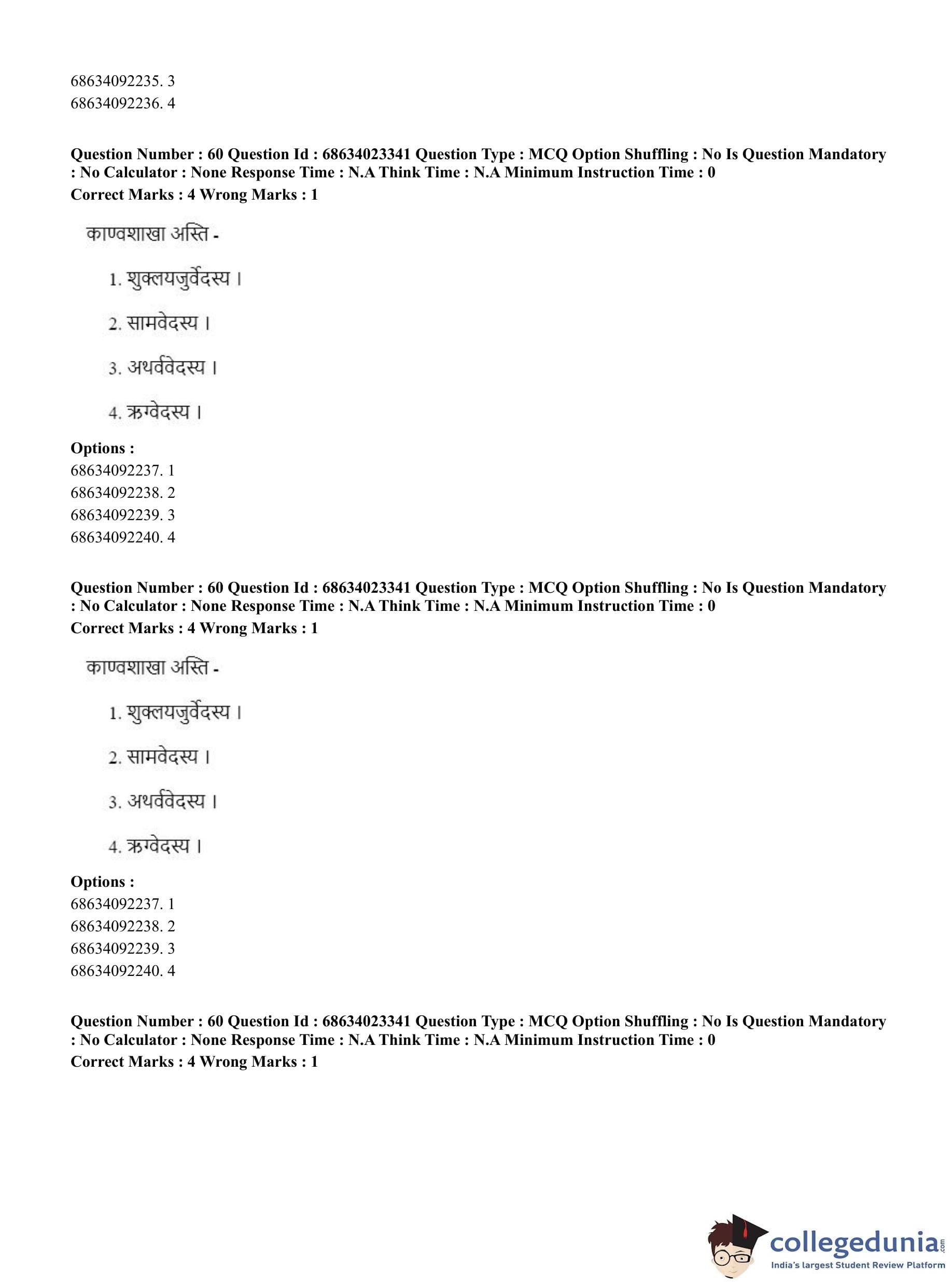 CUET PG 2023 Veda Question Paper in English (June 15 - Shift 3)