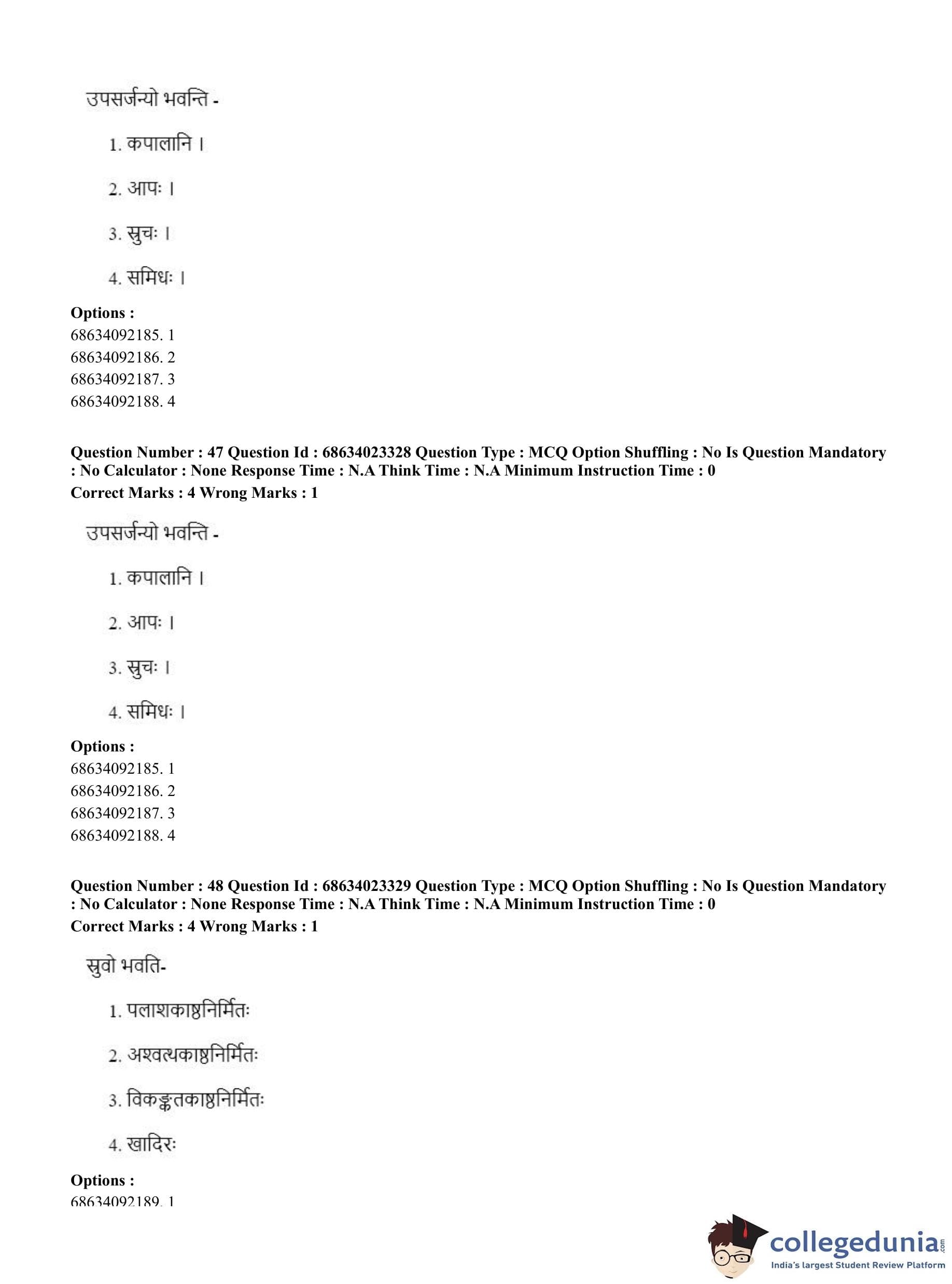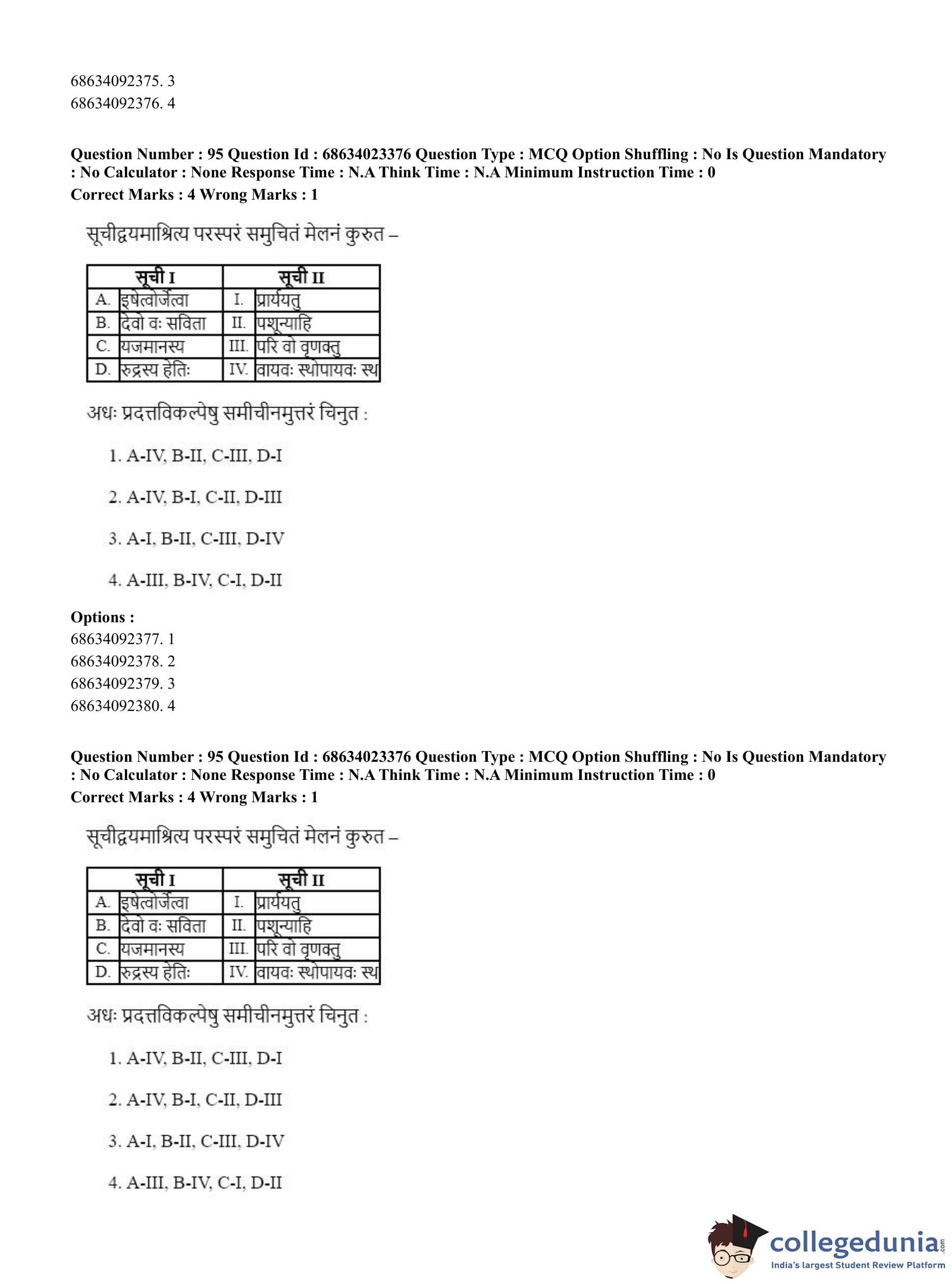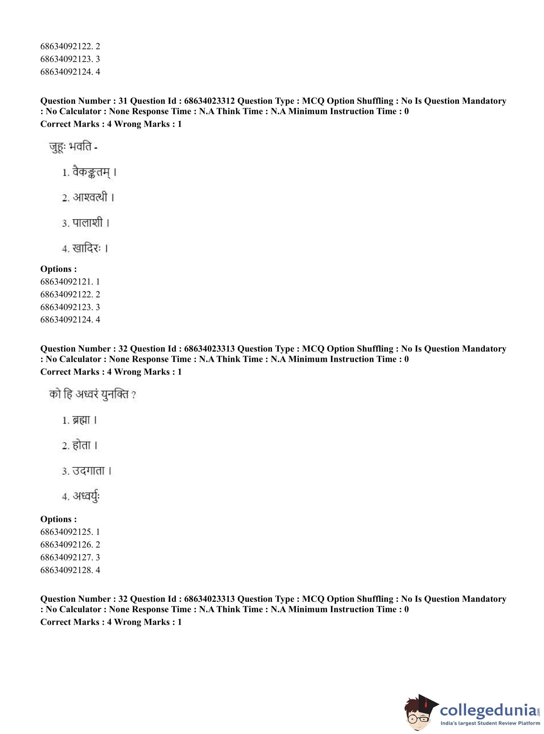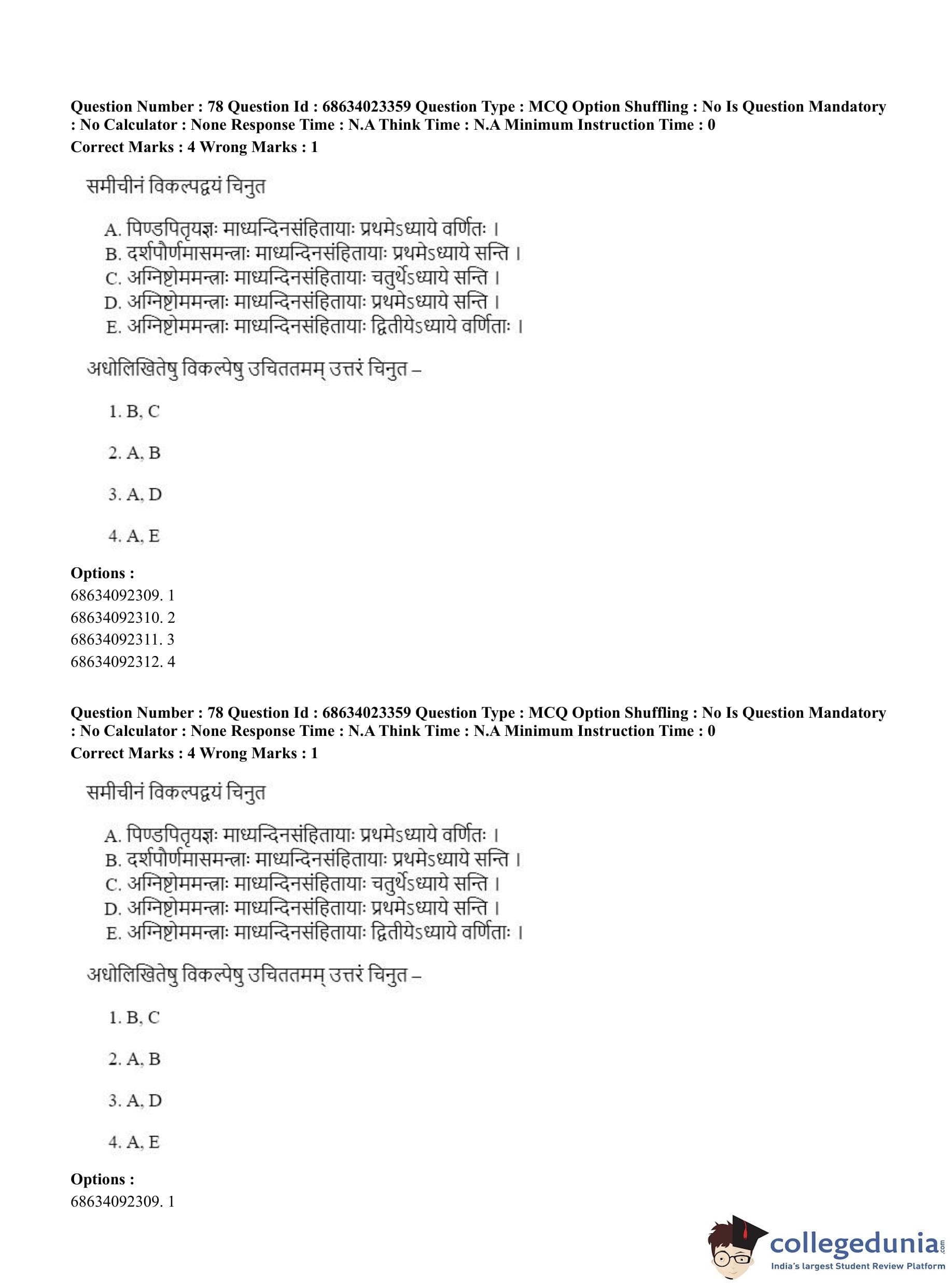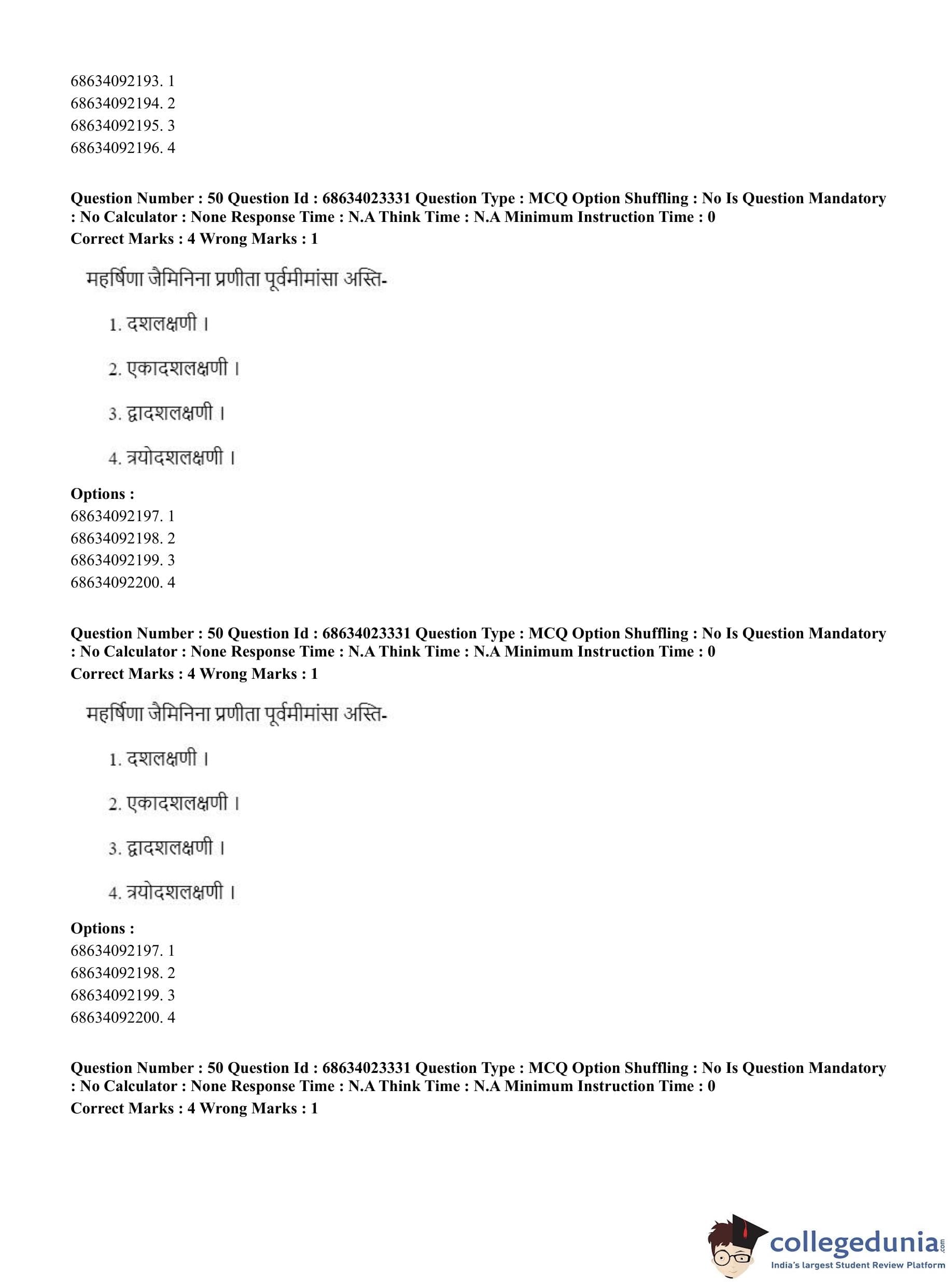 CUET PG 2023 Veda Question Paper in English (June 15 - Shift 3)