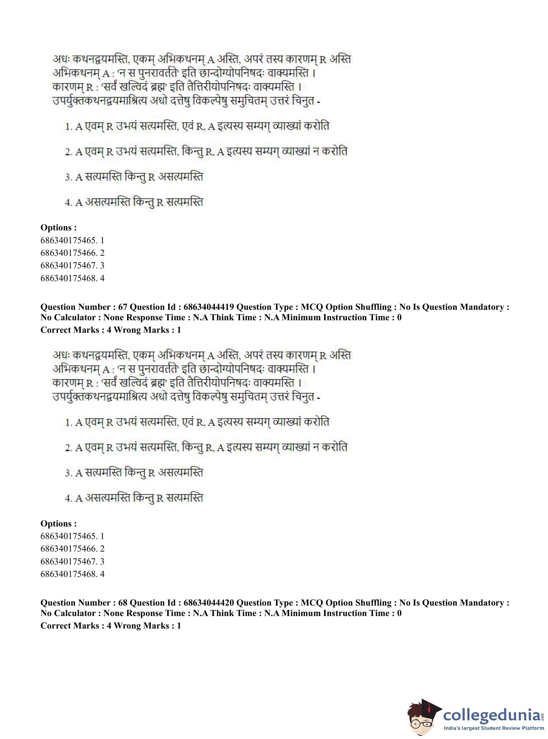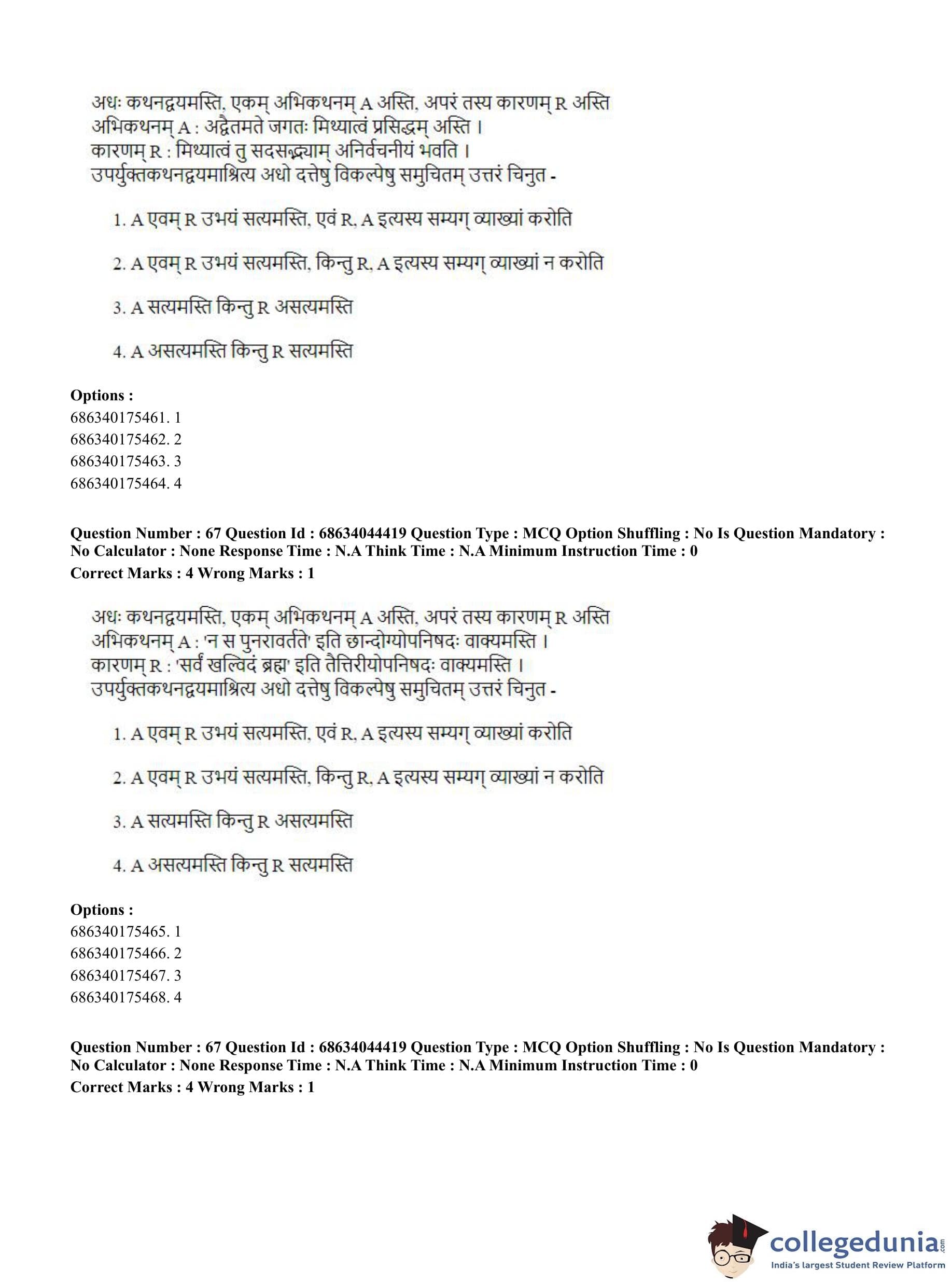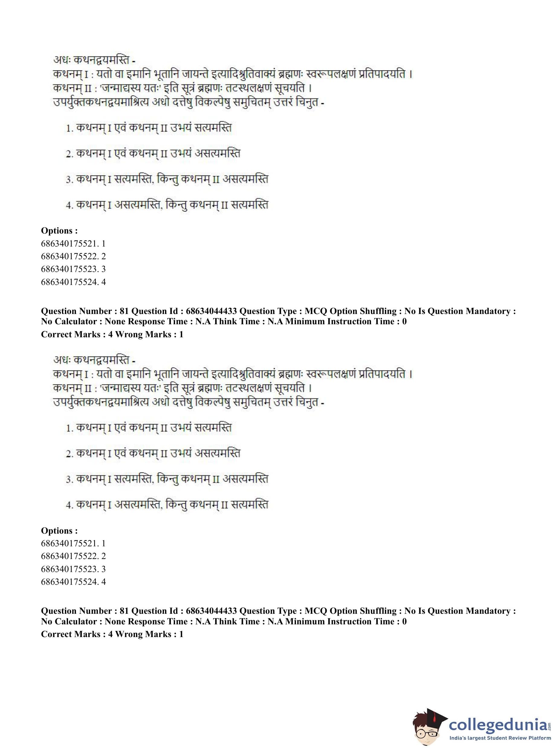 CUET PG 2023 Vedanta Question Paper in Hindi (June 30 - Shift 3)