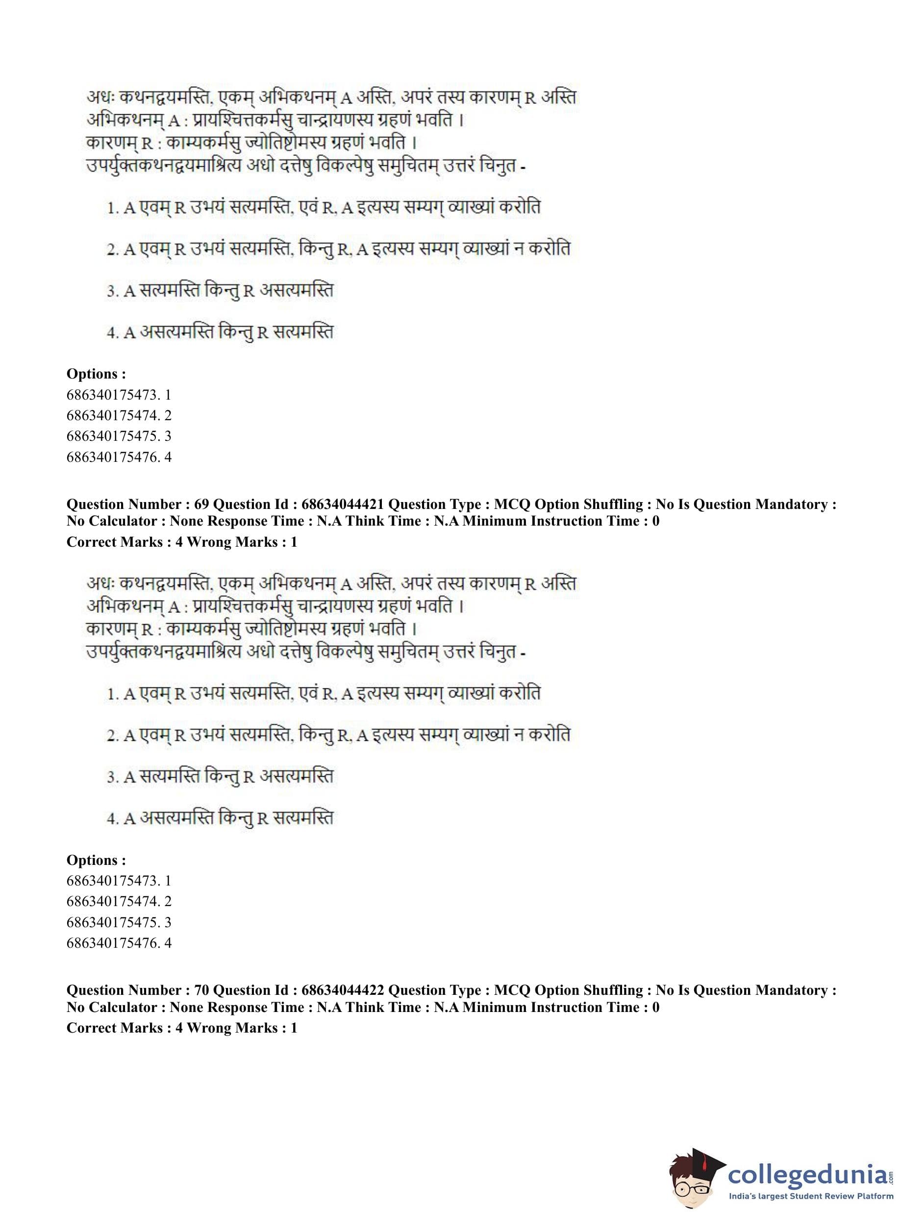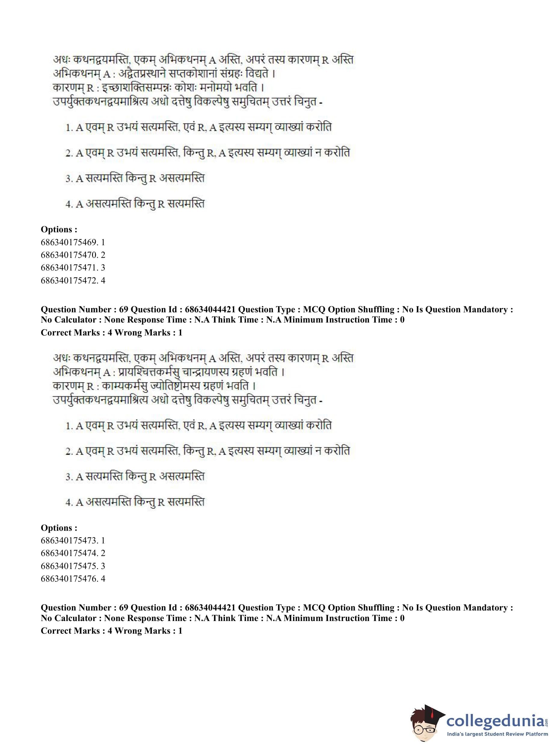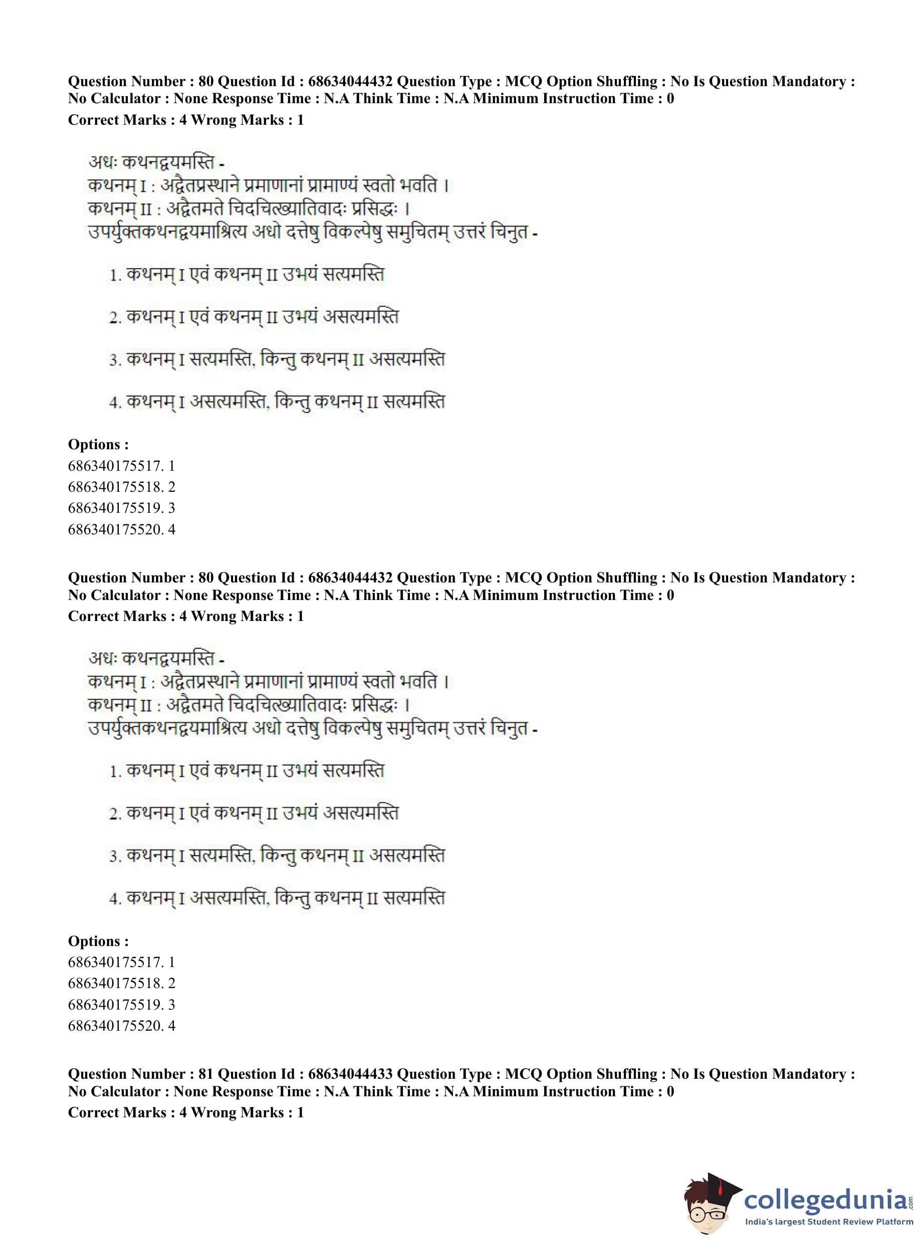 CUET PG 2023 Vedanta Question Paper in Hindi (June 30 - Shift 3)