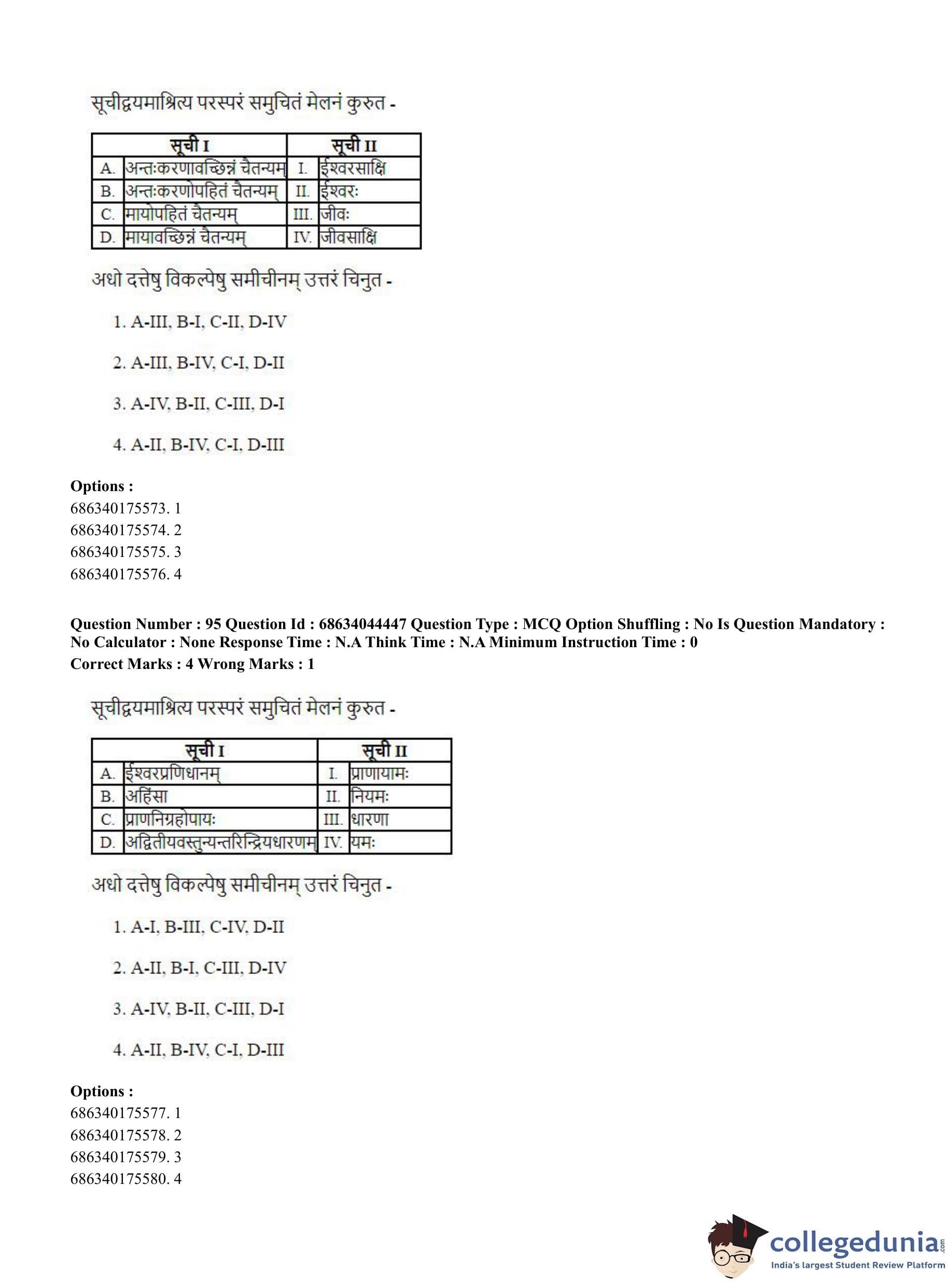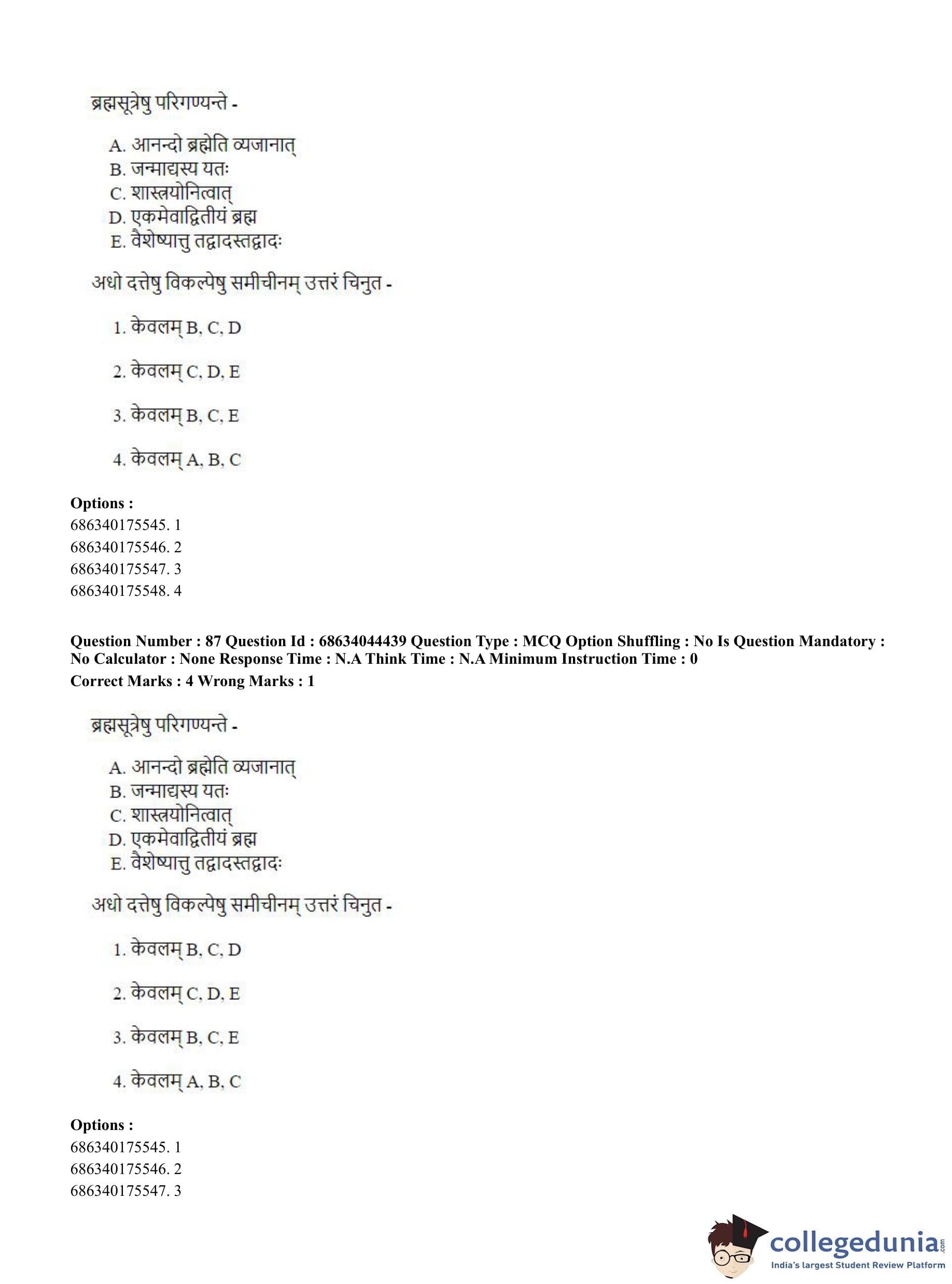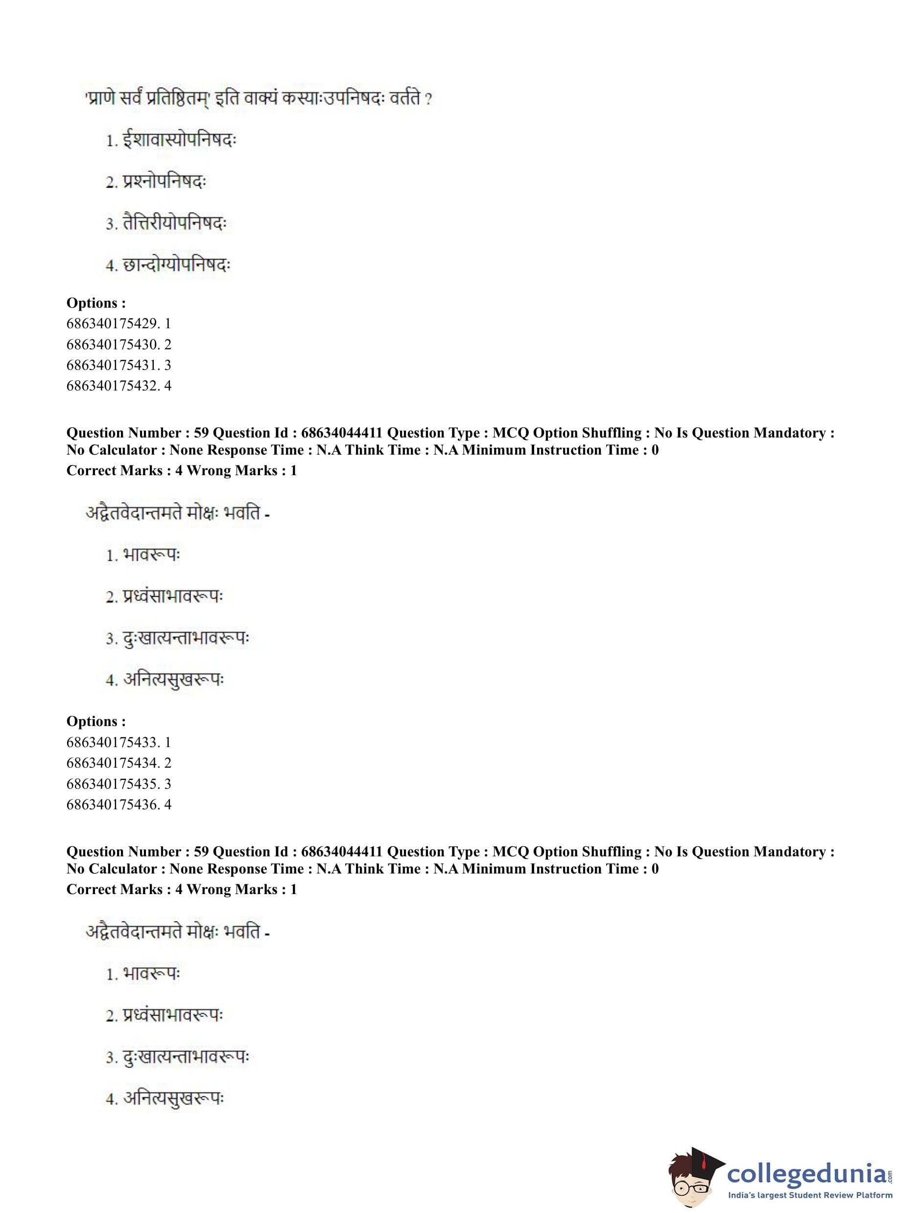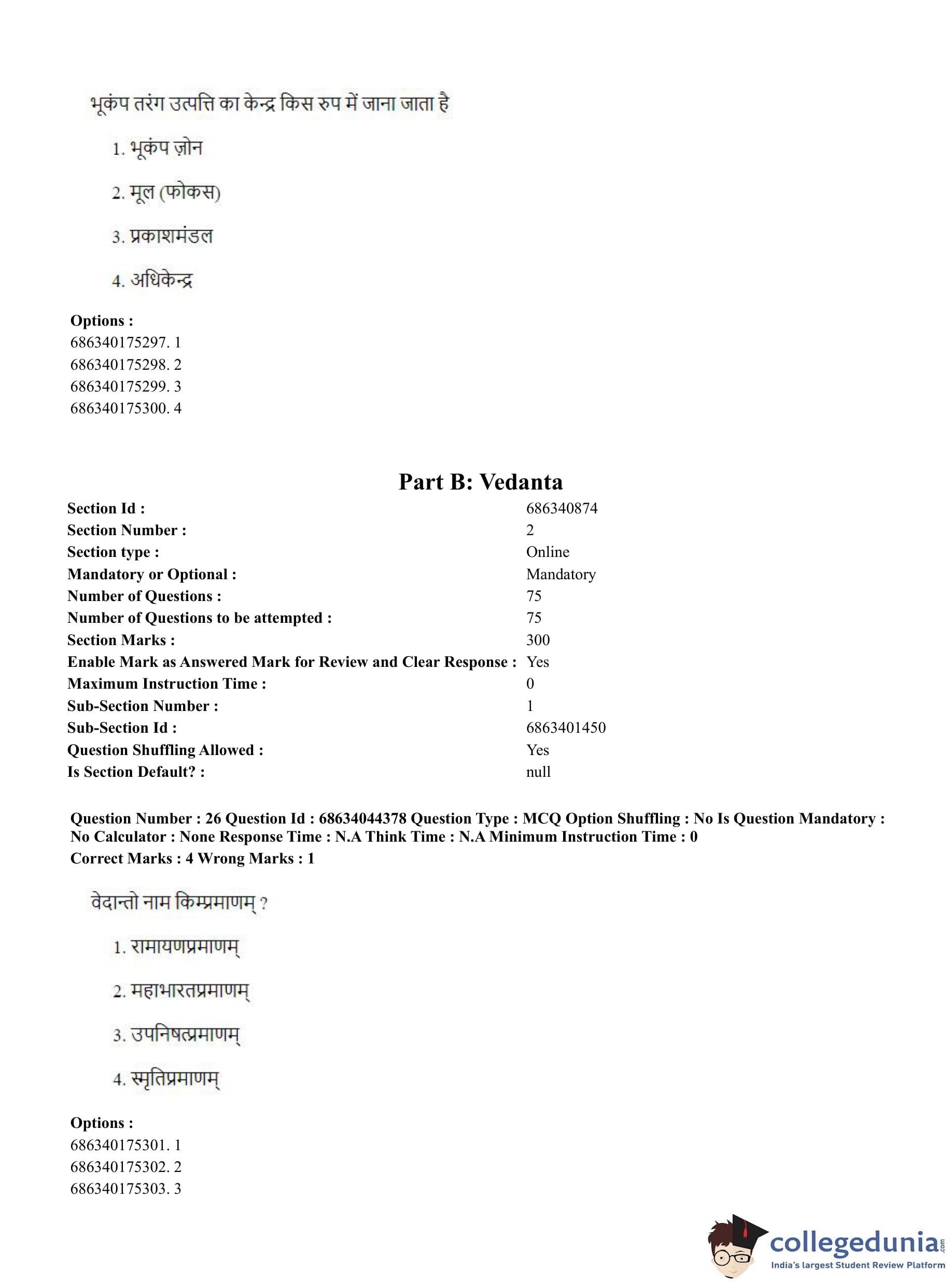 CUET PG 2023 Vedanta Question Paper with Answer Key PDF in Hindi is available for download here. The exam was conducted by National Testing Agency (NTA) on June 30, 2023 in Shift 3. The question paper comprised a total of 100 questions divided into 2 sections.