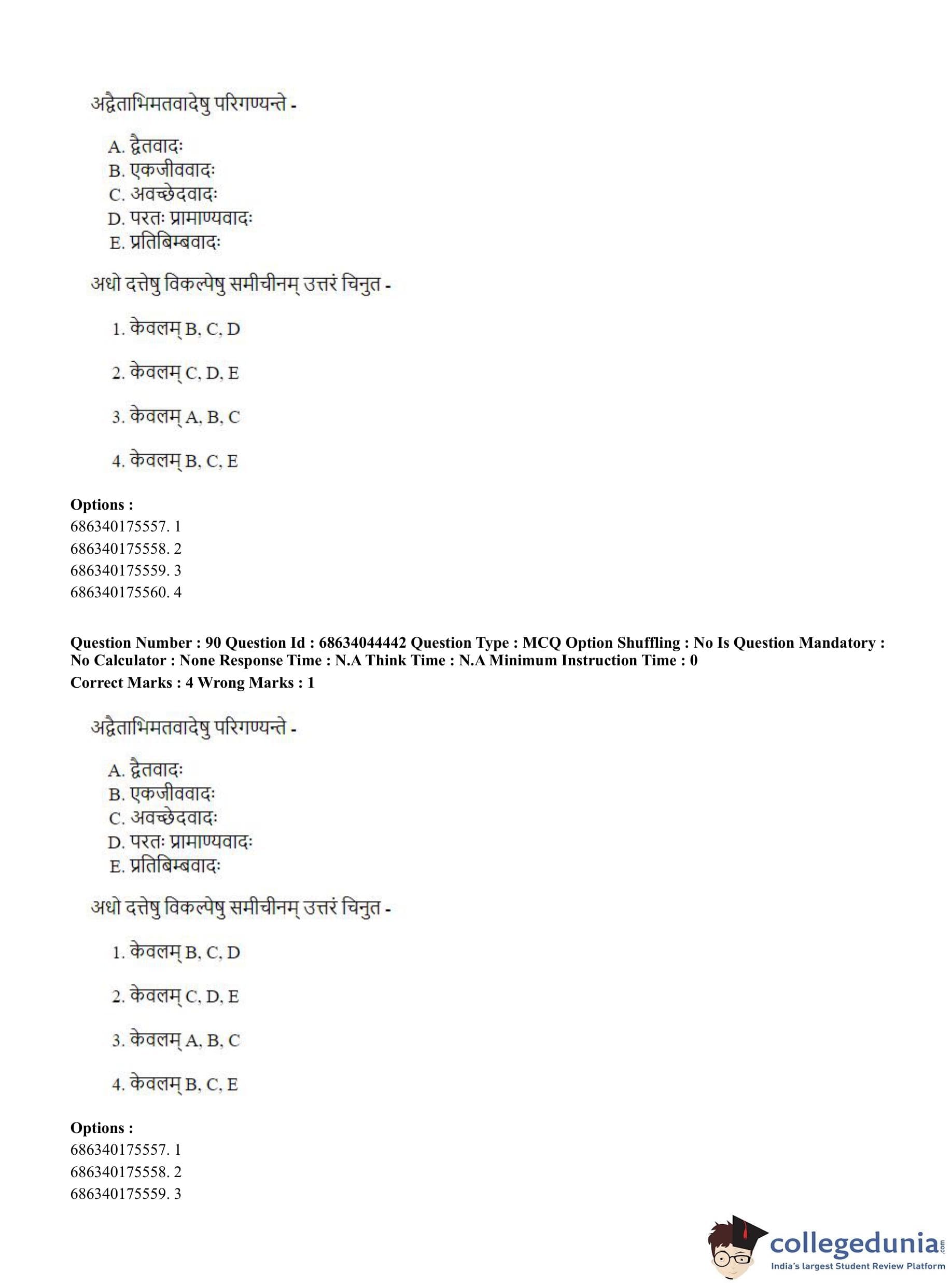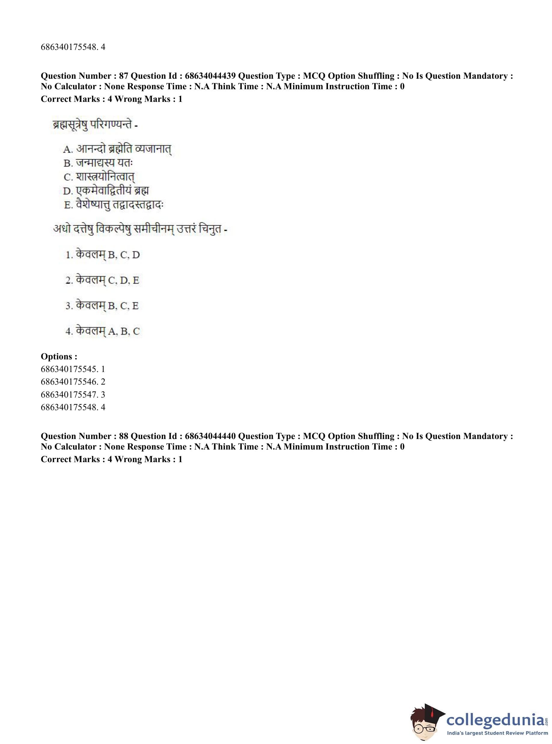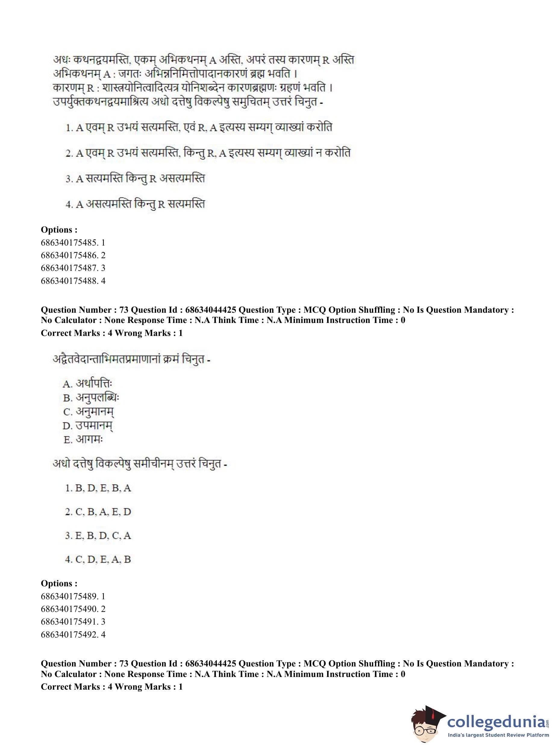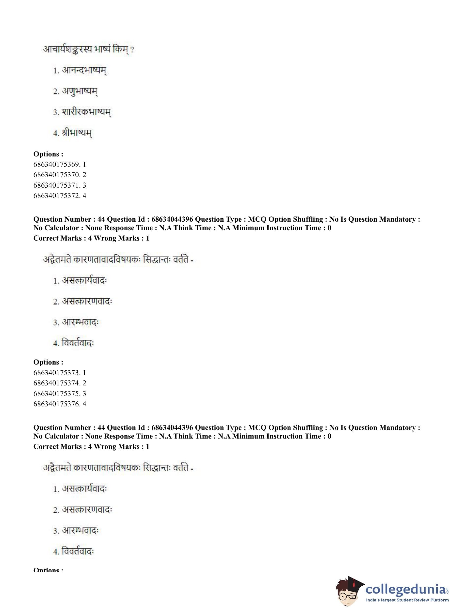 CUET PG 2023 Vedanta Question Paper with Answer Key PDF in Hindi is available for download here. The exam was conducted by National Testing Agency (NTA) on June 30, 2023 in Shift 3. The question paper comprised a total of 100 questions divided into 2 sections.