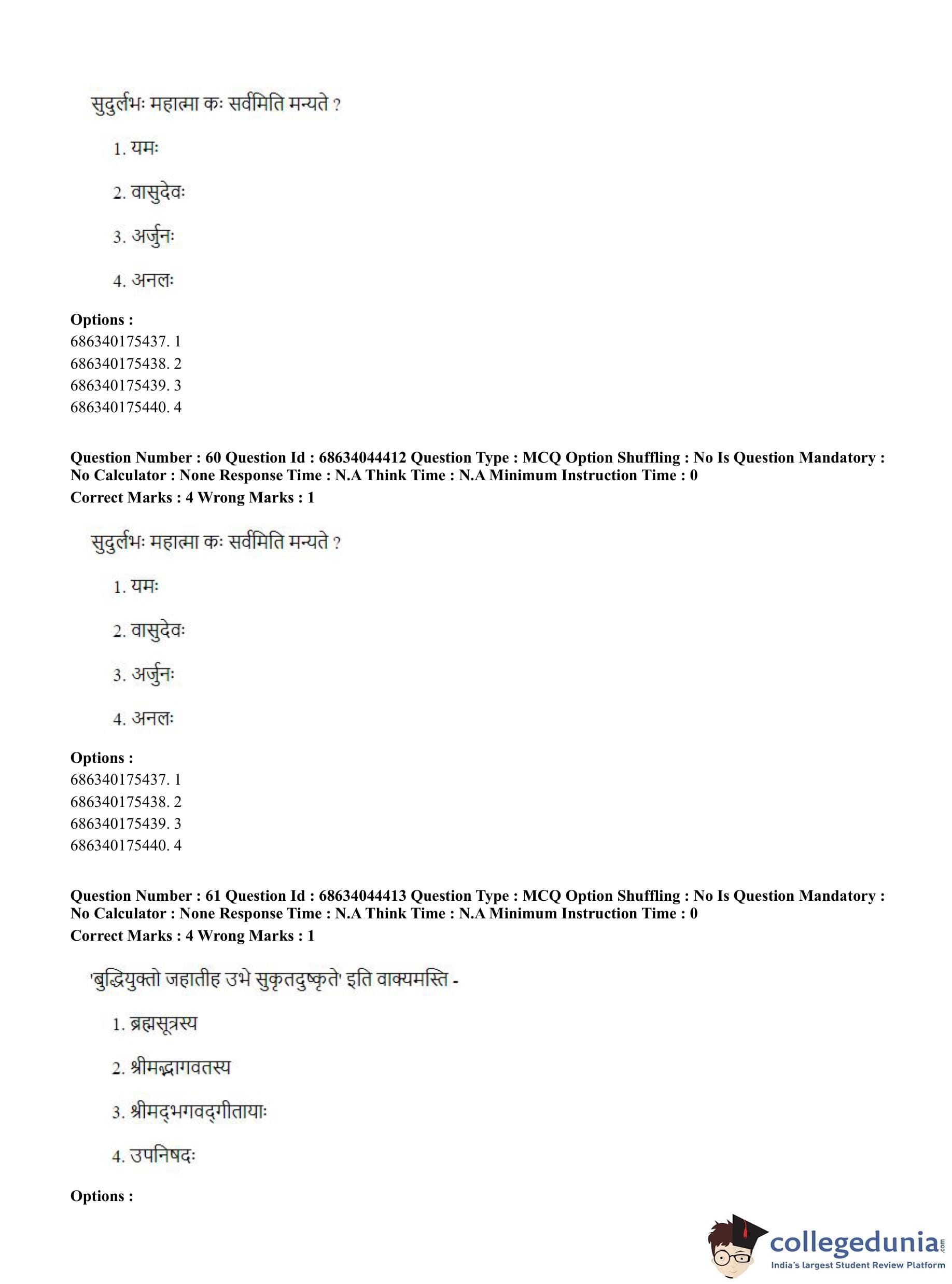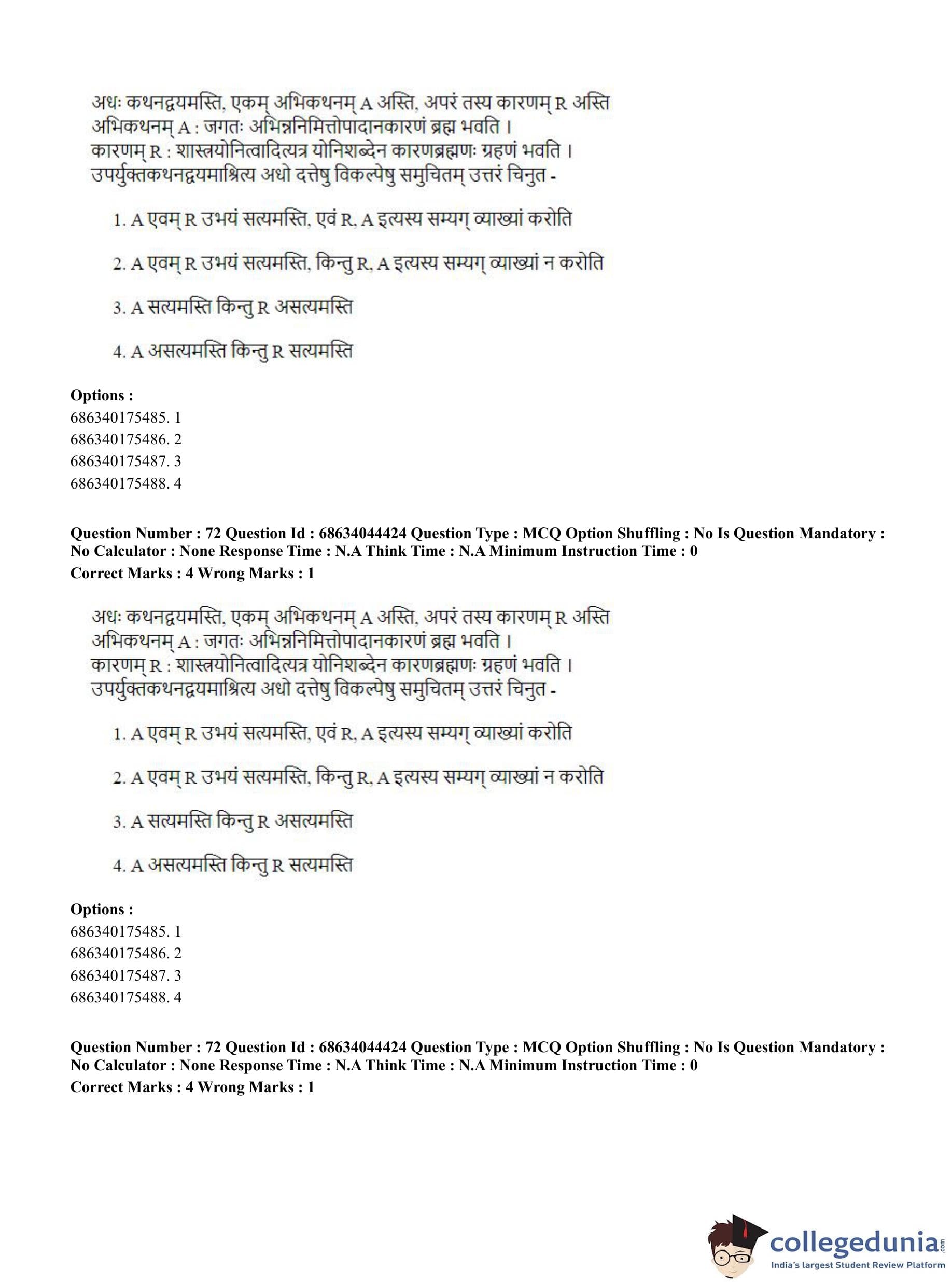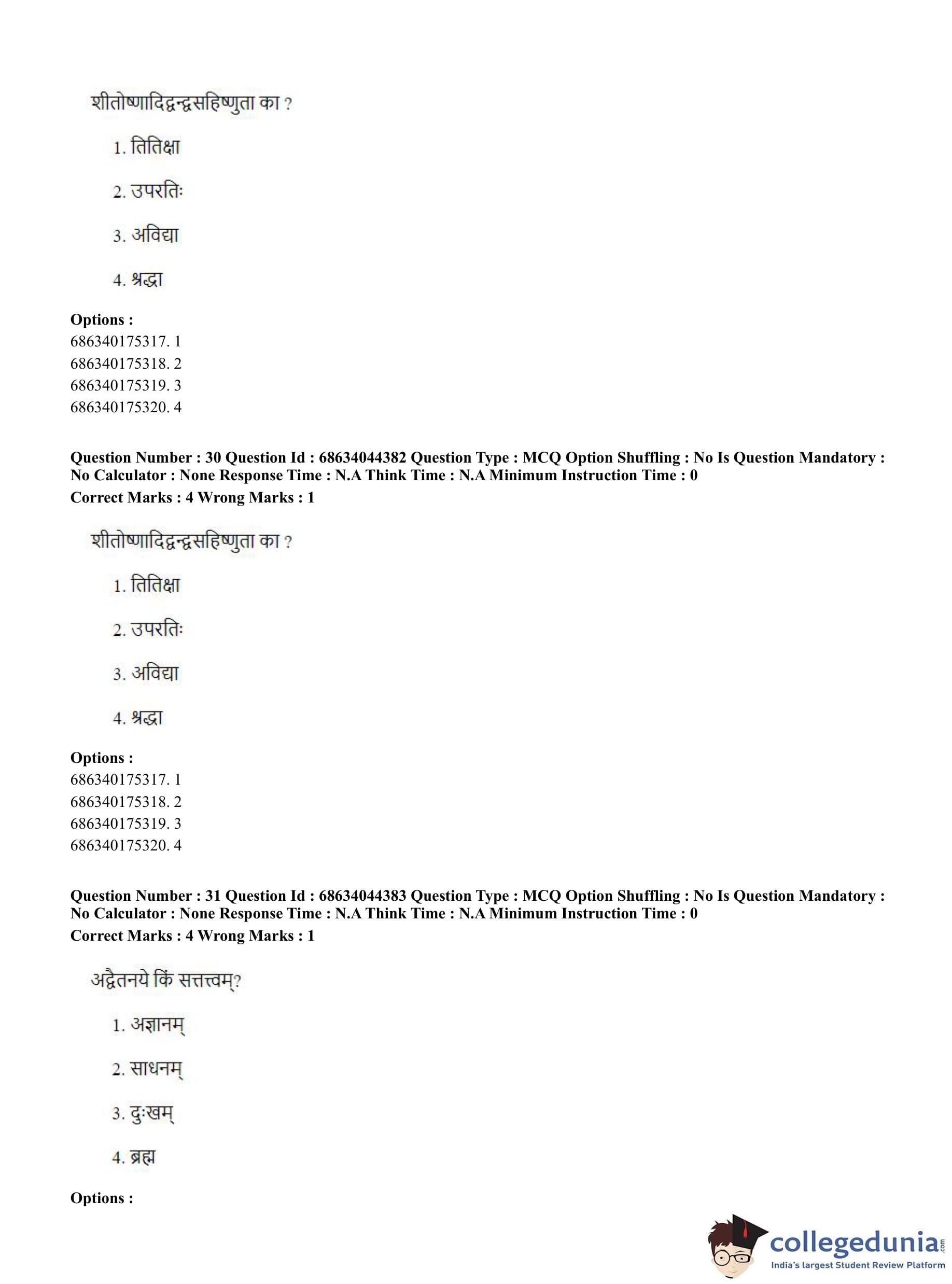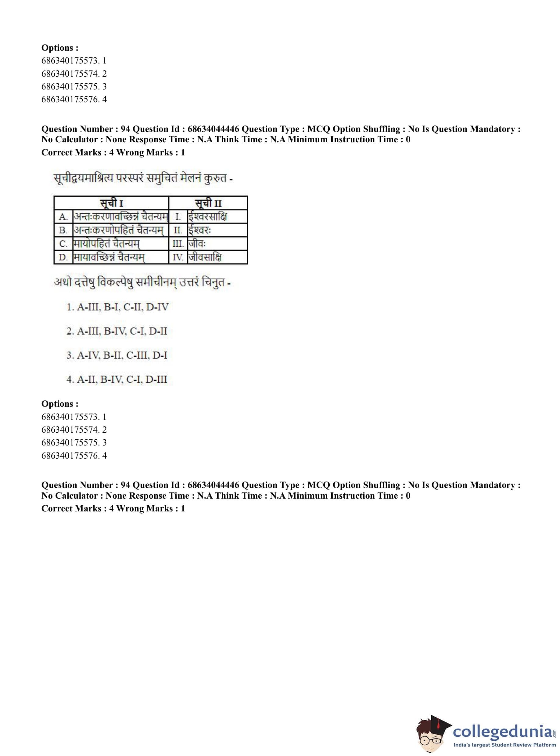 CUET PG 2023 Vedanta Question Paper with Answer Key PDF in Hindi is available for download here. The exam was conducted by National Testing Agency (NTA) on June 30, 2023 in Shift 3. The question paper comprised a total of 100 questions divided into 2 sections.