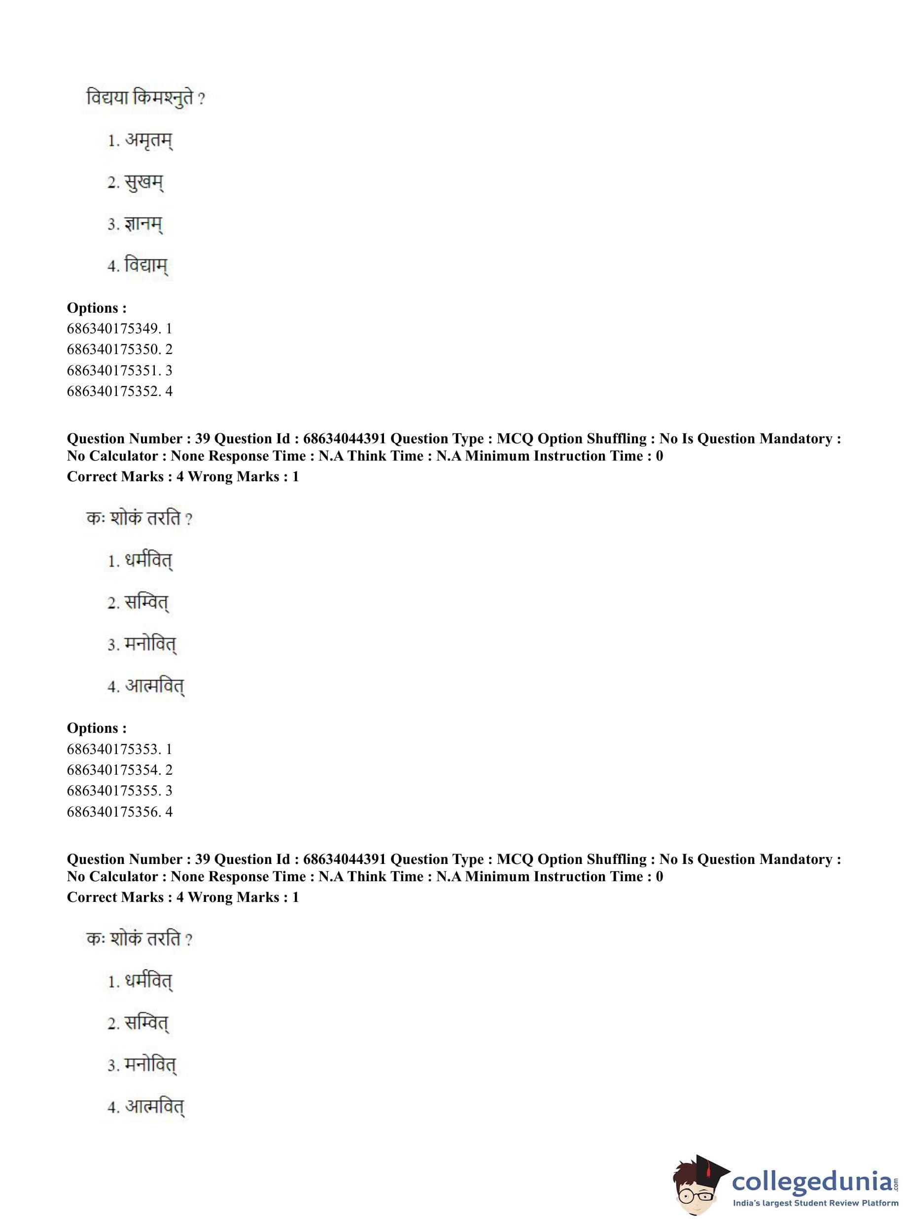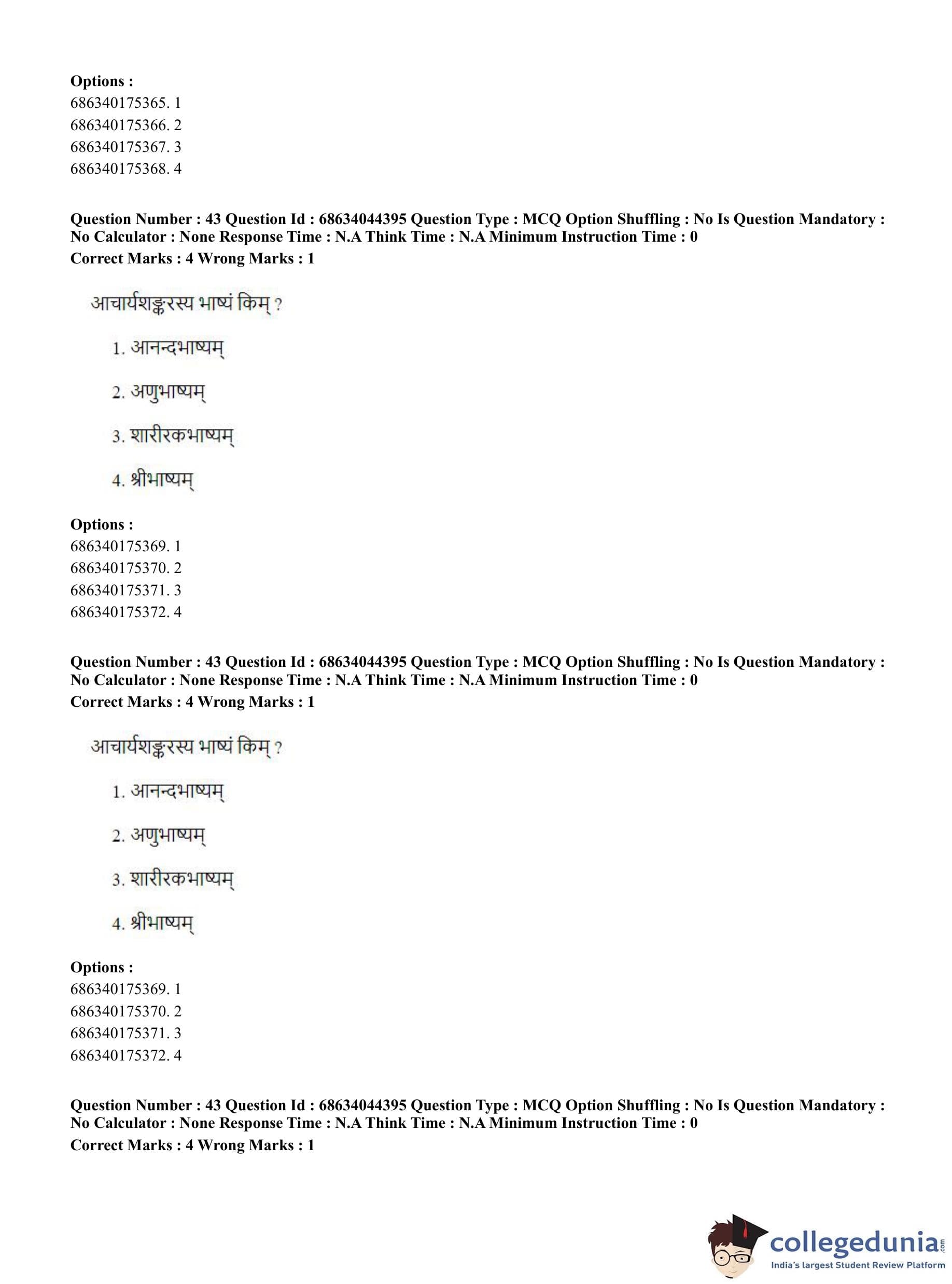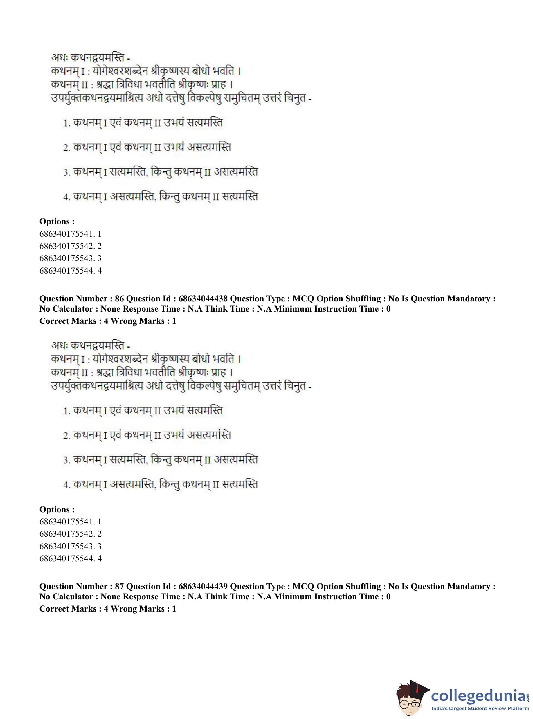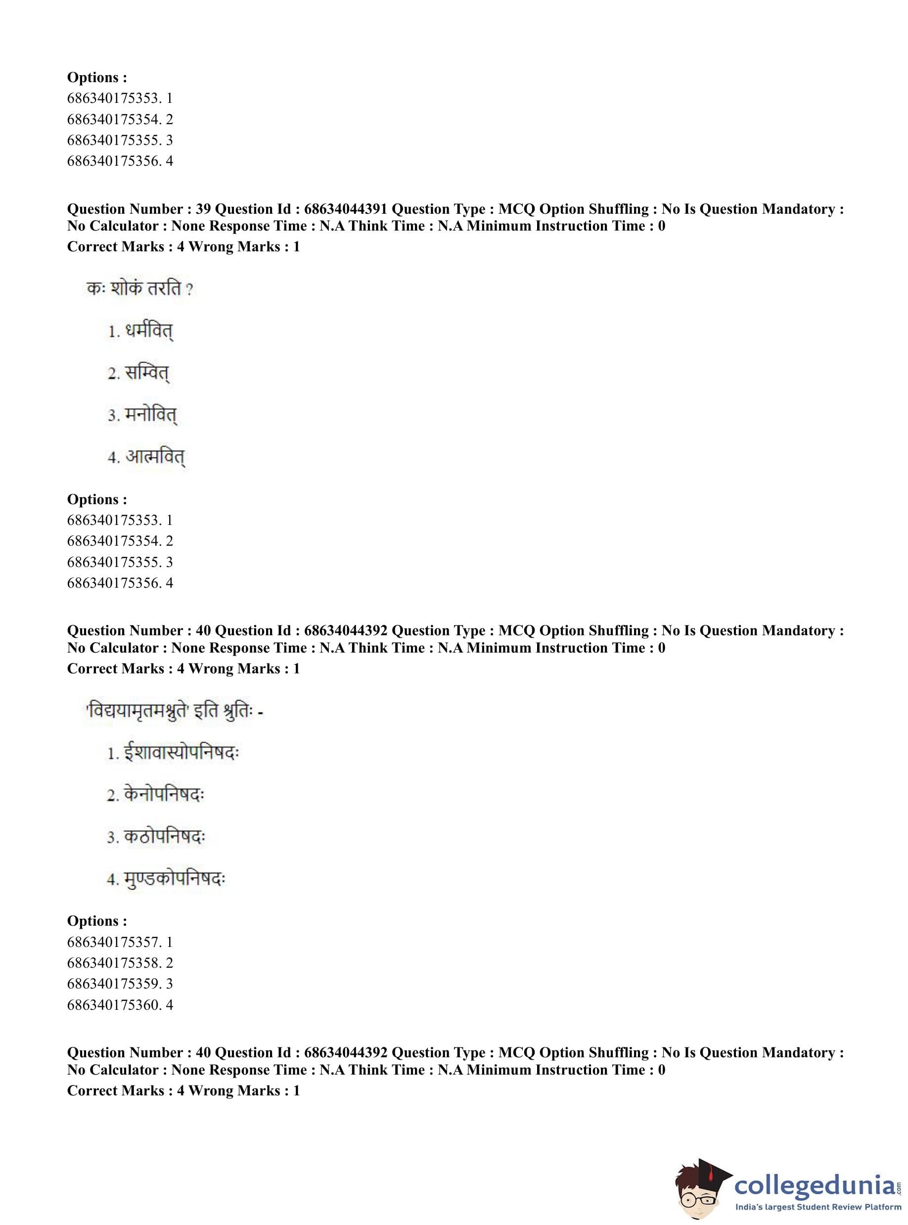 CUET PG 2023 Vedanta Question Paper with Answer Key PDF in Hindi is available for download here. The exam was conducted by National Testing Agency (NTA) on June 30, 2023 in Shift 3. The question paper comprised a total of 100 questions divided into 2 sections.