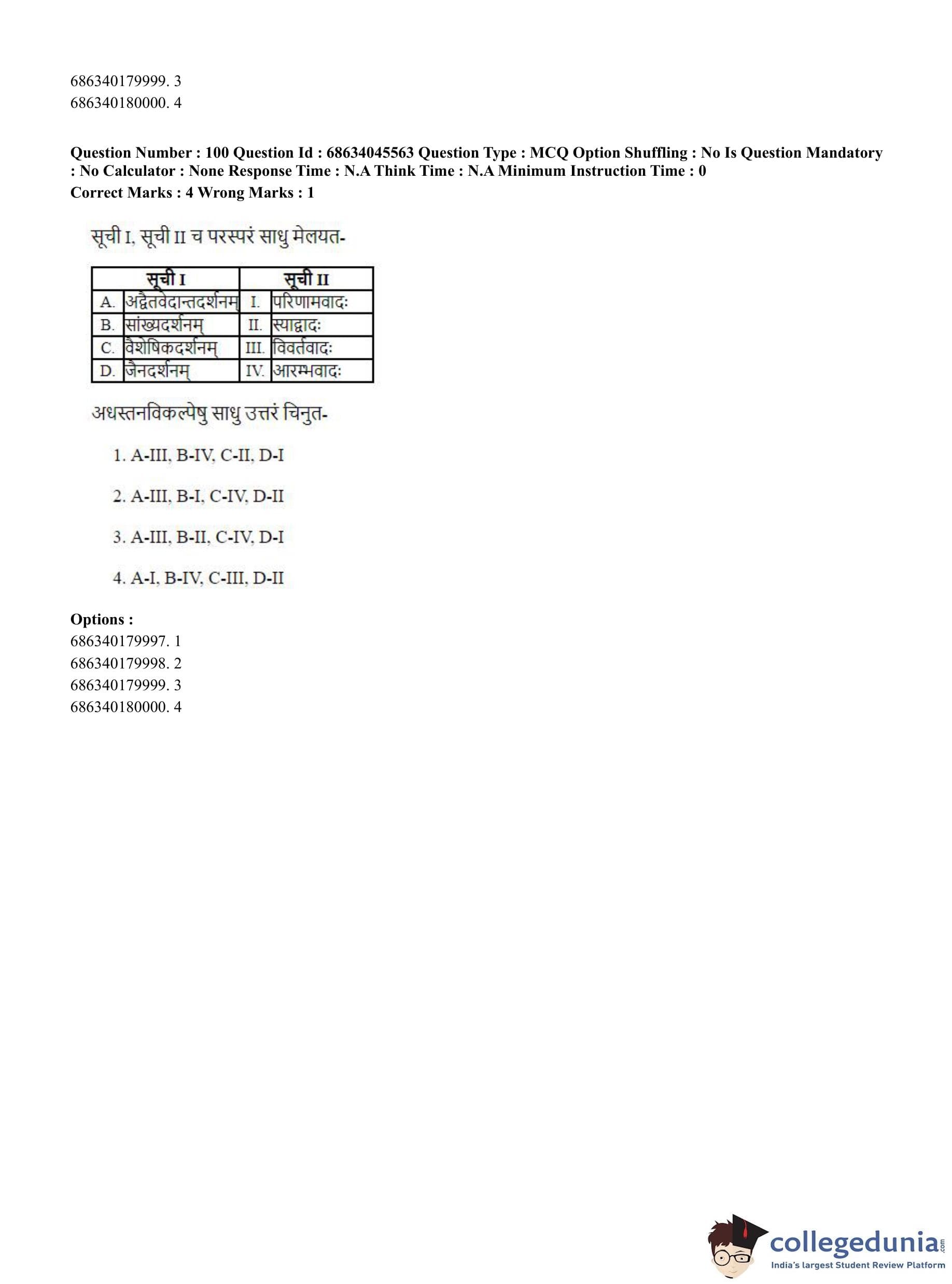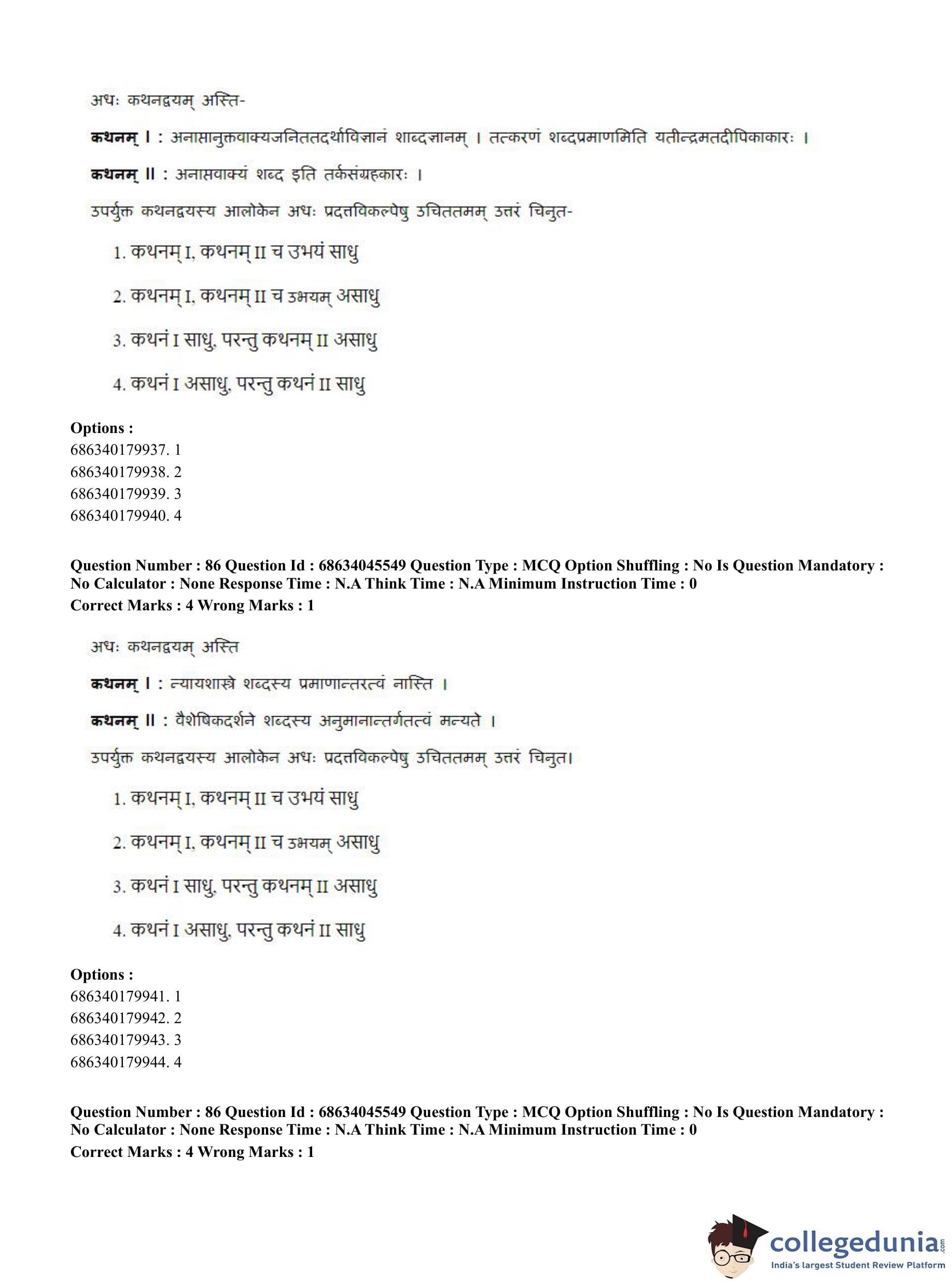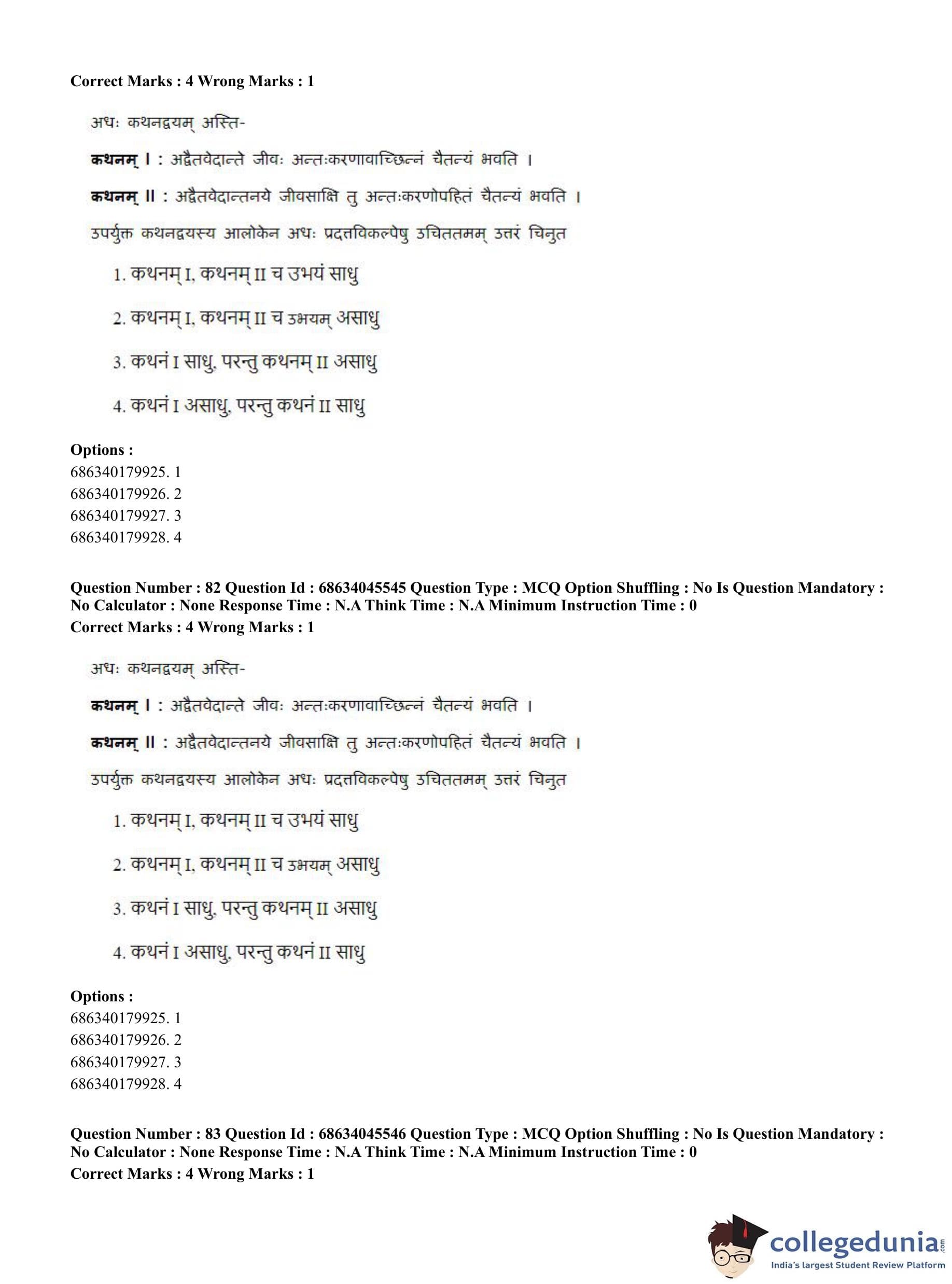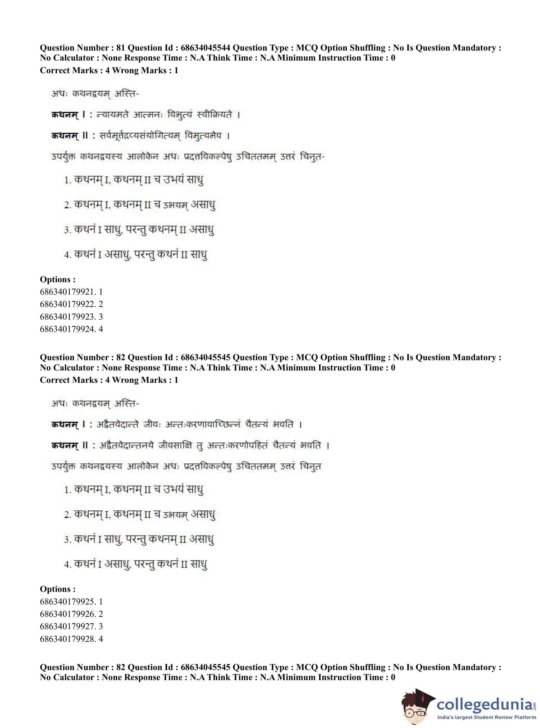CUET PG 2023 Vedanta, Sarvadarshan, Mimansa,Nyaya Question Paper in English (June 30 - Shift 3)
