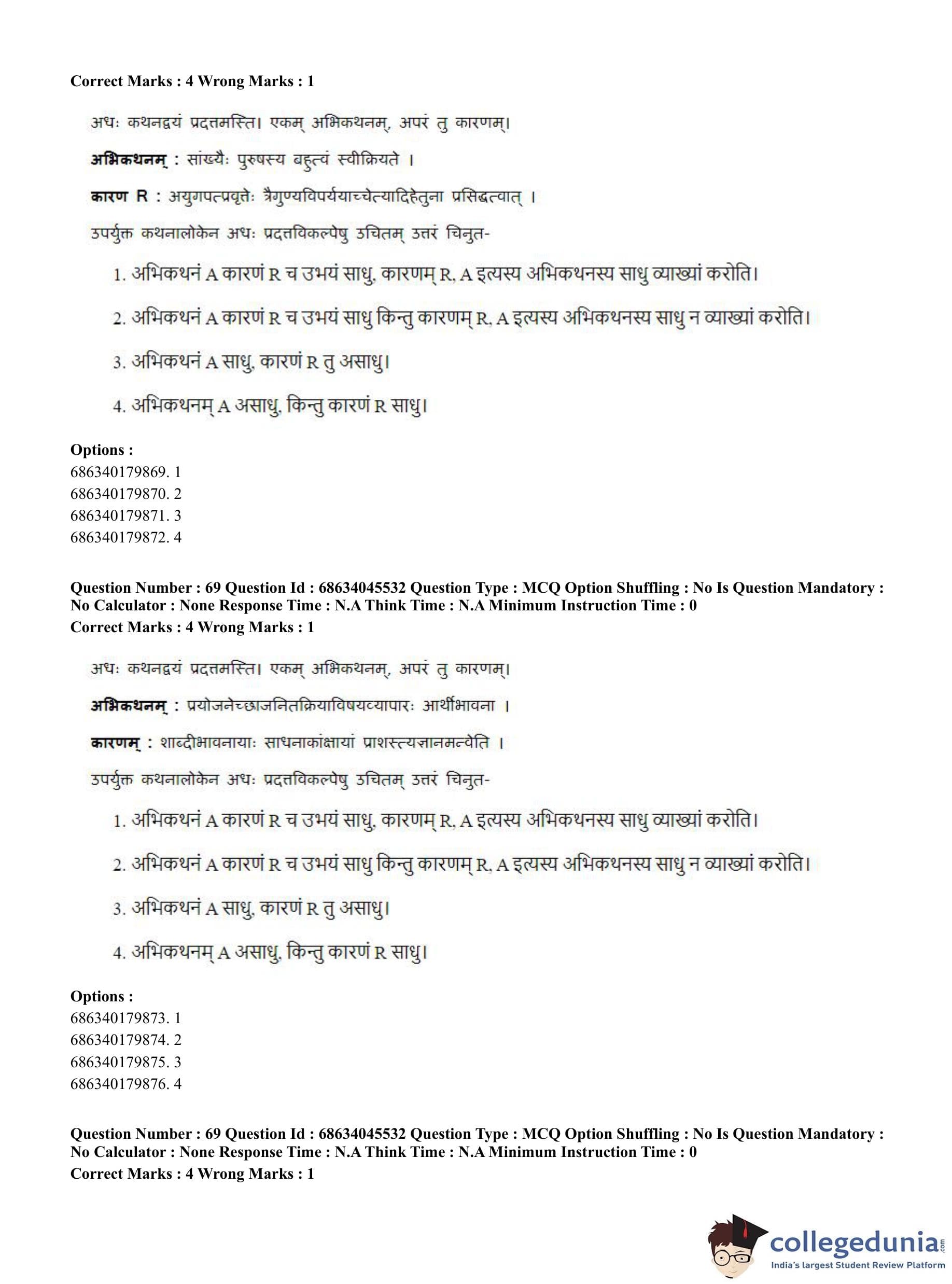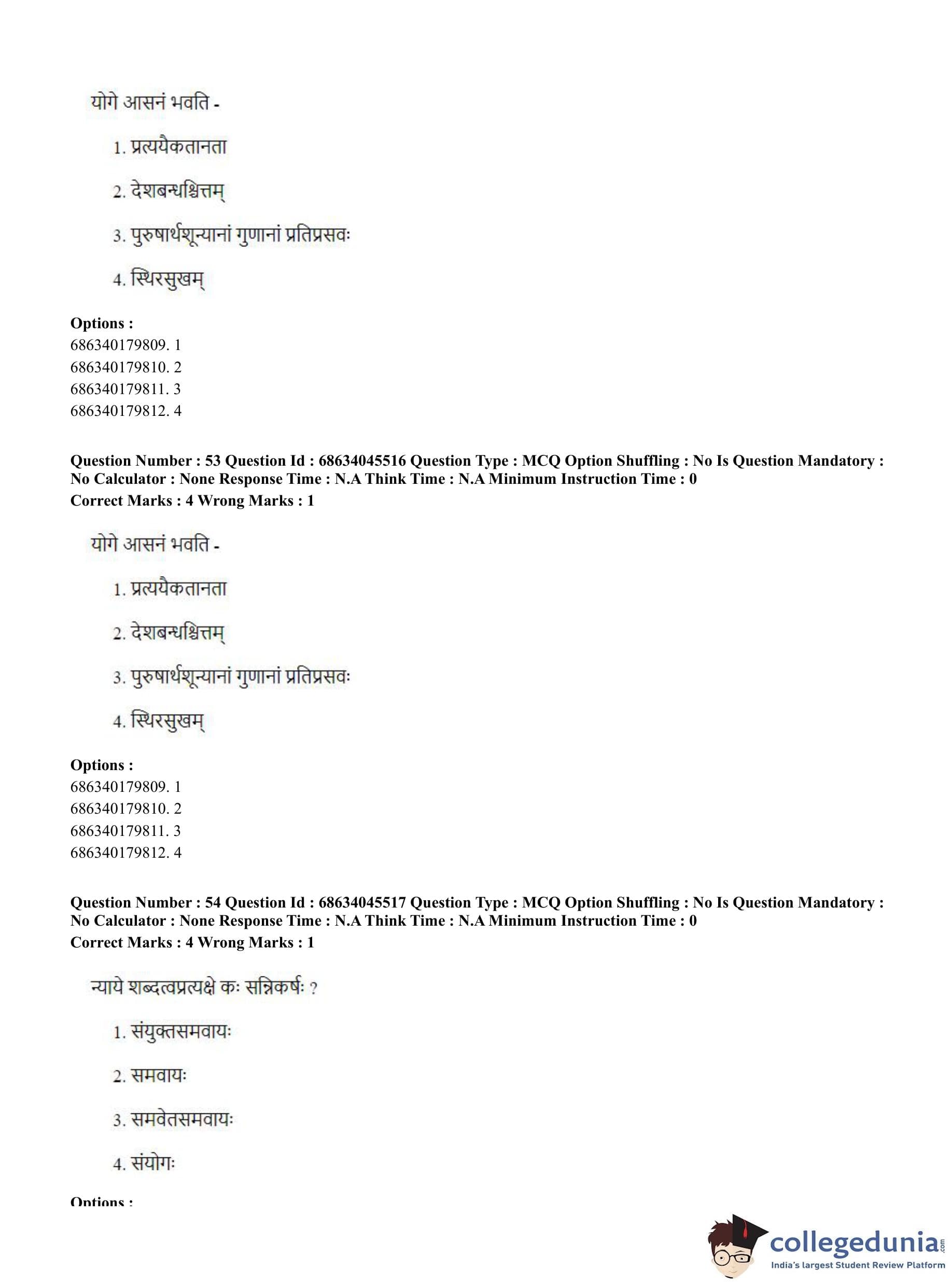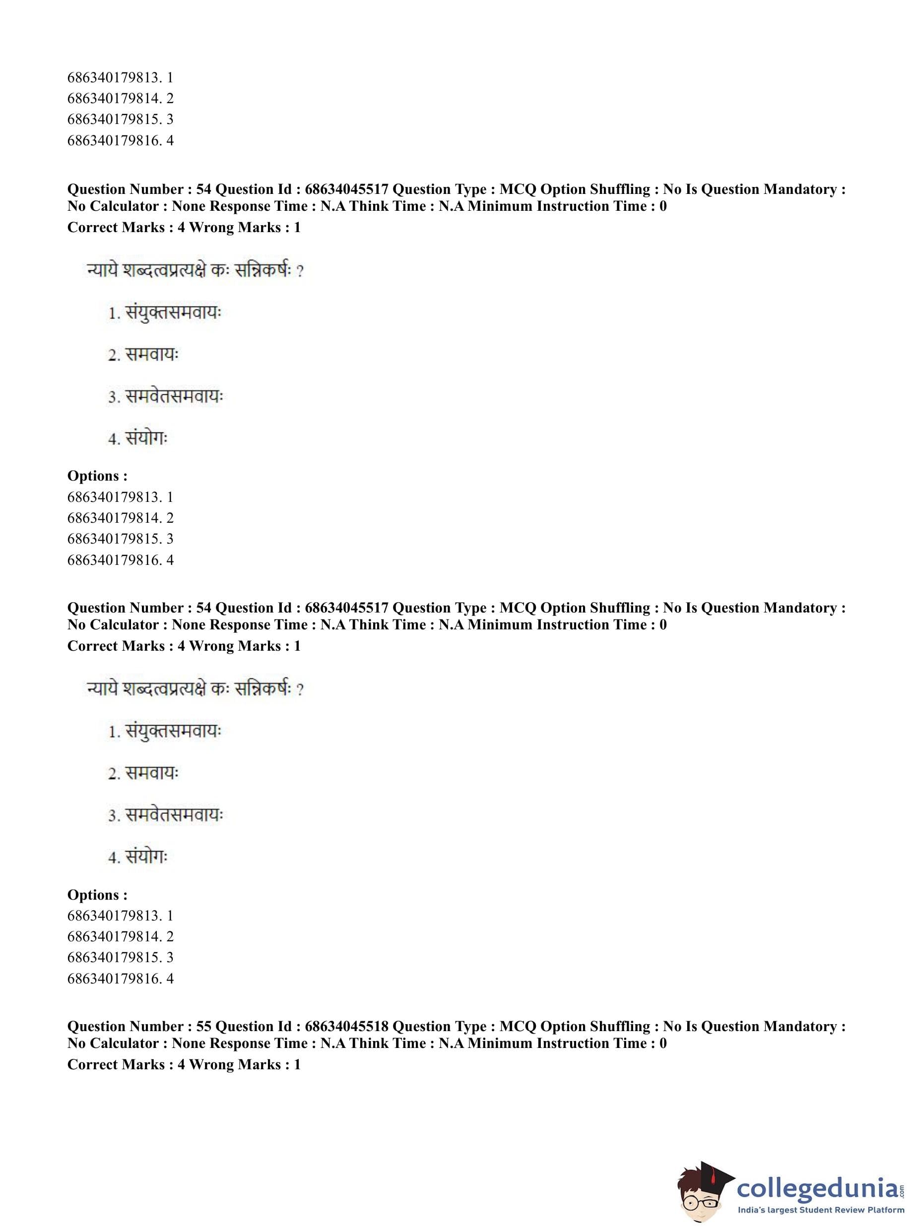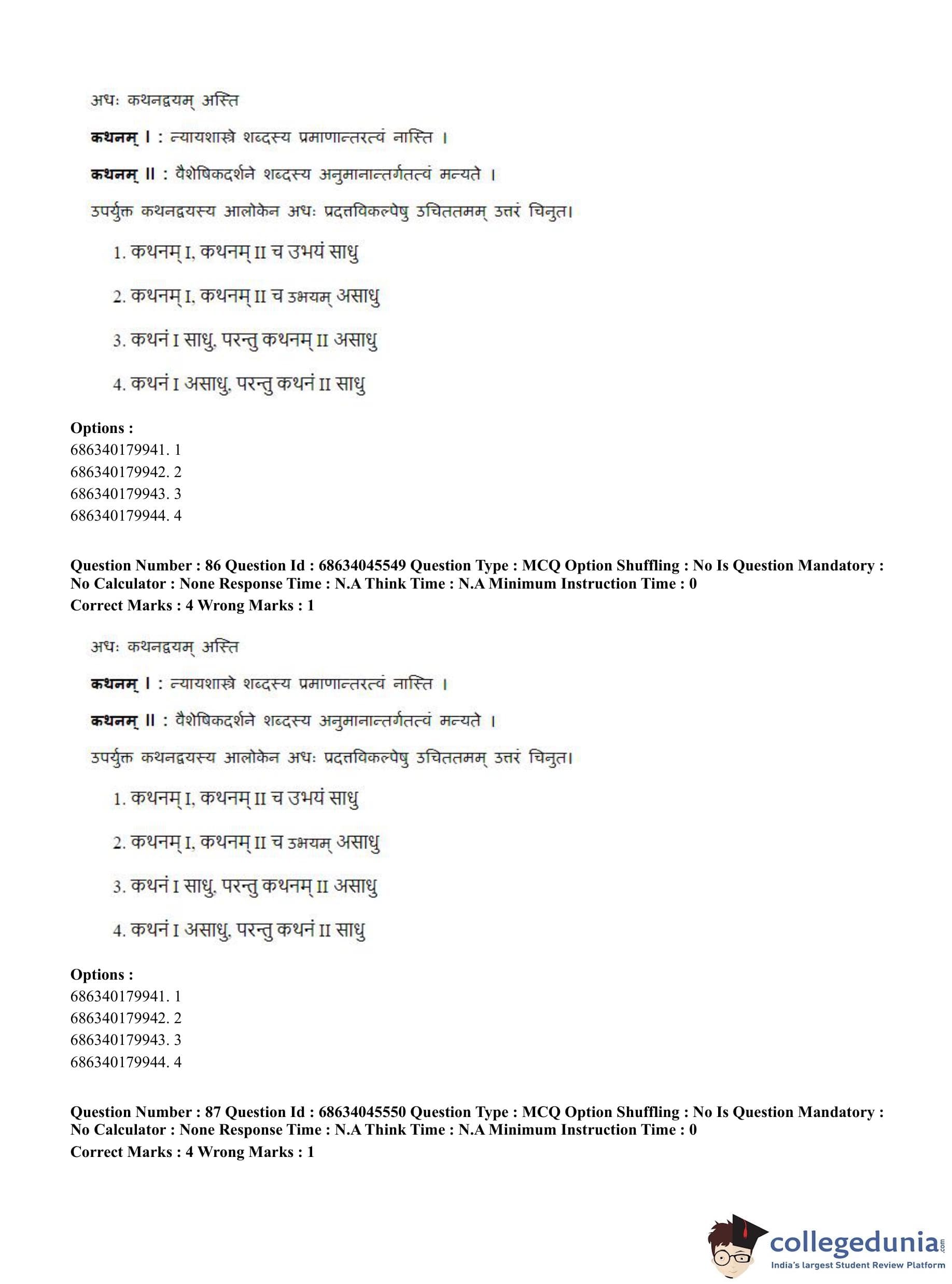 CUET PG 2023 Vedanta, Sarvadarshan, Mimansa,Nyaya Question Paper in English (June 30 - Shift 3)